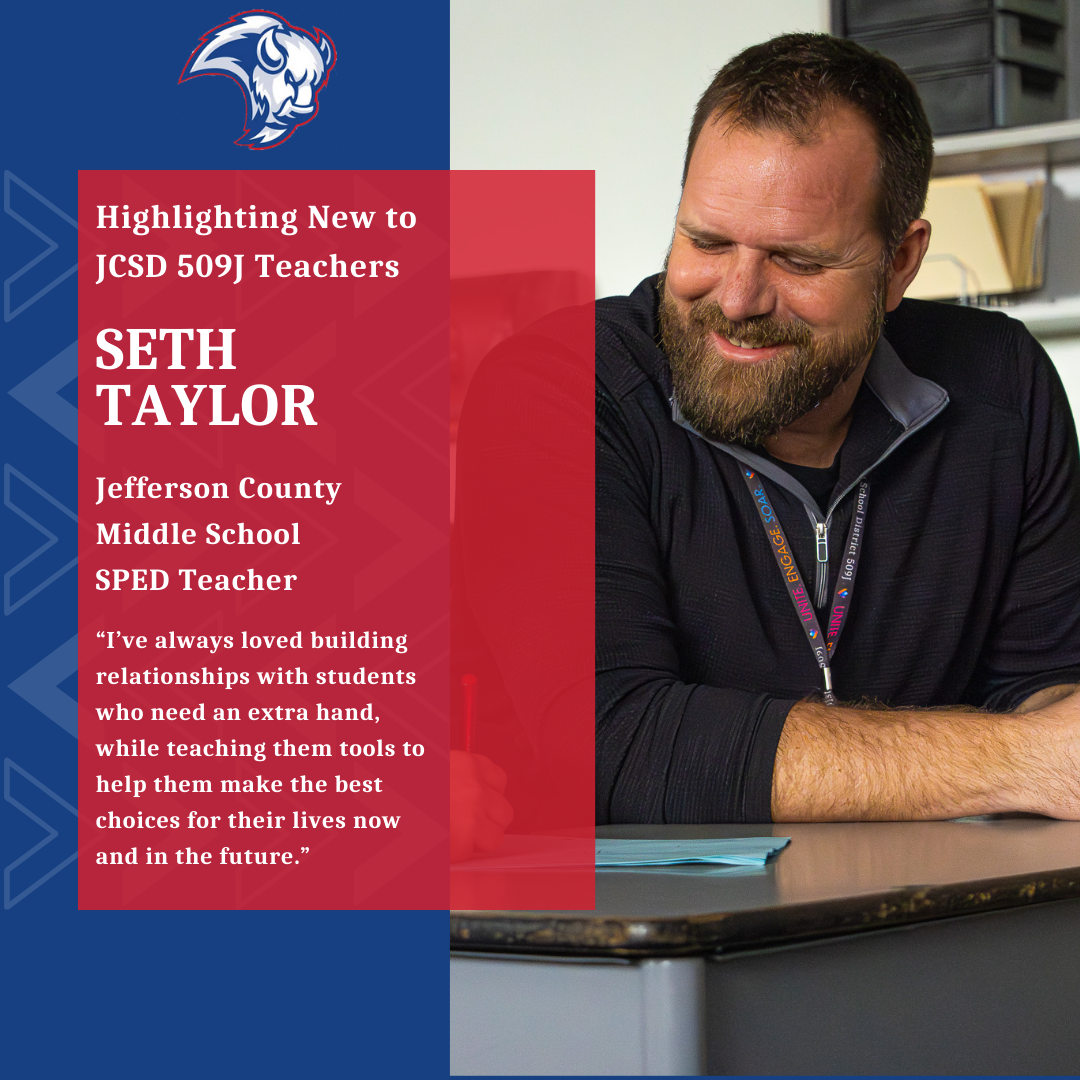 Seth Taylor is one of our special education teachers at JCMS this year. Seth has always had a passion for teaching youth and for the outdoors. Before joining the team at JCMS, Seth enjoyed a nearly 20 year career in natural resources working with the Oregon Department of Fish and Wildlife.