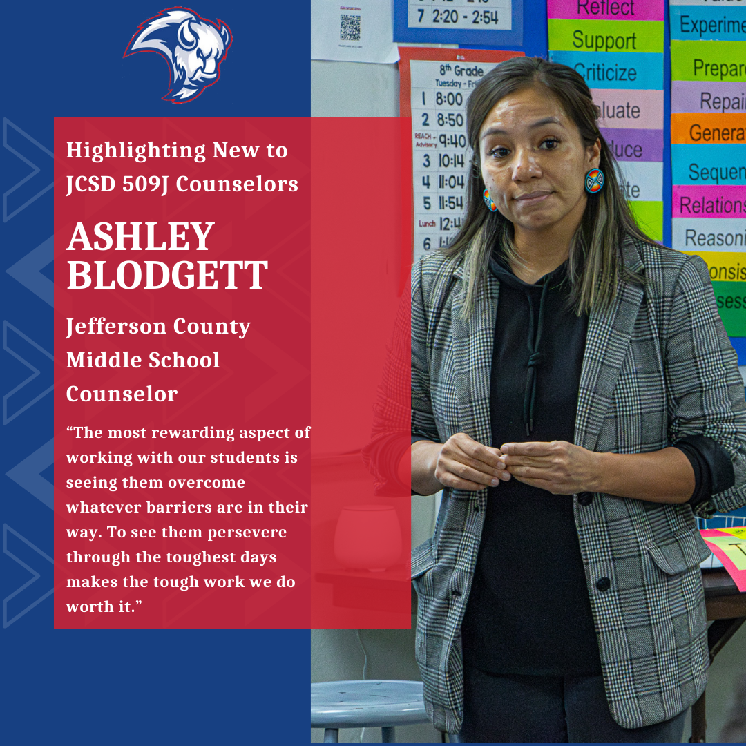 Ashley Blodgett is one of our new counselors at JCMS this year. Before joining JCSD 509J, Ashley was a licensed clinical social worker working on both outpatient therapy and medical social work.