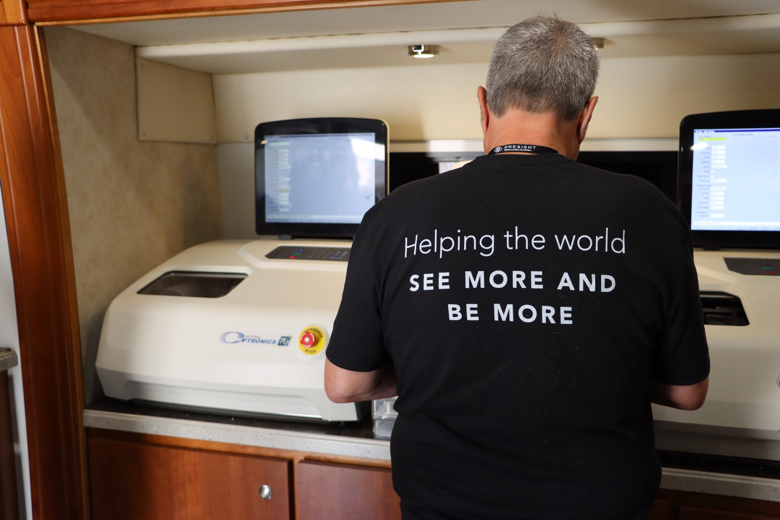 Also, on the mobile clinic are more than 100 pairs of lenses. There is a laboratory where the lenses are cut and matched with a brand new frame the student choose earlier in the process.