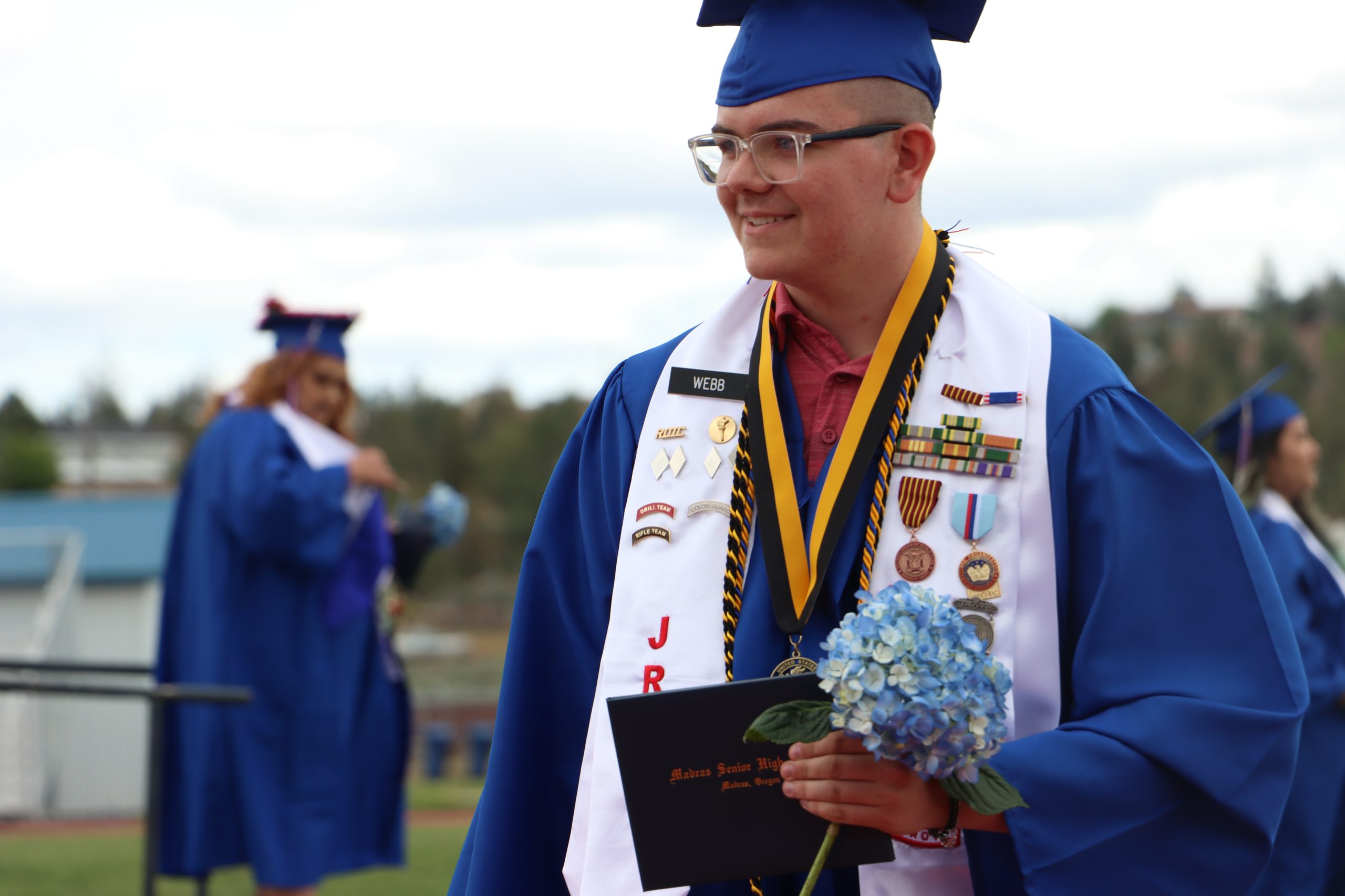 Brian Crook, Principal of Madras High, welcomed the families to the graduation and dubbed the class of 22 as the “Comeback Kids.” These students faced unprecedented times in their high school career when the COVID-19 pandemic upended their schooling back in March 2020. He shared how proud he and the staff at MHS are of this year’s graduating class.