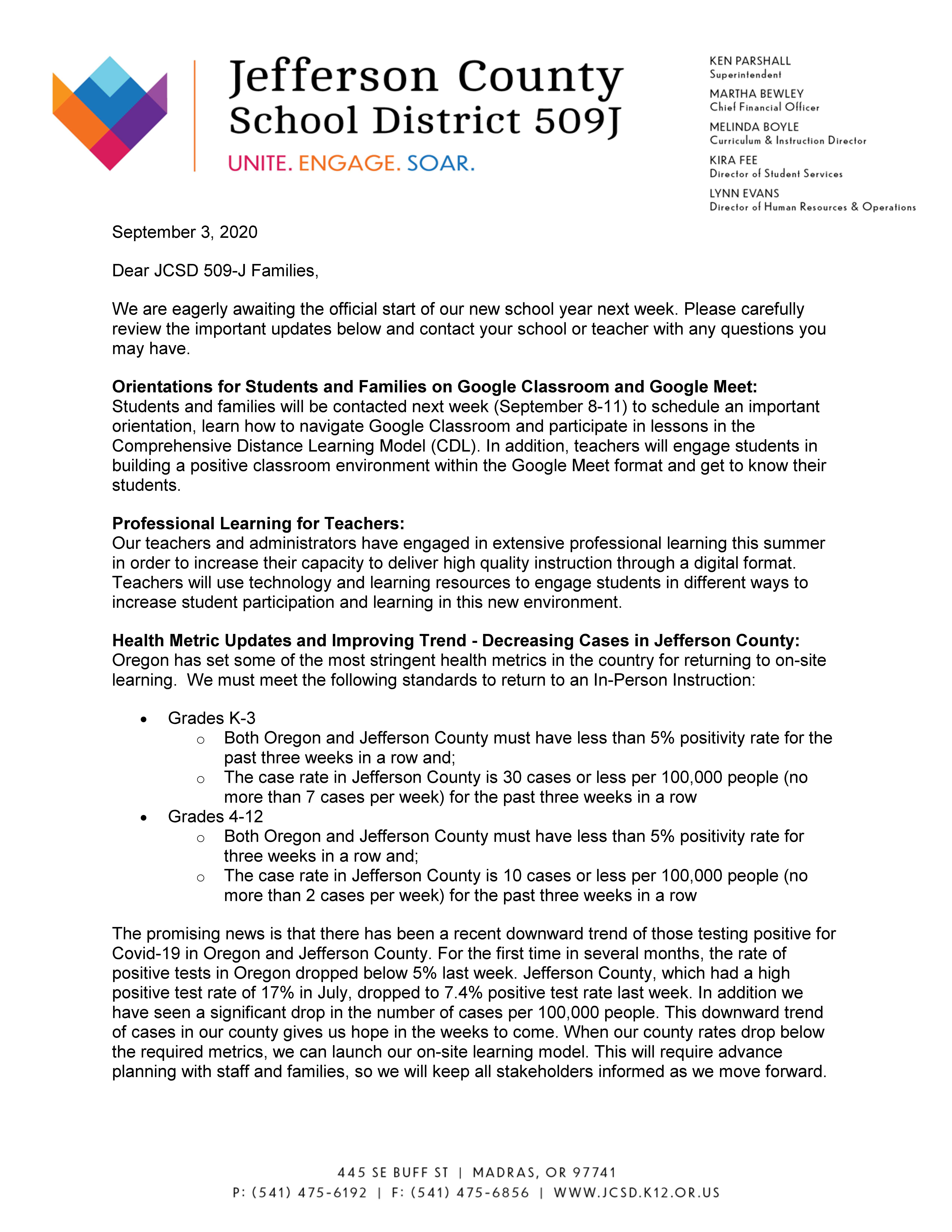 Our path to return to school this fall is rapidly evolving. Please continue to refer to this page for updates and for new information as it becomes available.