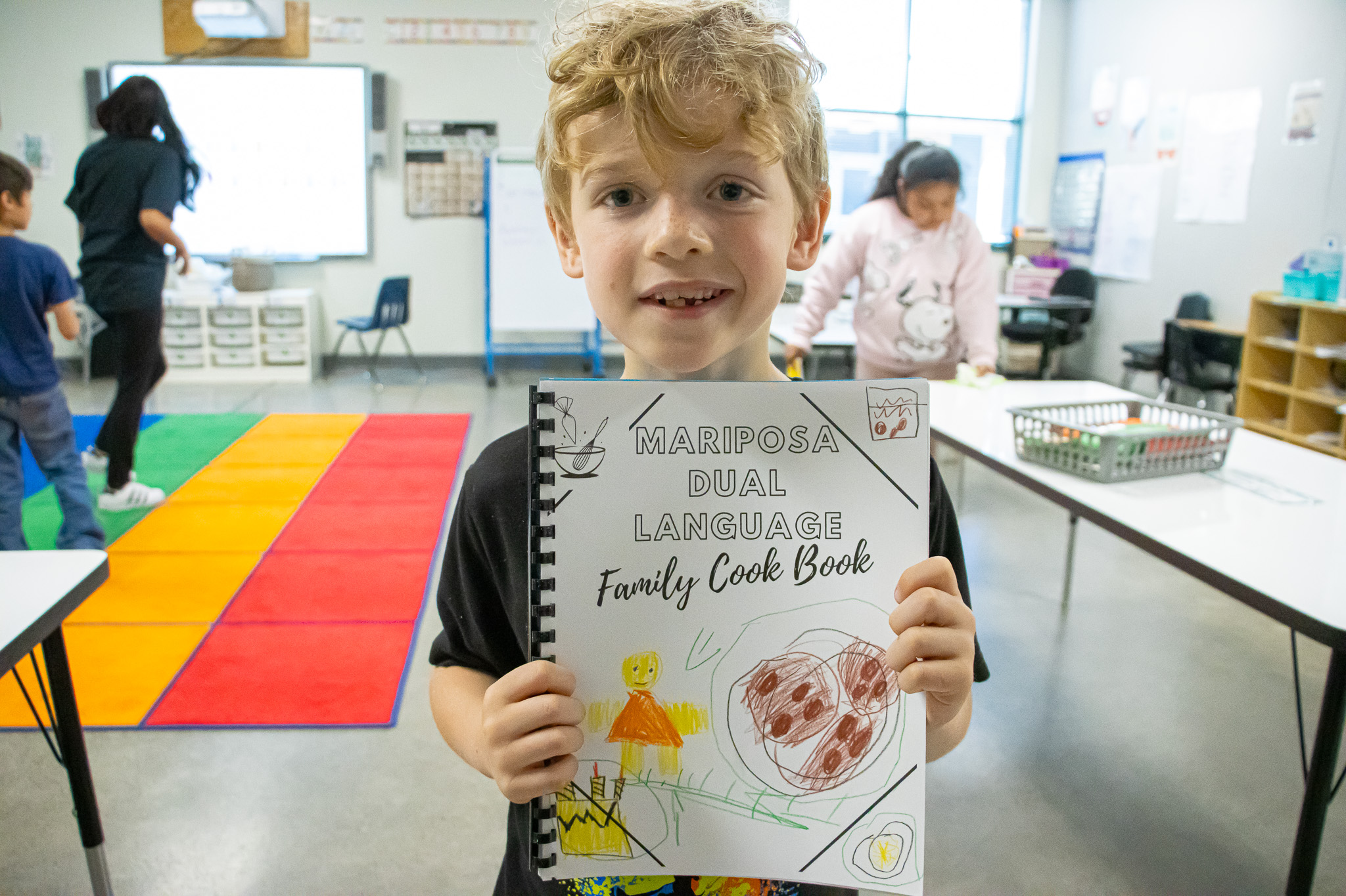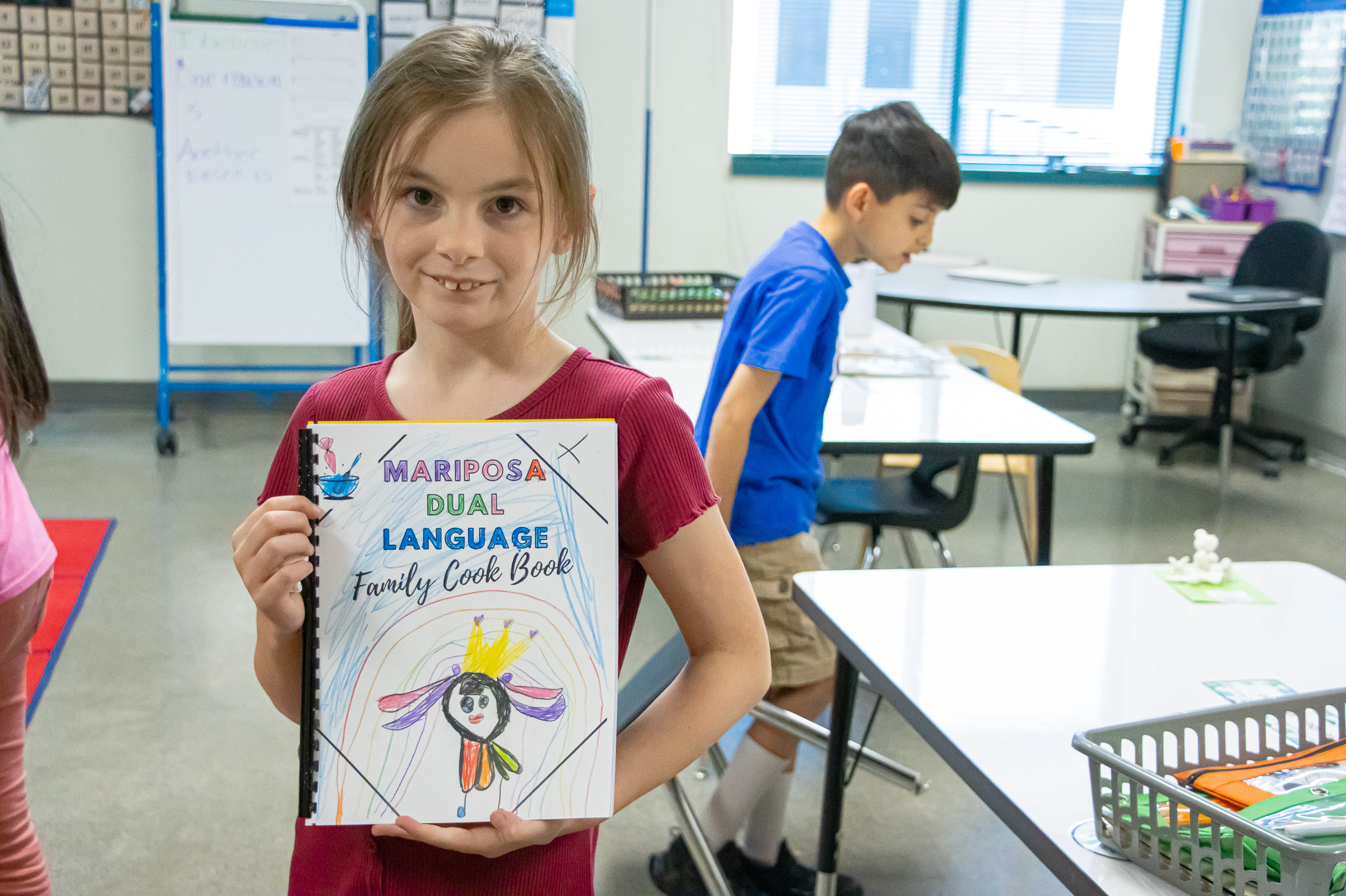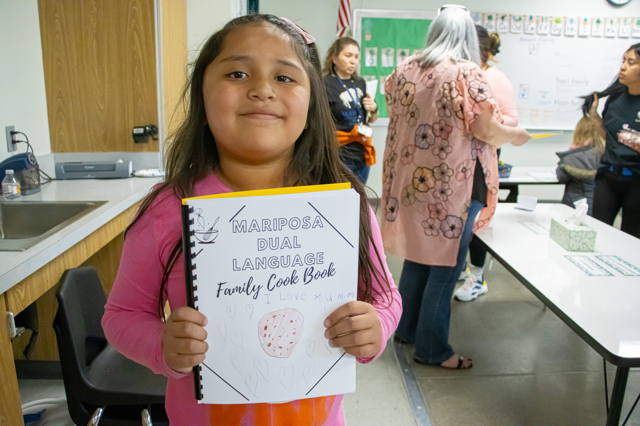 Galan had a lot of help in this project from a volunteer and their art teacher, Marty Neill. She was also assisted by Yesenia Avalos, a Mariposa Educational Assistant, who worked with Galan to carefully translate each recipe either from English to Spanish or vice versa. This ensured that every family could enjoy each recipe in their preferred language.