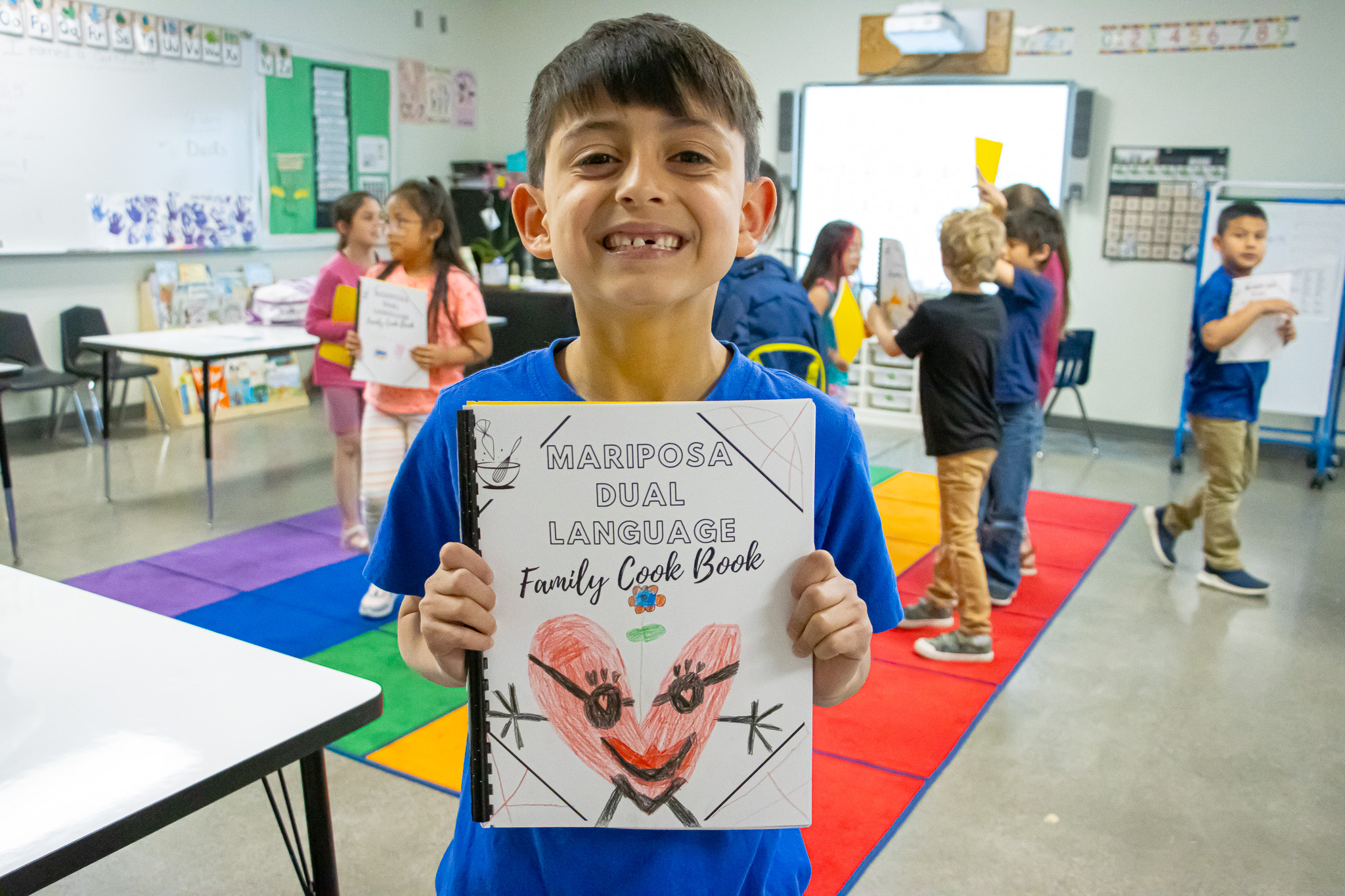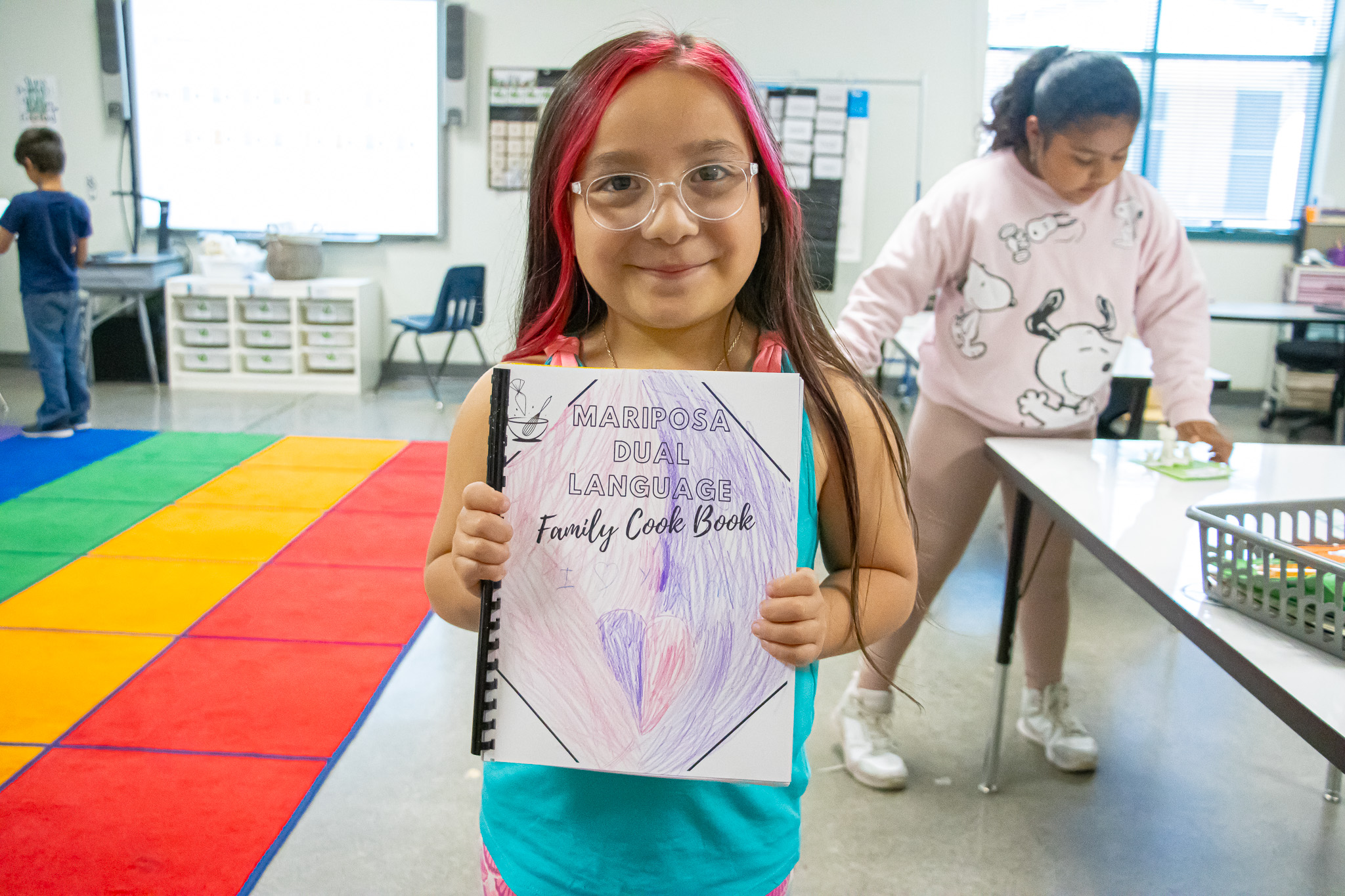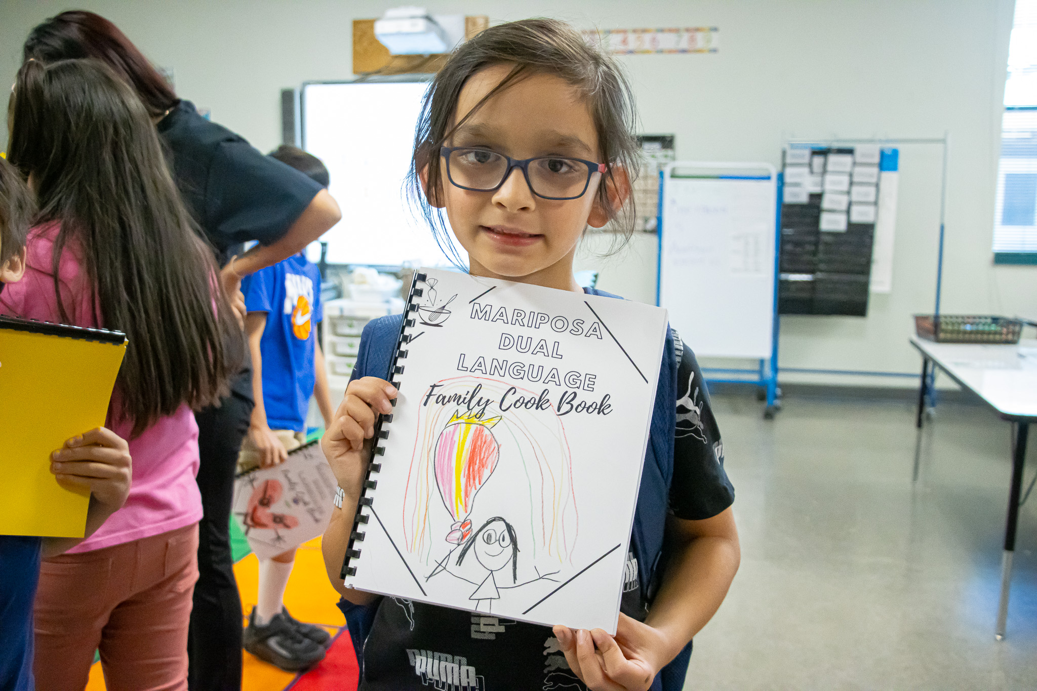 Galan had a lot of help in this project from a volunteer and their art teacher, Marty Neill. She was also assisted by Yesenia Avalos, a Mariposa Educational Assistant, who worked with Galan to carefully translate each recipe either from English to Spanish or vice versa. This ensured that every family could enjoy each recipe in their preferred language.