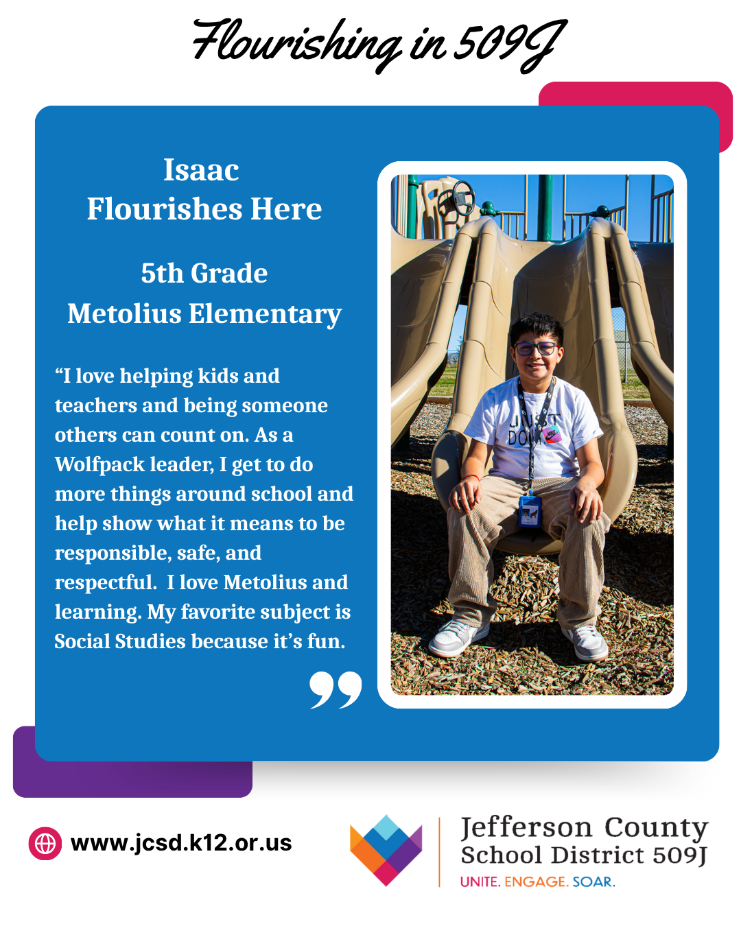 The next student we’re highlighting is Isaac Cordova! He’s a 5th grader at Metolius Elementary.