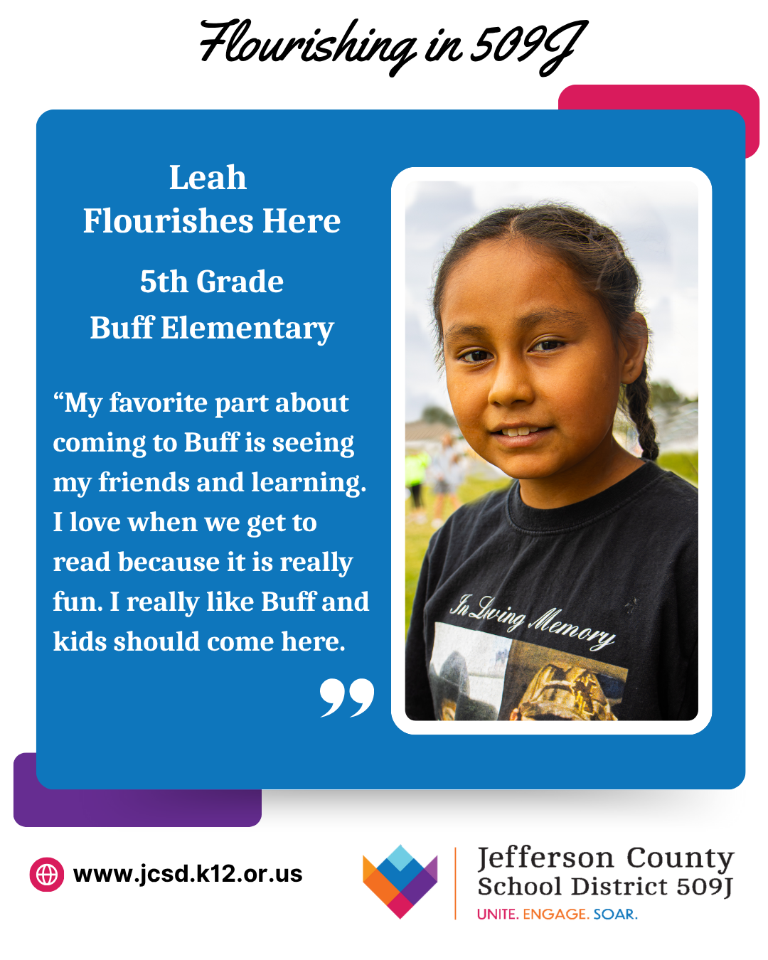 The next student we’re highlighting is Leah Le’Claire! She’s a 5th grader at Buff Elementary.
