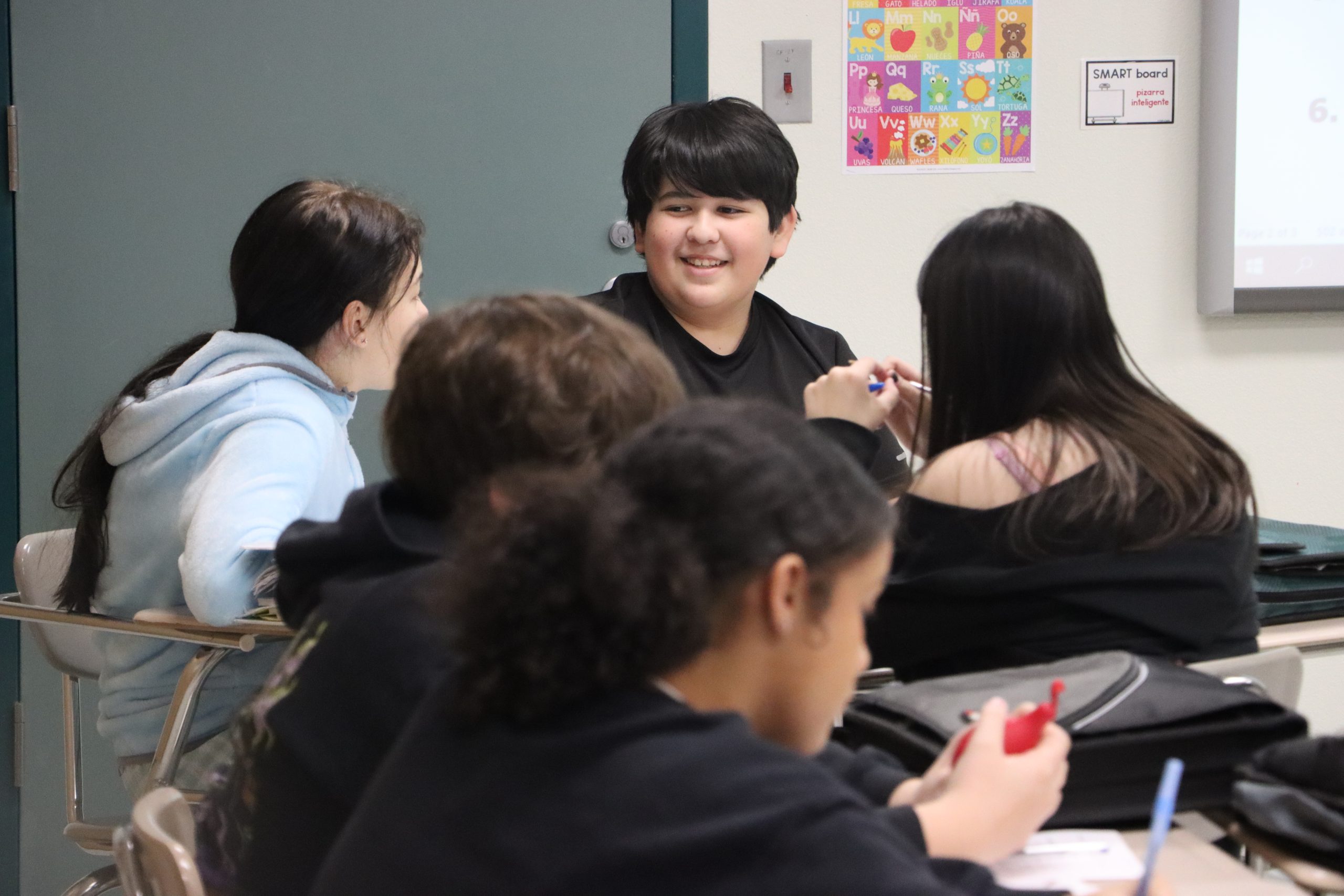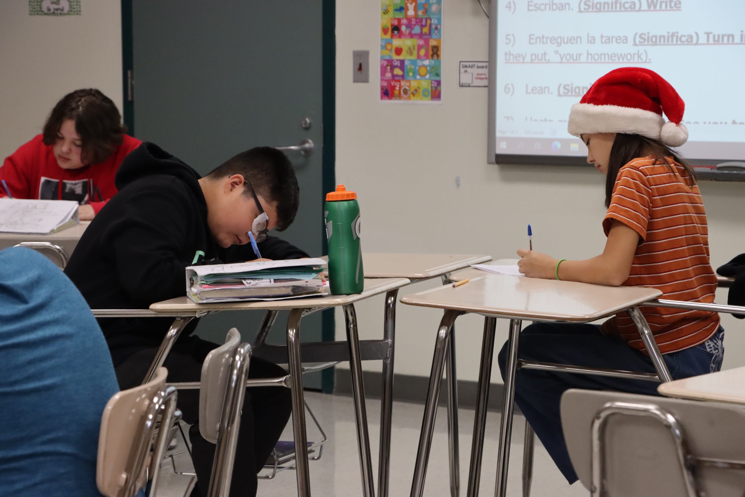 Zoey is in seventh grade and started taking the class because she thought it would be interesting to learn a new language. She had no experience speaking Spanish before the class but is working towards learning as much as she can before school gets out.