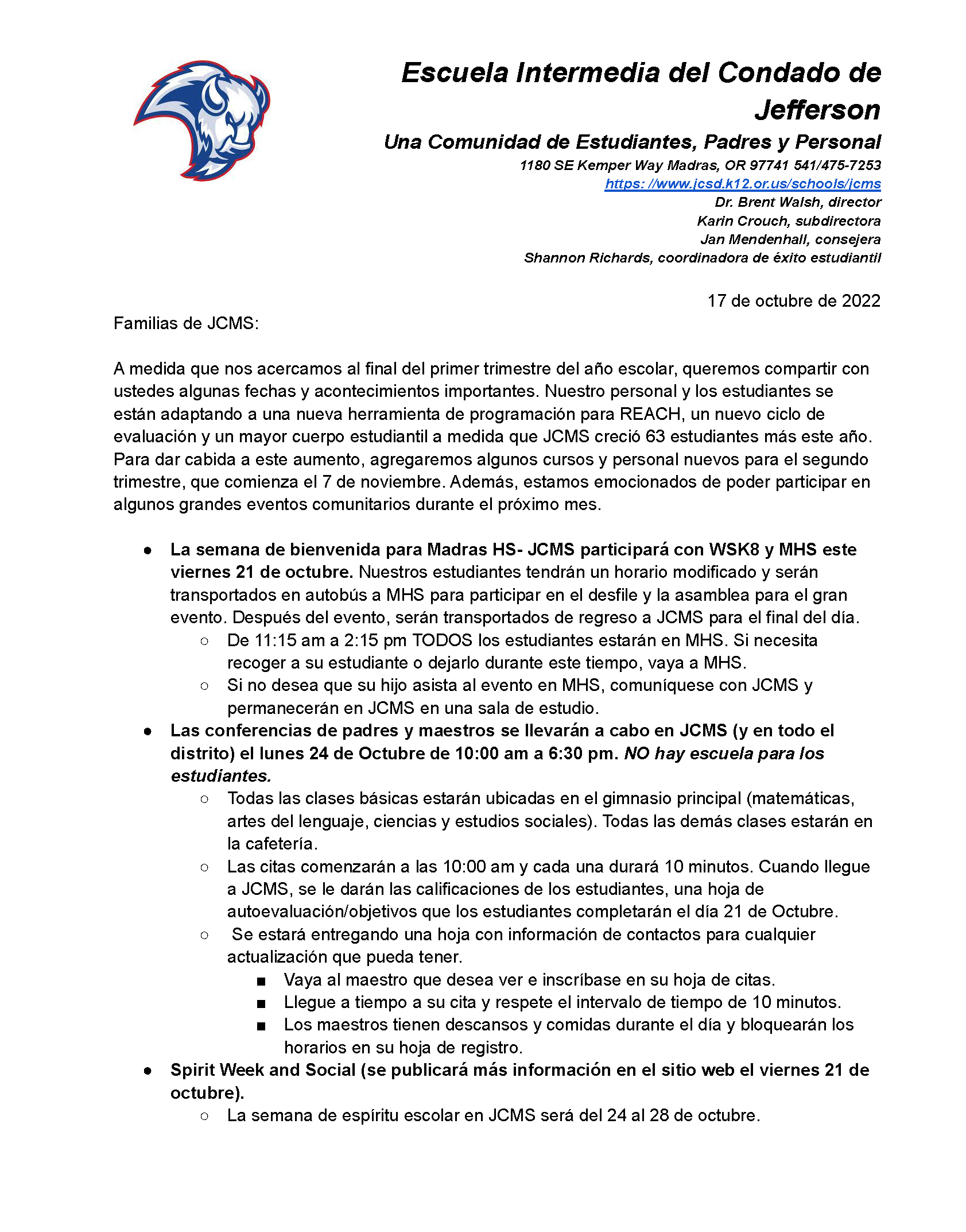 JCMS October Parent Letter English Click the letter to download/preview Spanish Haga clic para descargar/obtener una vista previa de la carta completa