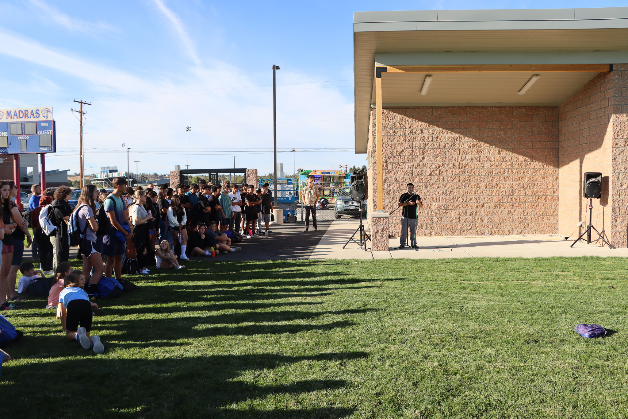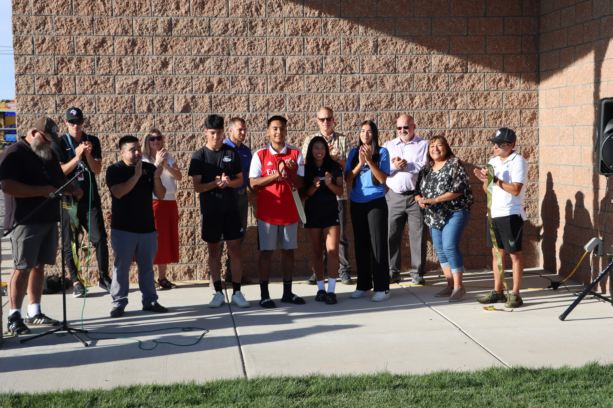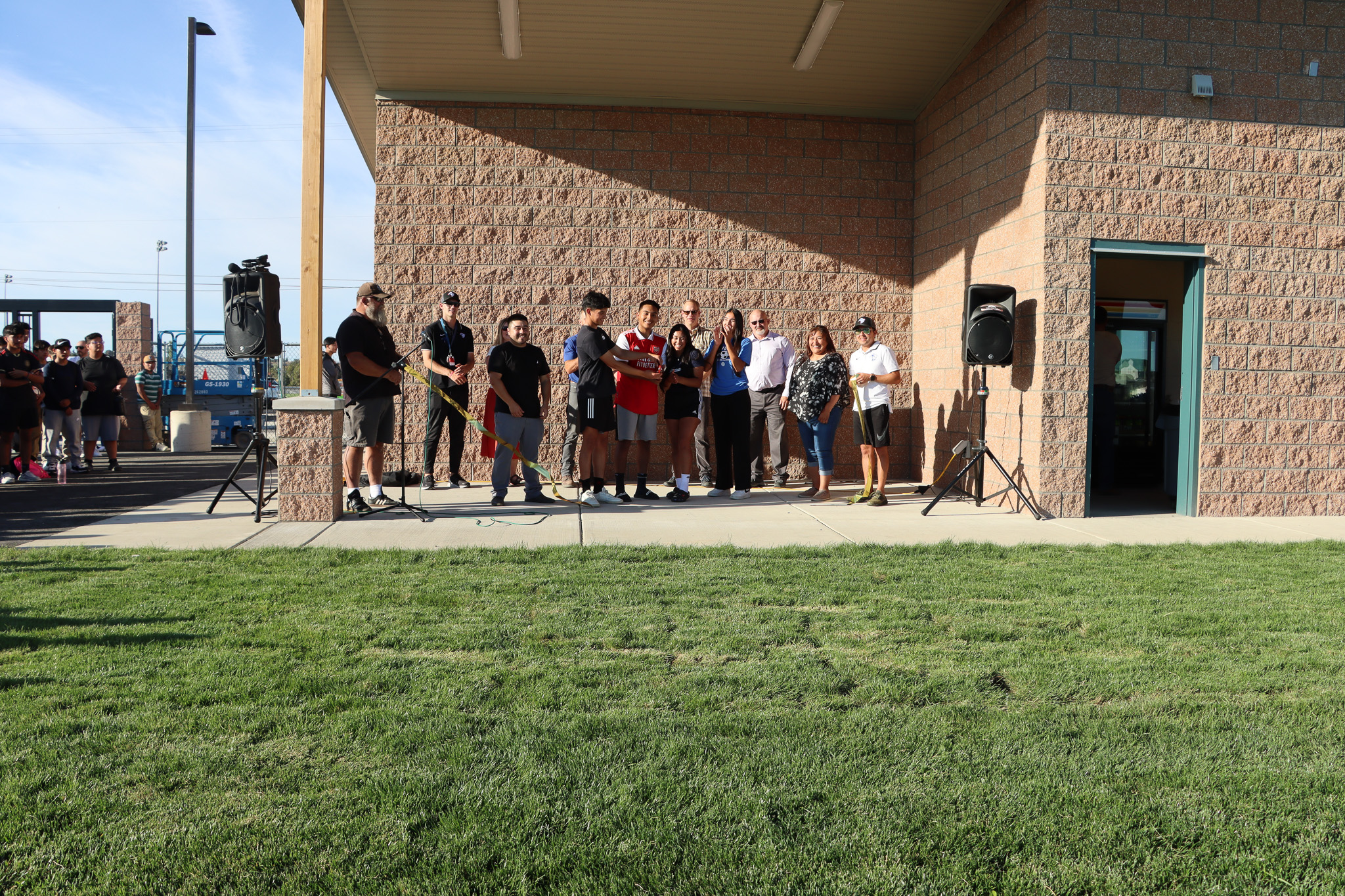 Four speakers delivered inspiring speeches. Superintendent Jay Mathisen and board member Laurie Danzuka offered their unique perspective on the impact of this soccer complex on our students and the soccer community in Jefferson County. Two Madras High alumni, Erika Olivera and Imer Gutierrez, spoke from the heart about how playing soccer at Madras High shaped their character. They emphasized the life skills acquired like perseverance and how that has helped shape their life post high school.