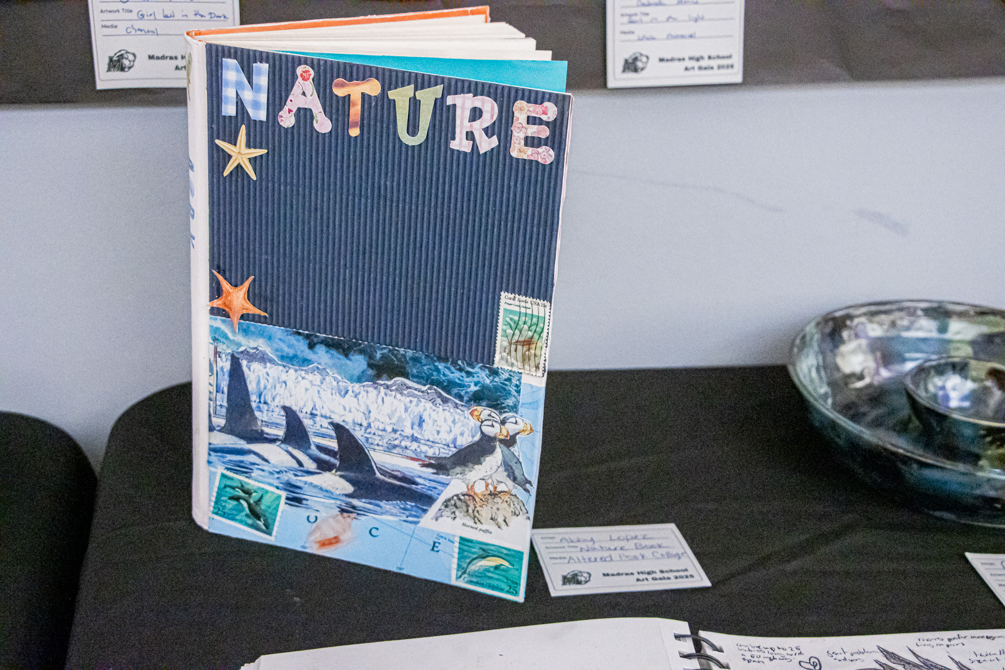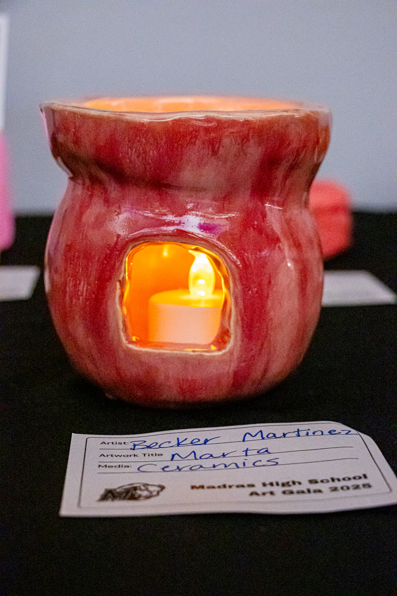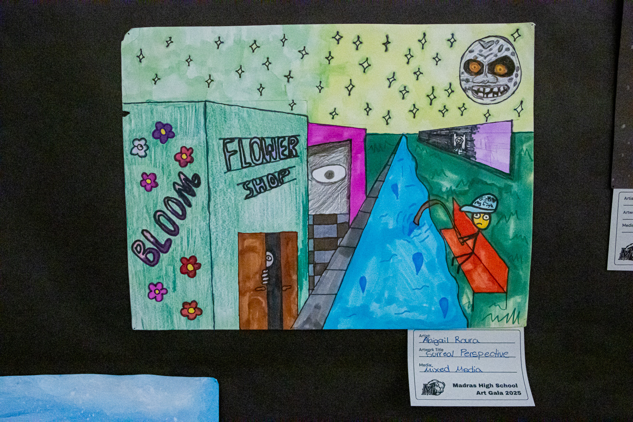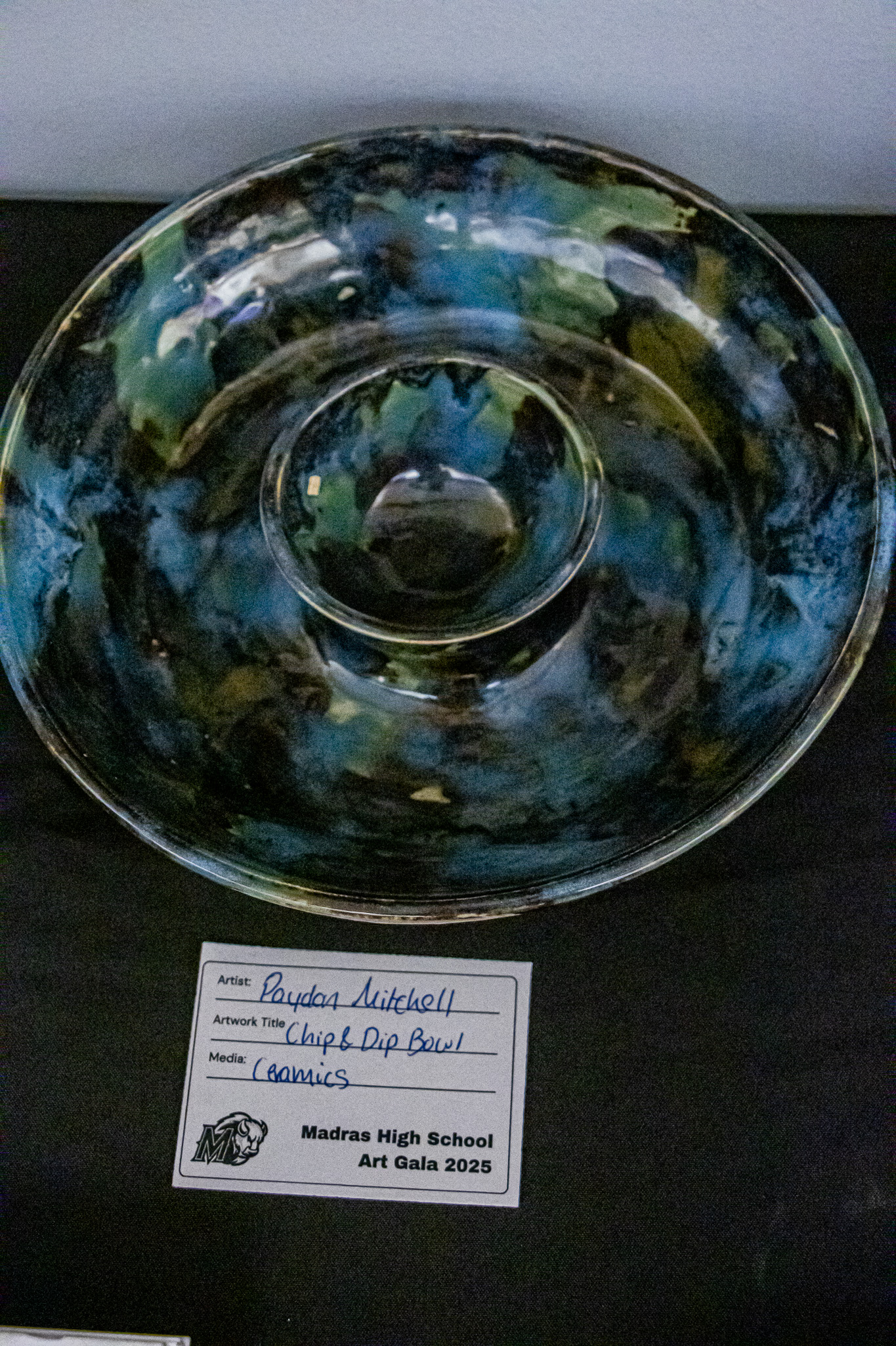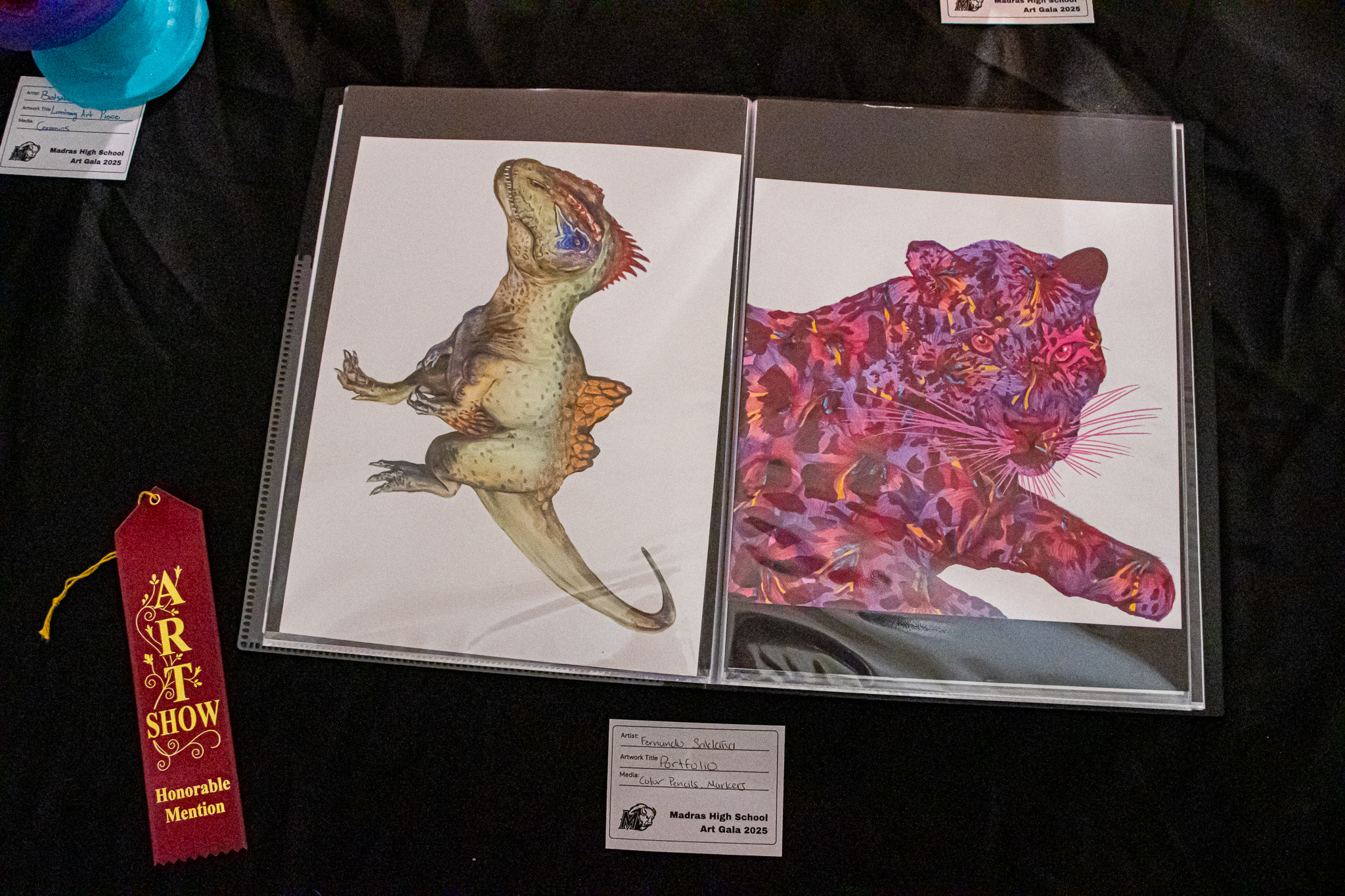 For the first time in its history, the commons of Madras High School was transformed into a vibrant art gallery for our inaugural Art Gala. Student artwork covered the walls and tables inside the commons. This included different mediums of art like ceramics, paintings, graphics, photography, and more.