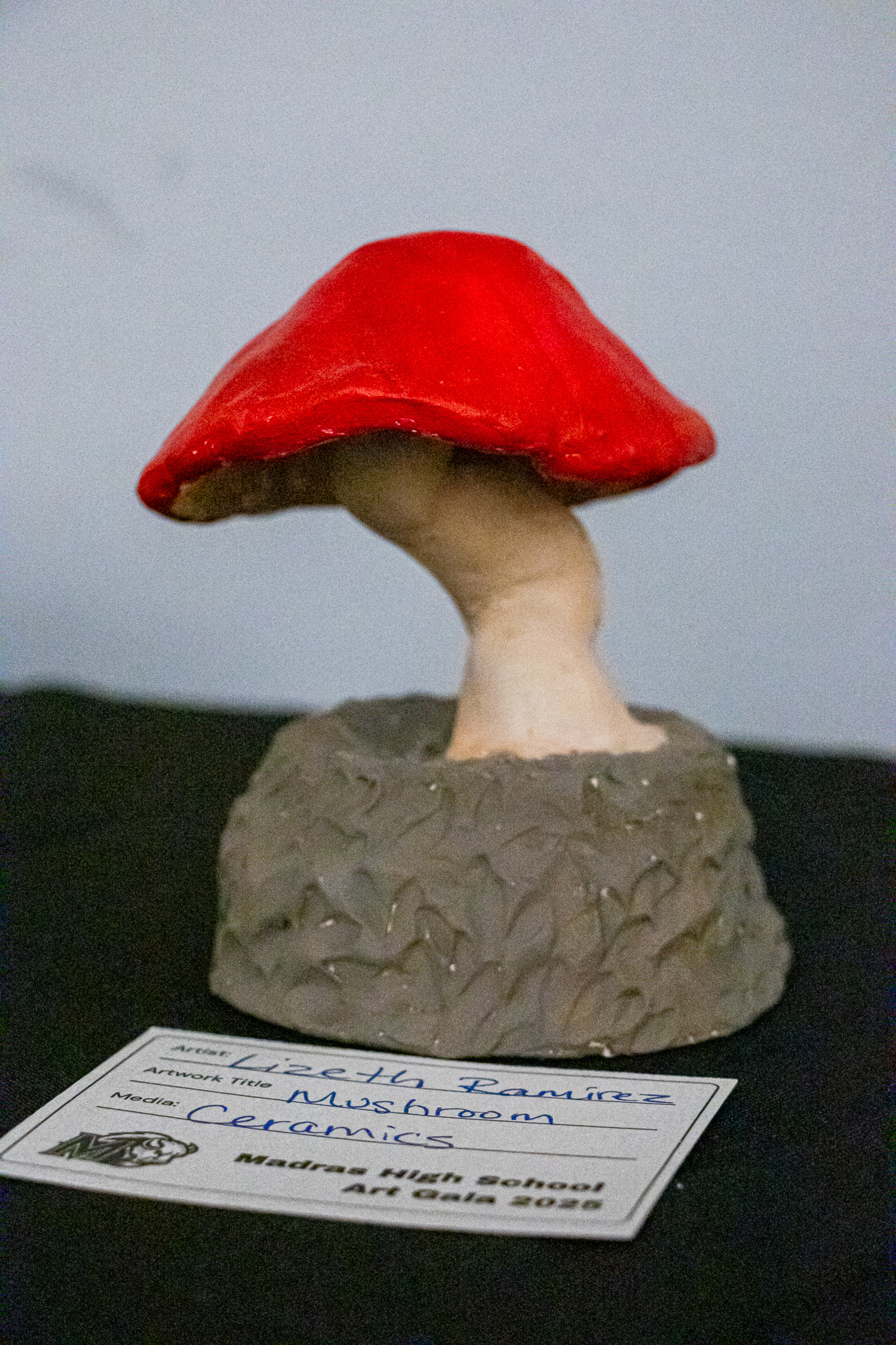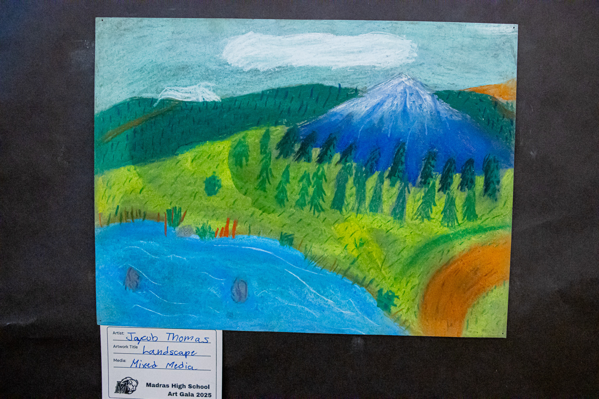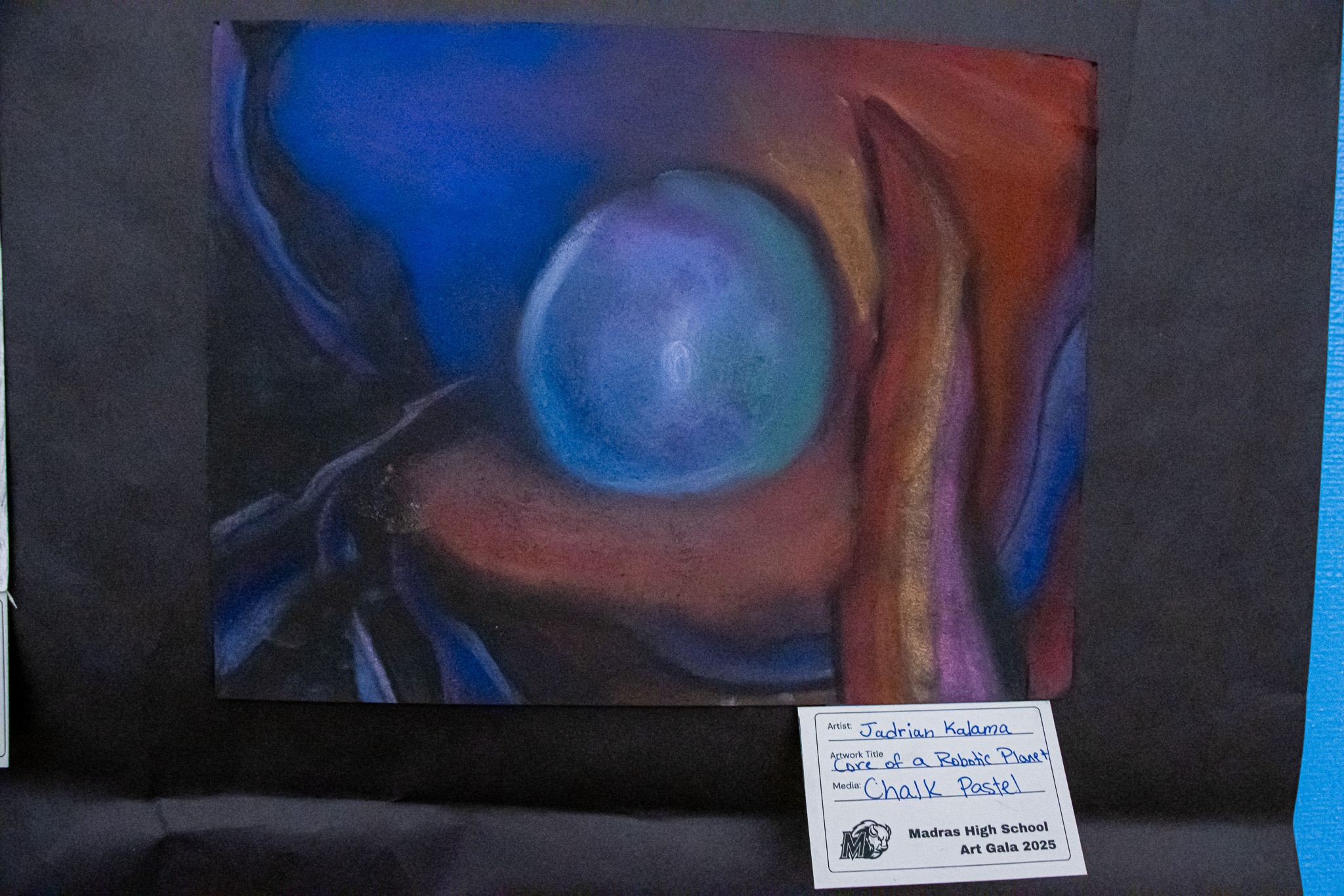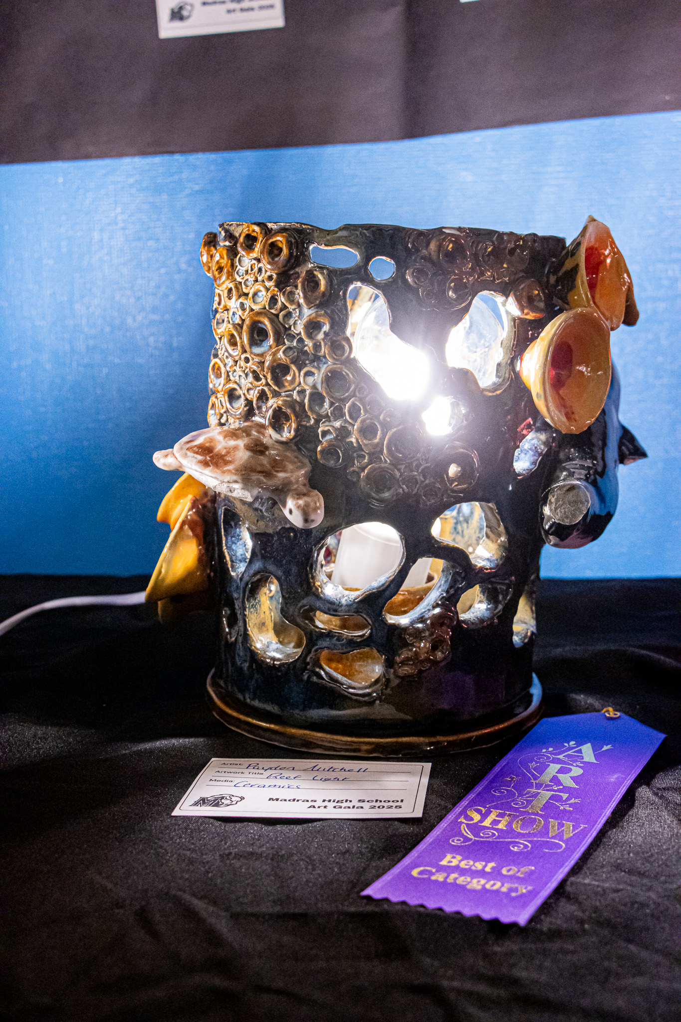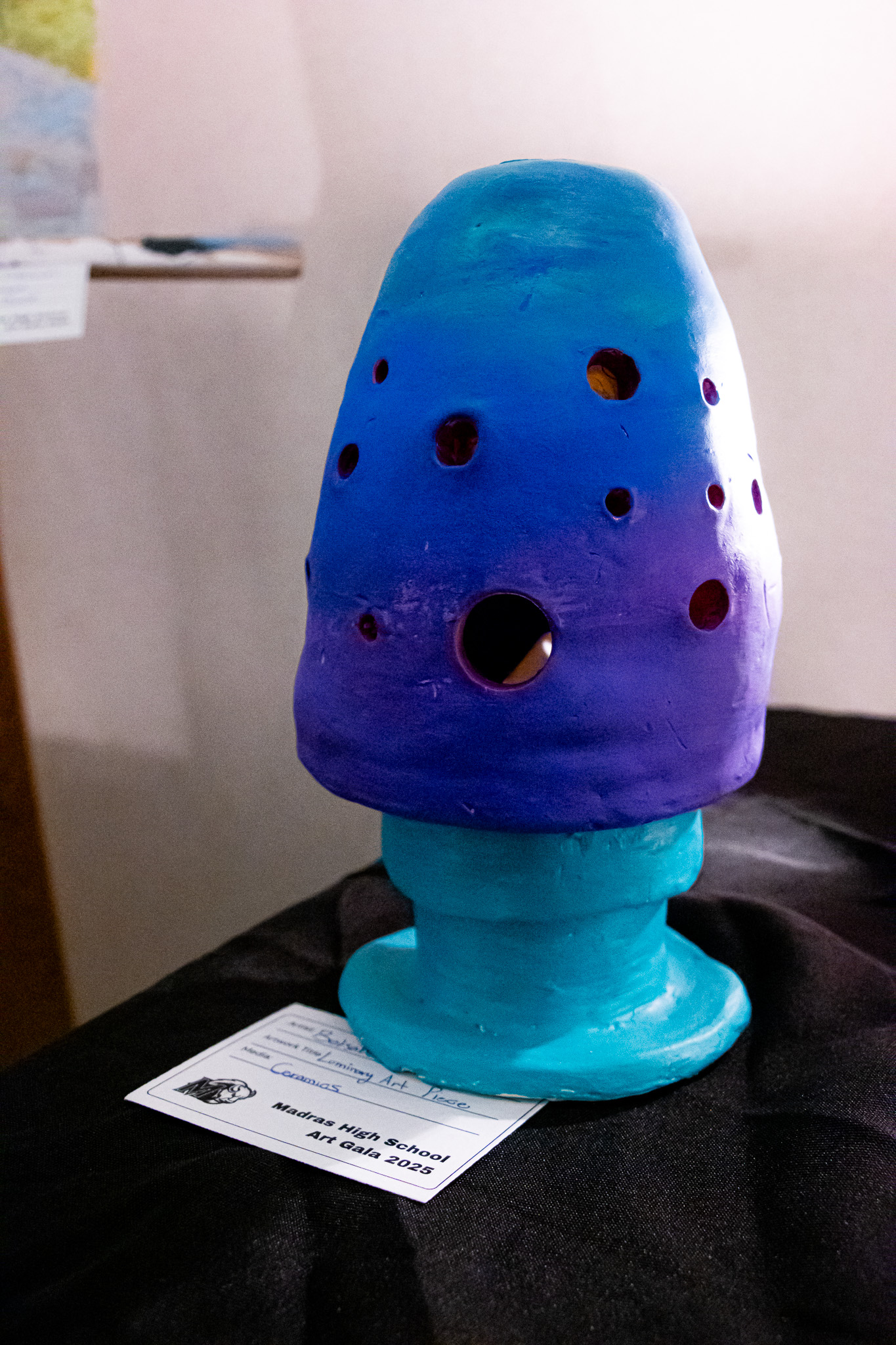 For the first time in its history, the commons of Madras High School was transformed into a vibrant art gallery for our inaugural Art Gala. Student artwork covered the walls and tables inside the commons. This included different mediums of art like ceramics, paintings, graphics, photography, and more.