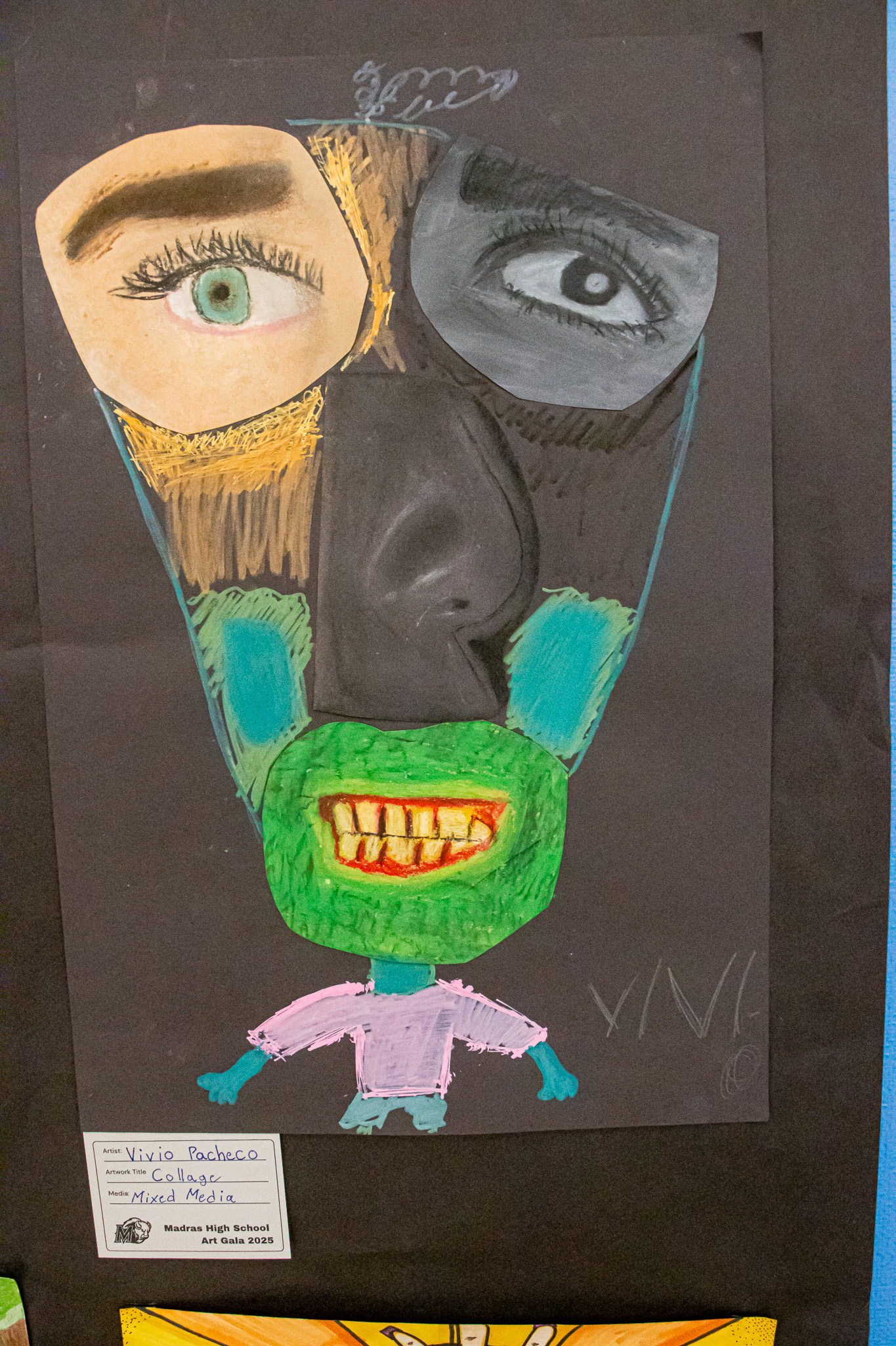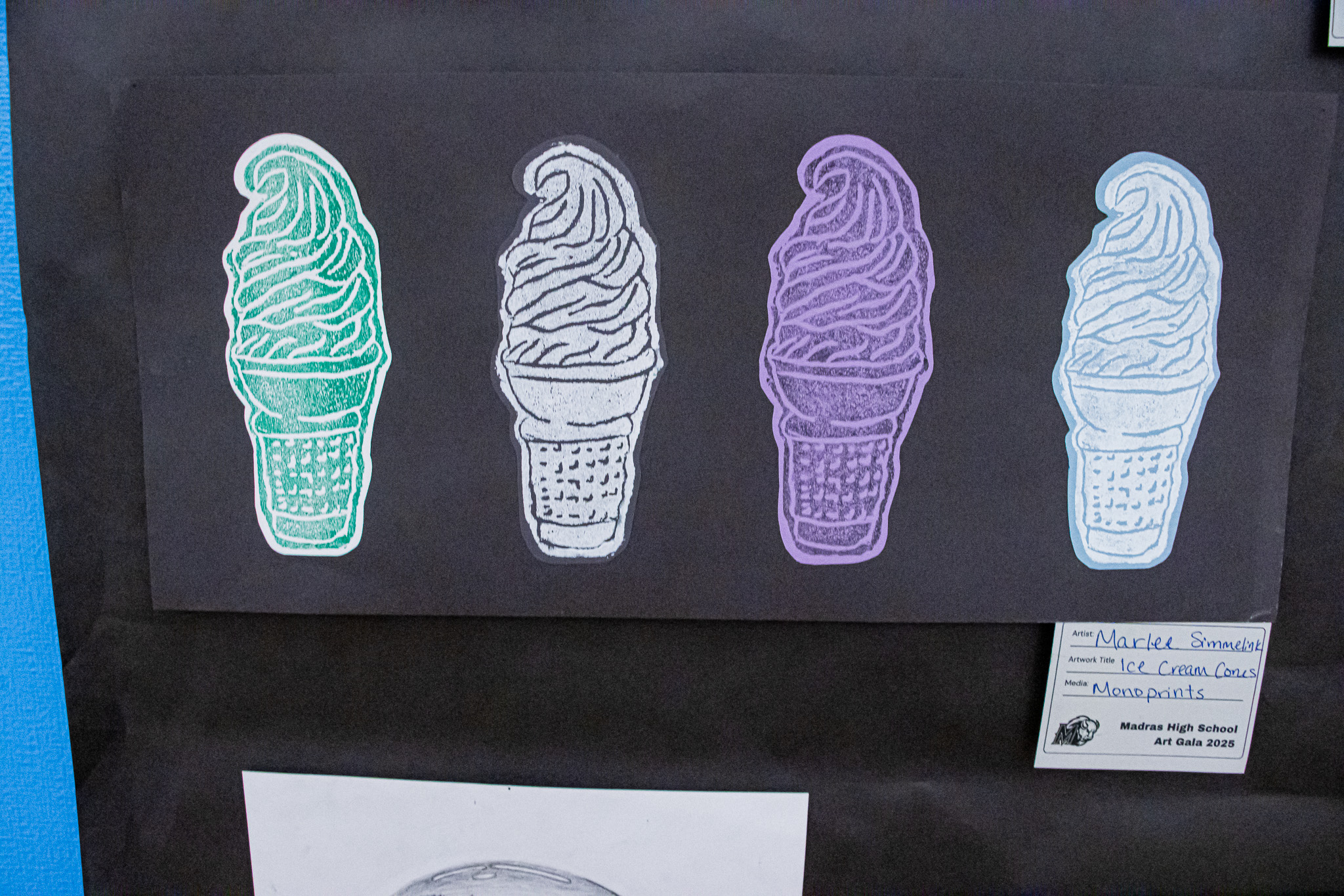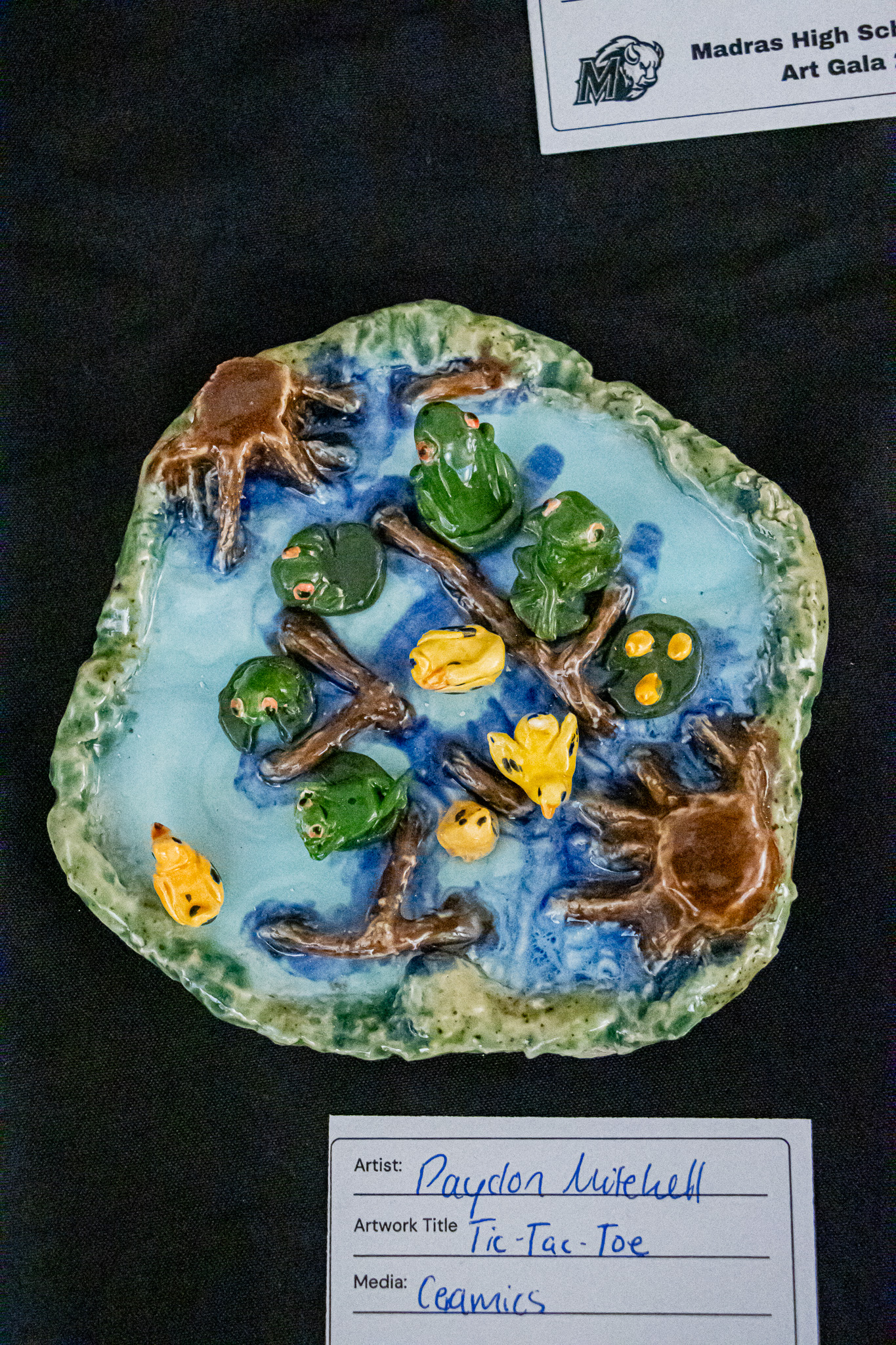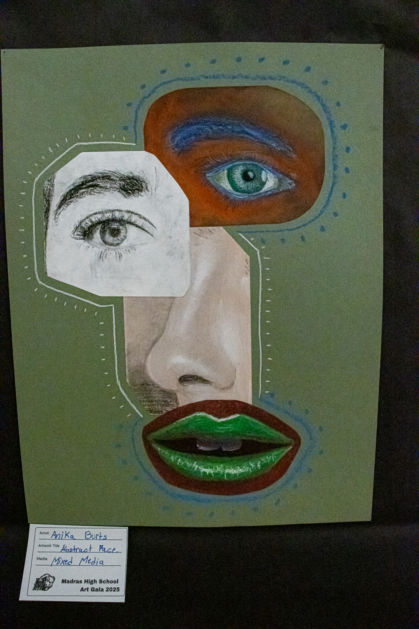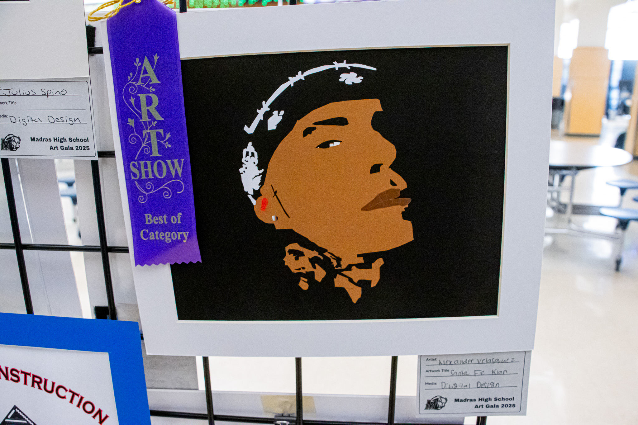 For the first time in its history, the commons of Madras High School was transformed into a vibrant art gallery for our inaugural Art Gala. Student artwork covered the walls and tables inside the commons. This included different mediums of art like ceramics, paintings, graphics, photography, and more.