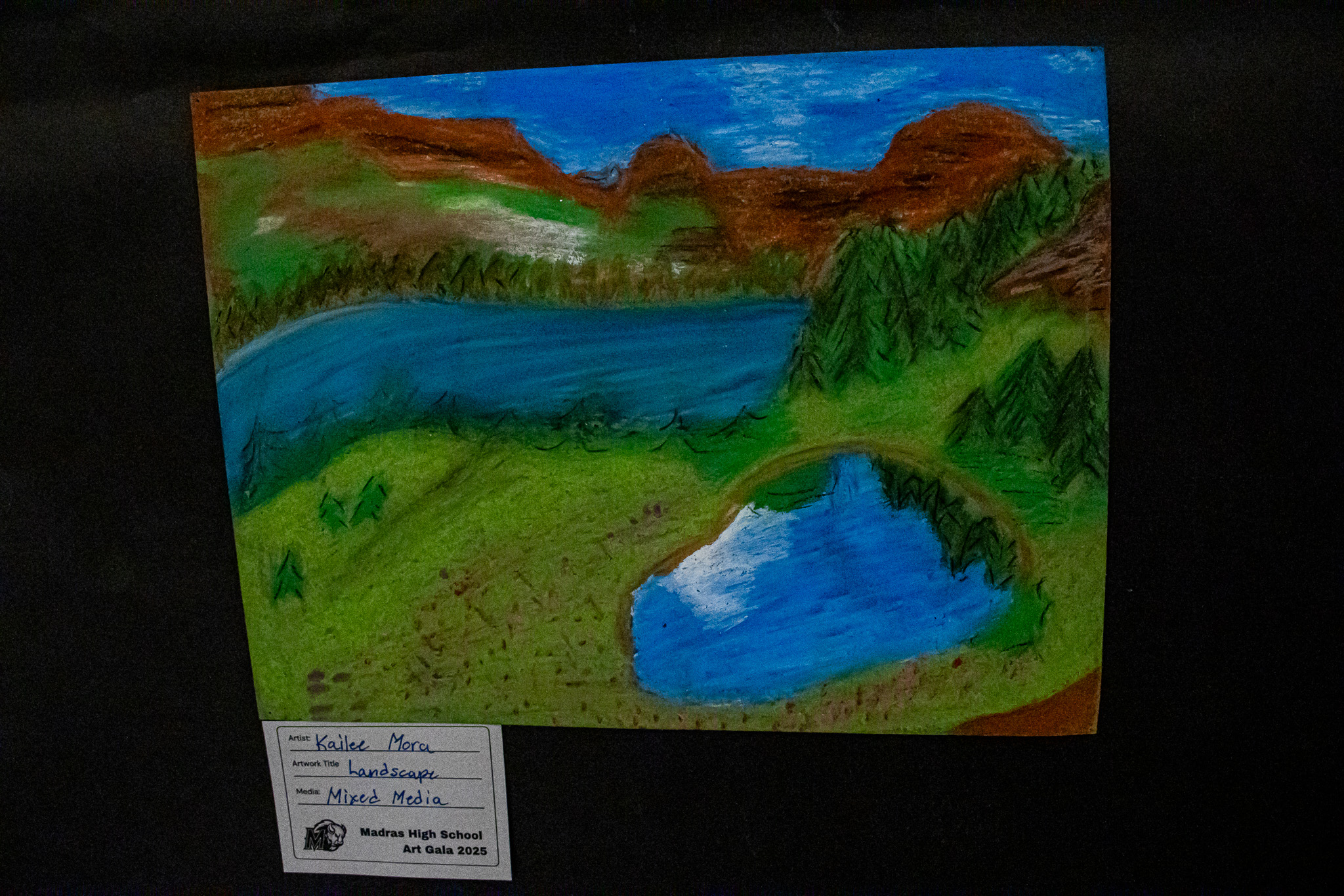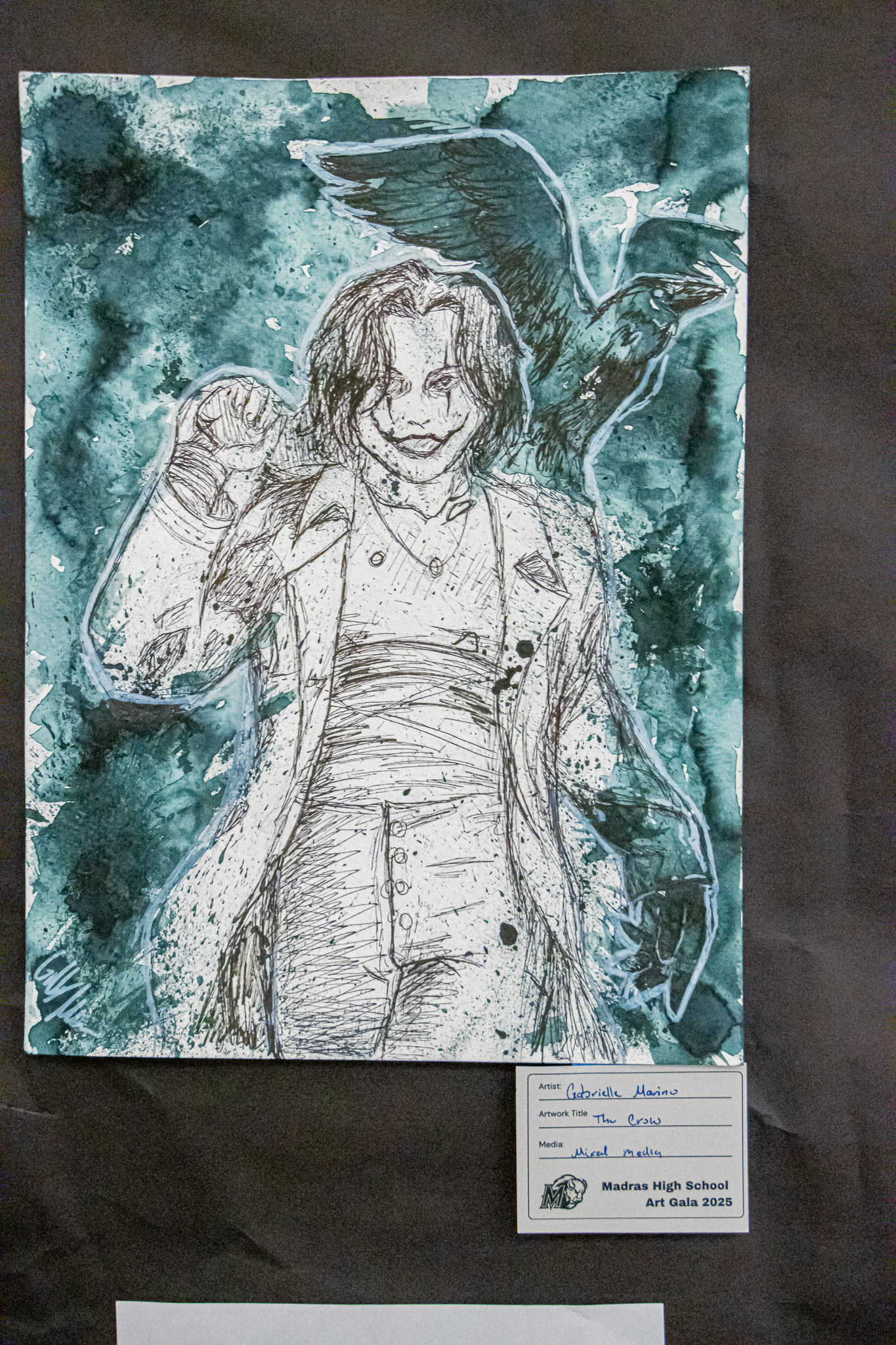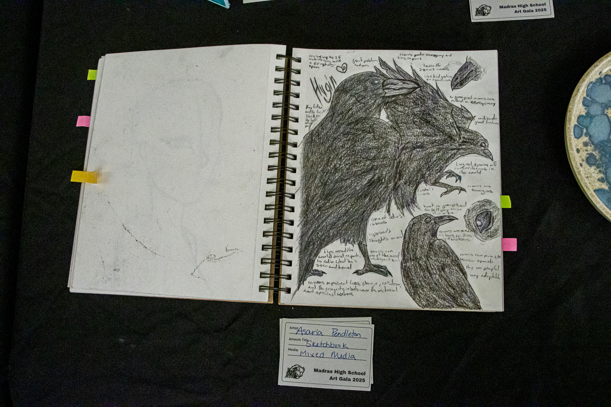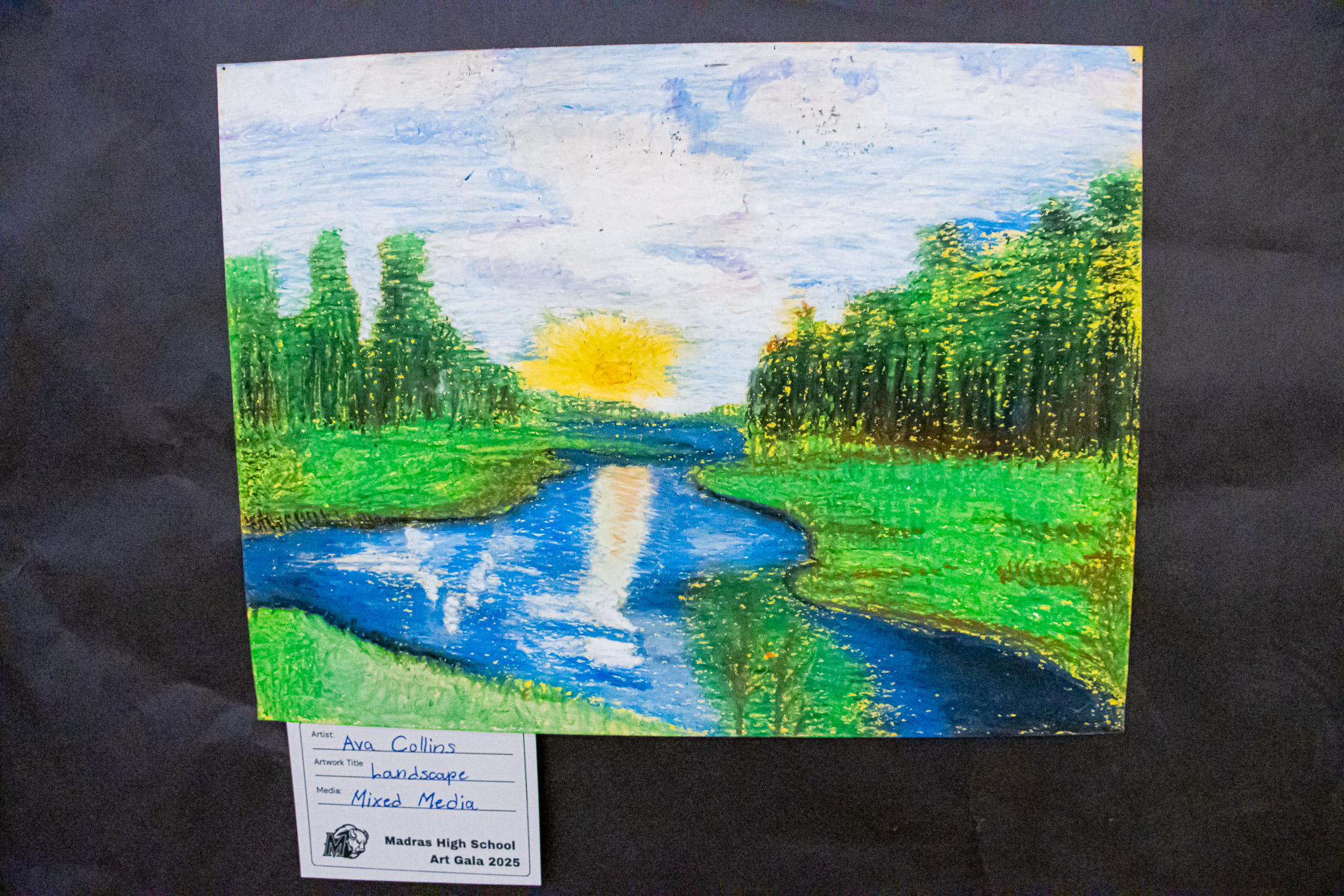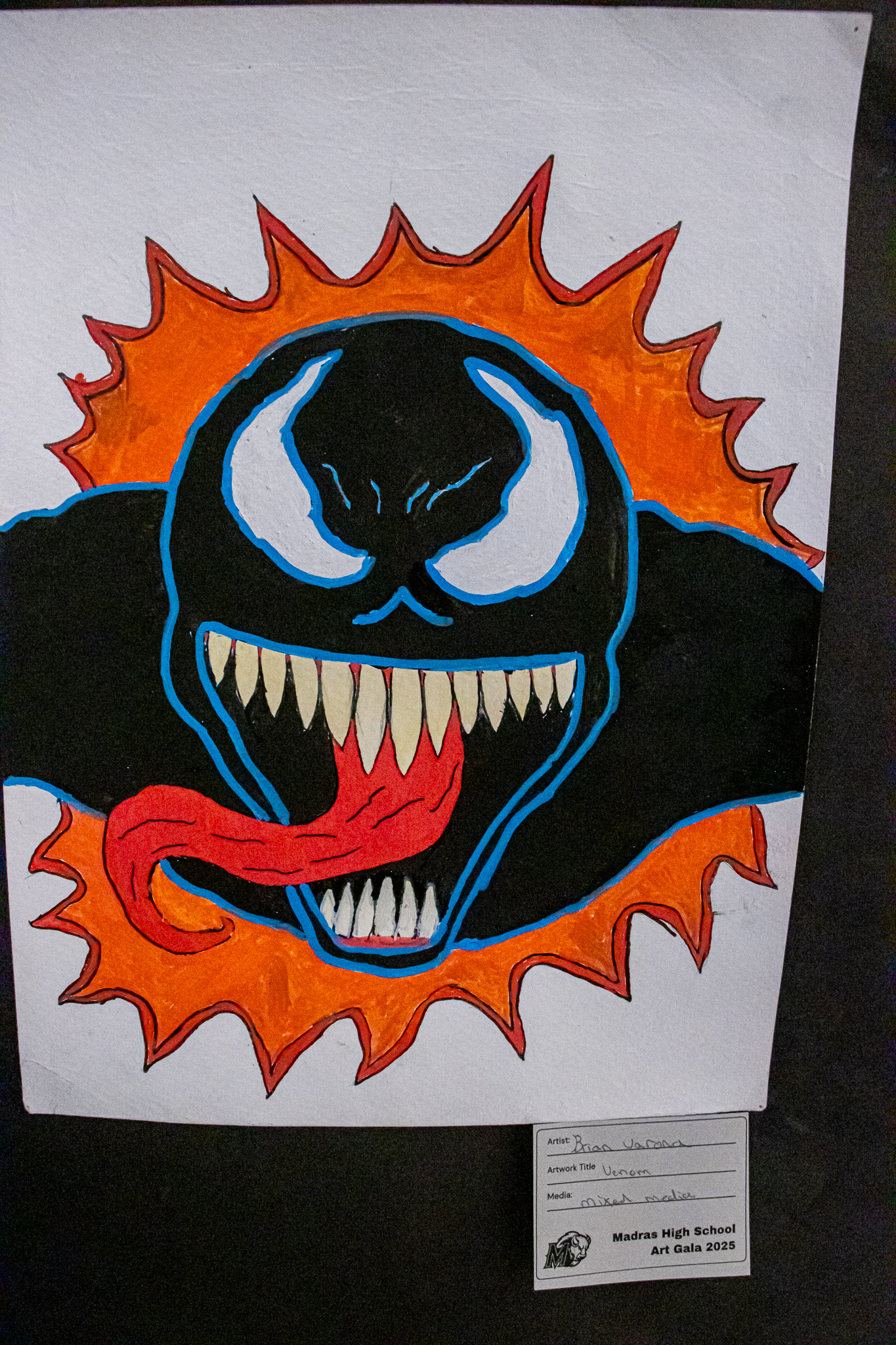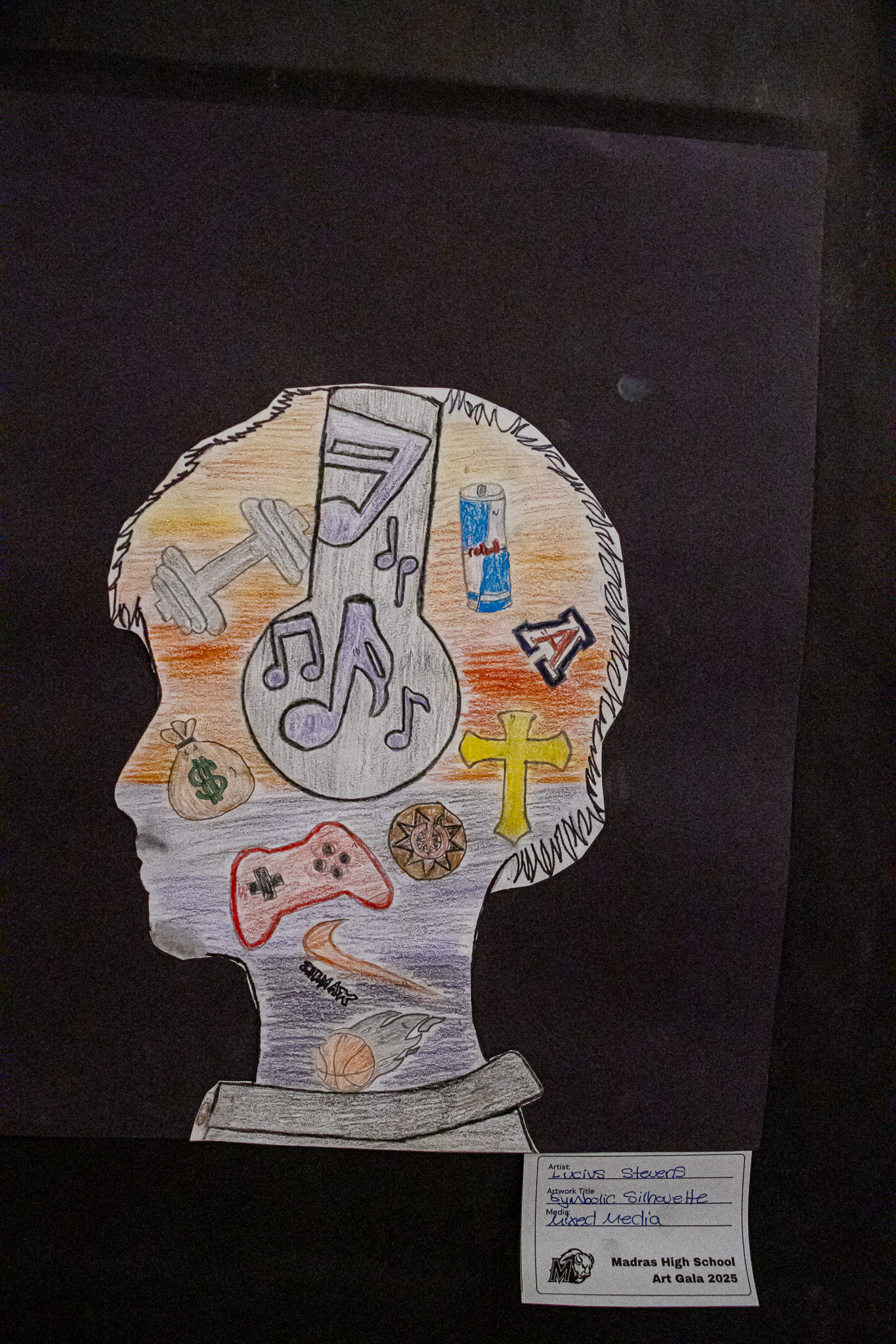 For the first time in its history, the commons of Madras High School was transformed into a vibrant art gallery for our inaugural Art Gala. Student artwork covered the walls and tables inside the commons. This included different mediums of art like ceramics, paintings, graphics, photography, and more.