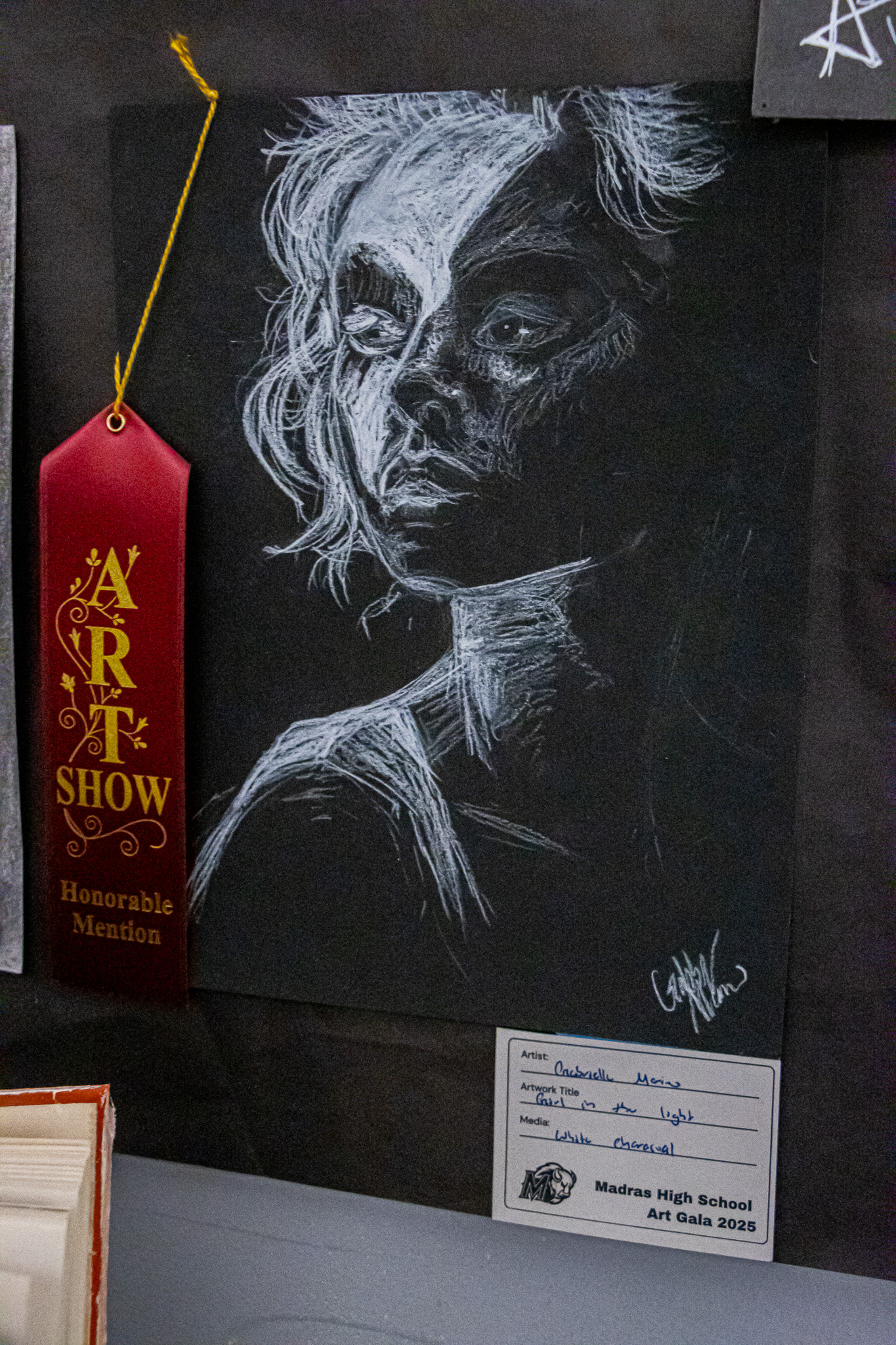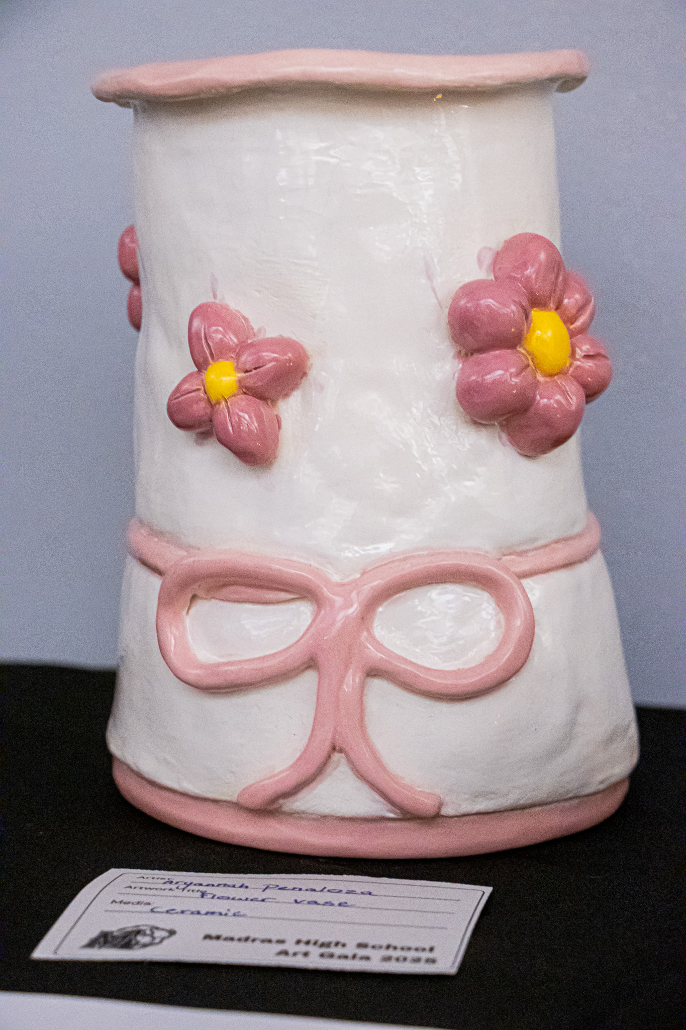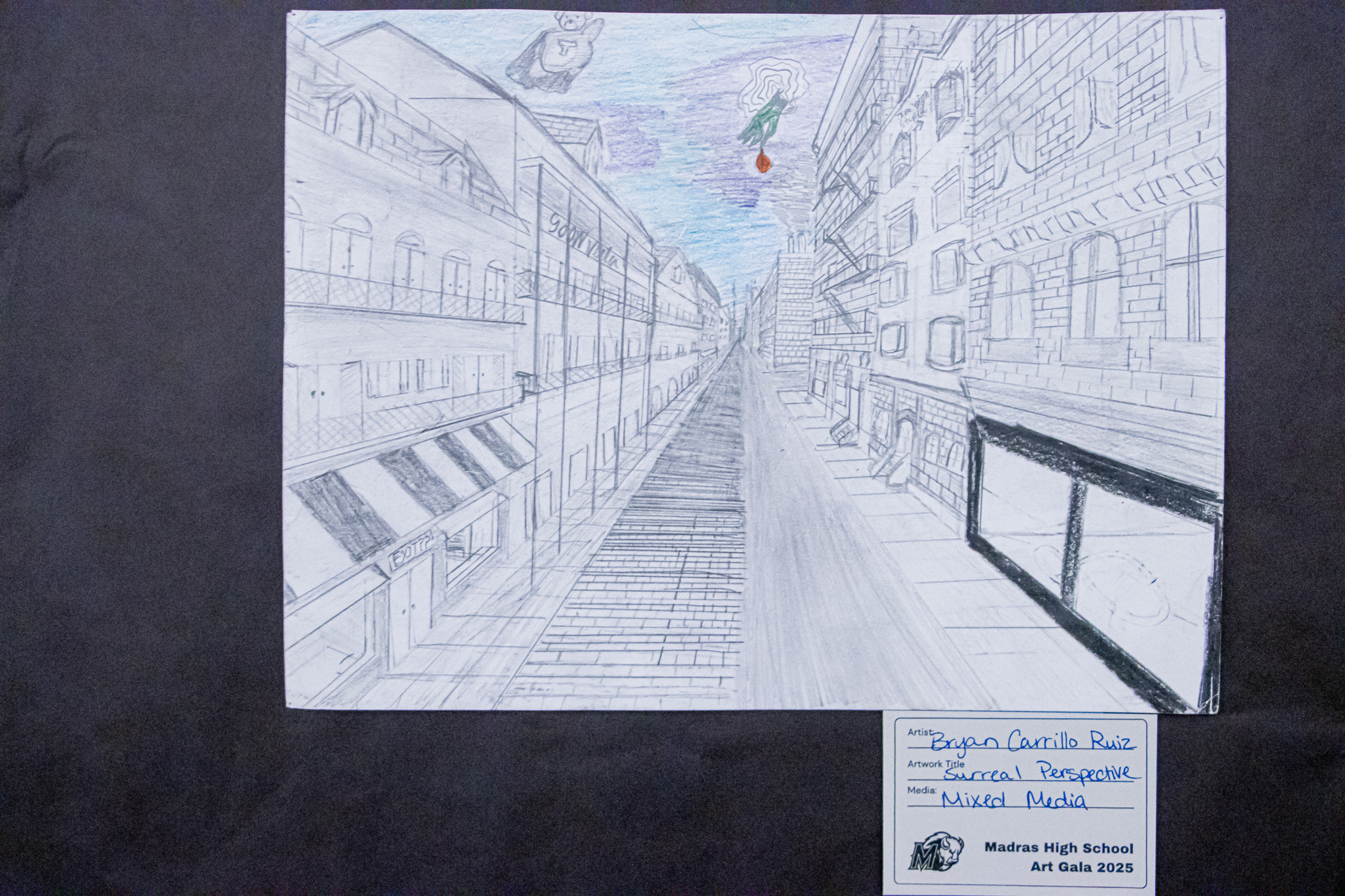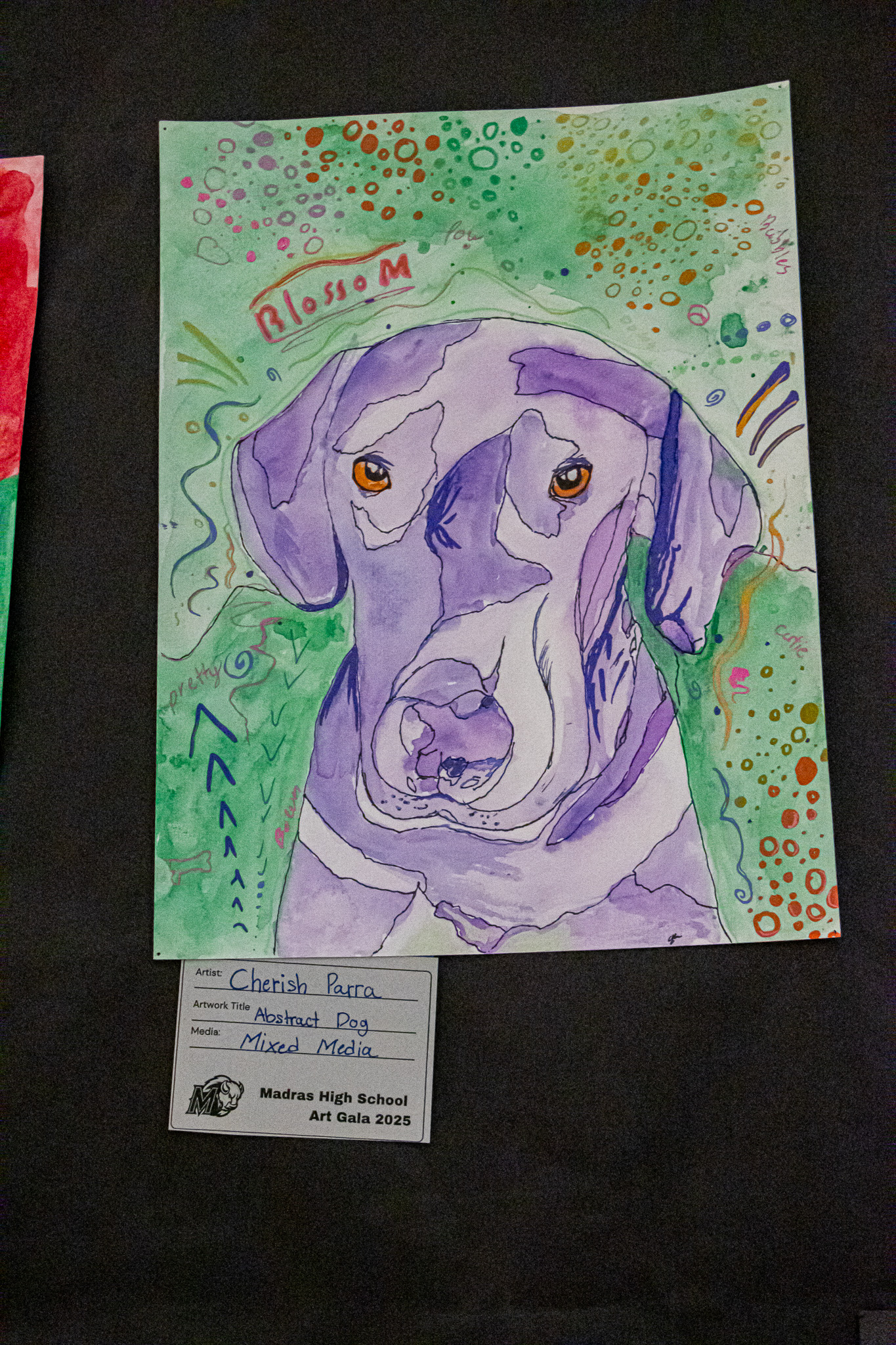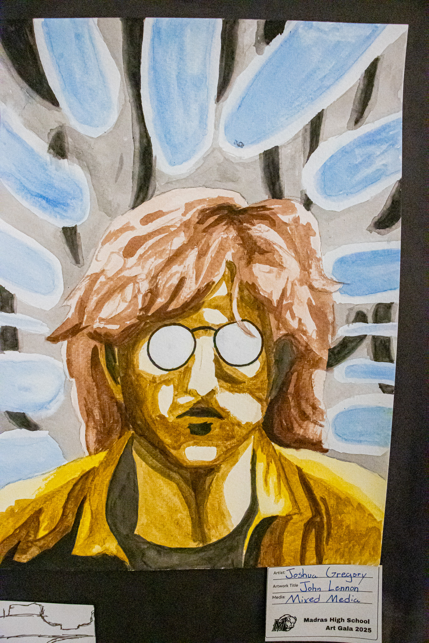 For the first time in its history, the commons of Madras High School was transformed into a vibrant art gallery for our inaugural Art Gala. Student artwork covered the walls and tables inside the commons. This included different mediums of art like ceramics, paintings, graphics, photography, and more.