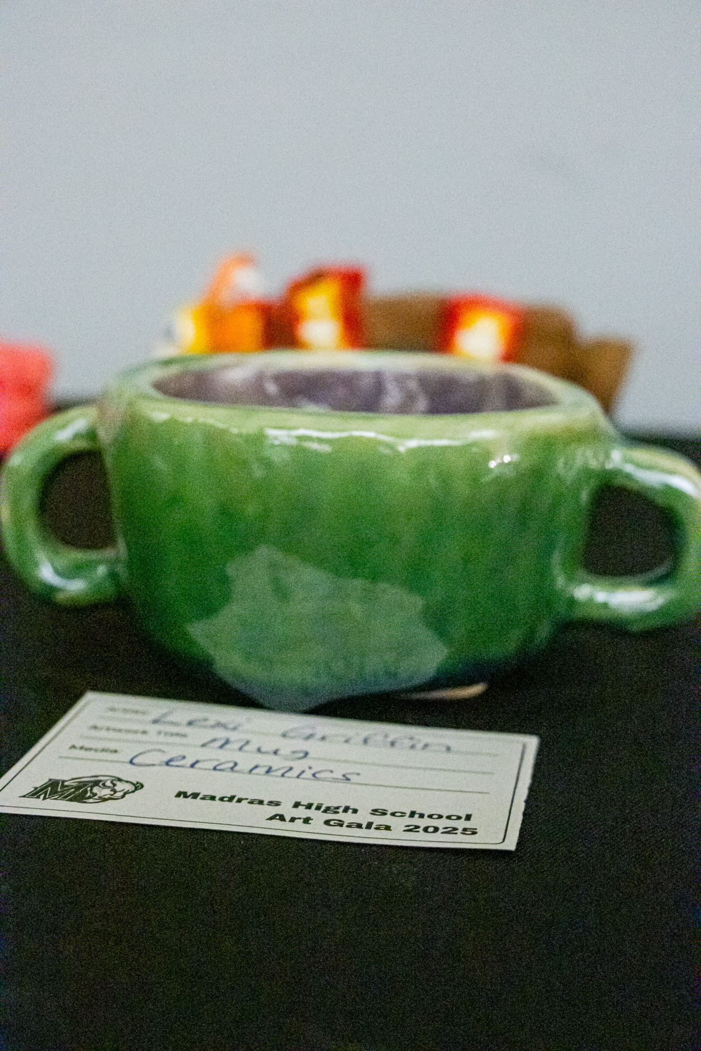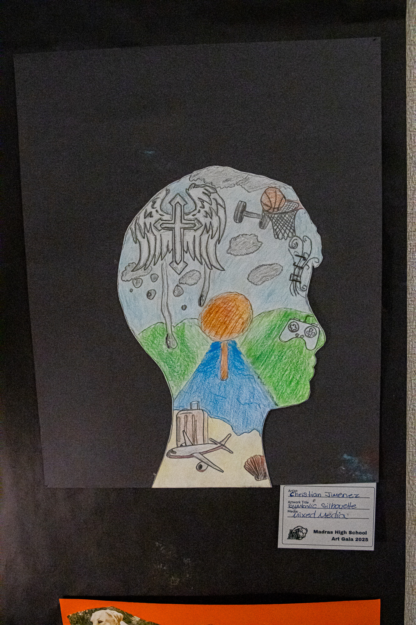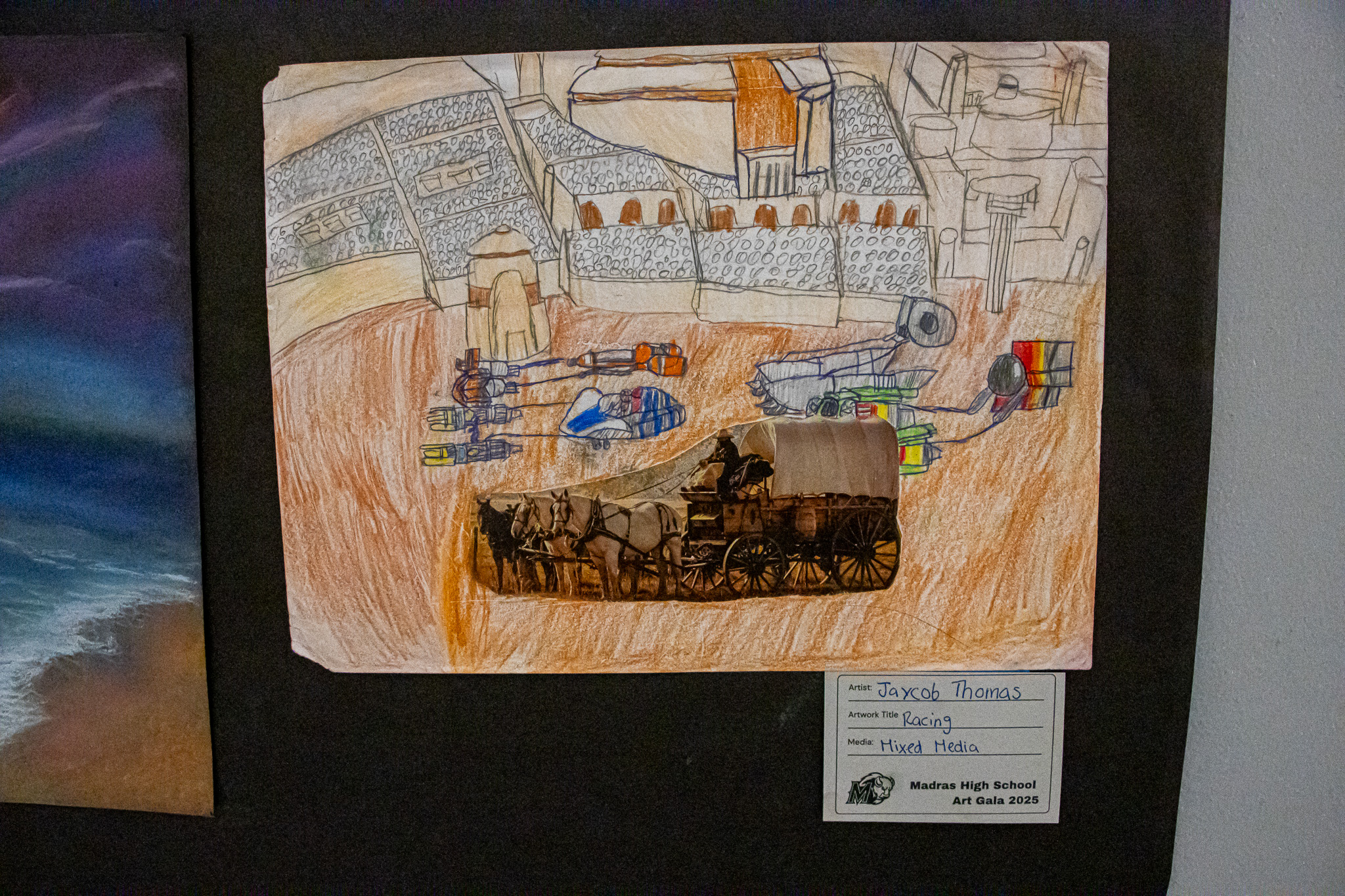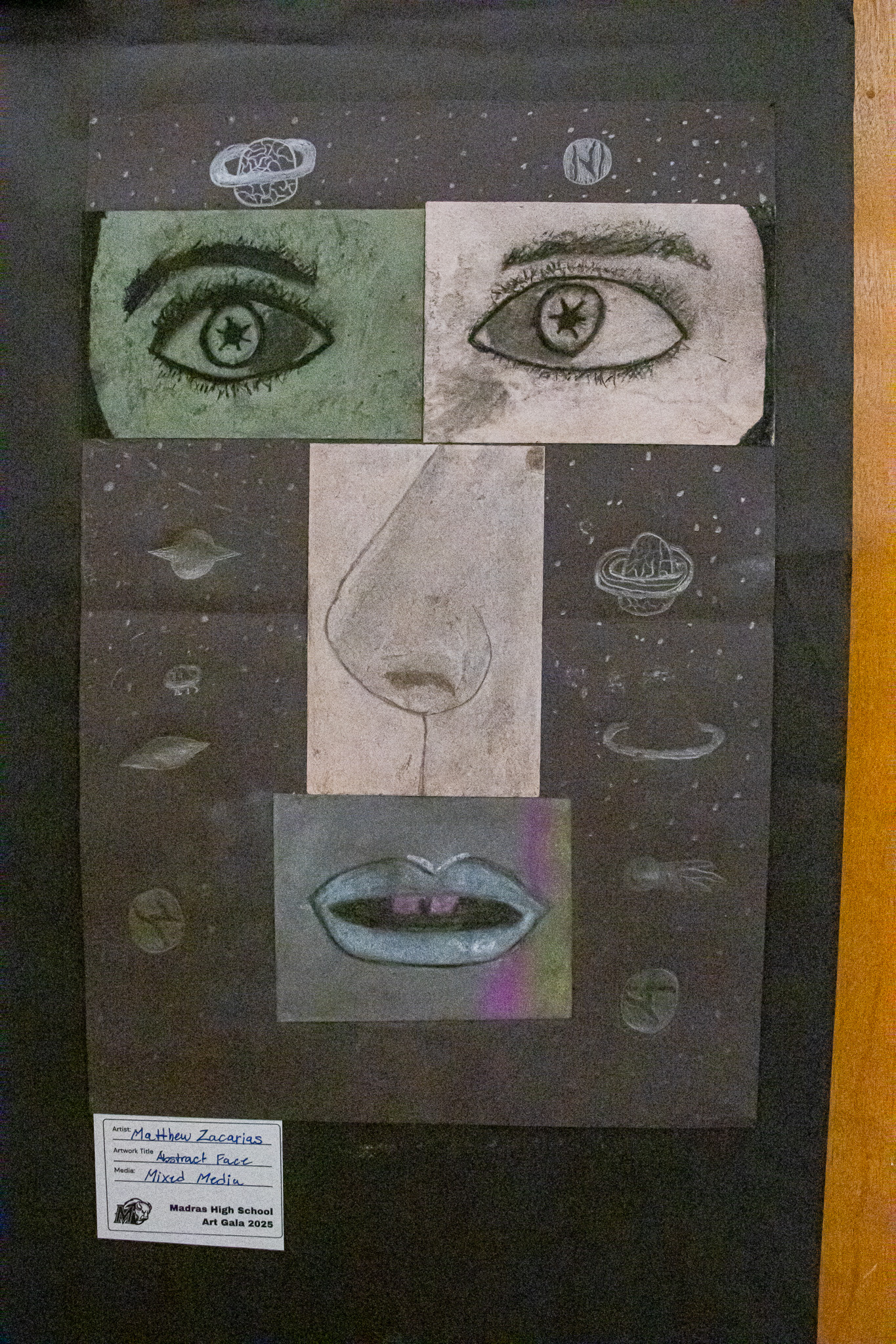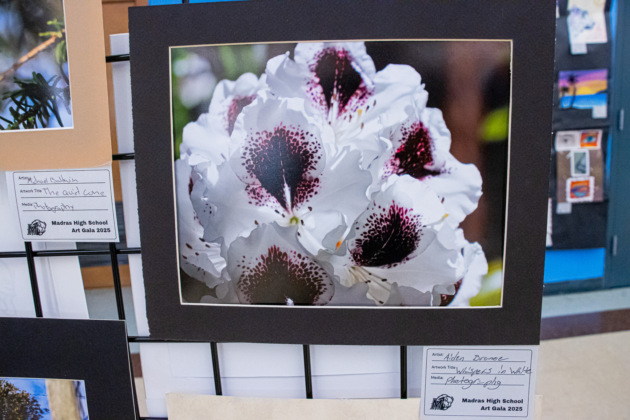 For the first time in its history, the commons of Madras High School was transformed into a vibrant art gallery for our inaugural Art Gala. Student artwork covered the walls and tables inside the commons. This included different mediums of art like ceramics, paintings, graphics, photography, and more.