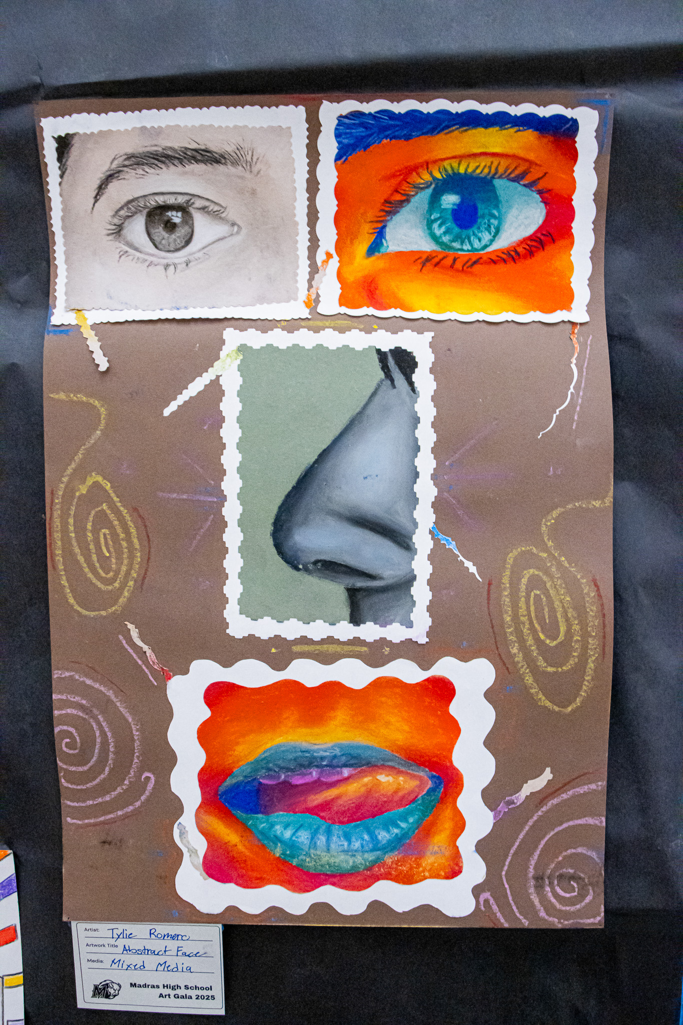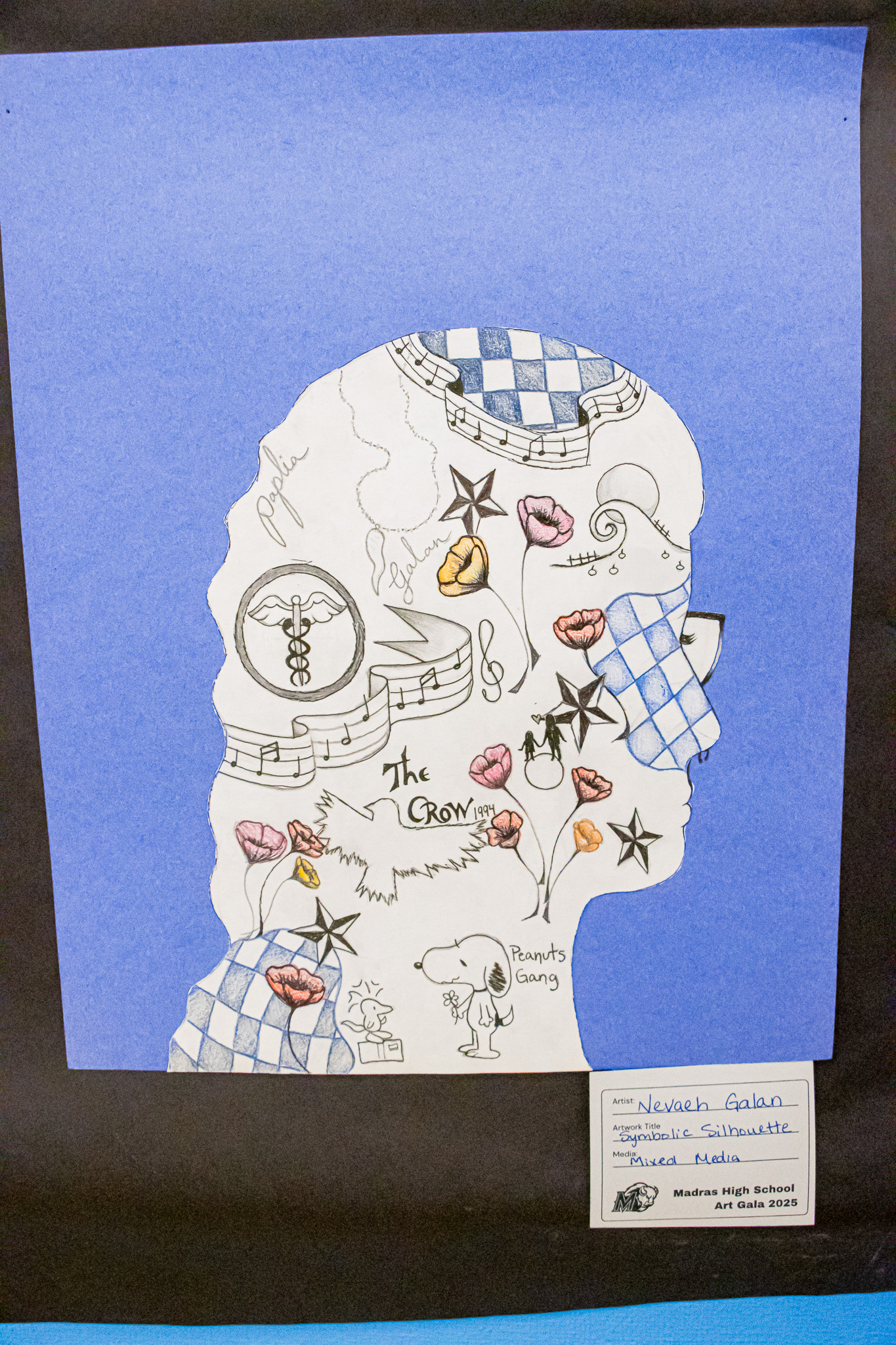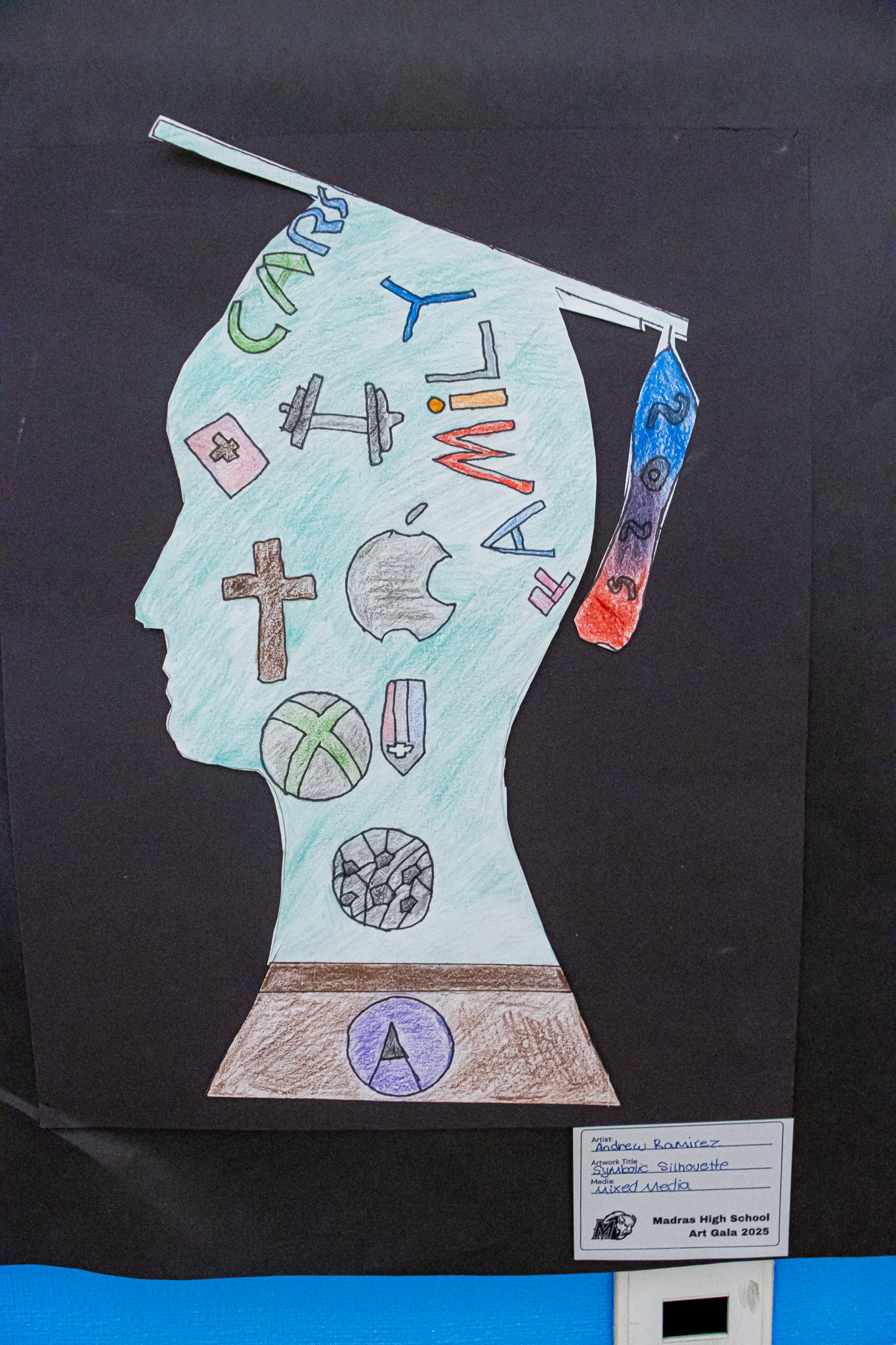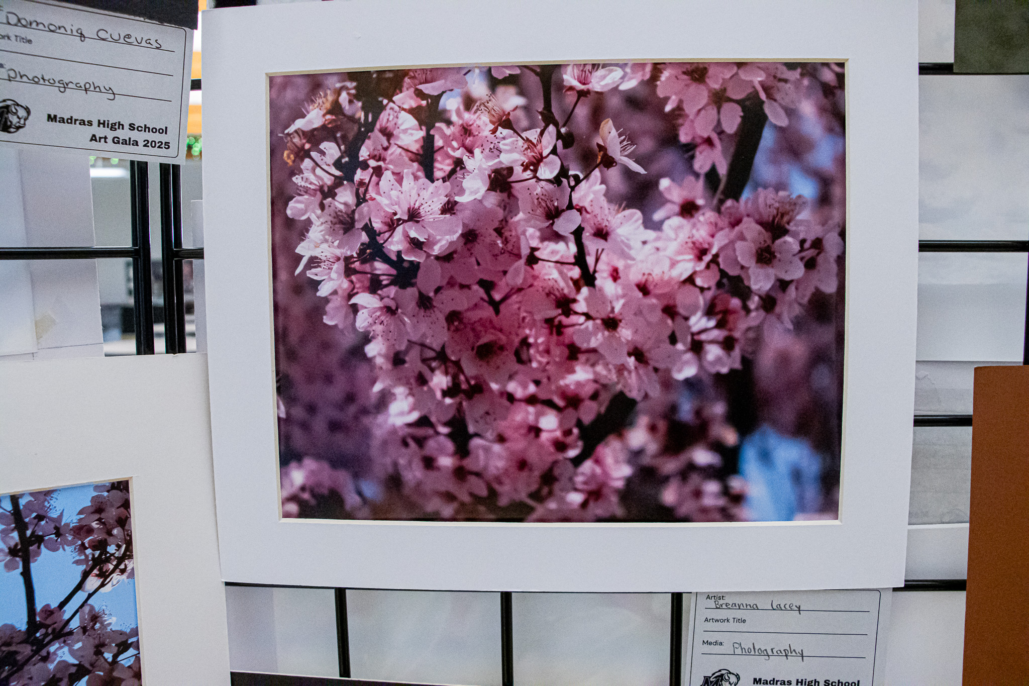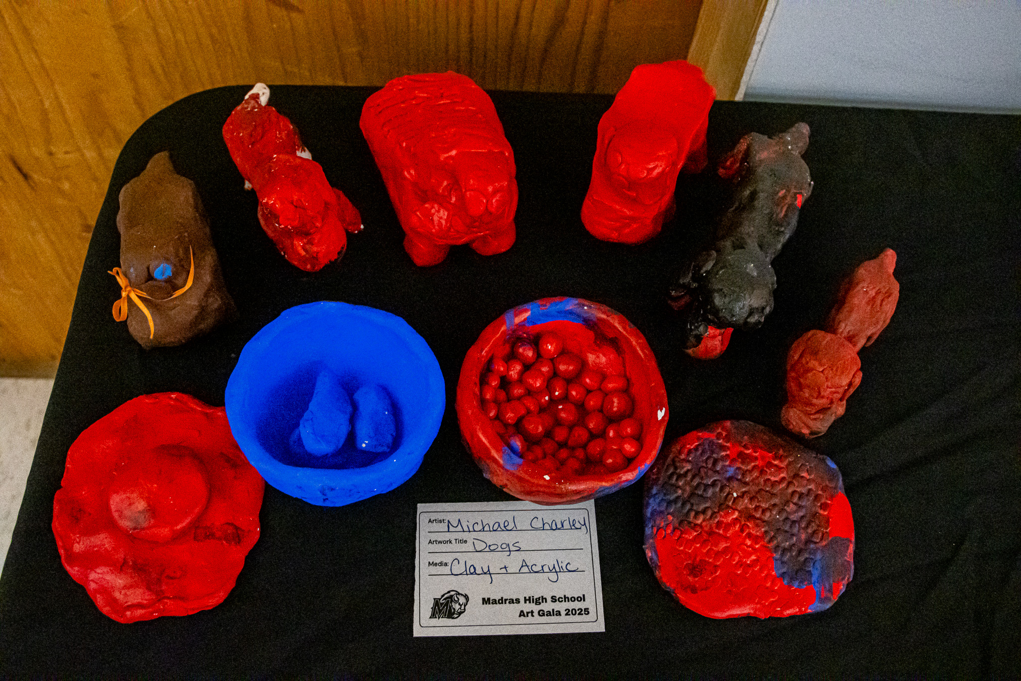 For the first time in its history, the commons of Madras High School was transformed into a vibrant art gallery for our inaugural Art Gala. Student artwork covered the walls and tables inside the commons. This included different mediums of art like ceramics, paintings, graphics, photography, and more.
