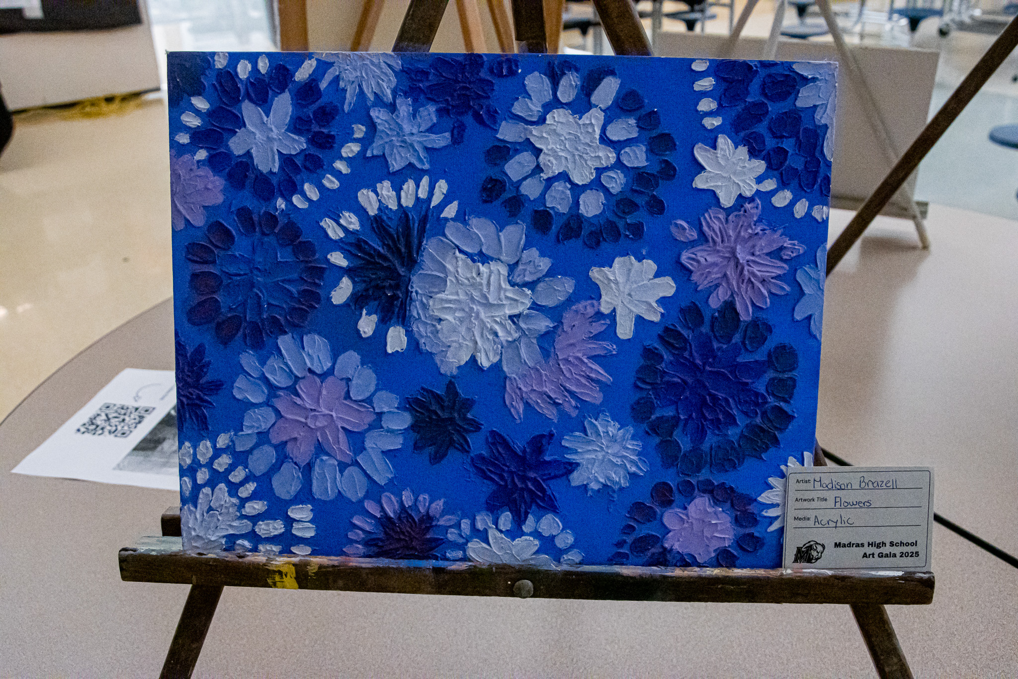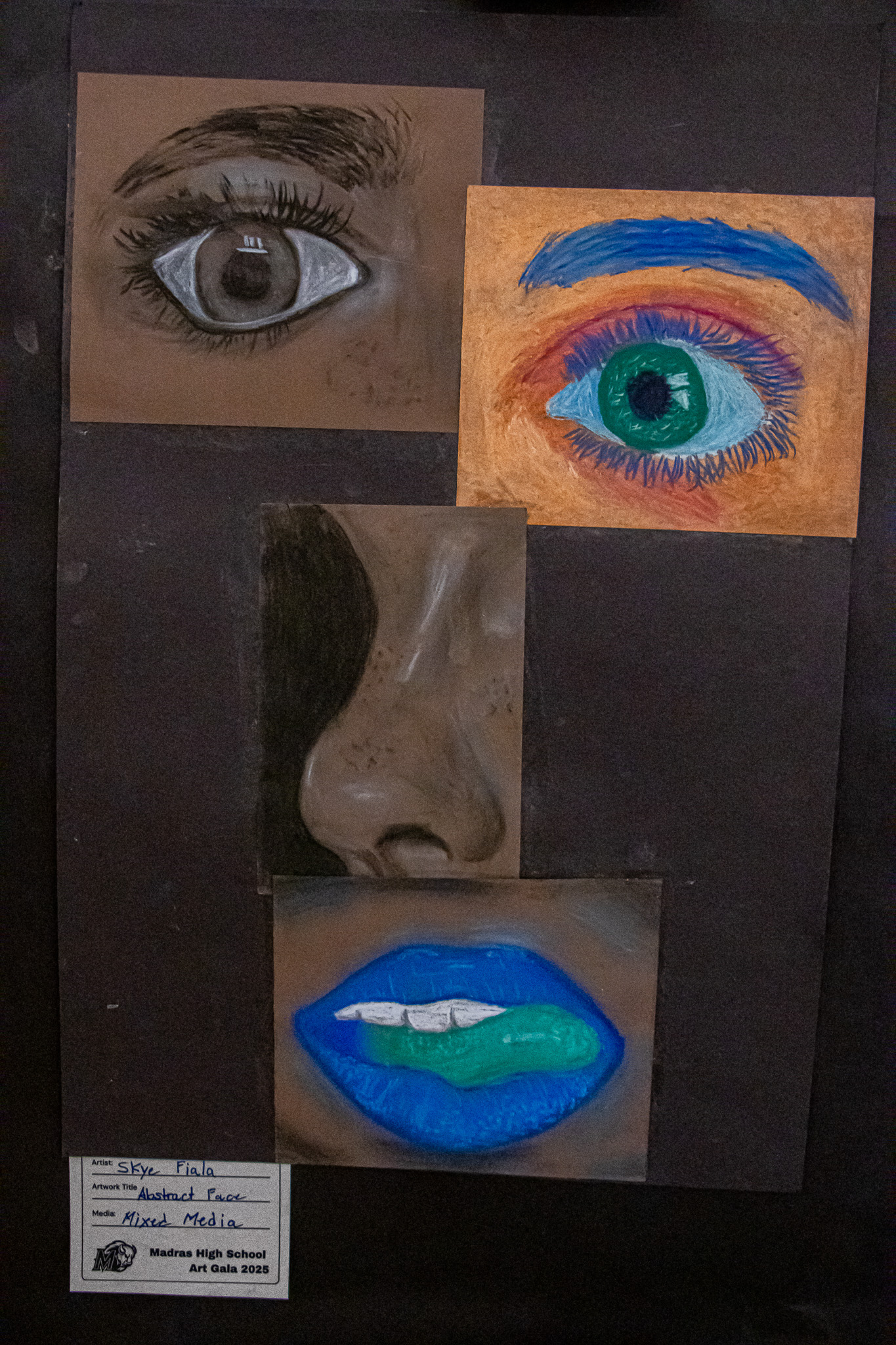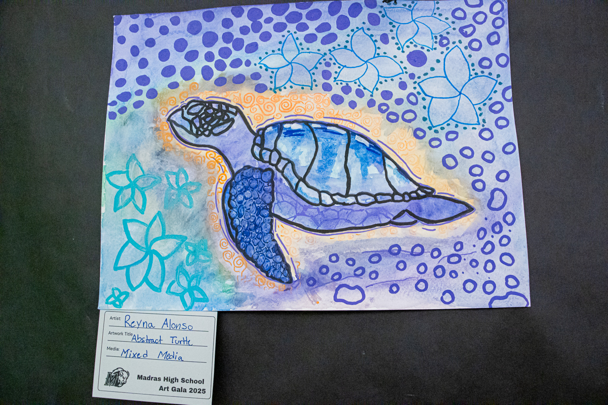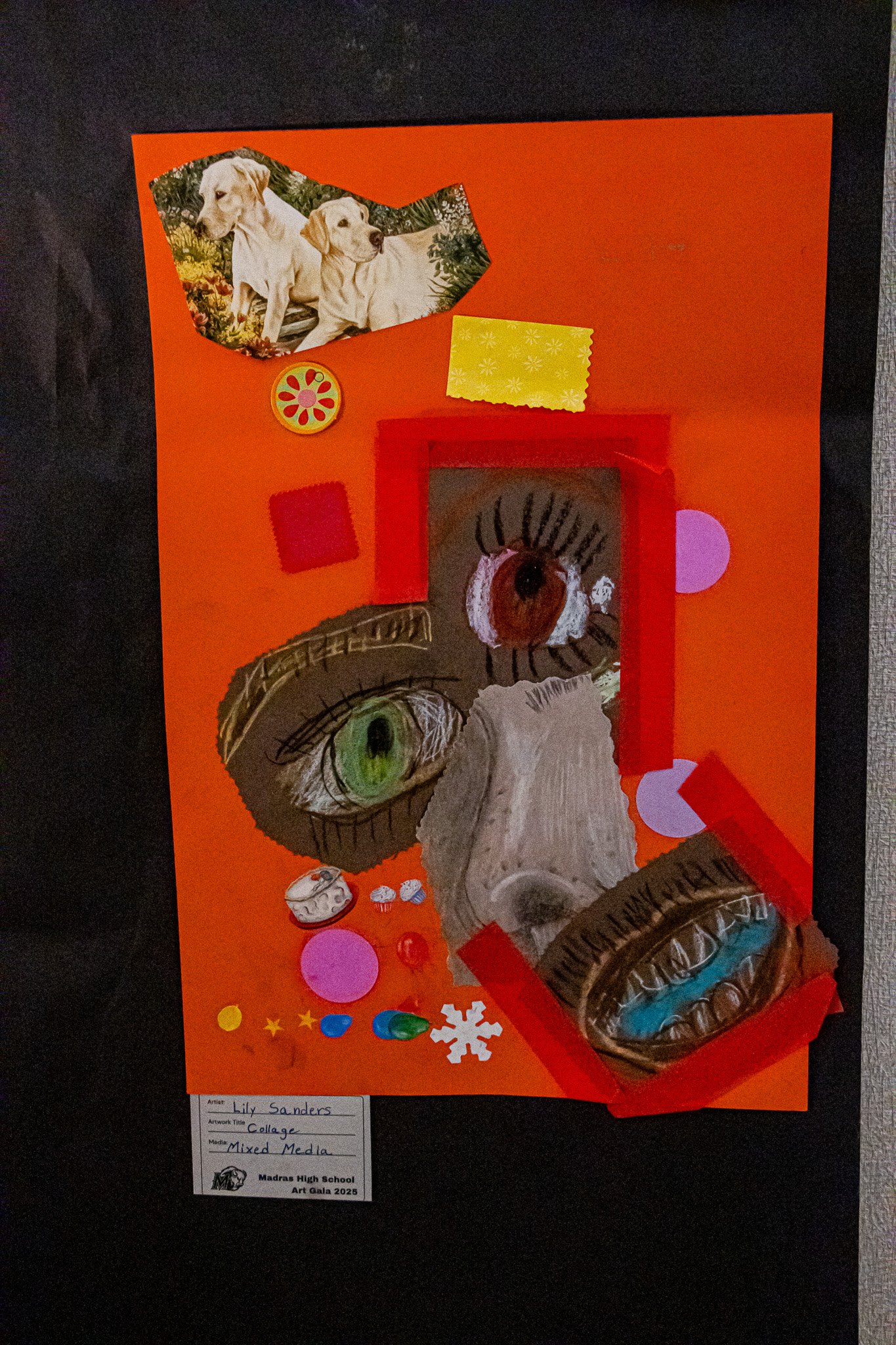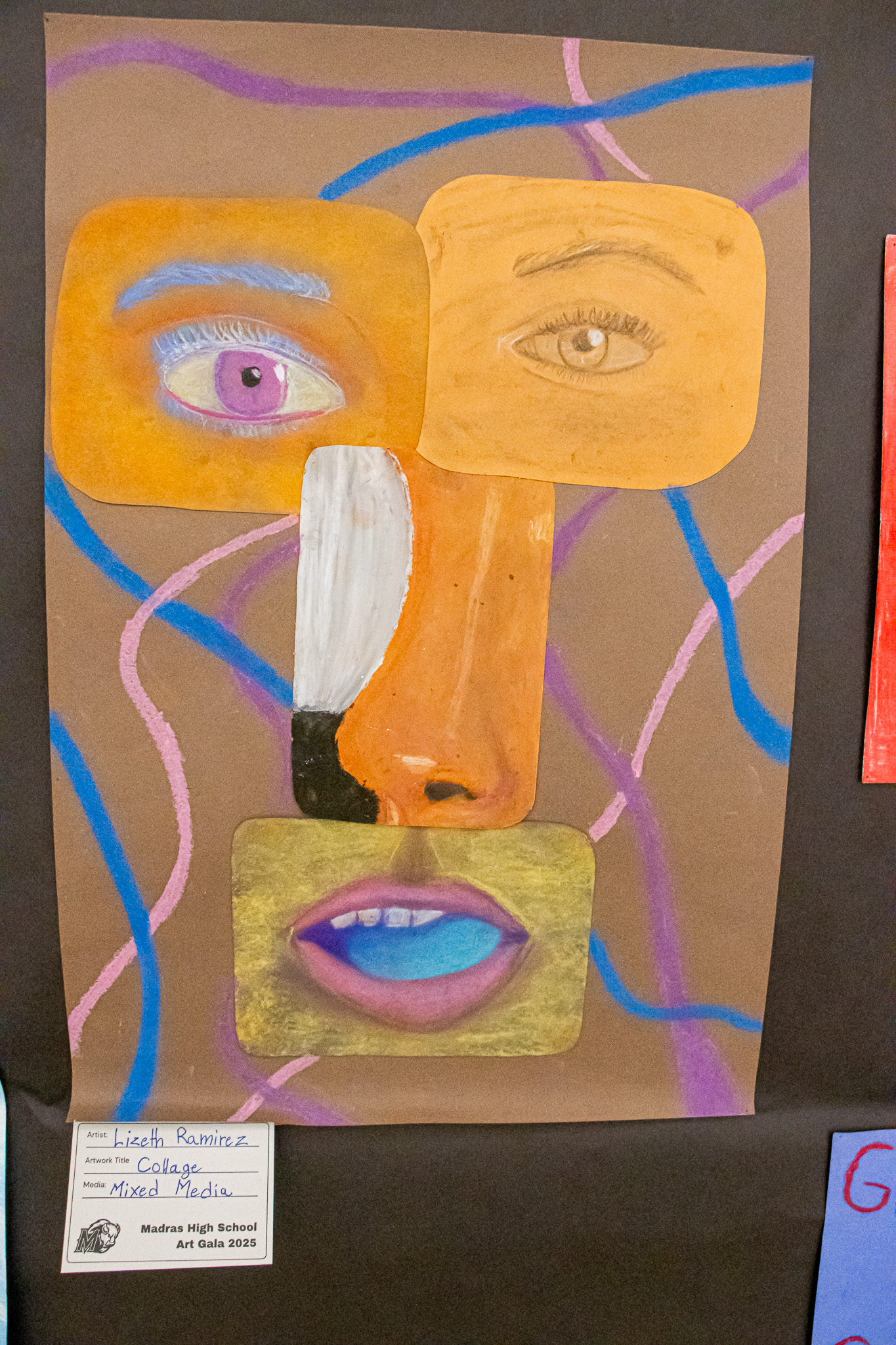 For the first time in its history, the commons of Madras High School was transformed into a vibrant art gallery for our inaugural Art Gala. Student artwork covered the walls and tables inside the commons. This included different mediums of art like ceramics, paintings, graphics, photography, and more.
