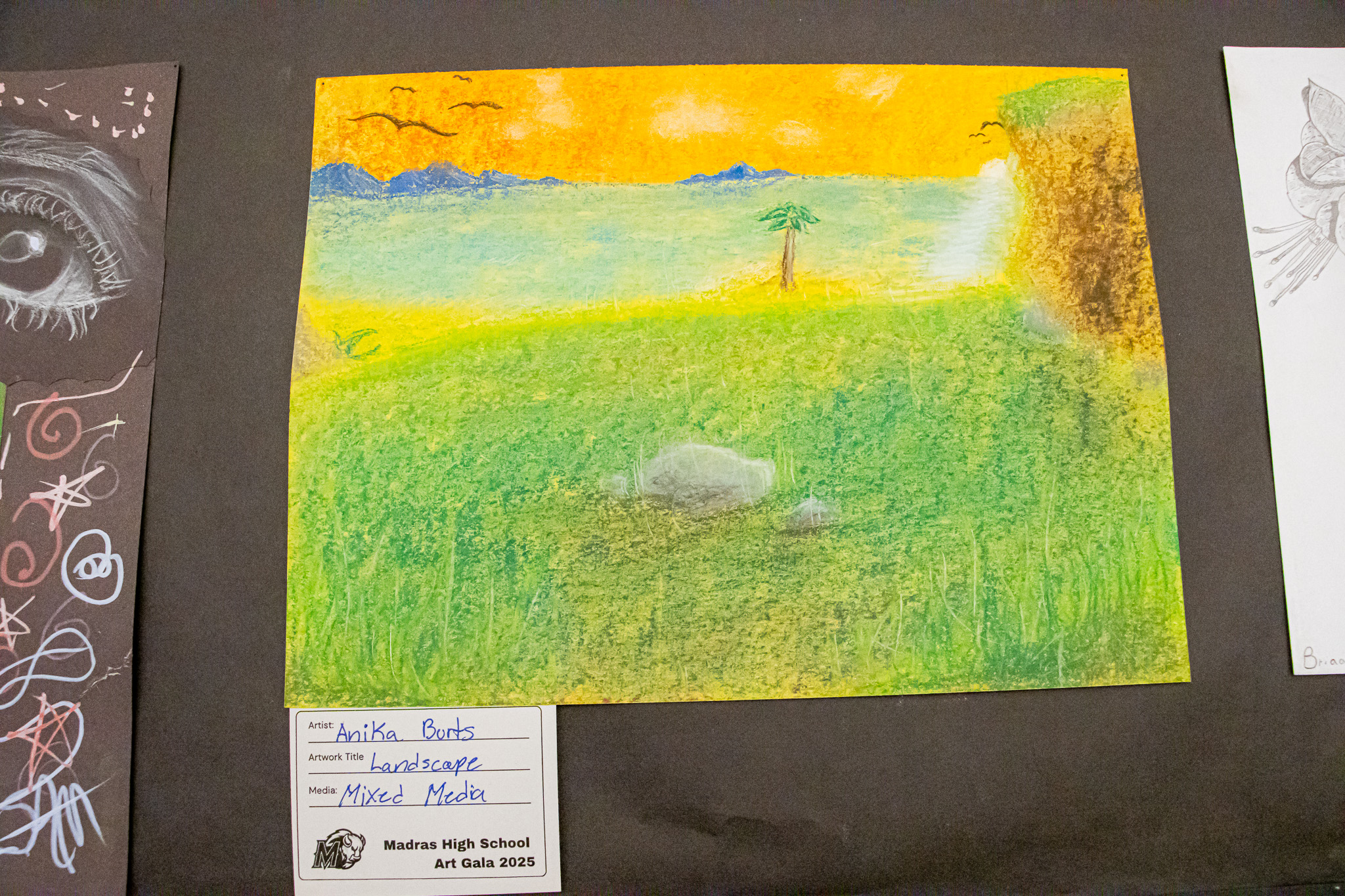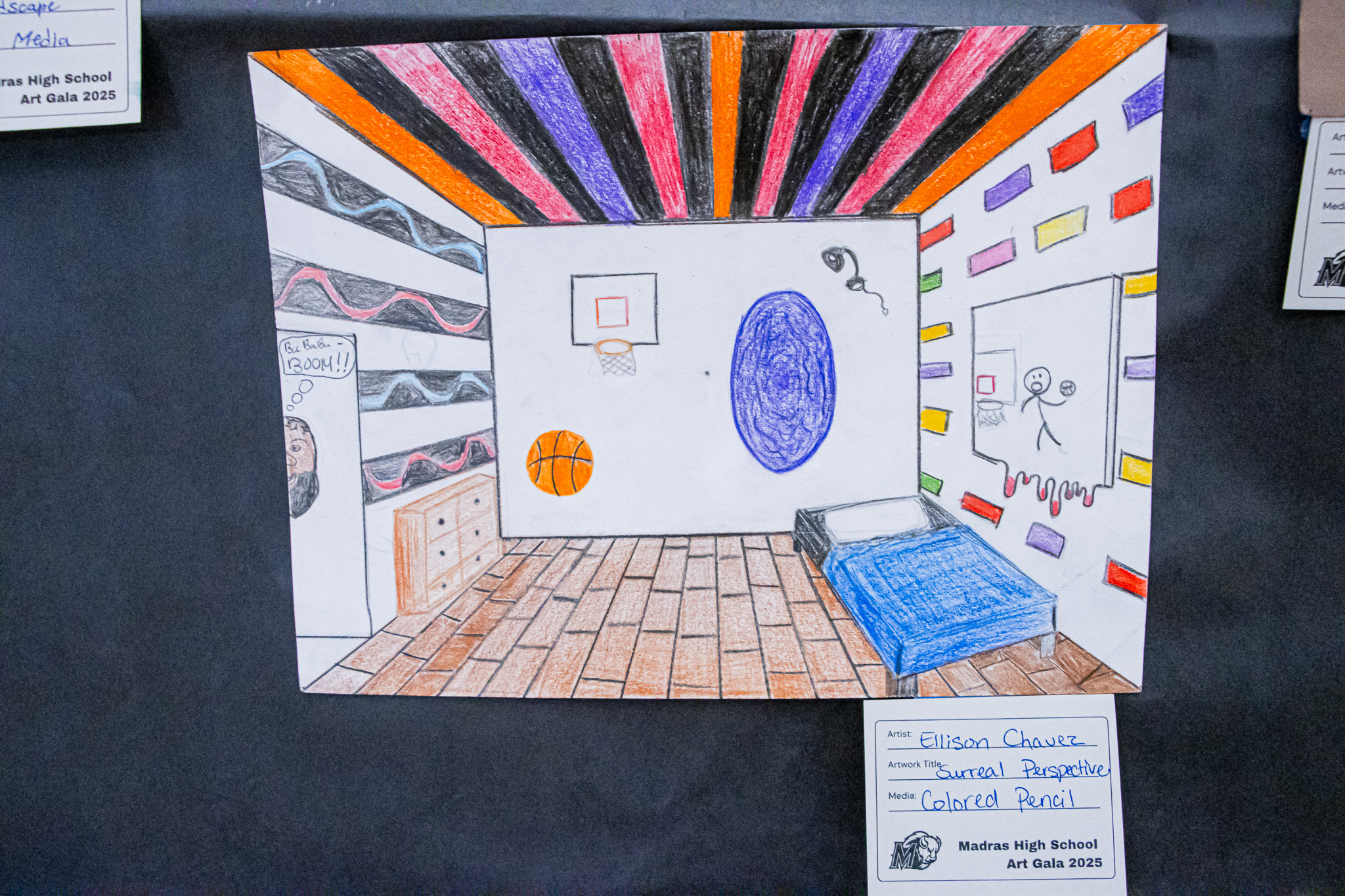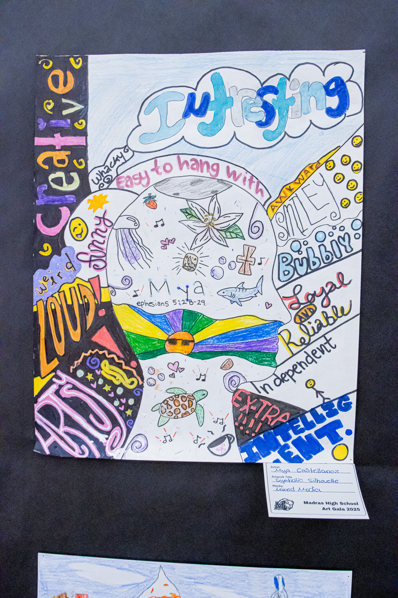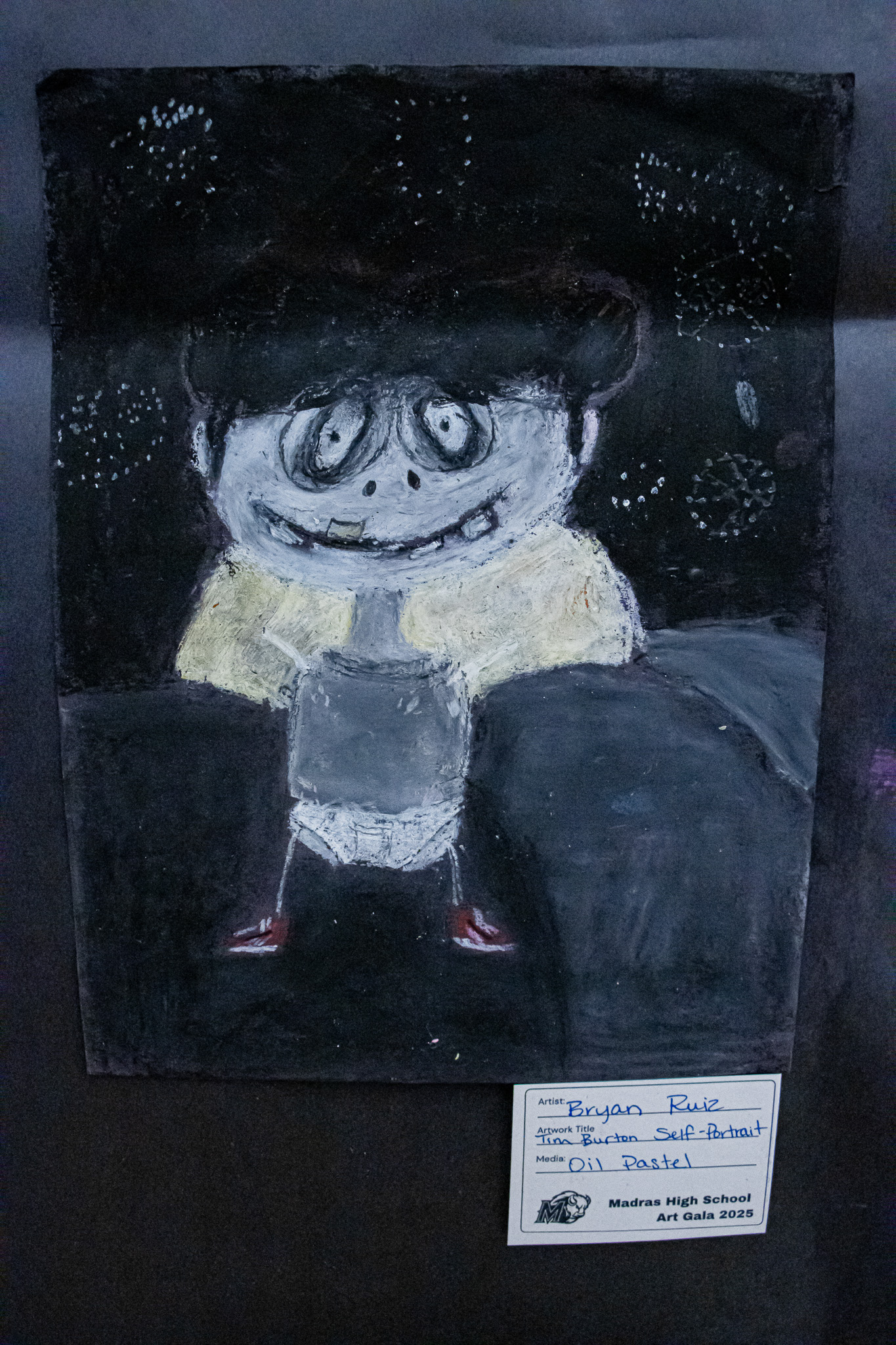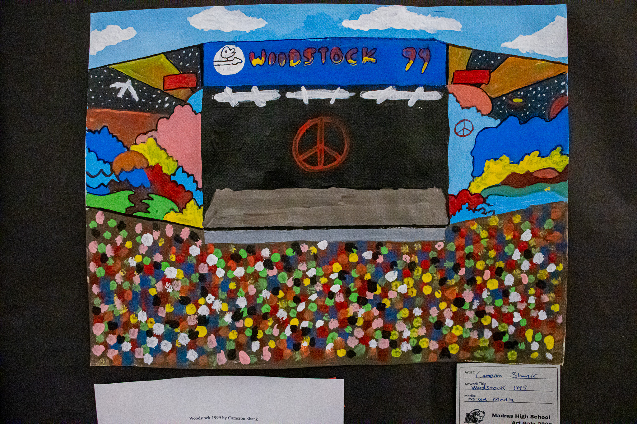 For the first time in its history, the commons of Madras High School was transformed into a vibrant art gallery for our inaugural Art Gala. Student artwork covered the walls and tables inside the commons. This included different mediums of art like ceramics, paintings, graphics, photography, and more.