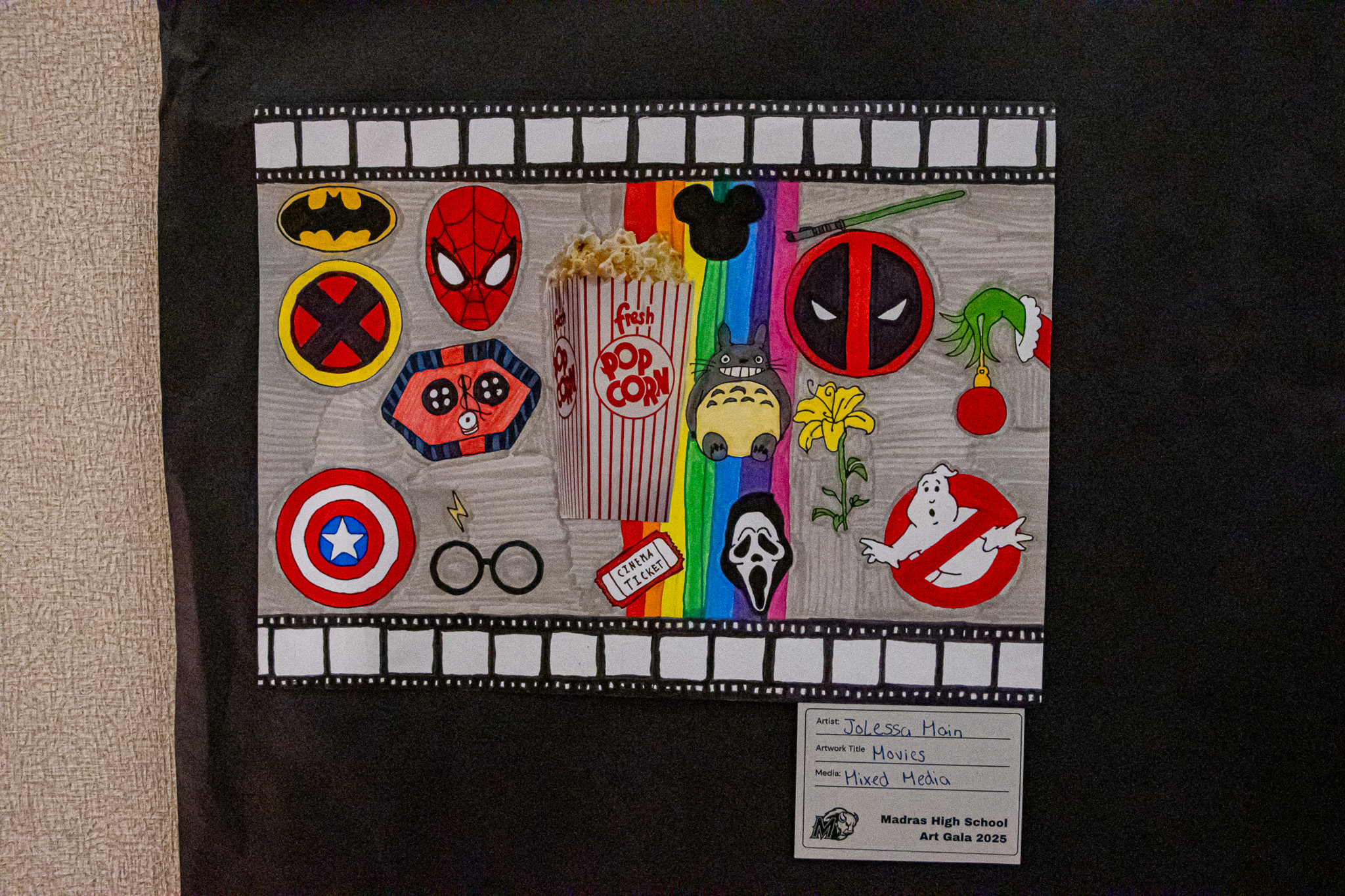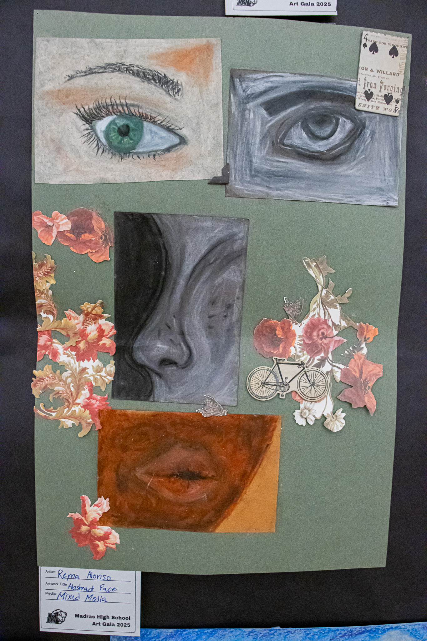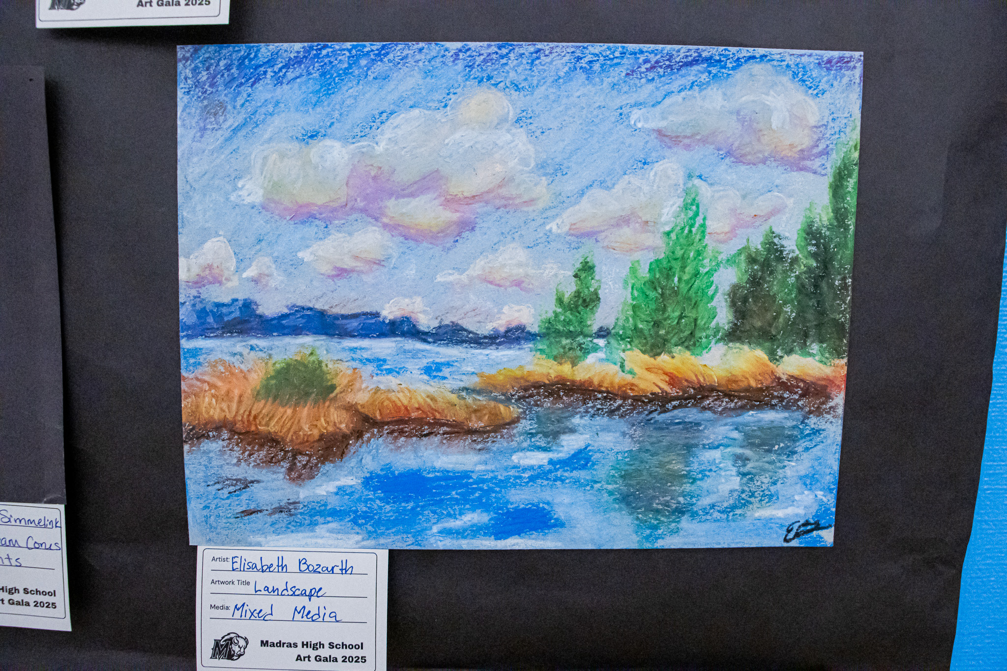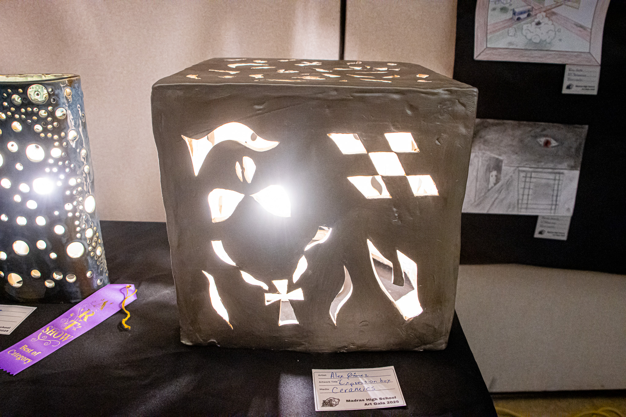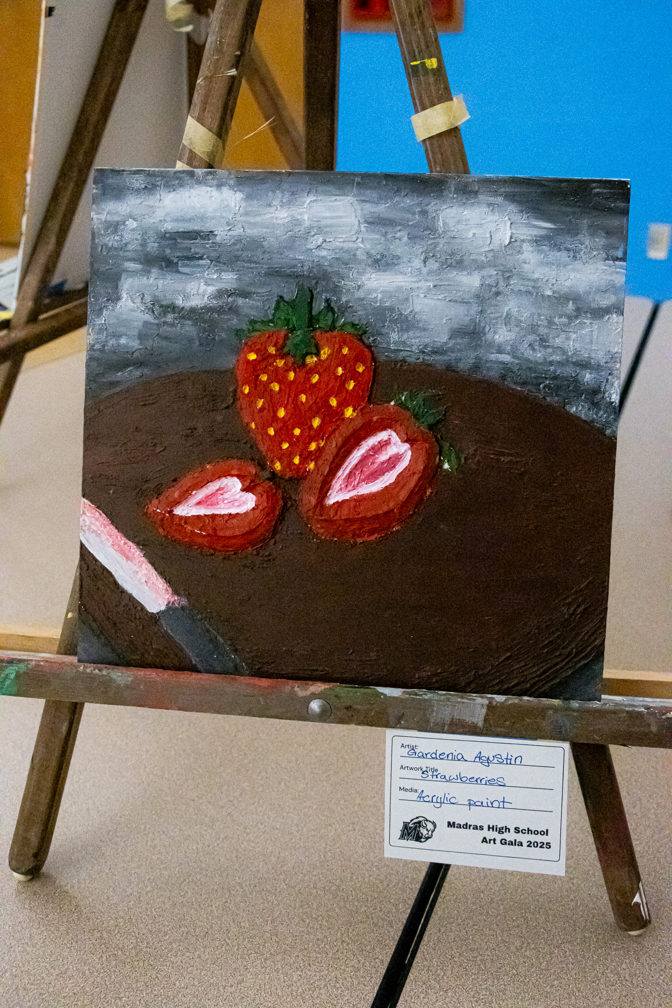 For the first time in its history, the commons of Madras High School was transformed into a vibrant art gallery for our inaugural Art Gala. Student artwork covered the walls and tables inside the commons. This included different mediums of art like ceramics, paintings, graphics, photography, and more.