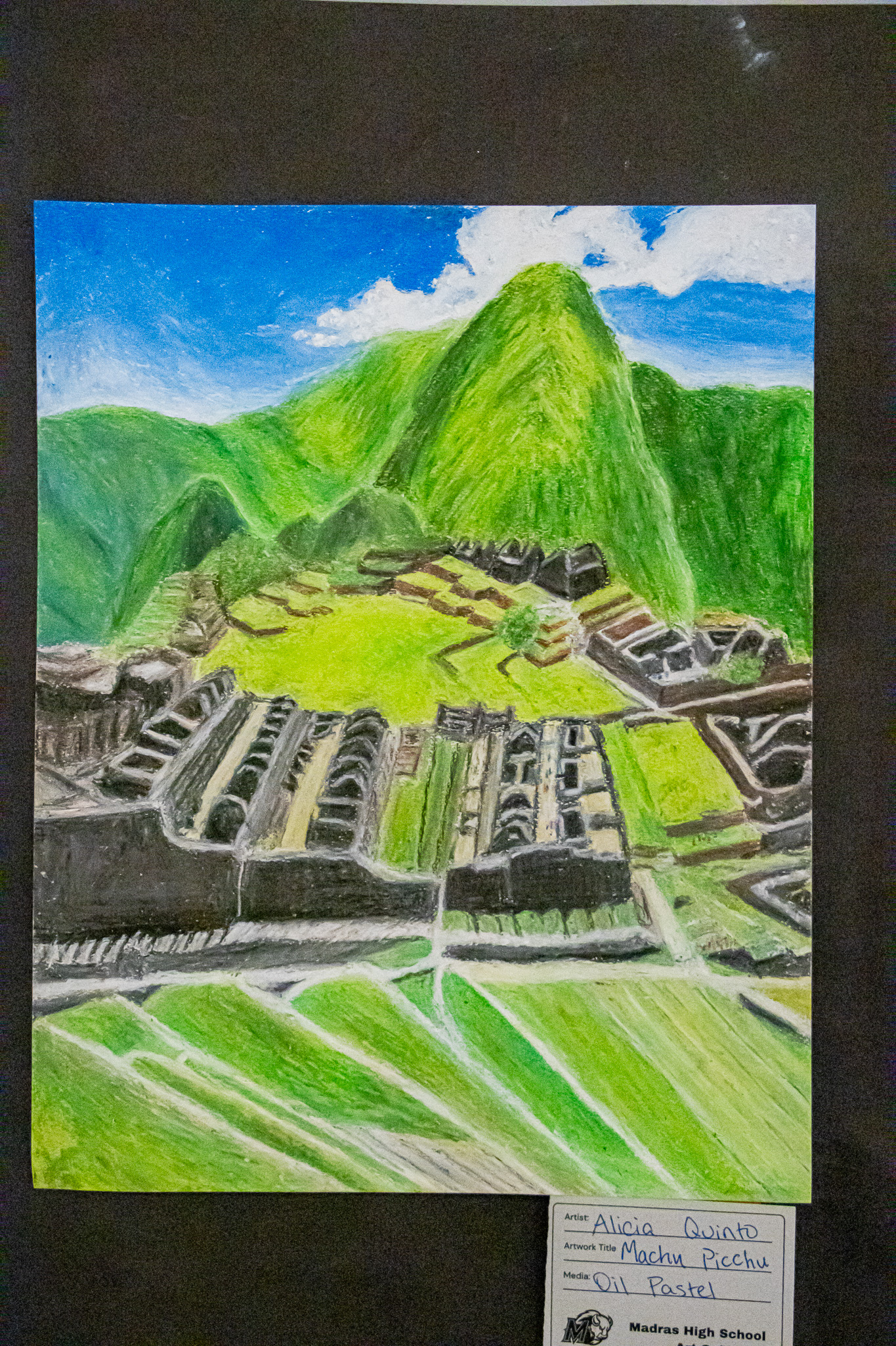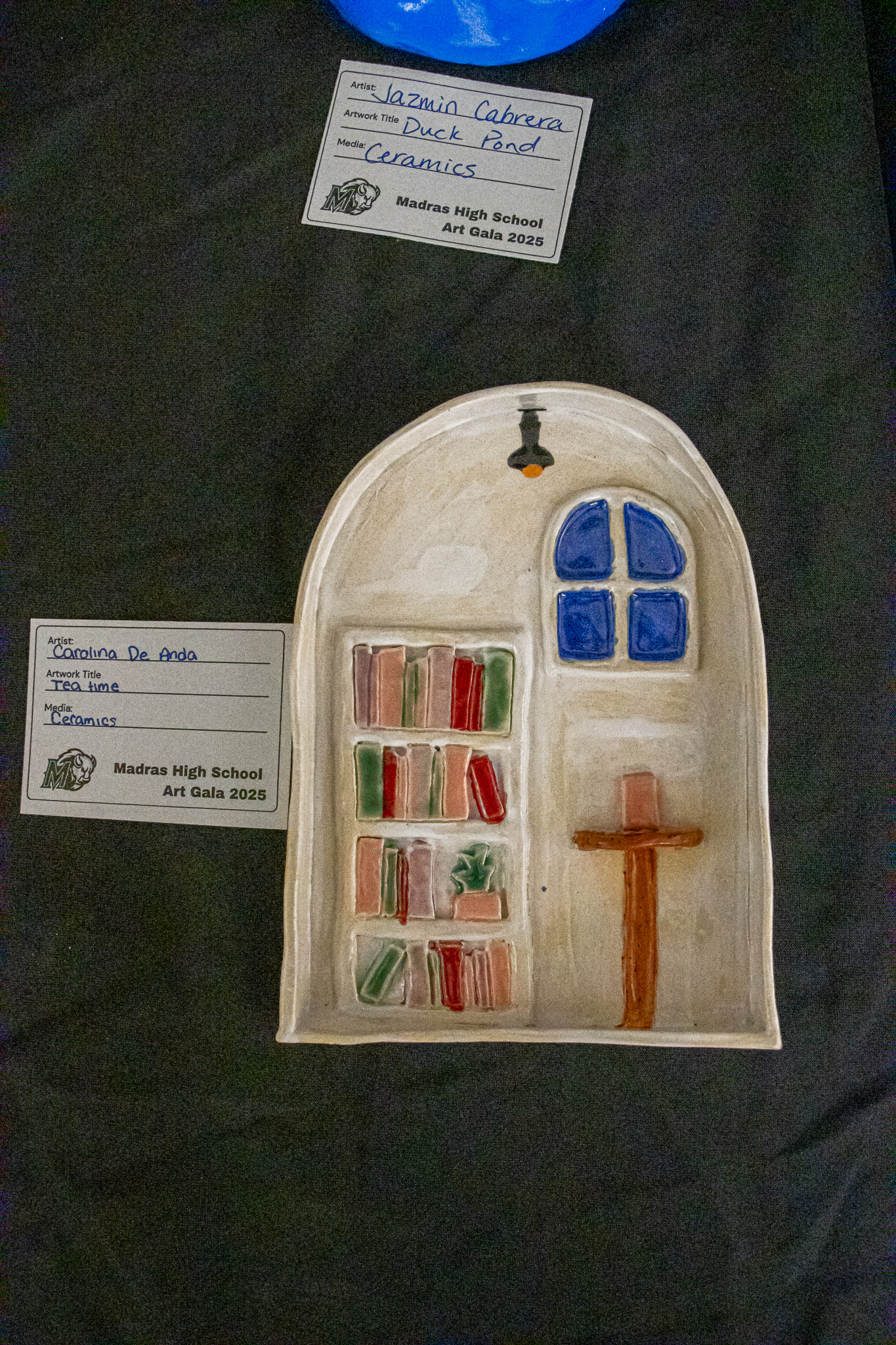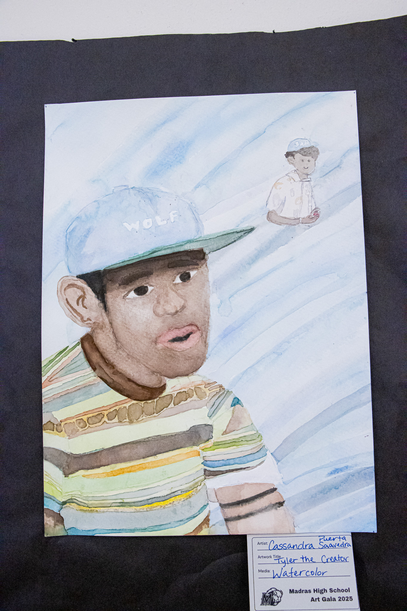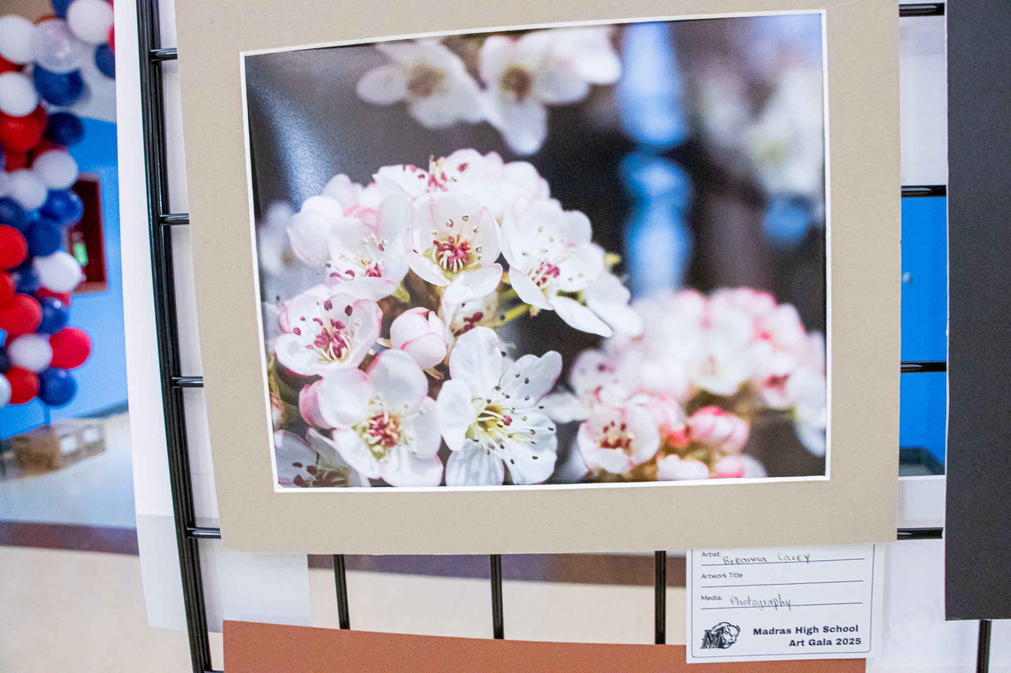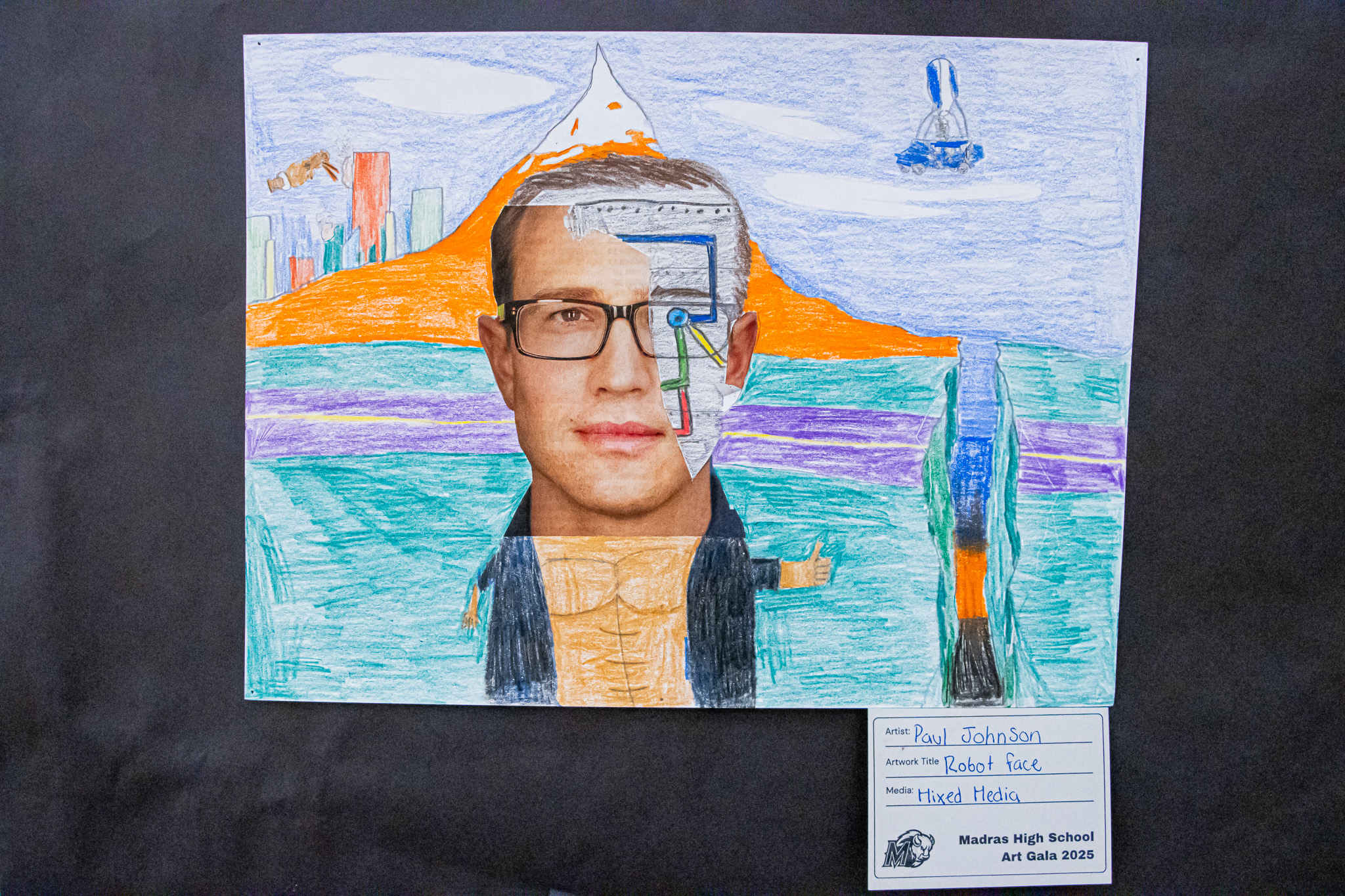 For the first time in its history, the commons of Madras High School was transformed into a vibrant art gallery for our inaugural Art Gala. Student artwork covered the walls and tables inside the commons. This included different mediums of art like ceramics, paintings, graphics, photography, and more.