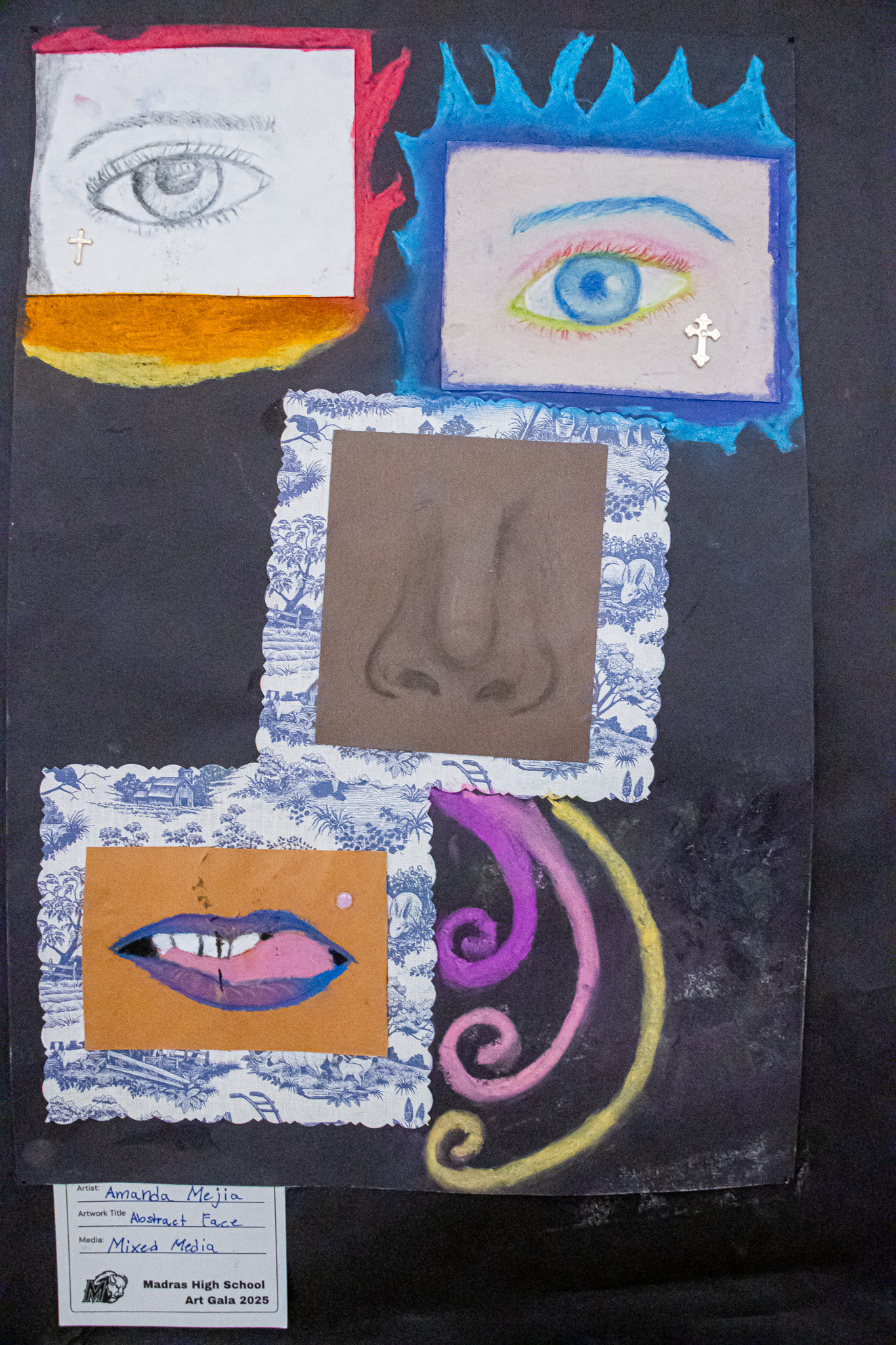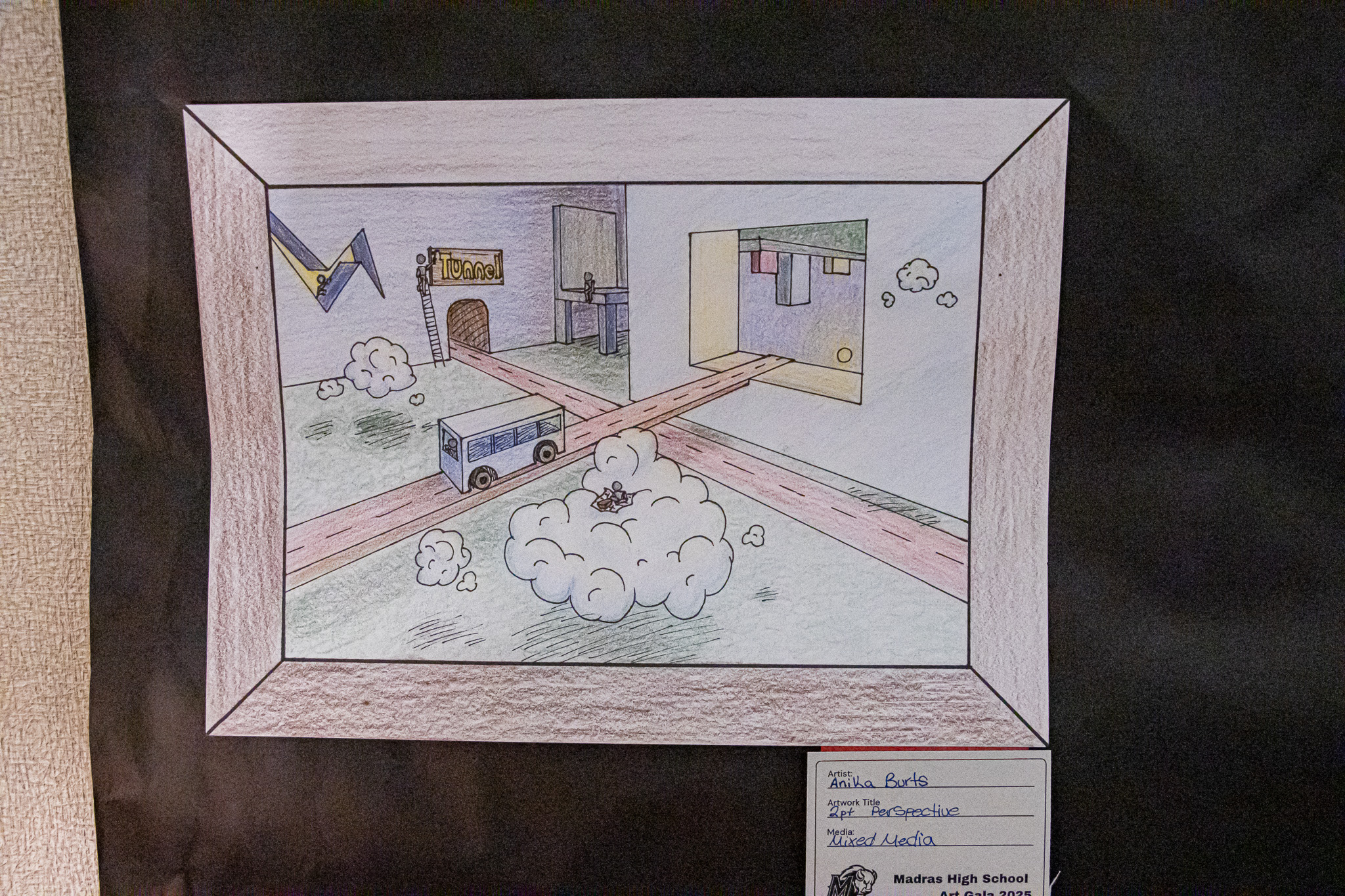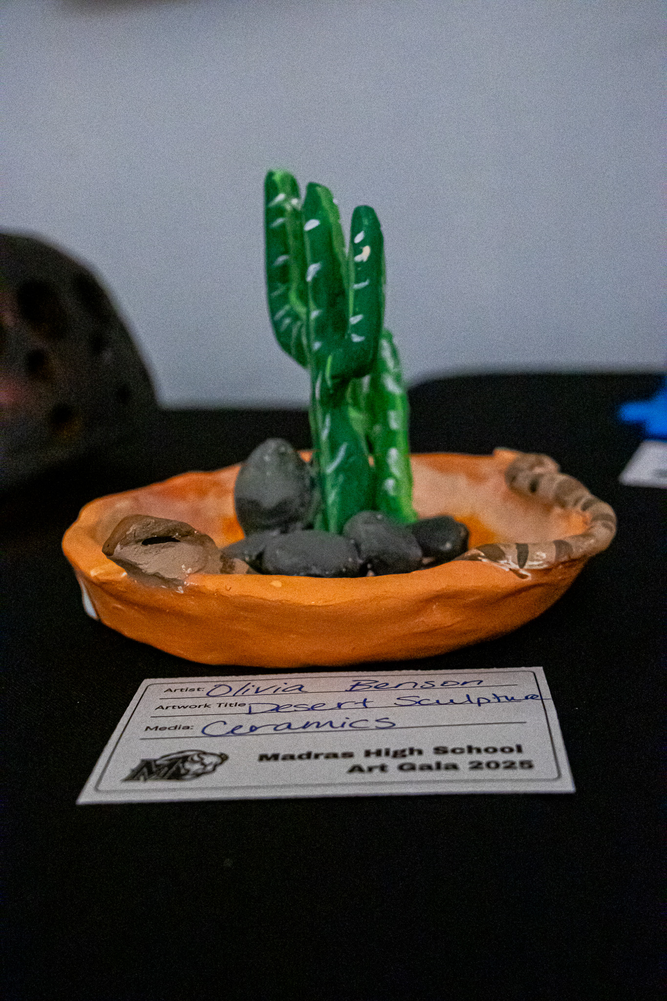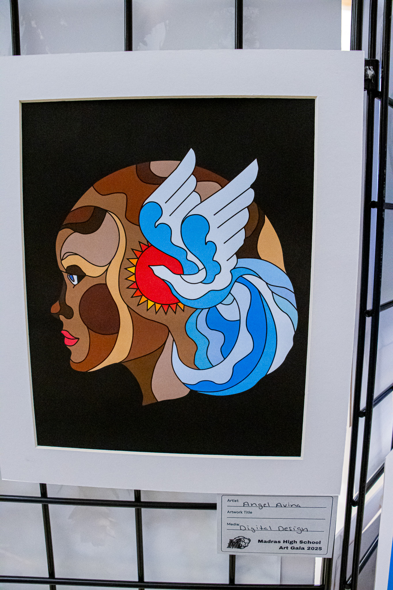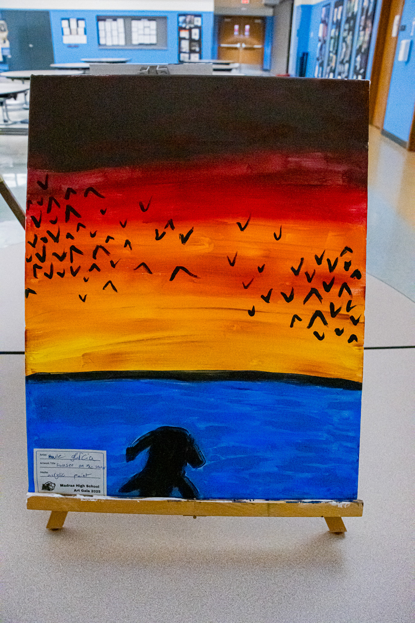 For the first time in its history, the commons of Madras High School was transformed into a vibrant art gallery for our inaugural Art Gala. Student artwork covered the walls and tables inside the commons. This included different mediums of art like ceramics, paintings, graphics, photography, and more.