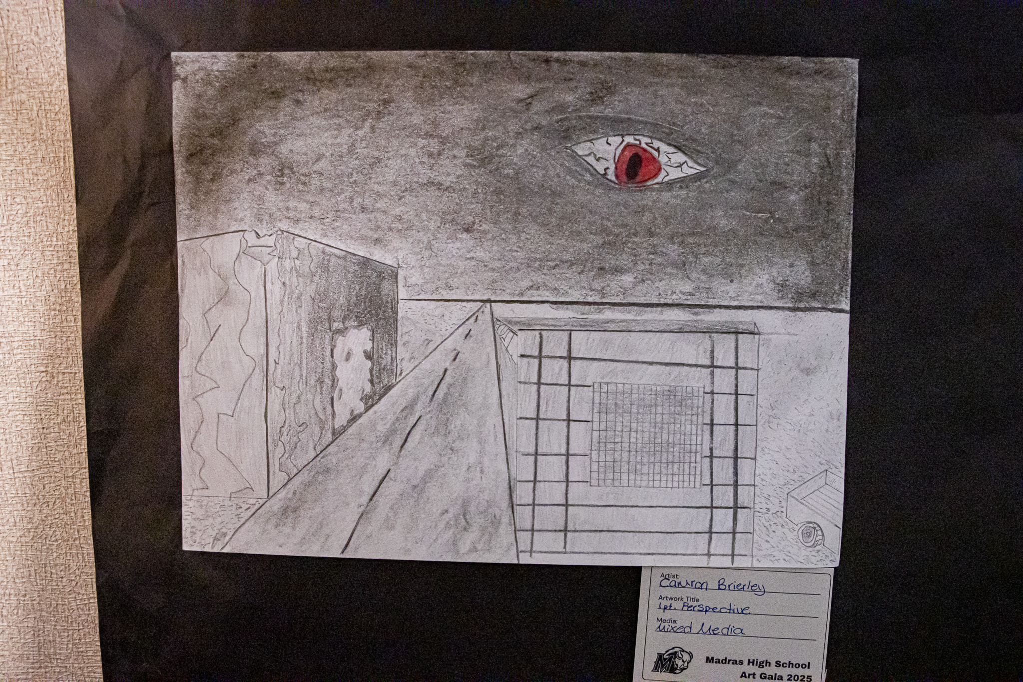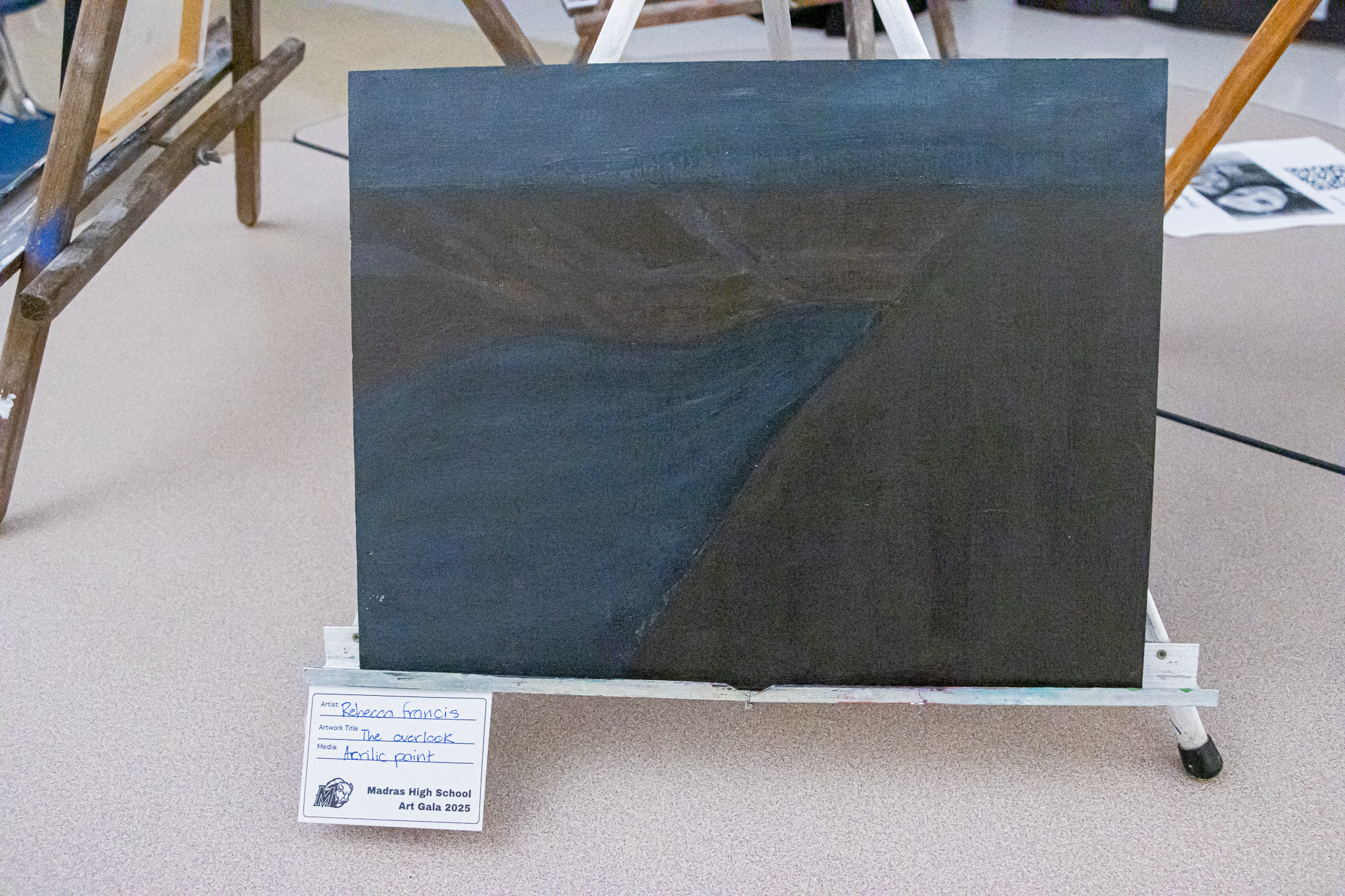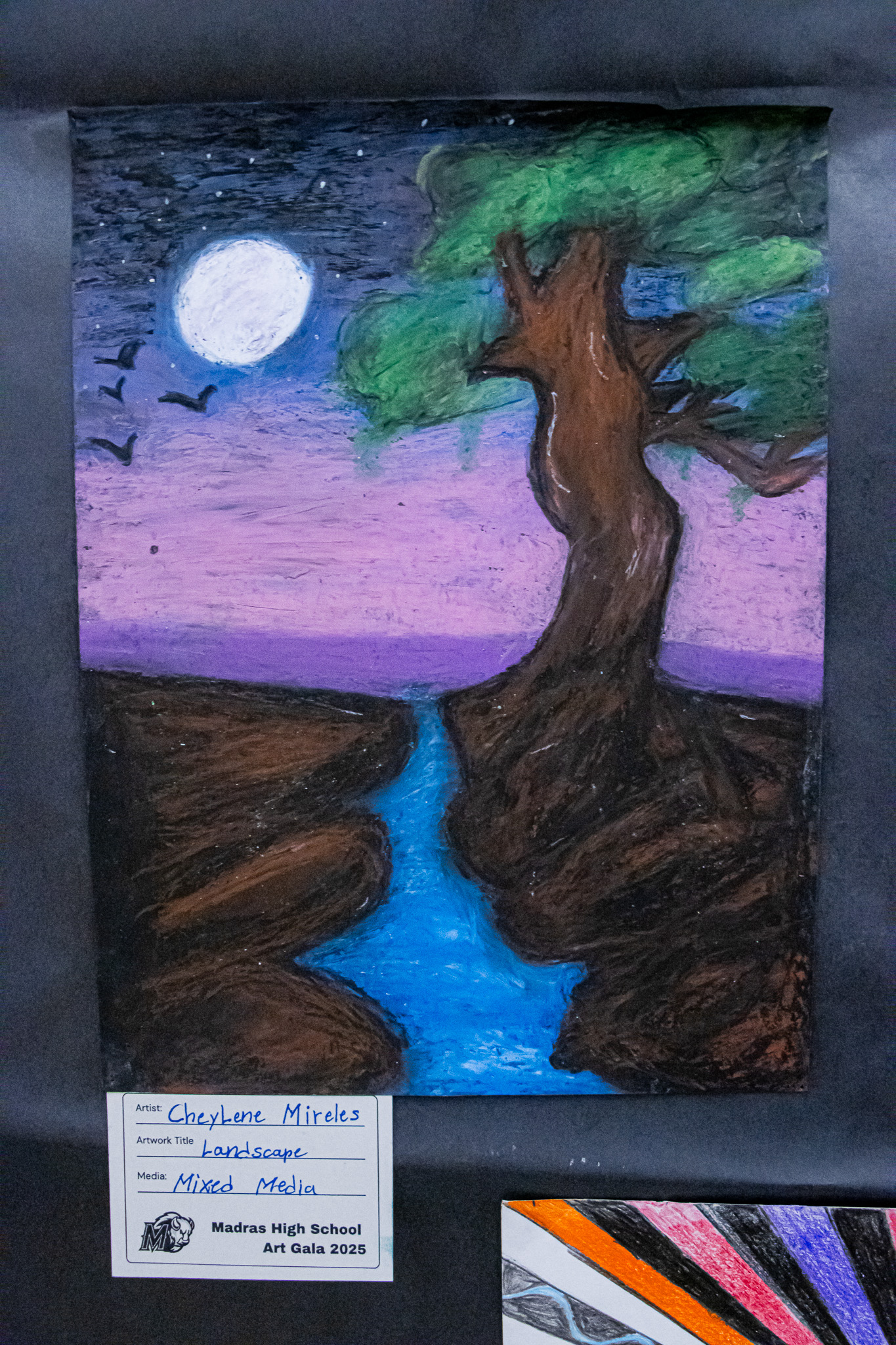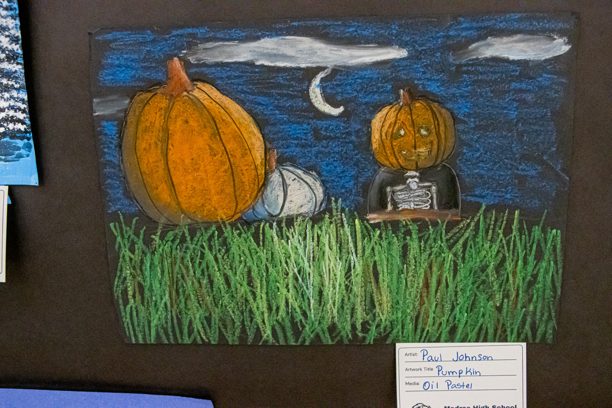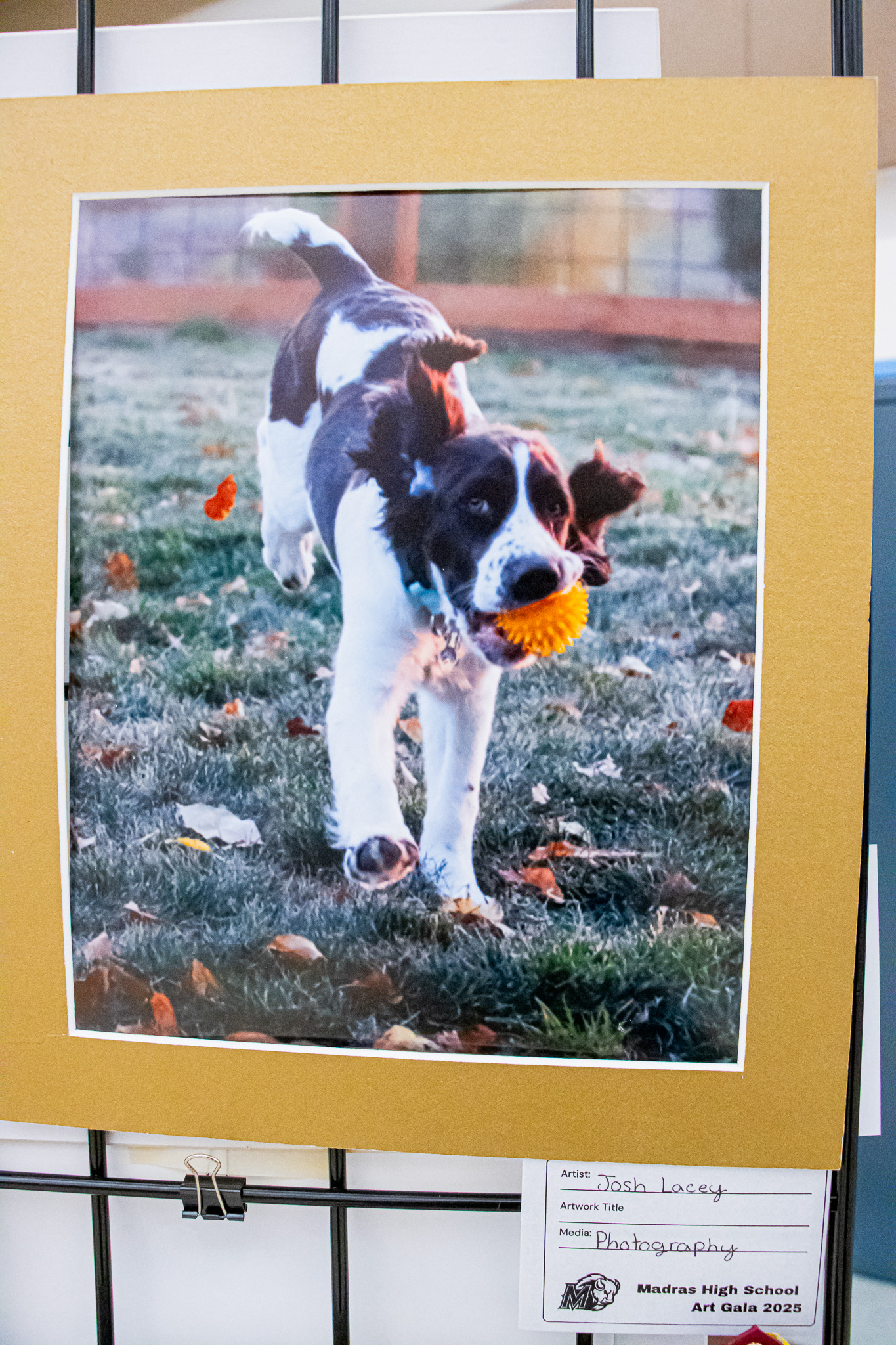 For the first time in its history, the commons of Madras High School was transformed into a vibrant art gallery for our inaugural Art Gala. Student artwork covered the walls and tables inside the commons. This included different mediums of art like ceramics, paintings, graphics, photography, and more.