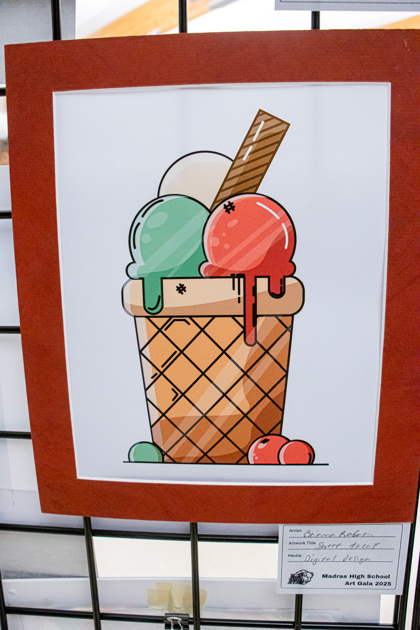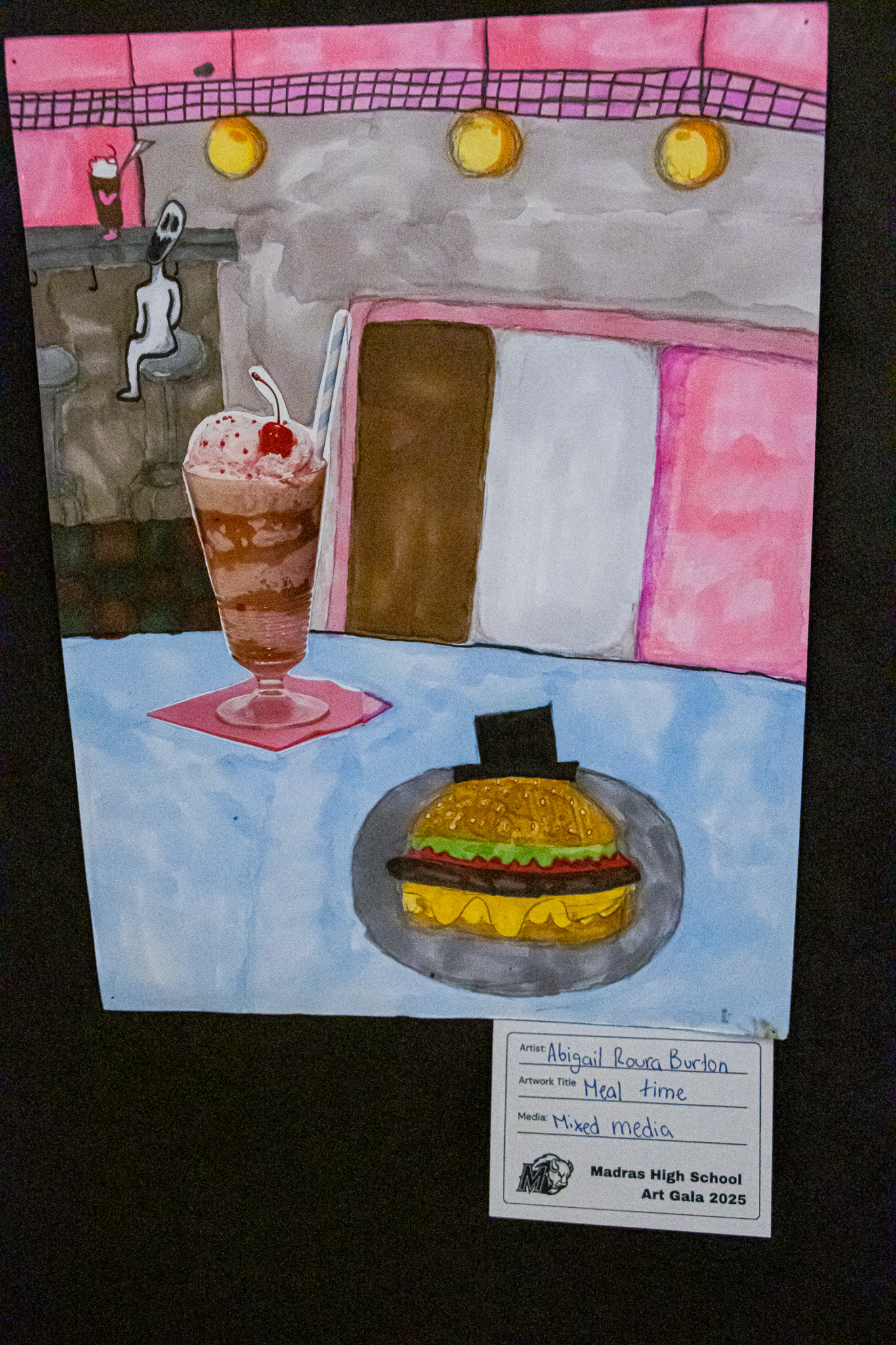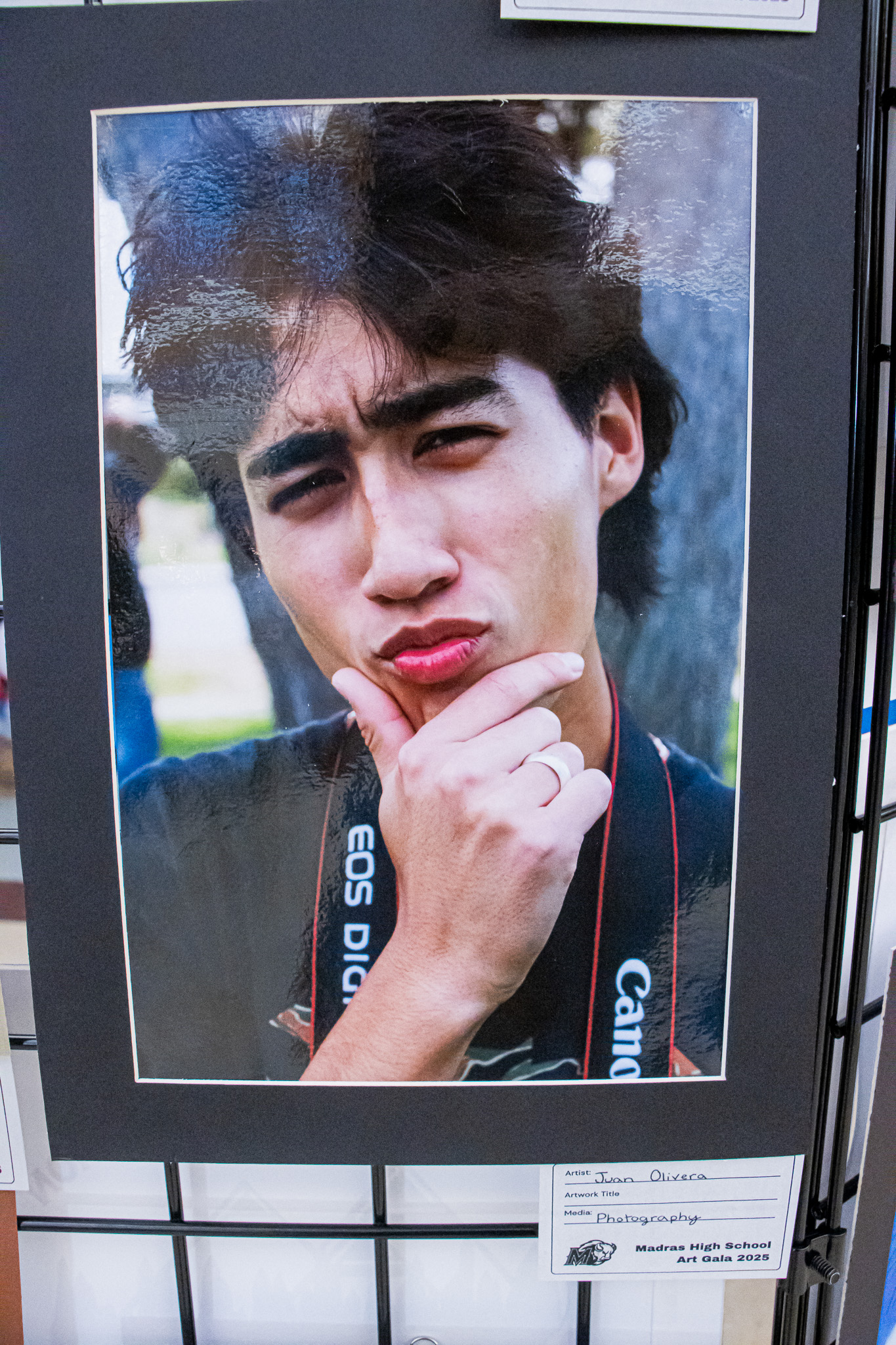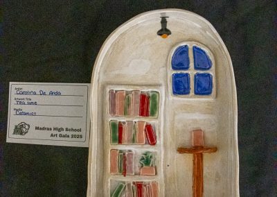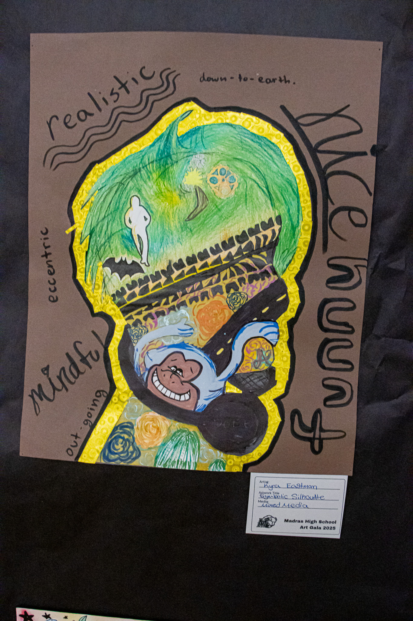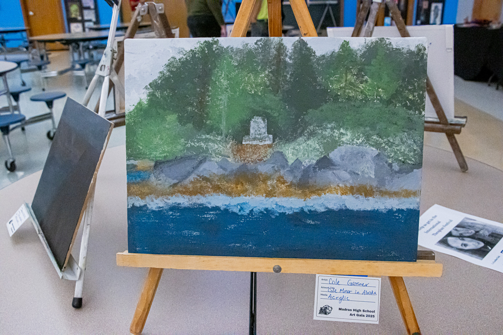 For the first time in its history, the commons of Madras High School was transformed into a vibrant art gallery for our inaugural Art Gala. Student artwork covered the walls and tables inside the commons. This included different mediums of art like ceramics, paintings, graphics, photography, and more.