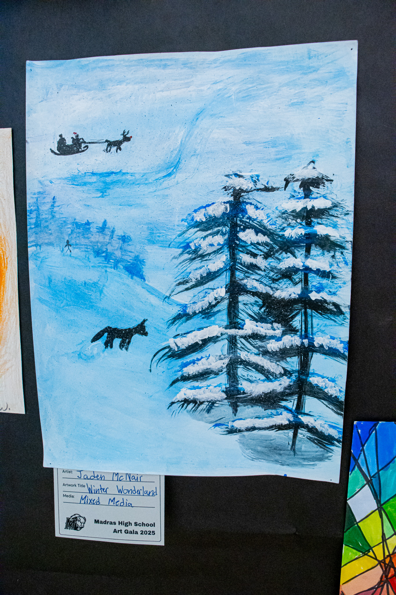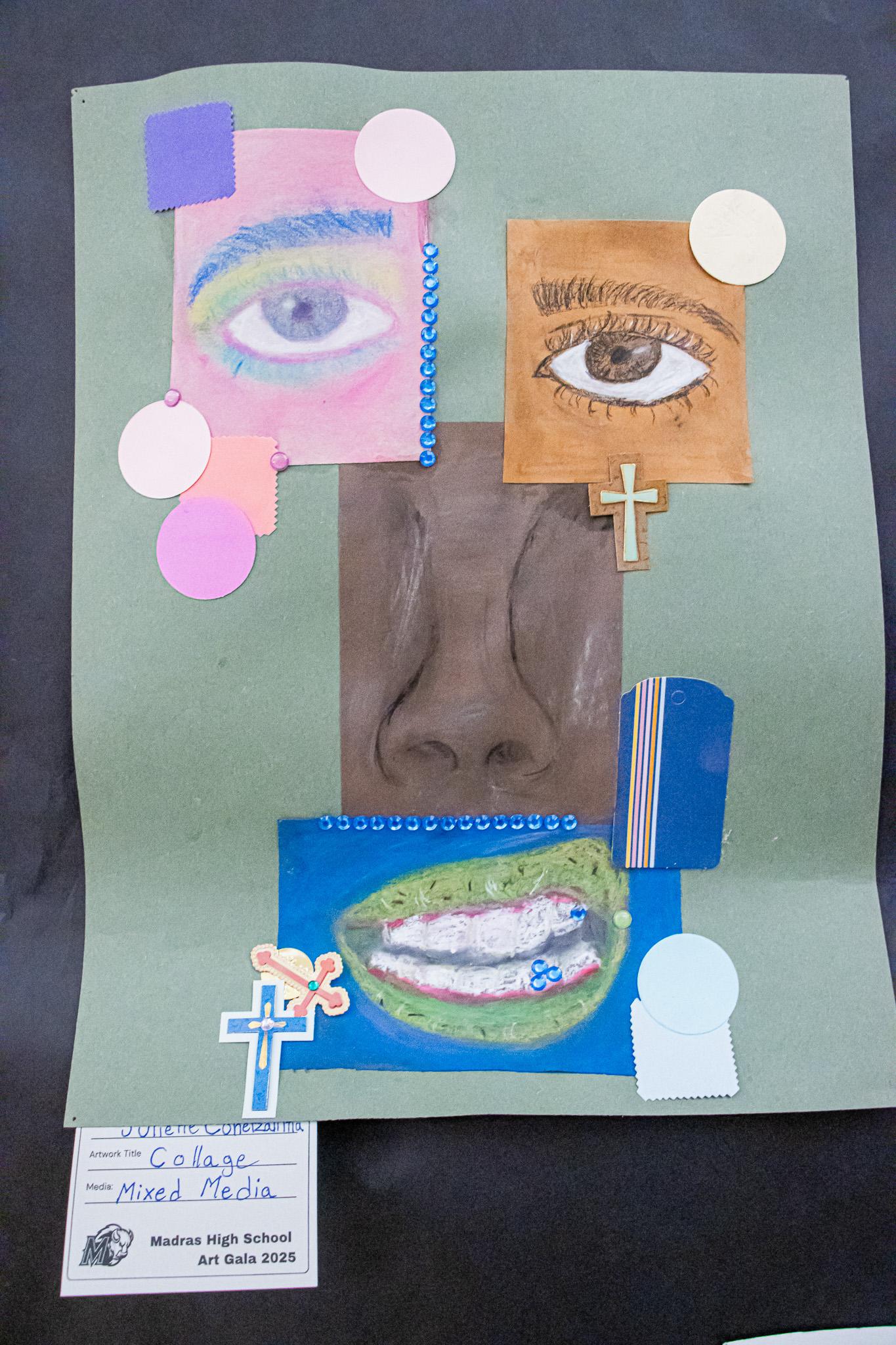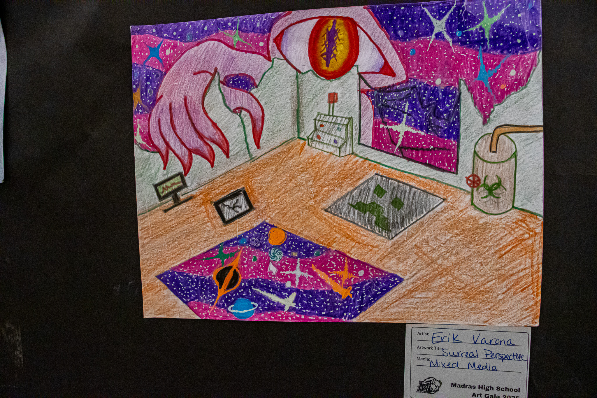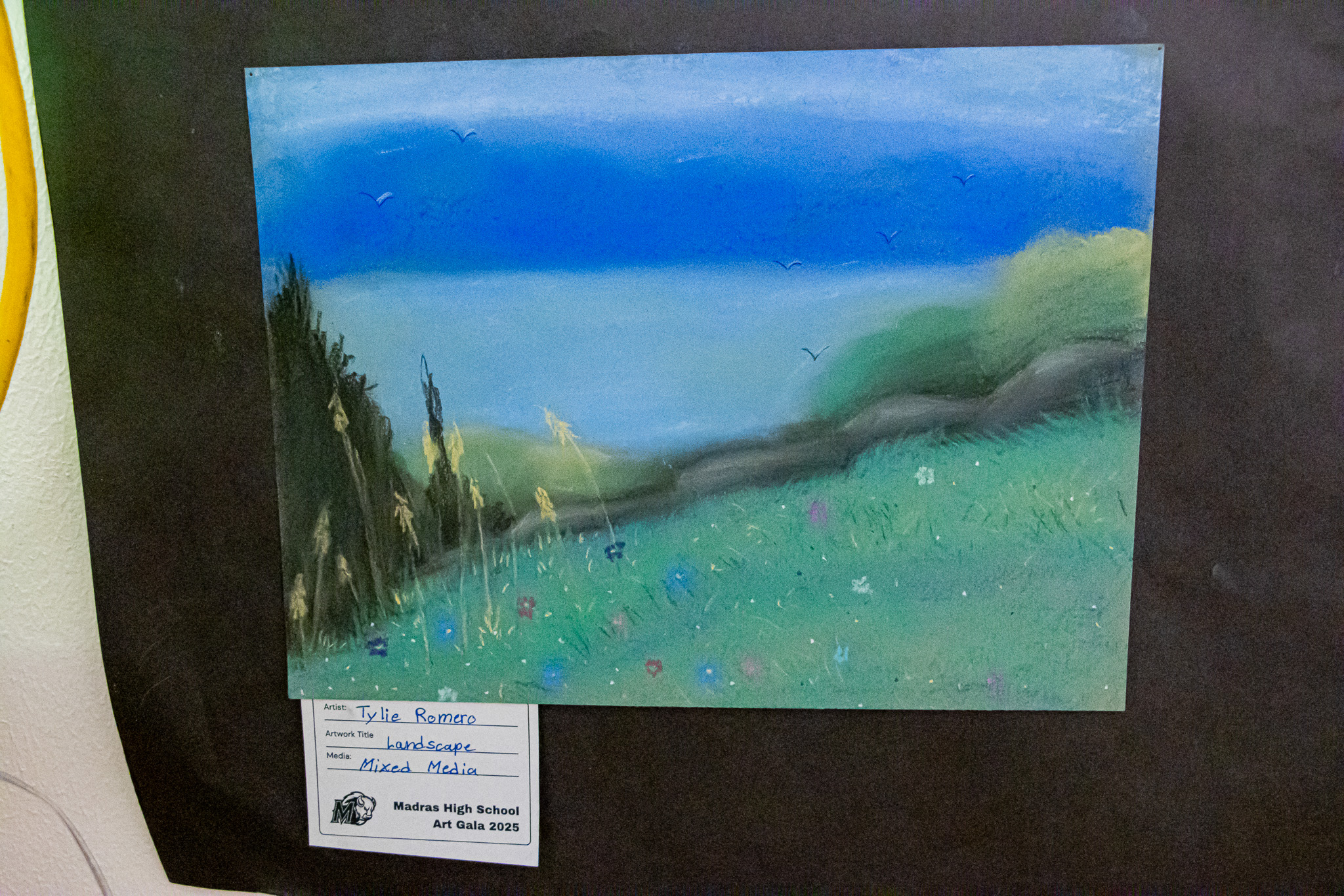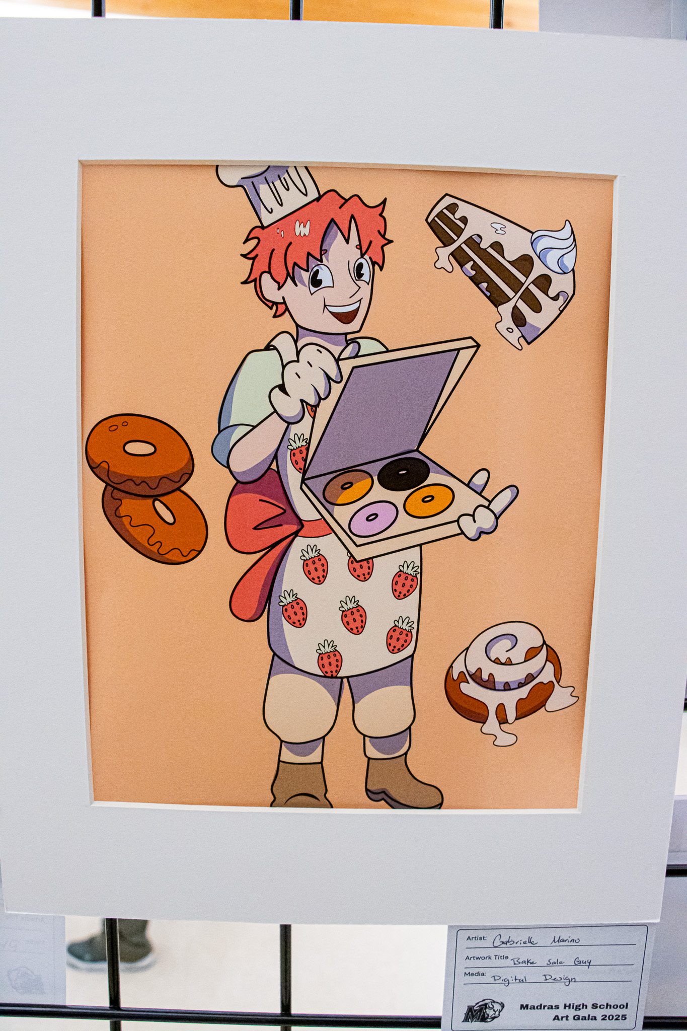 For the first time in its history, the commons of Madras High School was transformed into a vibrant art gallery for our inaugural Art Gala. Student artwork covered the walls and tables inside the commons. This included different mediums of art like ceramics, paintings, graphics, photography, and more.