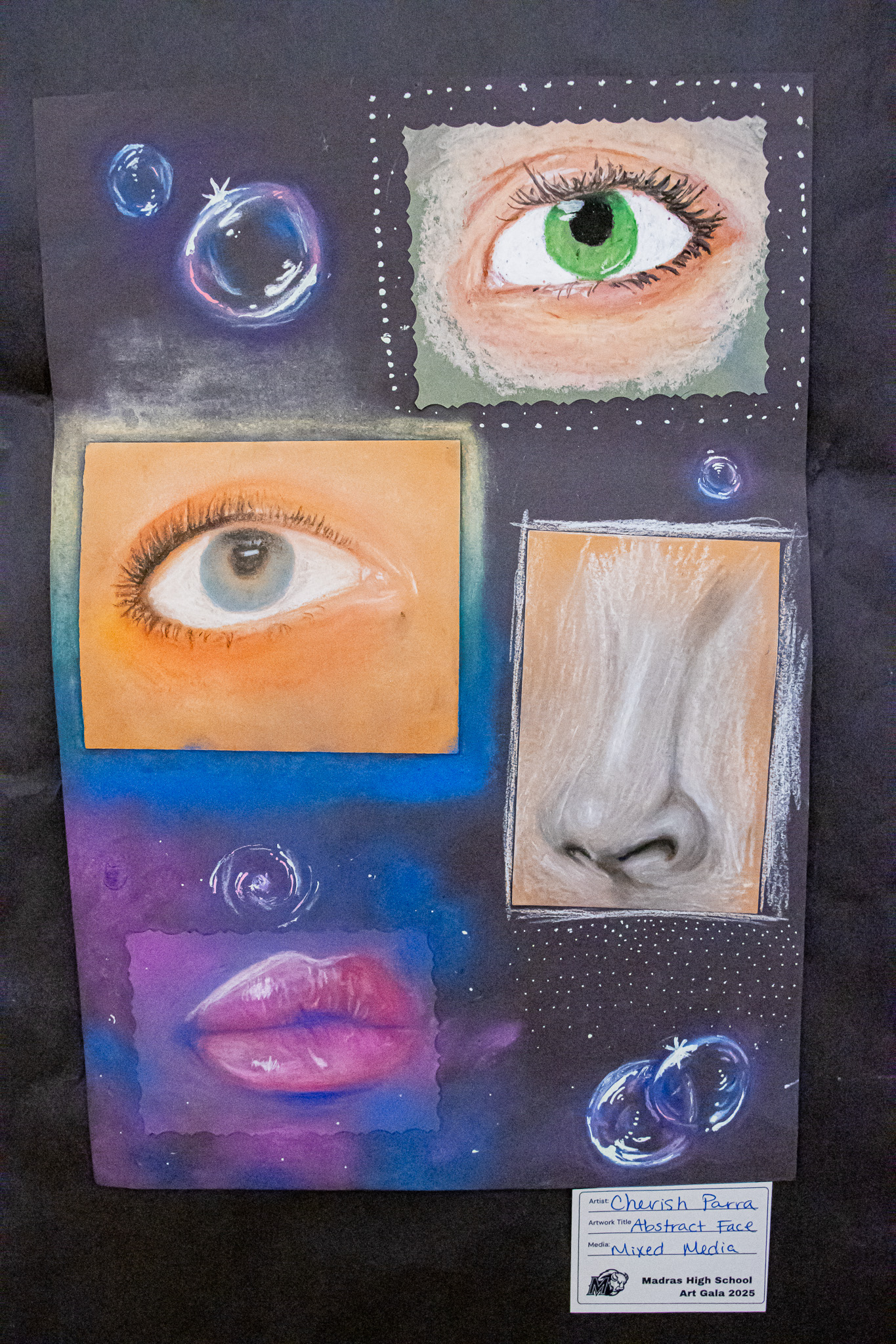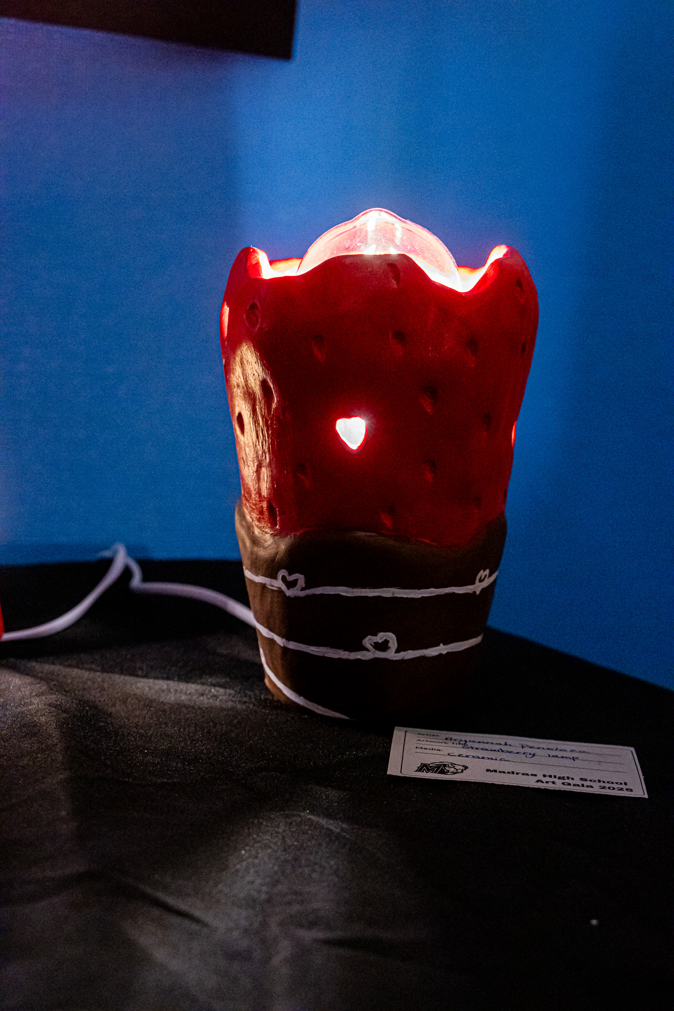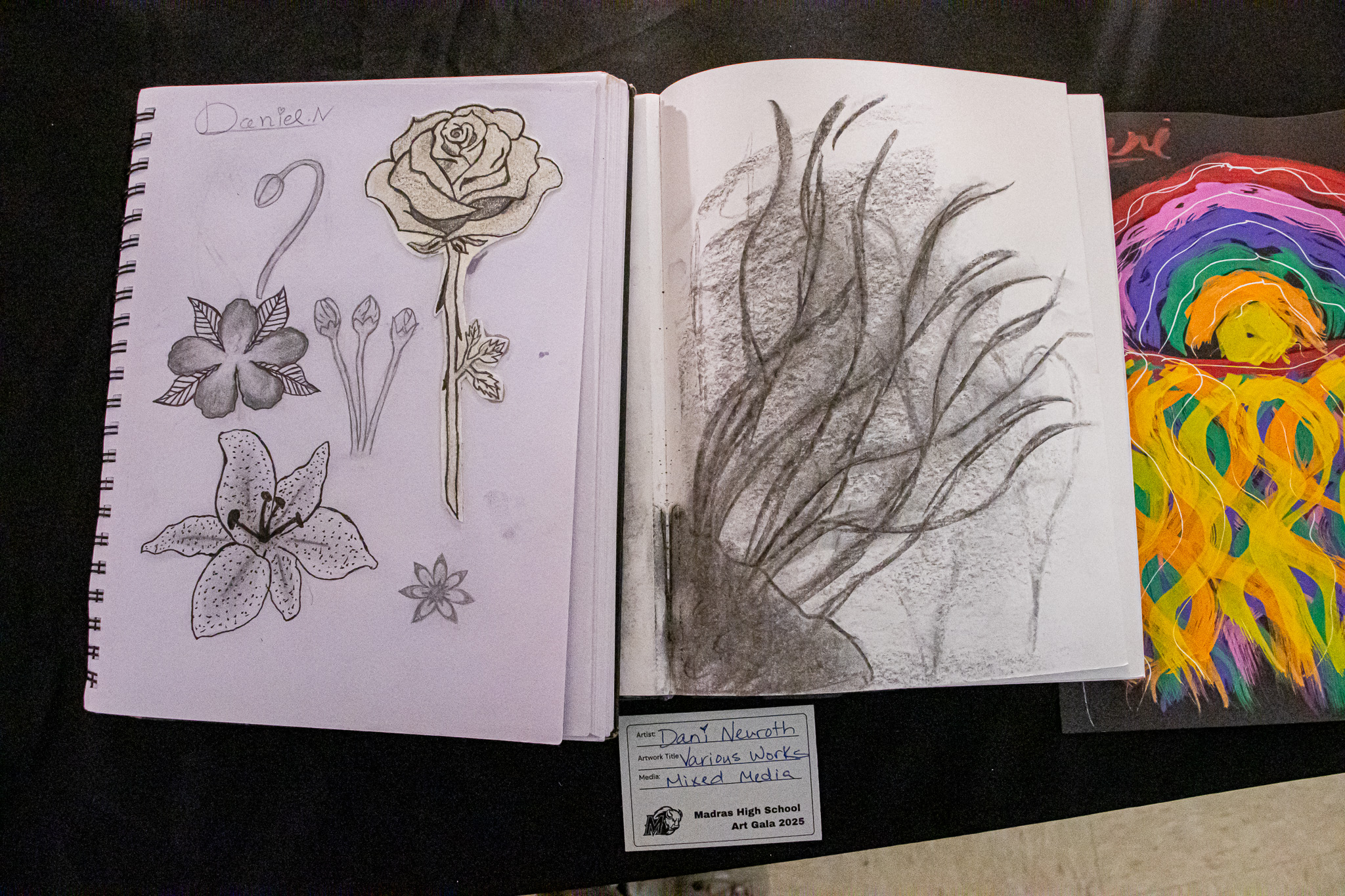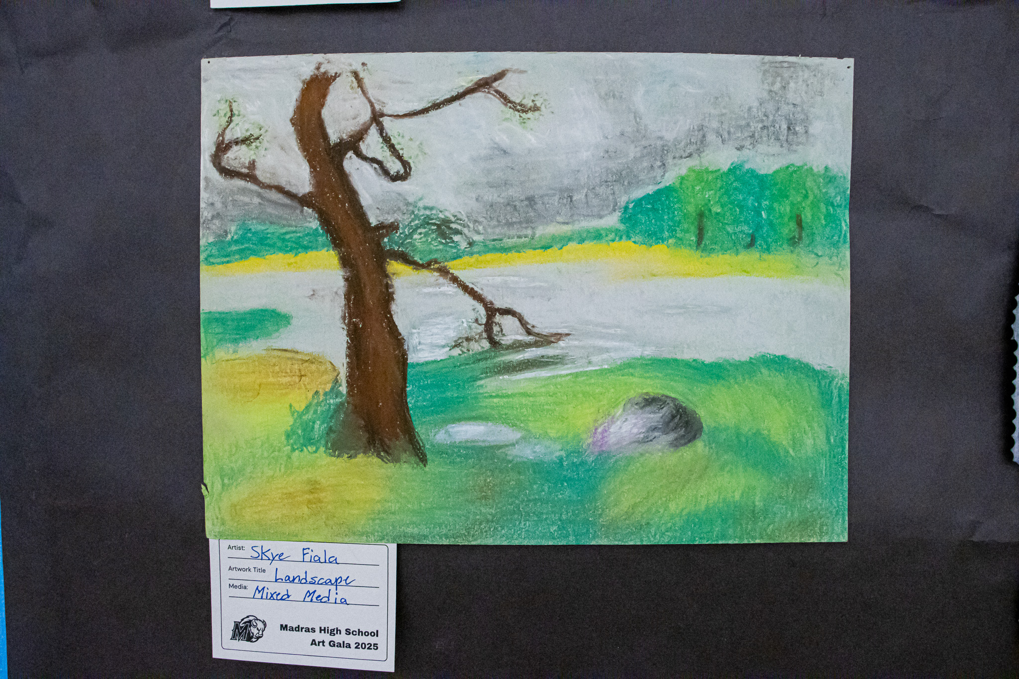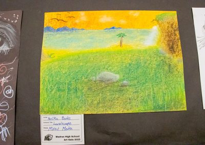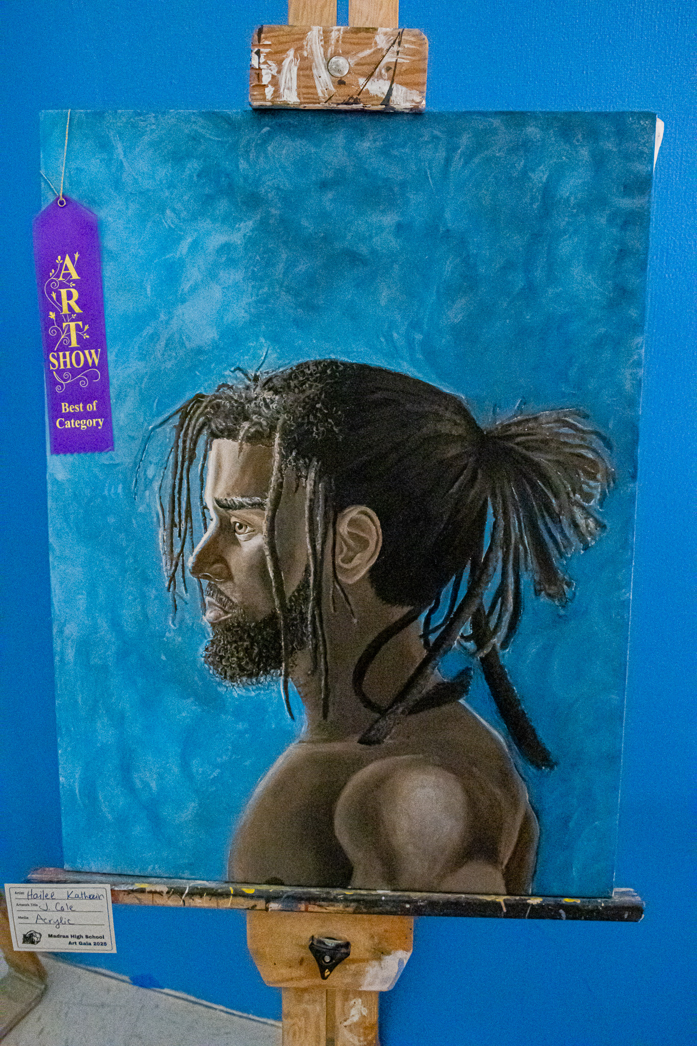 For the first time in its history, the commons of Madras High School was transformed into a vibrant art gallery for our inaugural Art Gala. Student artwork covered the walls and tables inside the commons. This included different mediums of art like ceramics, paintings, graphics, photography, and more.