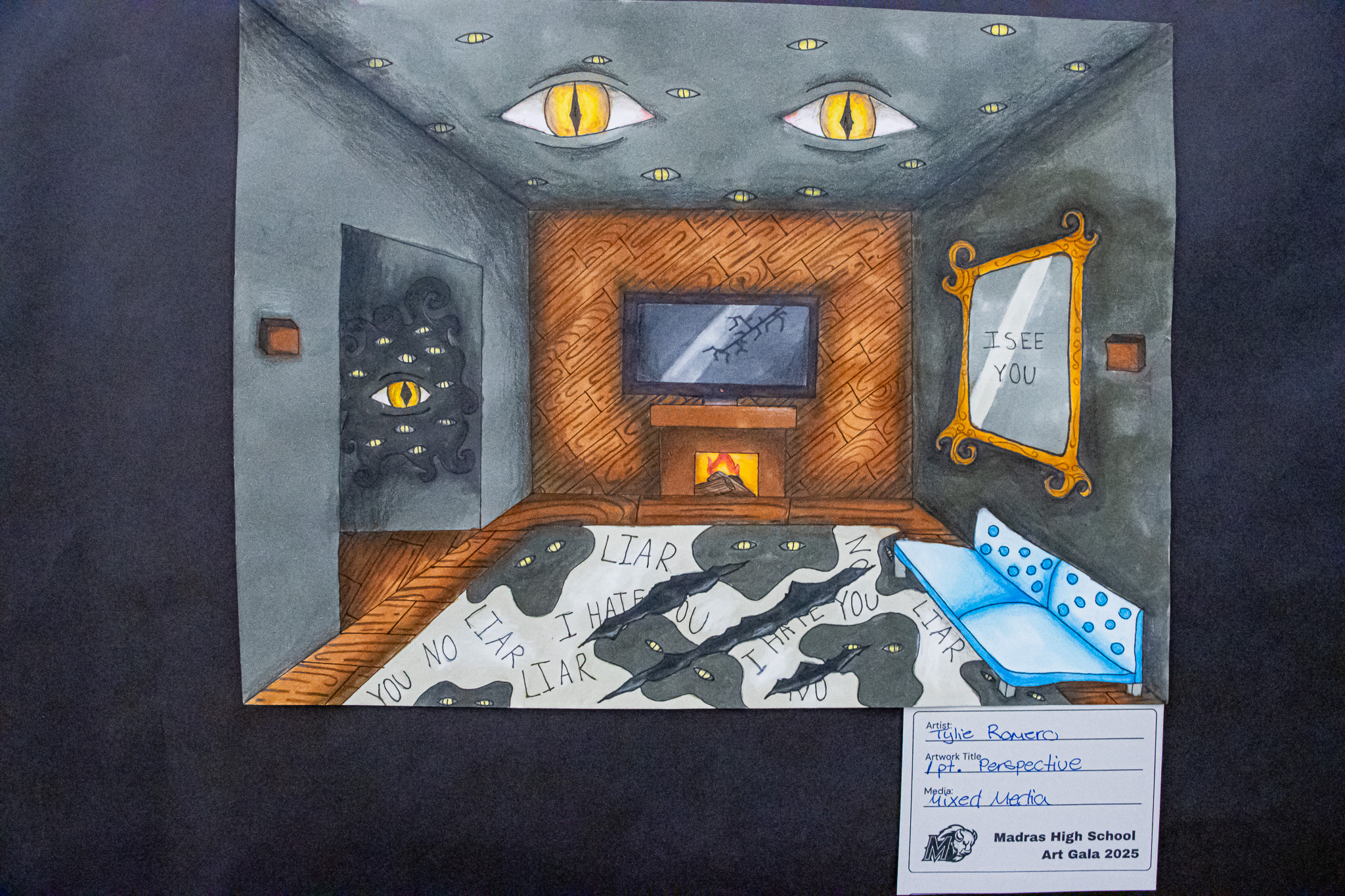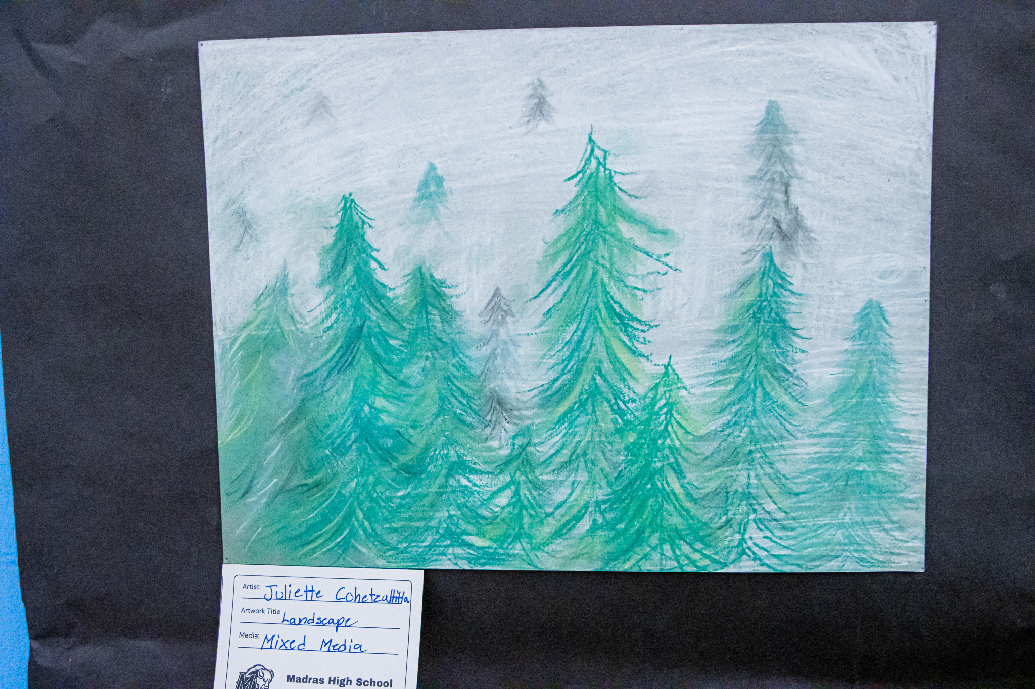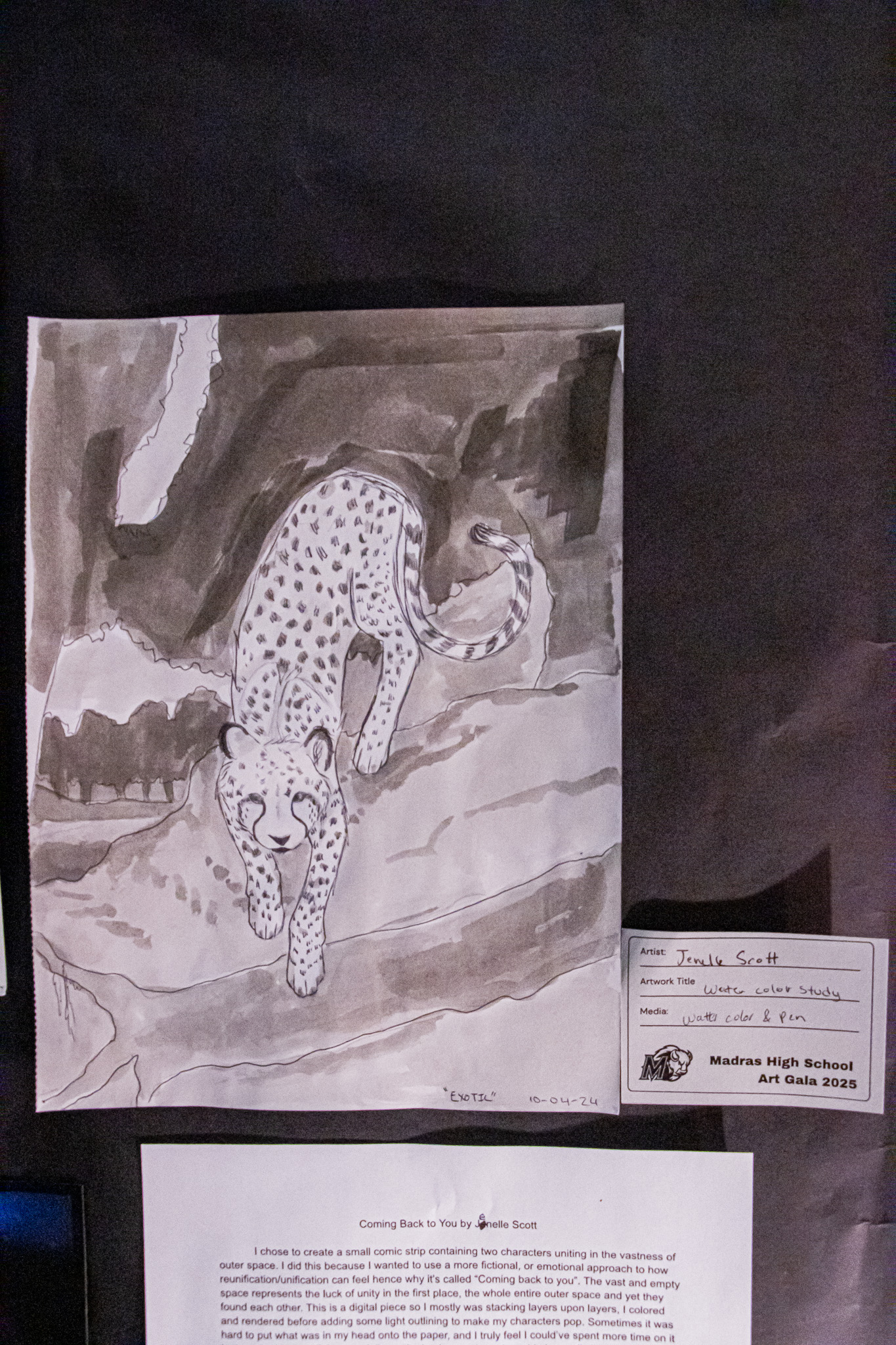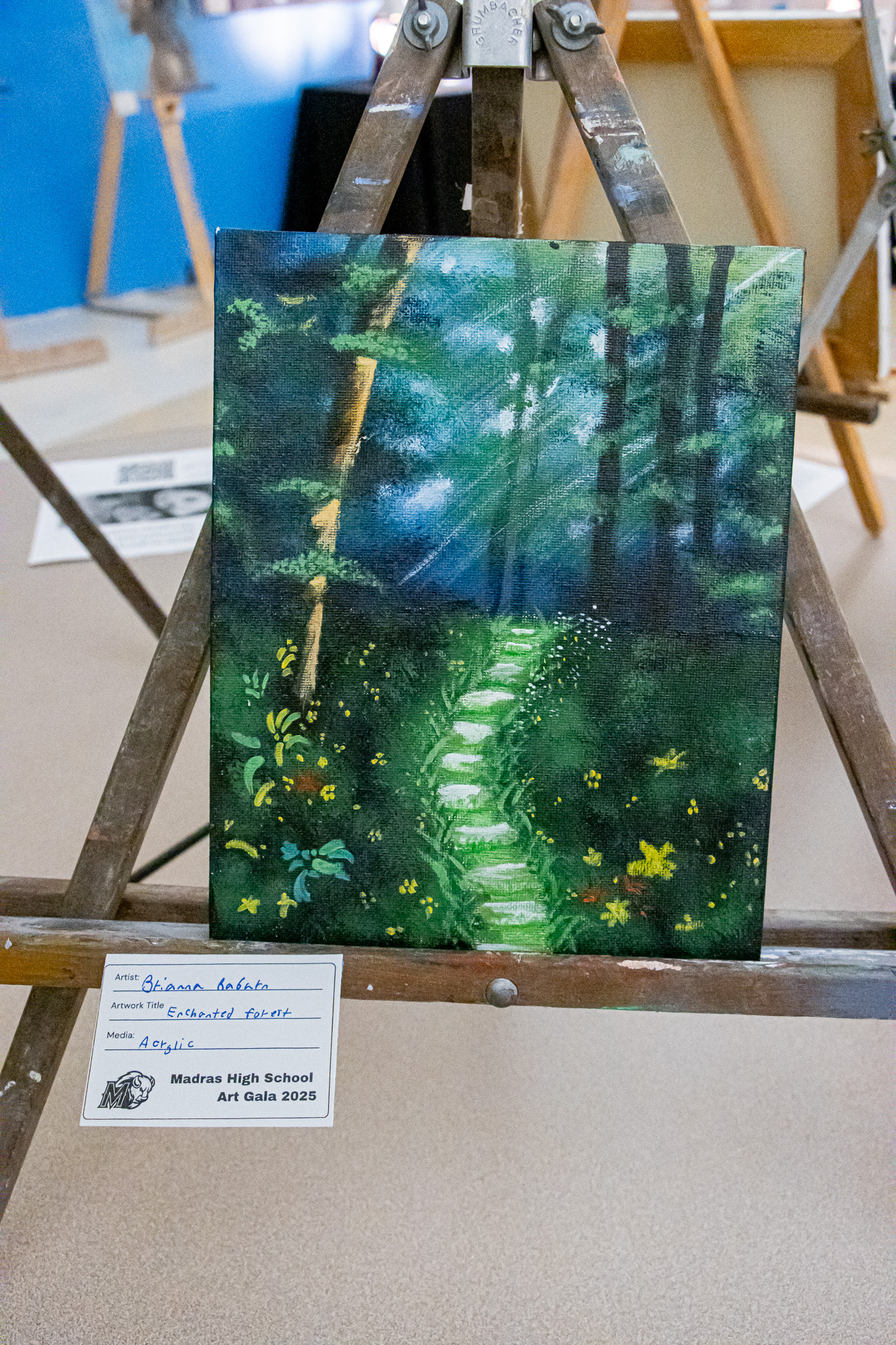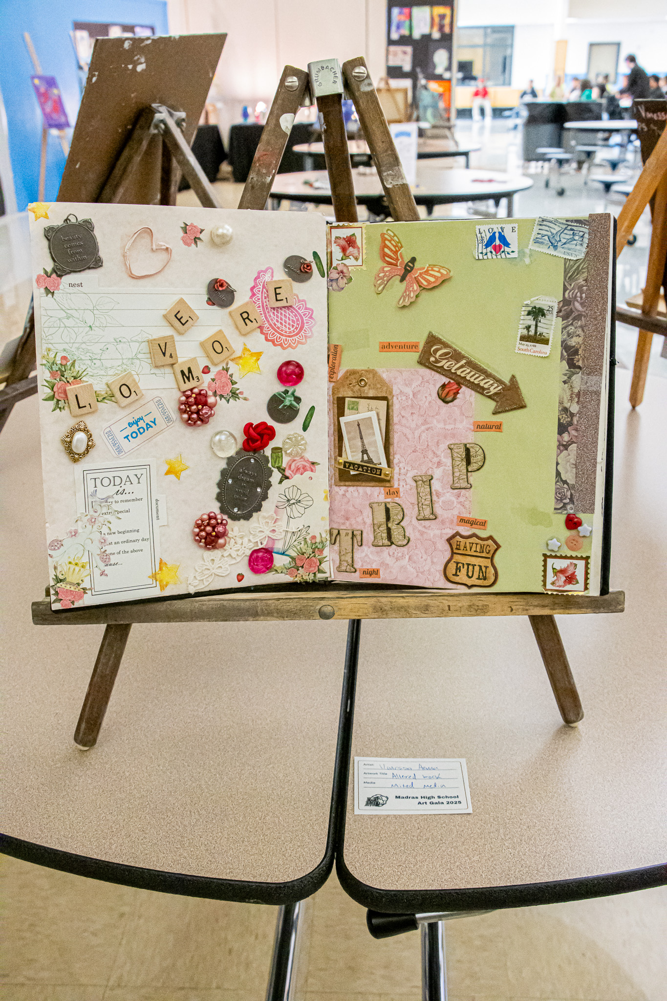For the first time in its history, the commons of Madras High School was transformed into a vibrant art gallery for our inaugural Art Gala. Student artwork covered the walls and tables inside the commons. This included different mediums of art like ceramics, paintings, graphics, photography, and more.