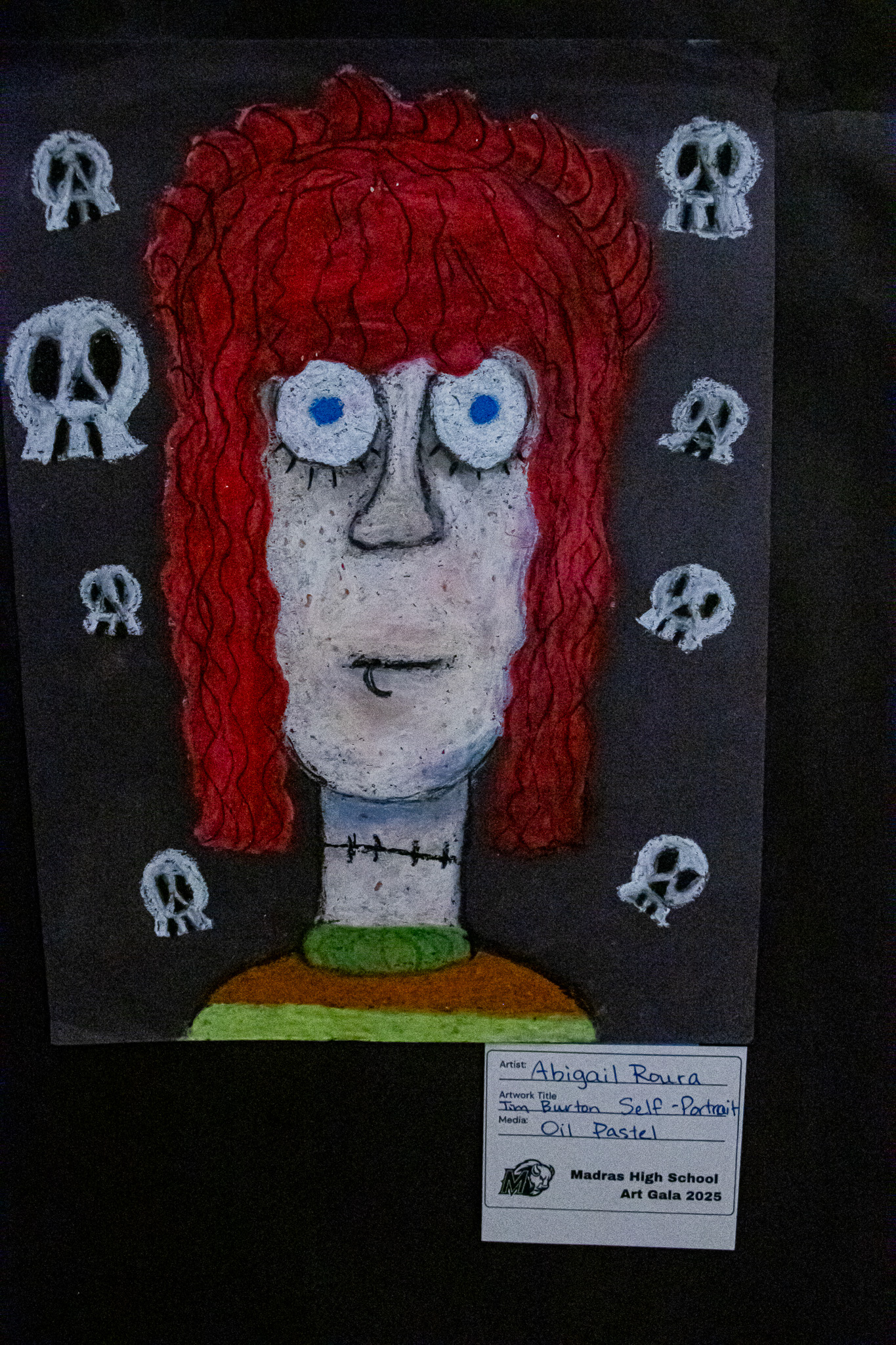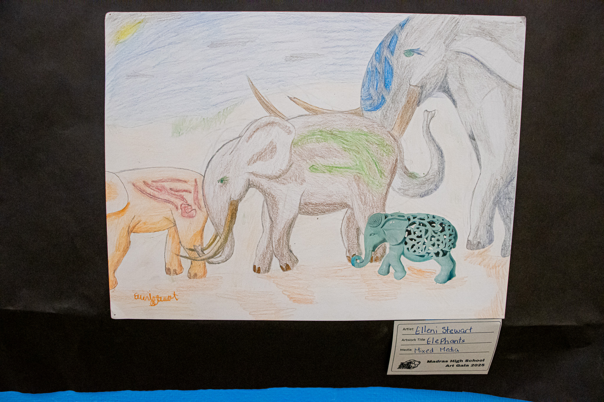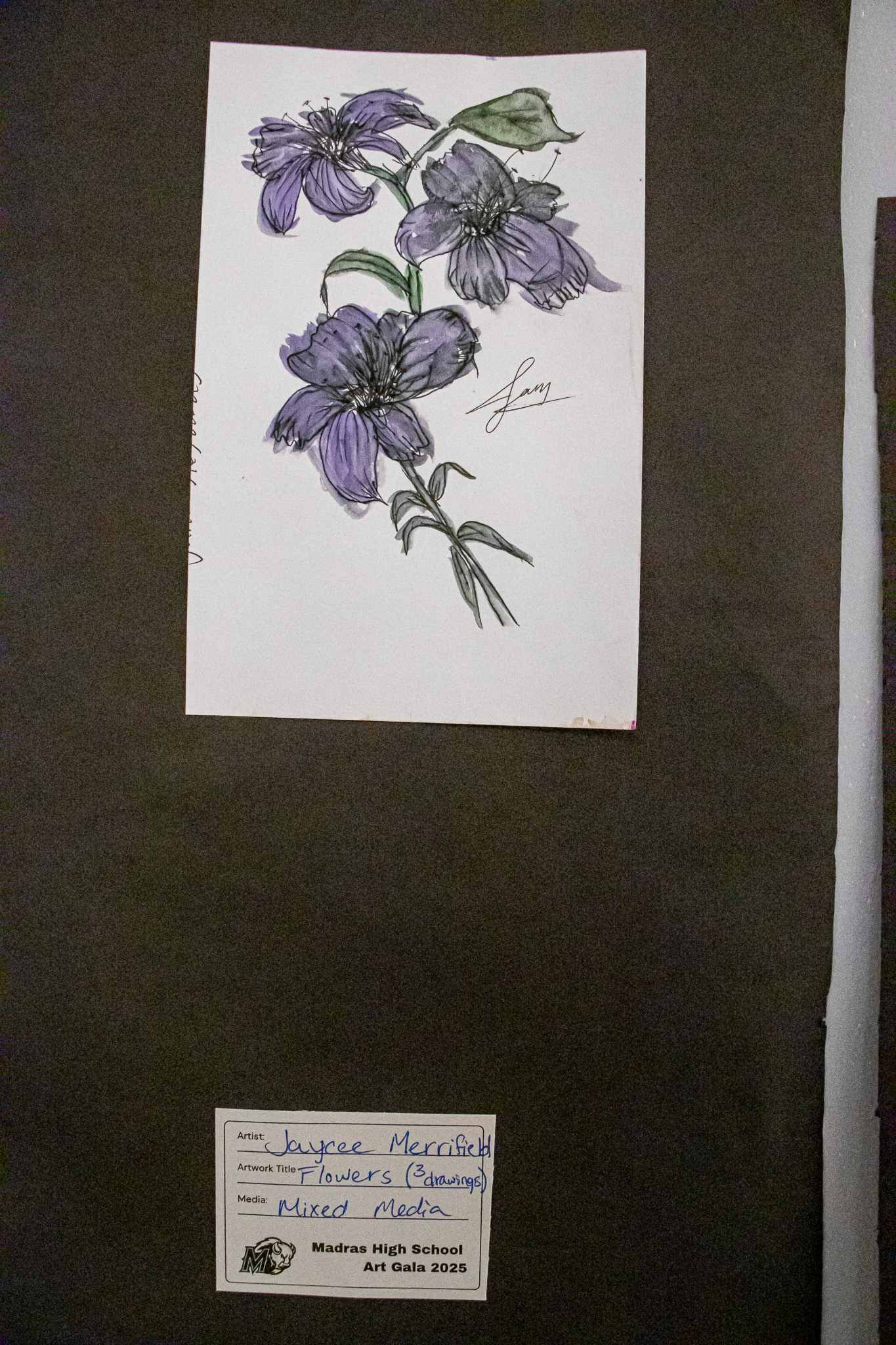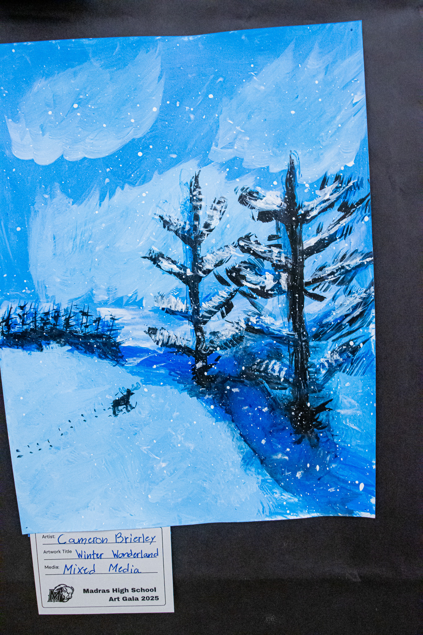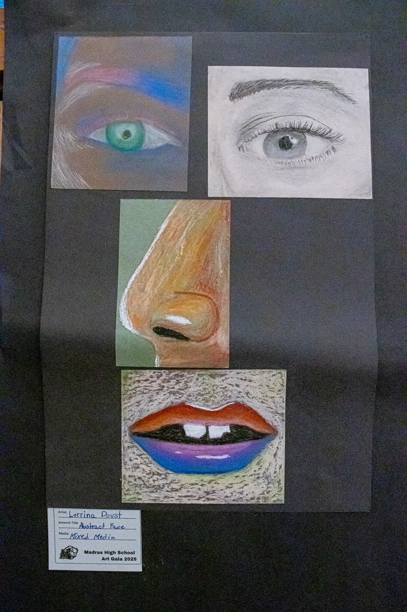 For the first time in its history, the commons of Madras High School was transformed into a vibrant art gallery for our inaugural Art Gala. Student artwork covered the walls and tables inside the commons. This included different mediums of art like ceramics, paintings, graphics, photography, and more.