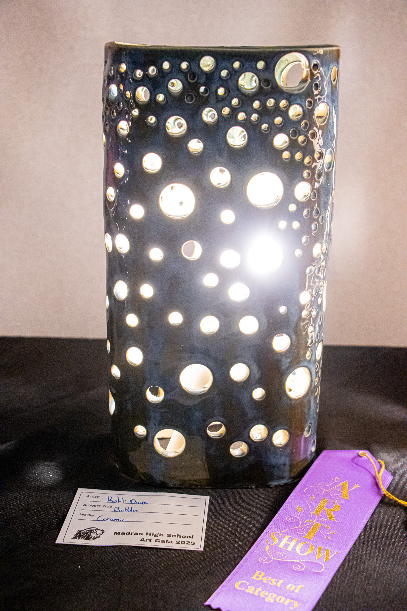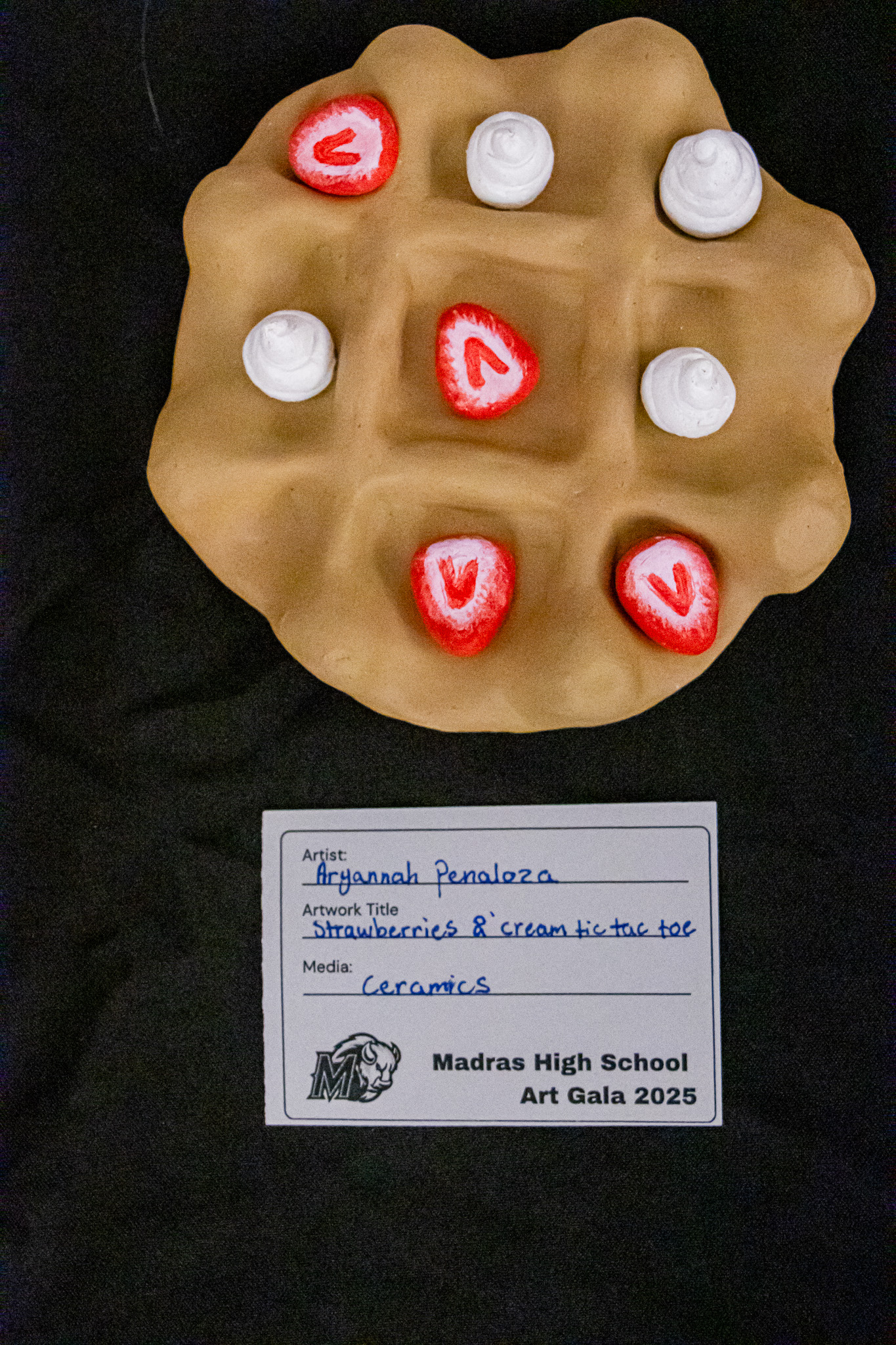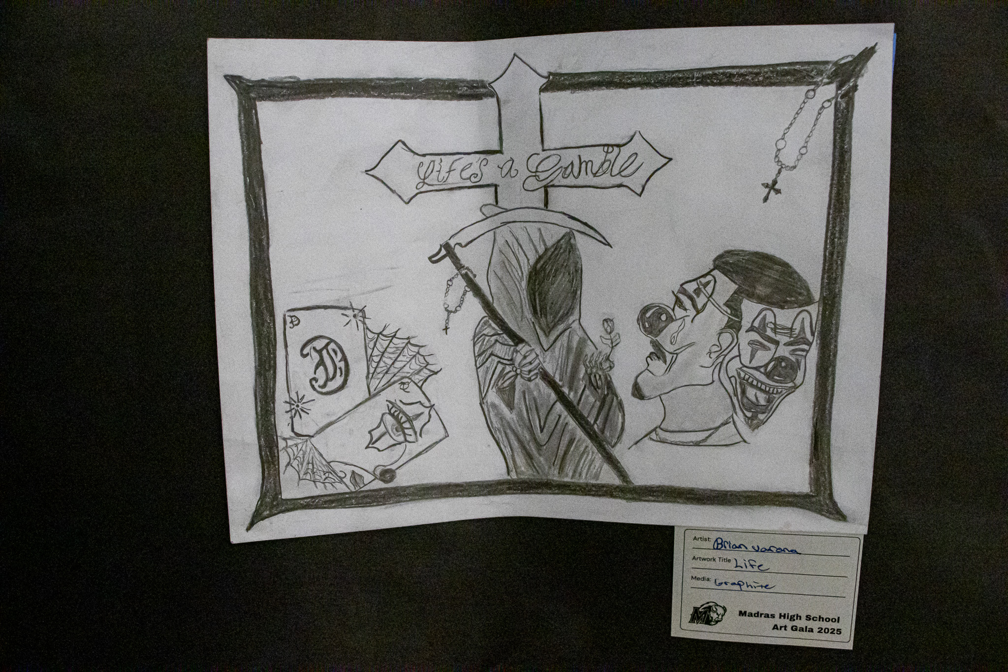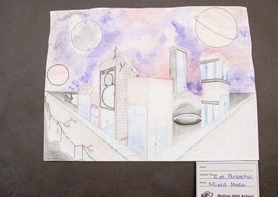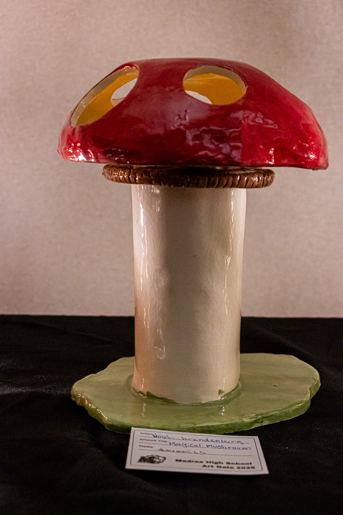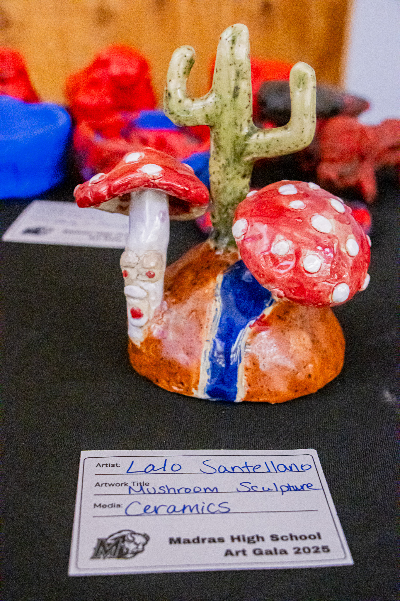 For the first time in its history, the commons of Madras High School was transformed into a vibrant art gallery for our inaugural Art Gala. Student artwork covered the walls and tables inside the commons. This included different mediums of art like ceramics, paintings, graphics, photography, and more.