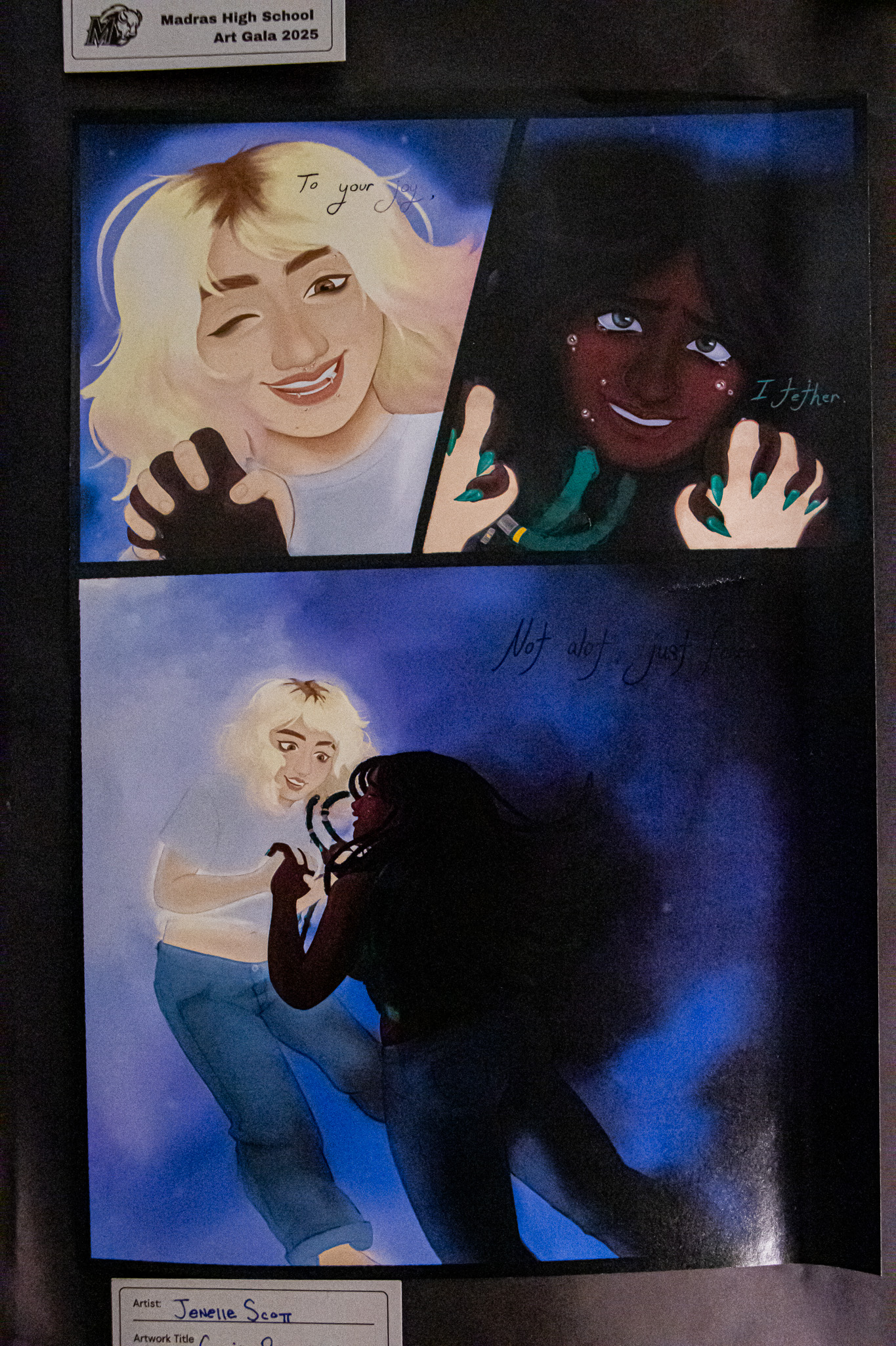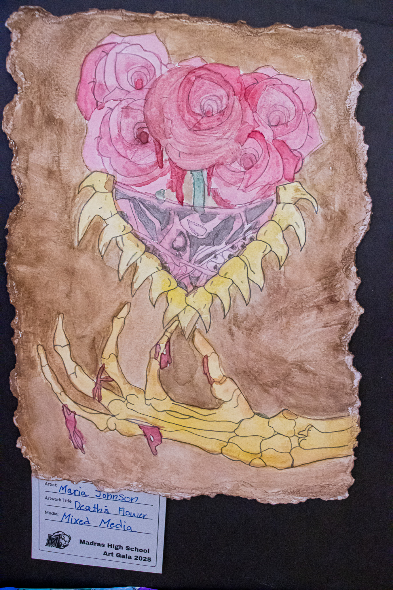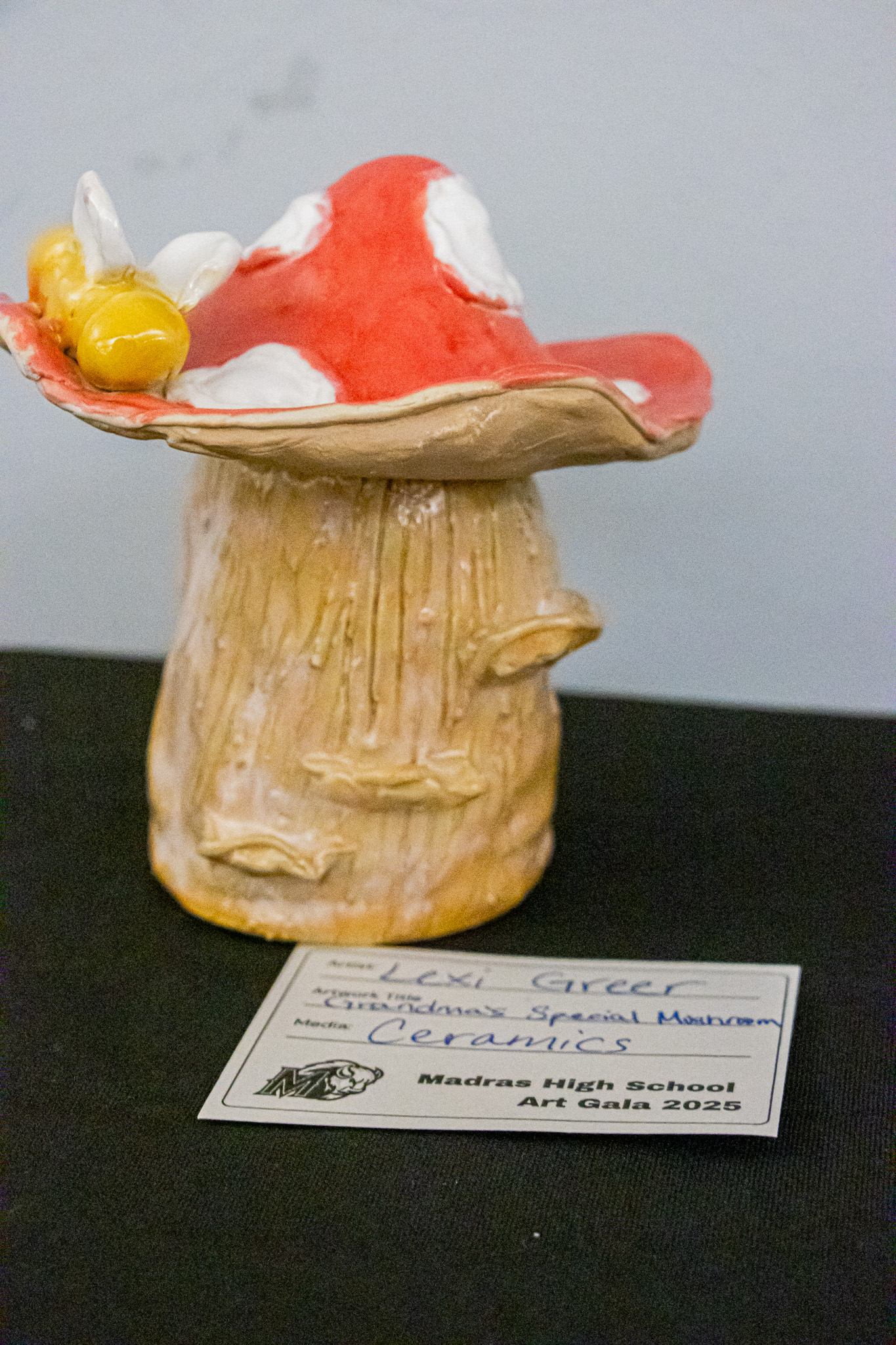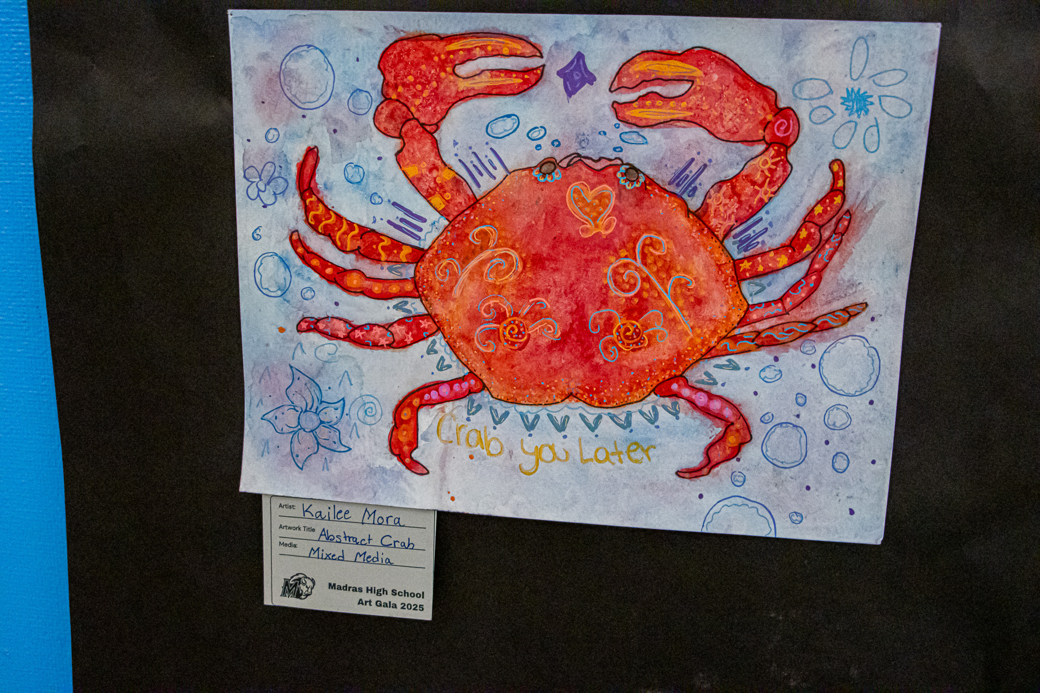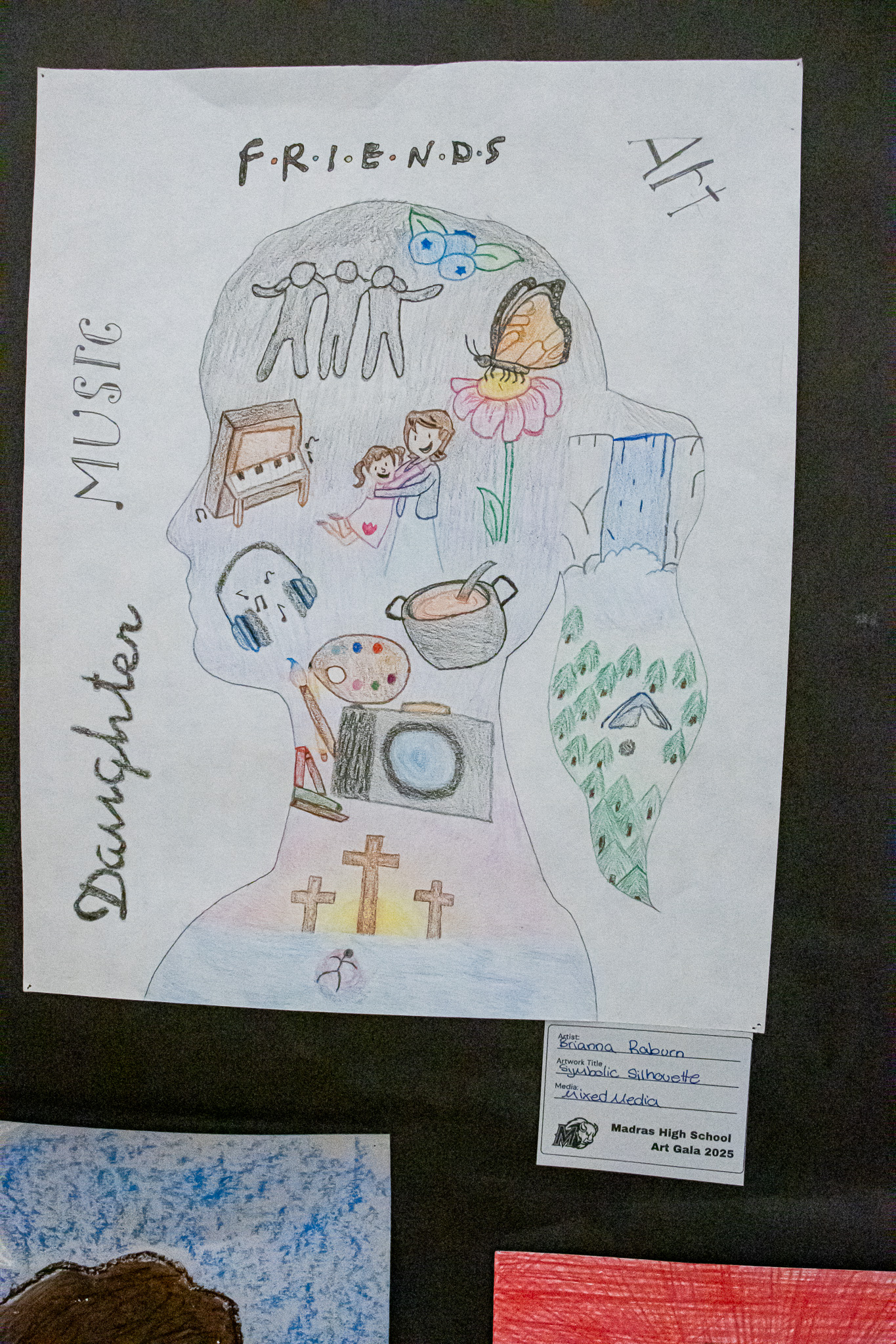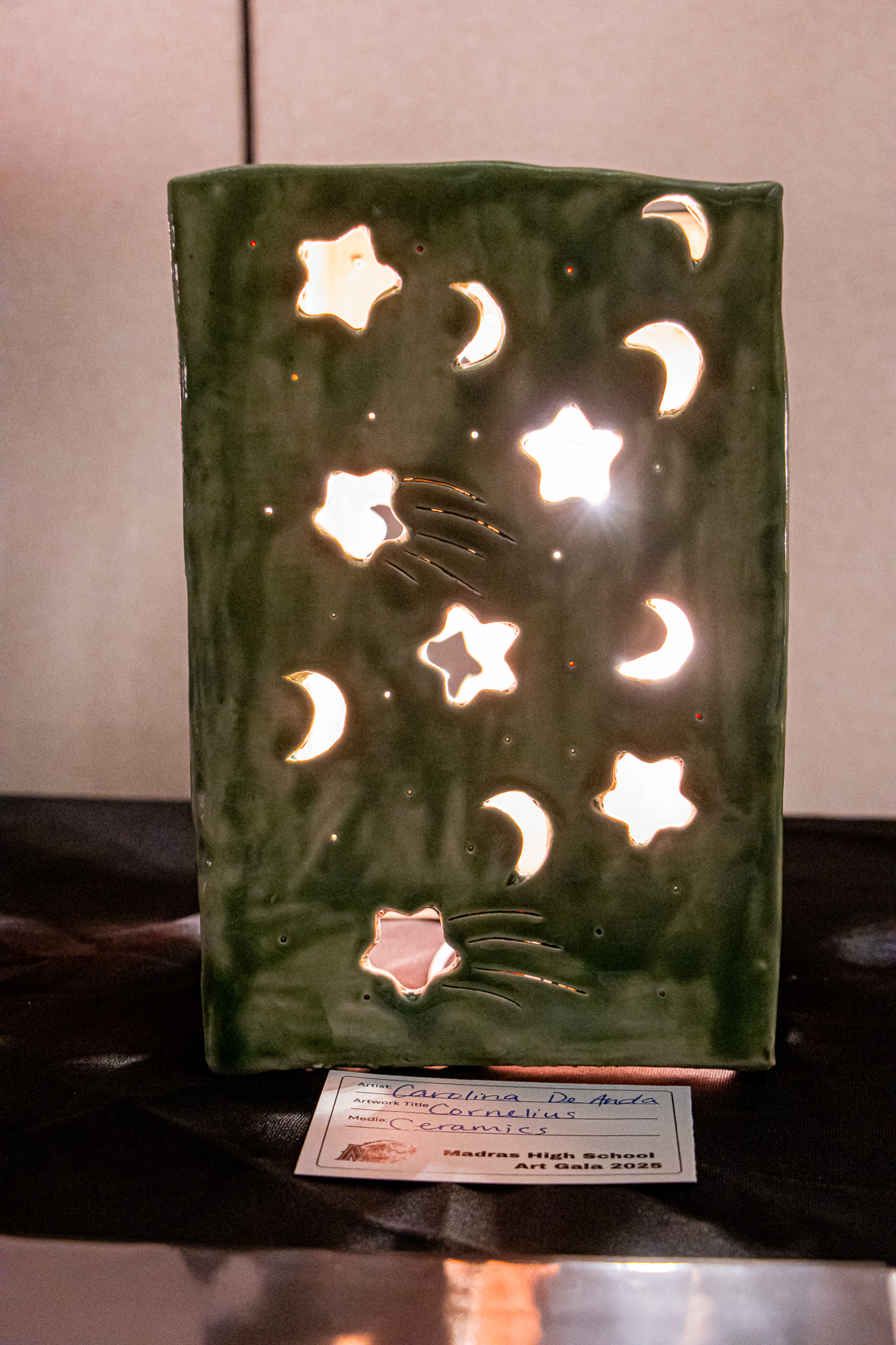 For the first time in its history, the commons of Madras High School was transformed into a vibrant art gallery for our inaugural Art Gala. Student artwork covered the walls and tables inside the commons. This included different mediums of art like ceramics, paintings, graphics, photography, and more.
