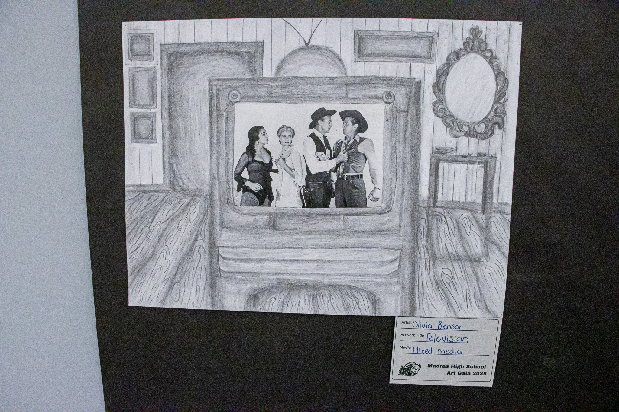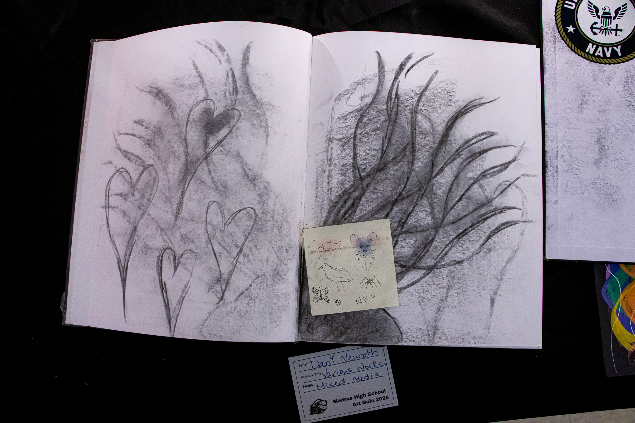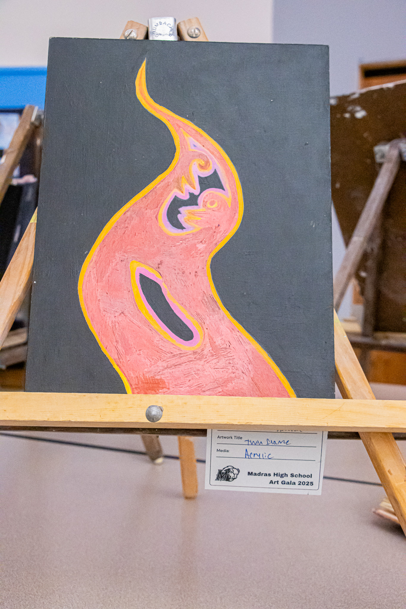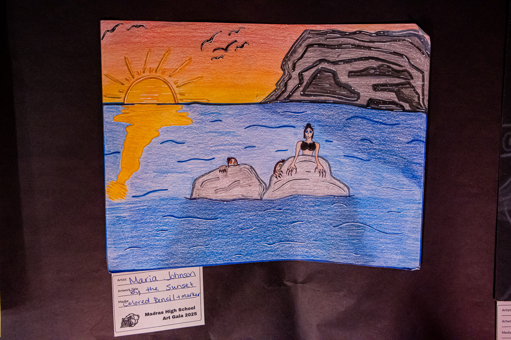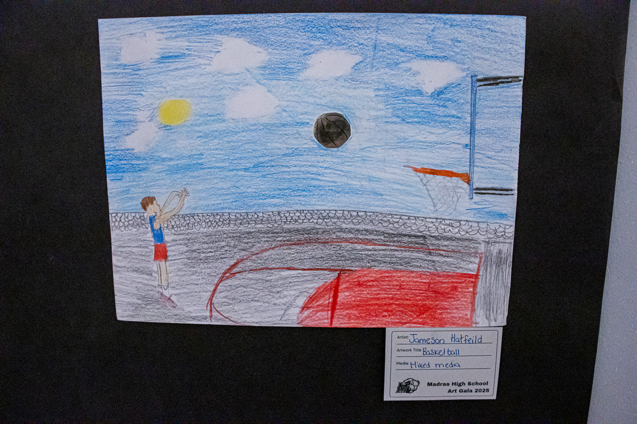 For the first time in its history, the commons of Madras High School was transformed into a vibrant art gallery for our inaugural Art Gala. Student artwork covered the walls and tables inside the commons. This included different mediums of art like ceramics, paintings, graphics, photography, and more.