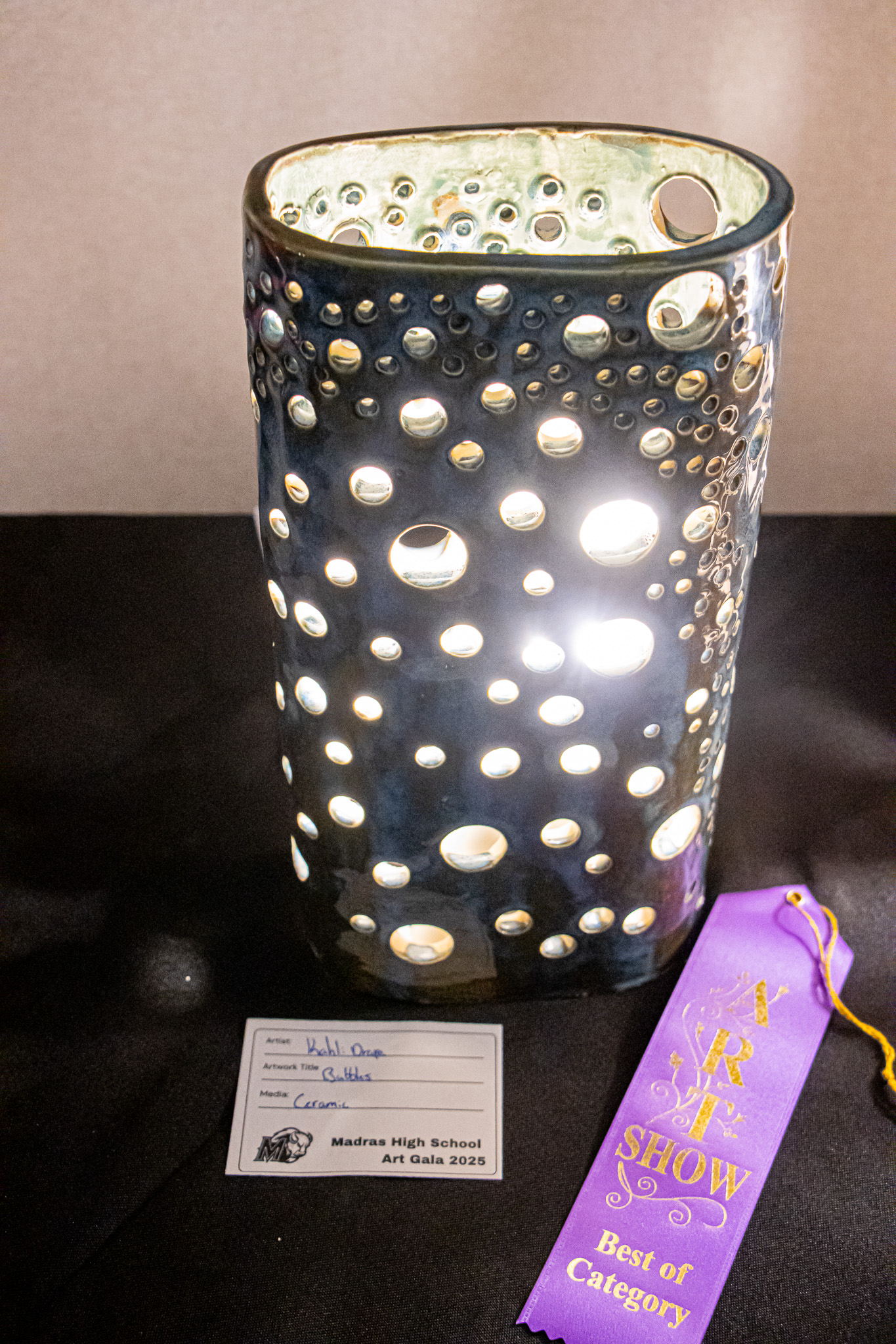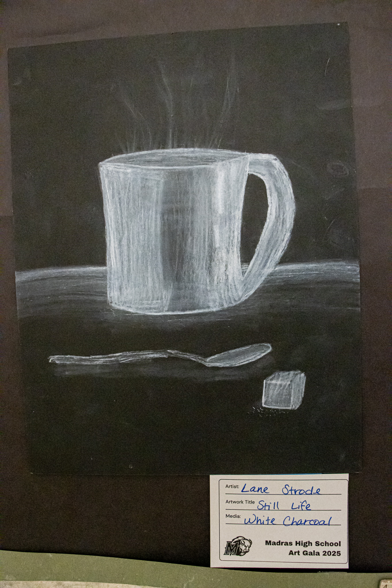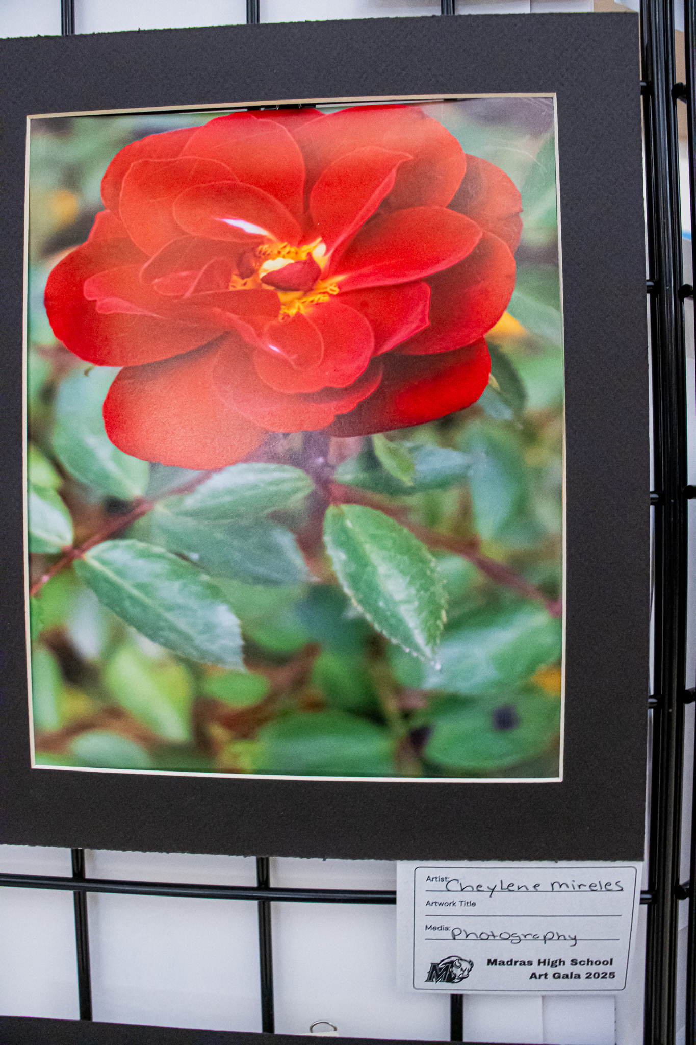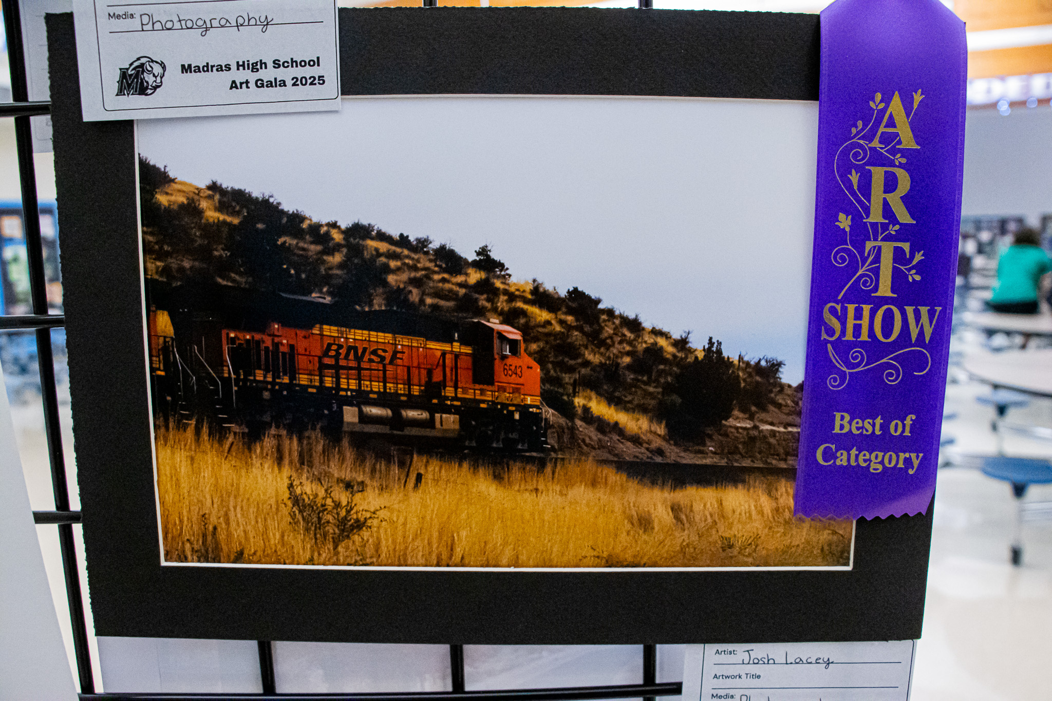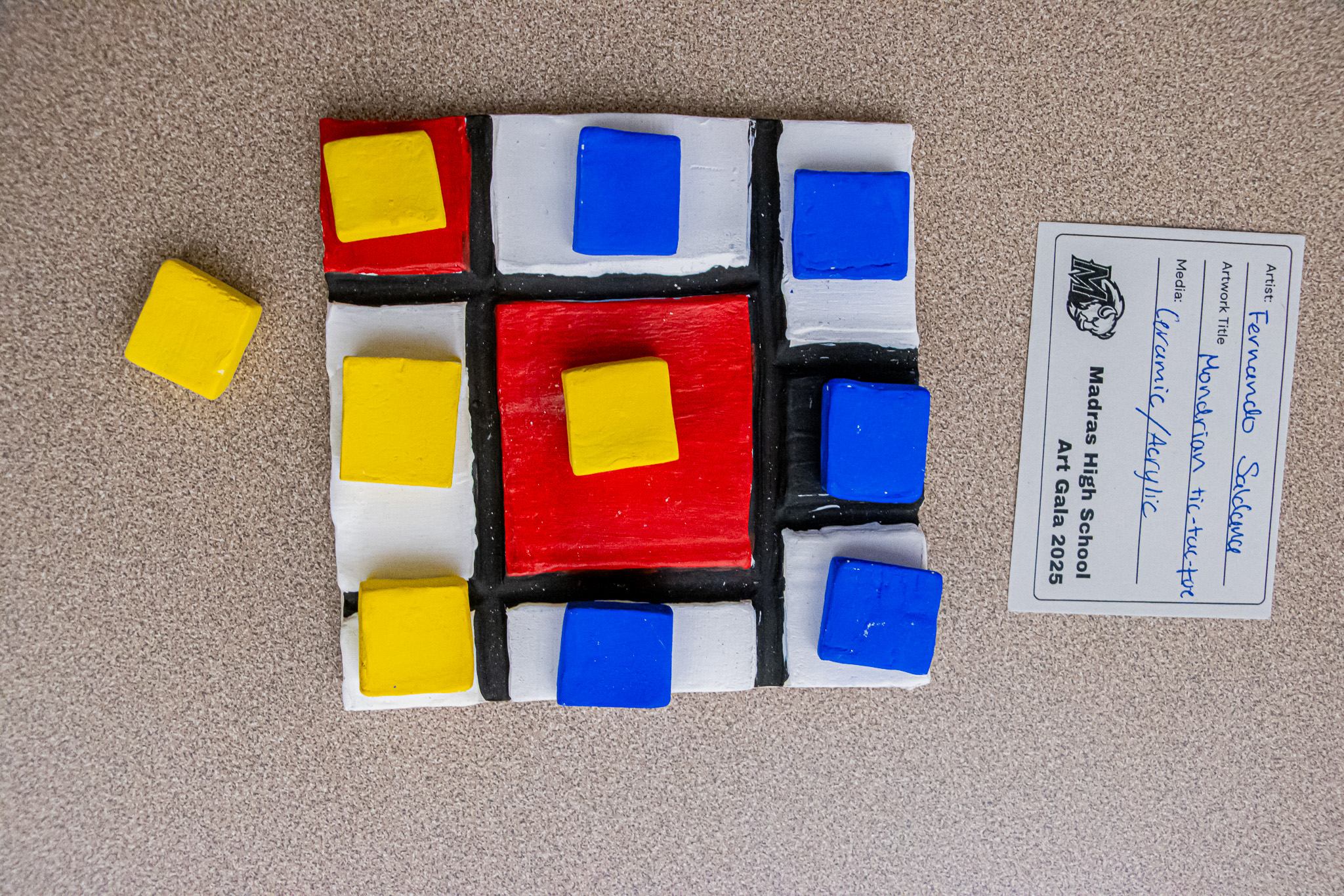 For the first time in its history, the commons of Madras High School was transformed into a vibrant art gallery for our inaugural Art Gala. Student artwork covered the walls and tables inside the commons. This included different mediums of art like ceramics, paintings, graphics, photography, and more.
