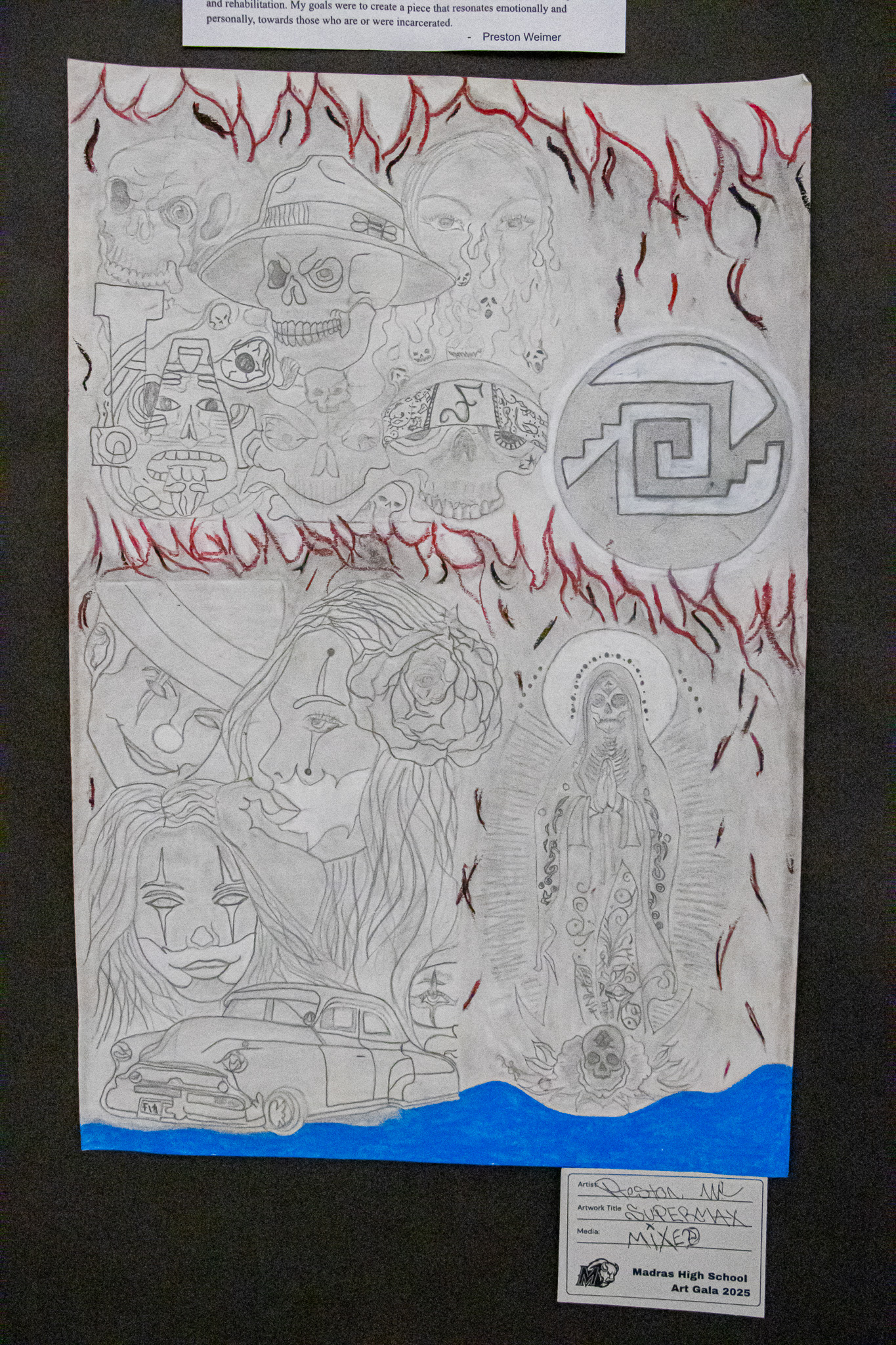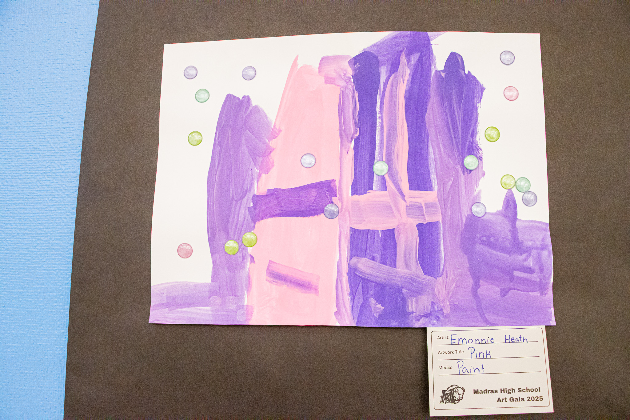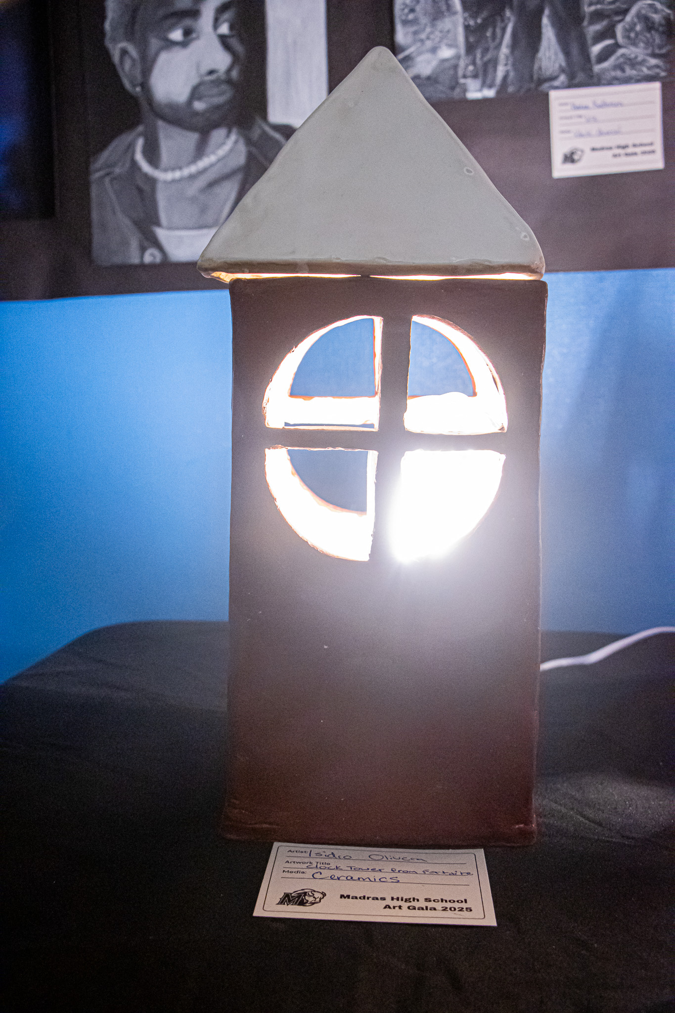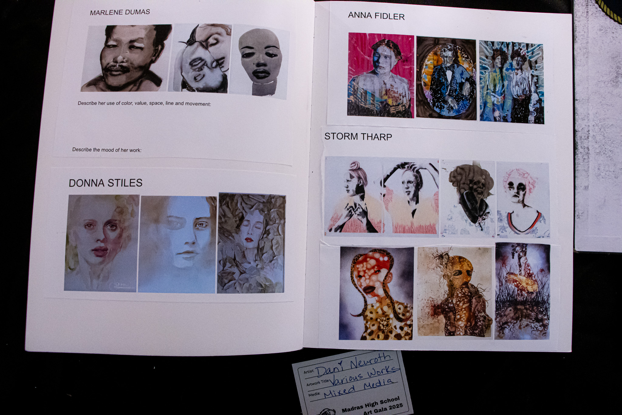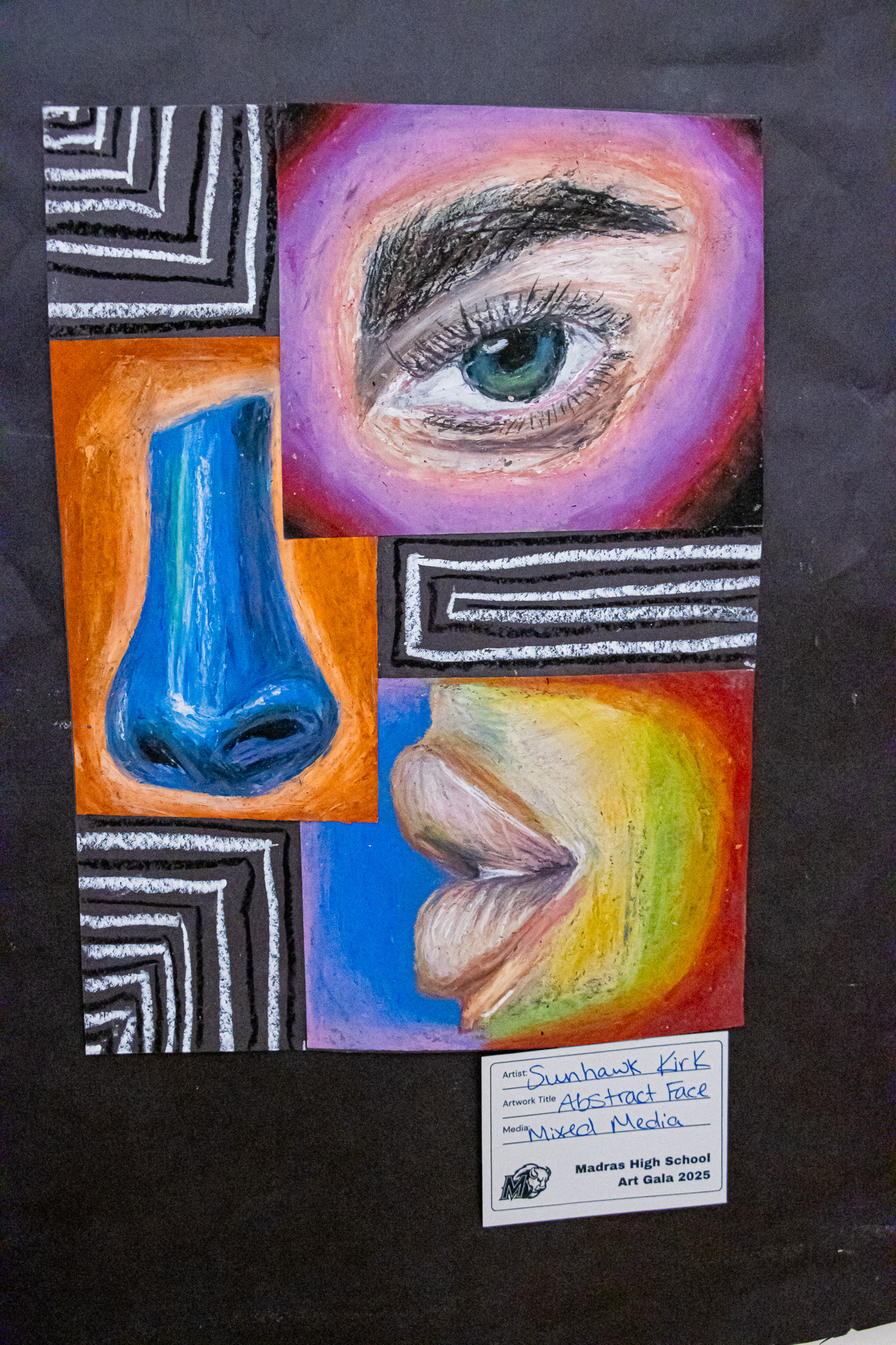 For the first time in its history, the commons of Madras High School was transformed into a vibrant art gallery for our inaugural Art Gala. Student artwork covered the walls and tables inside the commons. This included different mediums of art like ceramics, paintings, graphics, photography, and more.