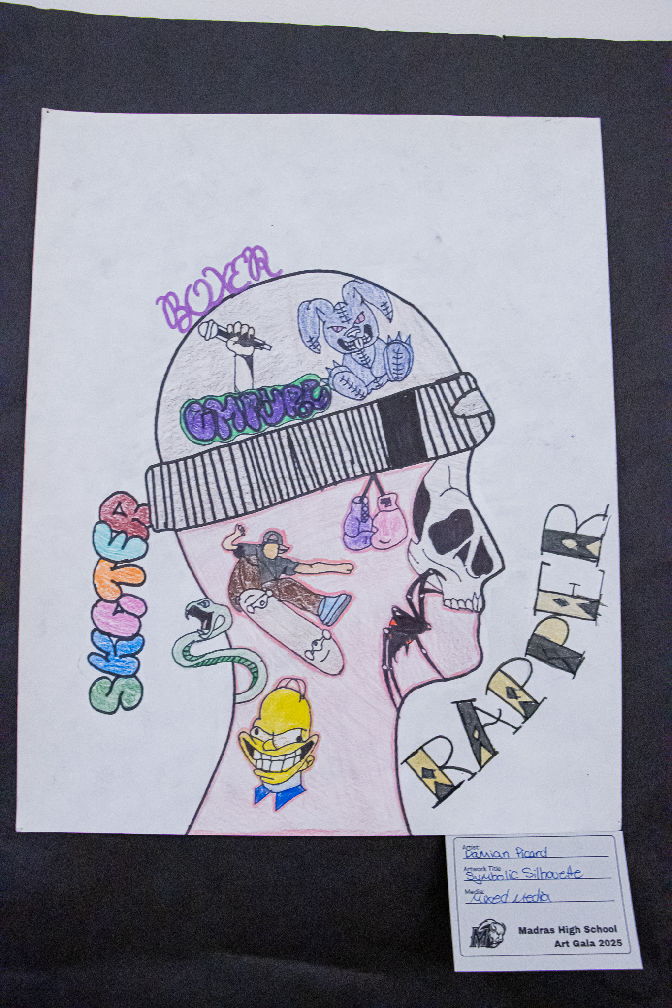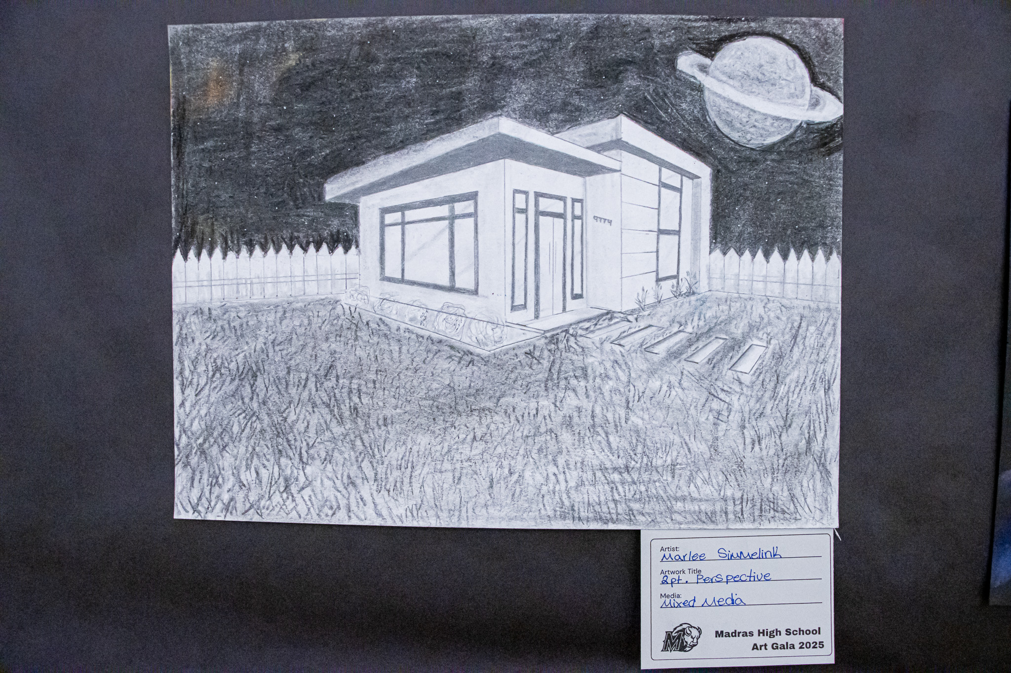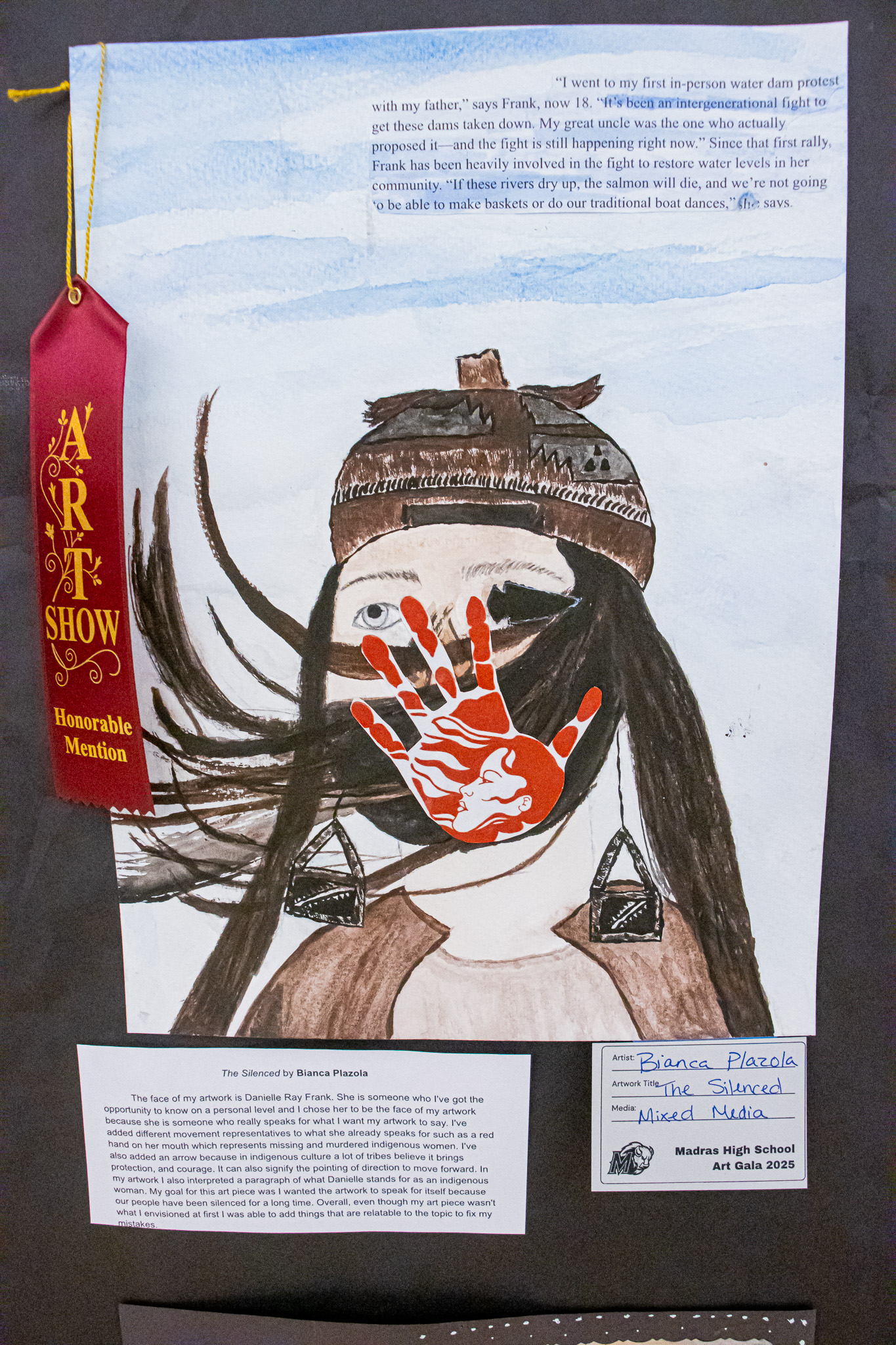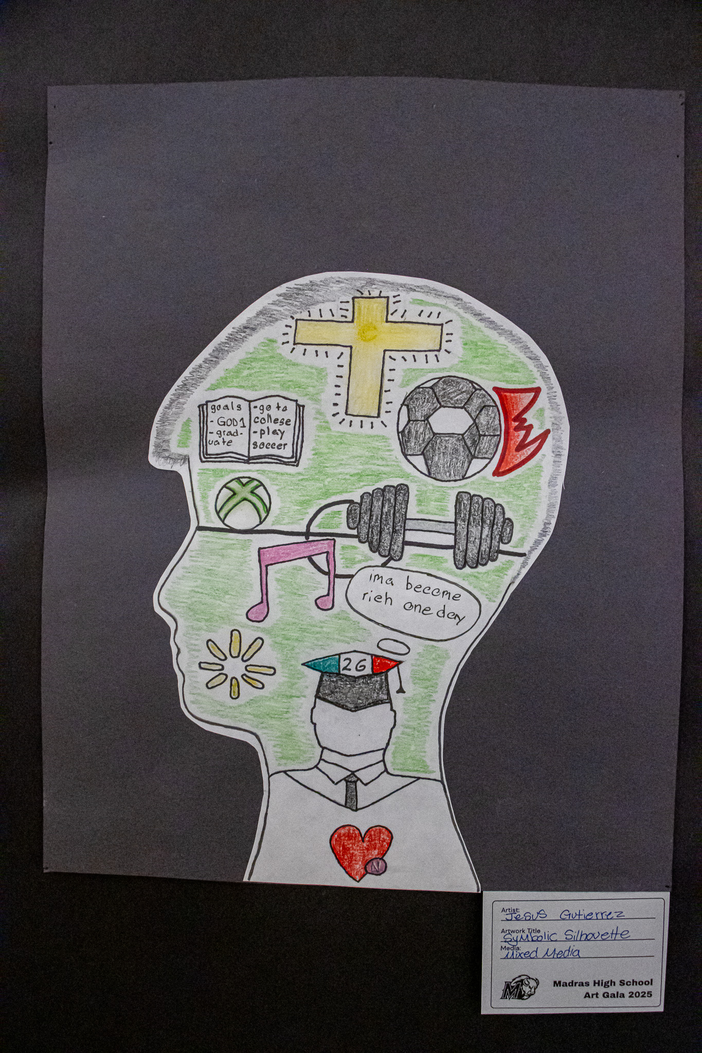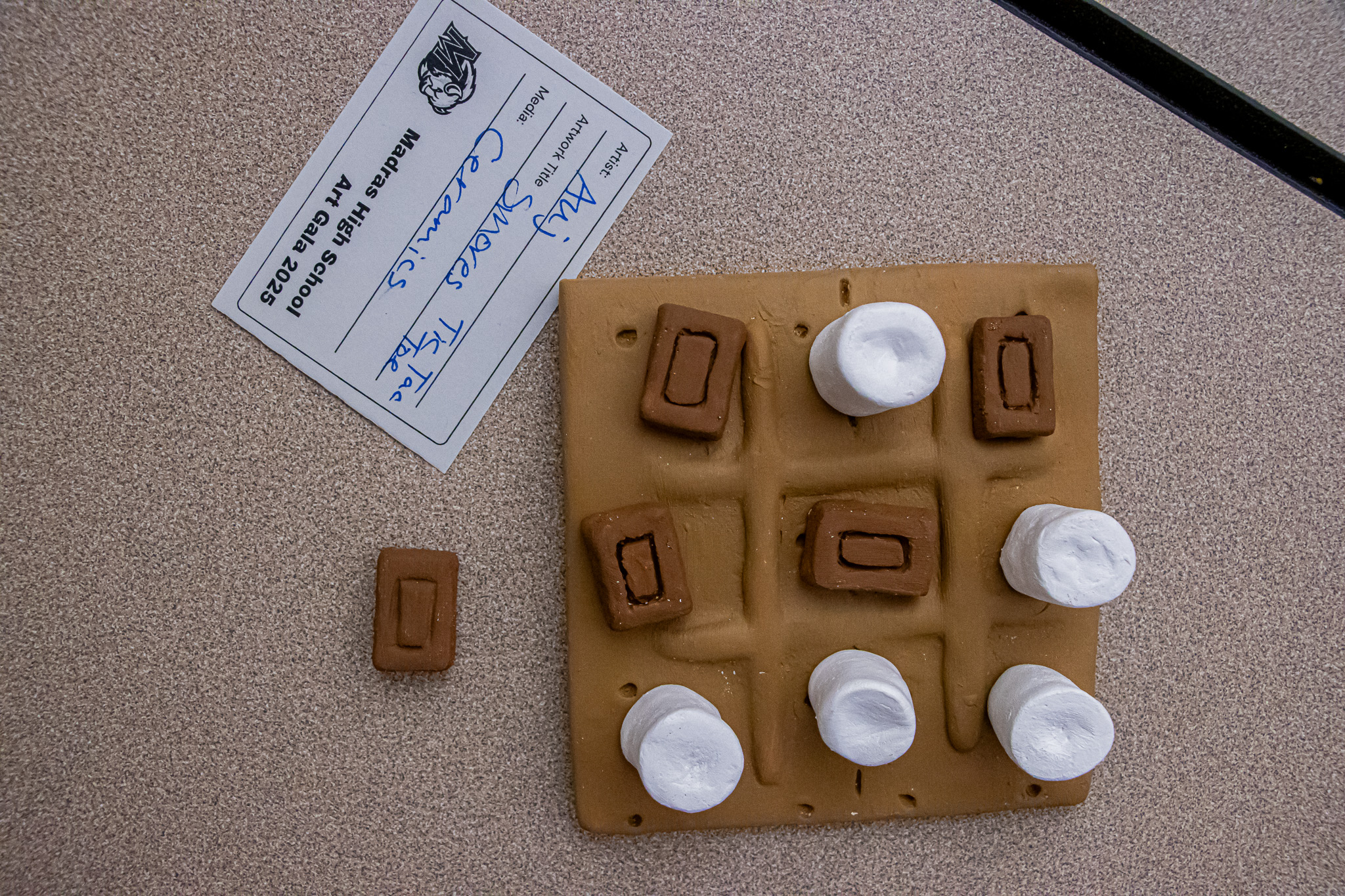 For the first time in its history, the commons of Madras High School was transformed into a vibrant art gallery for our inaugural Art Gala. Student artwork covered the walls and tables inside the commons. This included different mediums of art like ceramics, paintings, graphics, photography, and more.