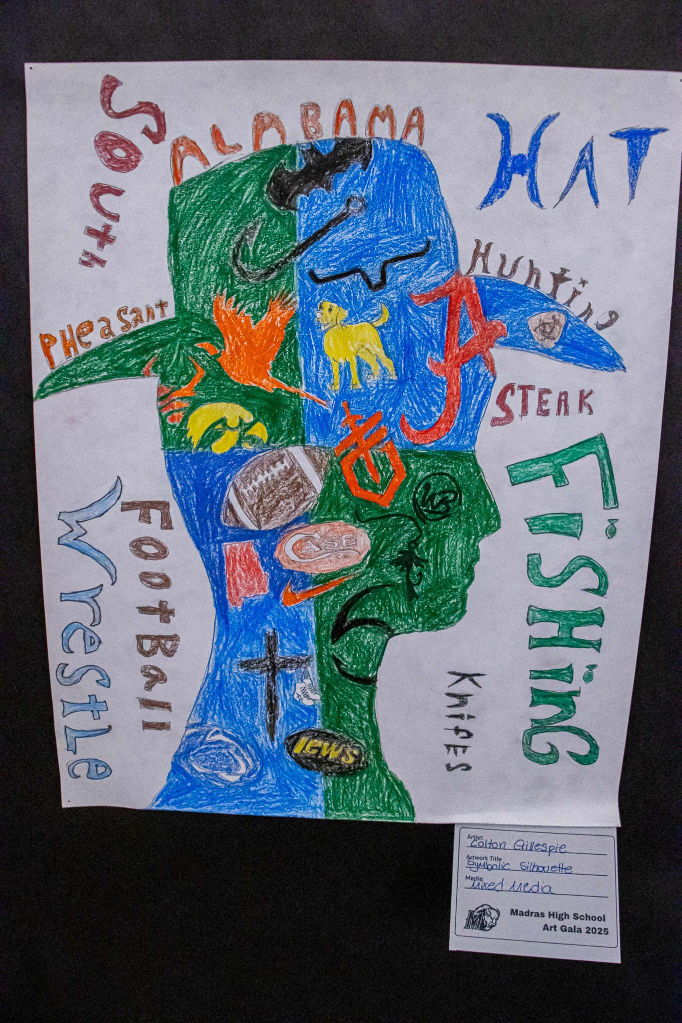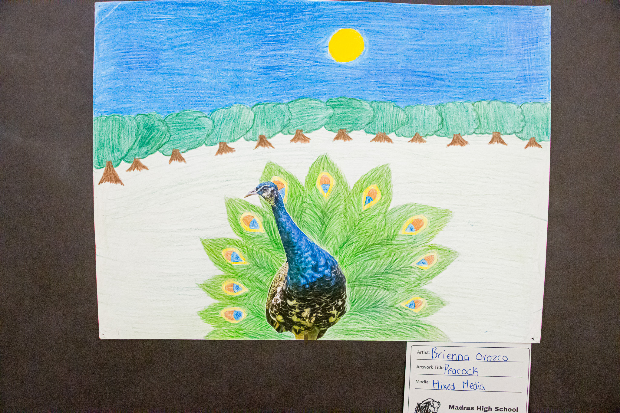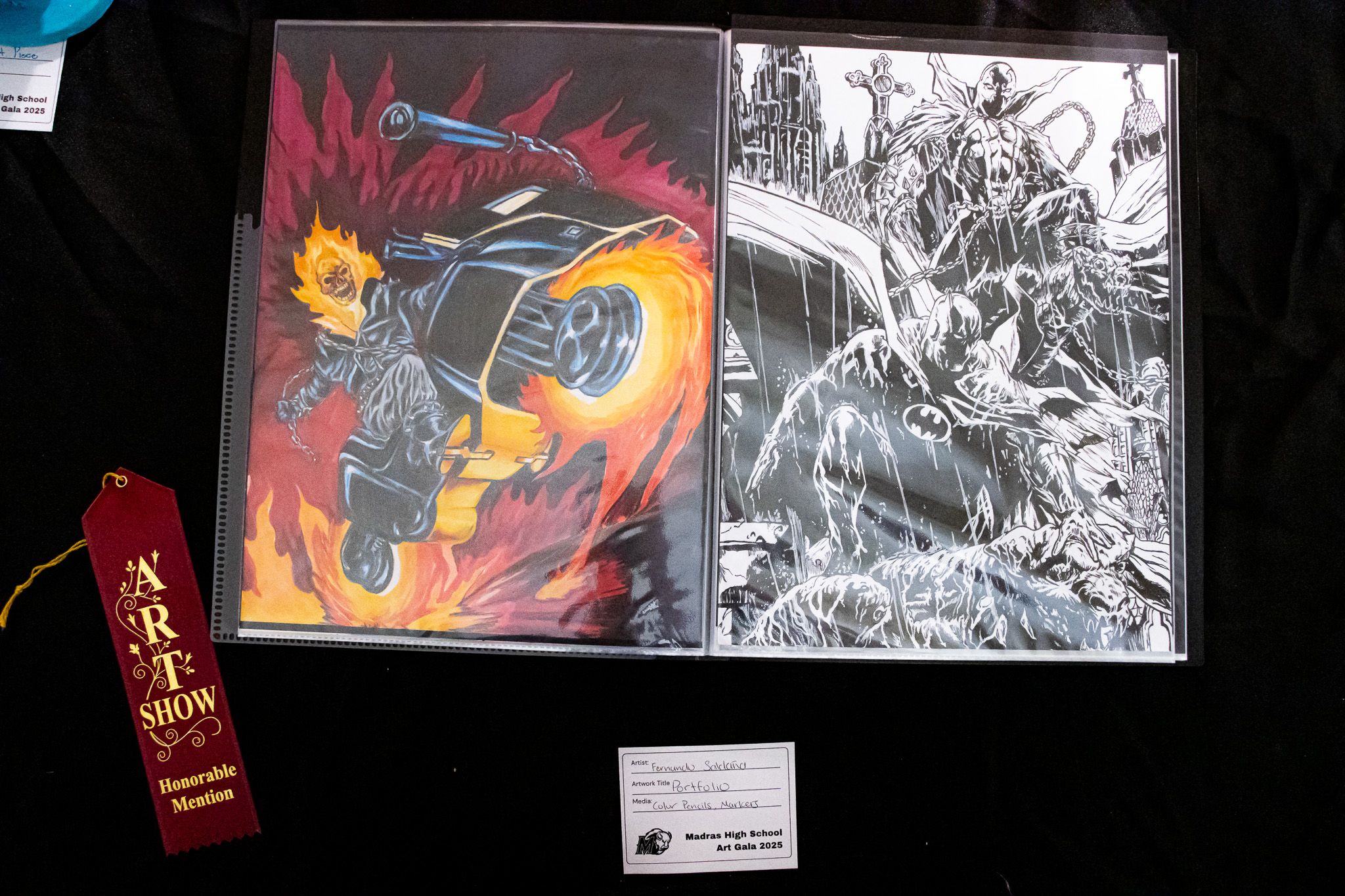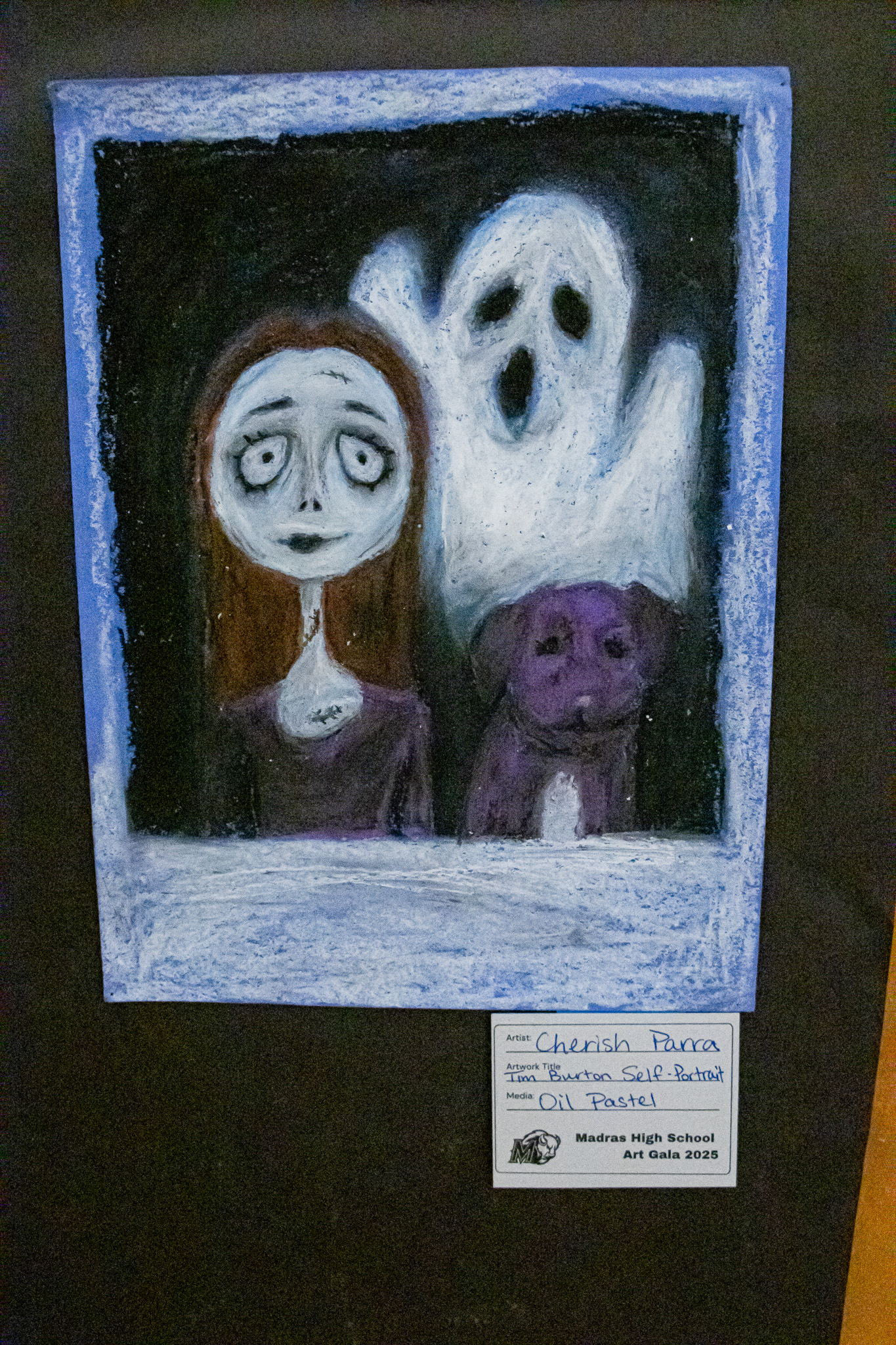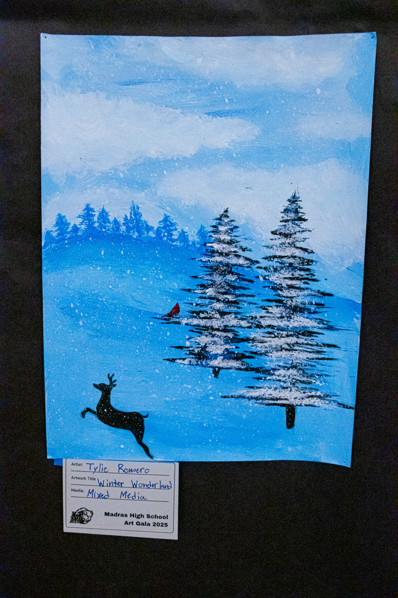 For the first time in its history, the commons of Madras High School was transformed into a vibrant art gallery for our inaugural Art Gala. Student artwork covered the walls and tables inside the commons. This included different mediums of art like ceramics, paintings, graphics, photography, and more.