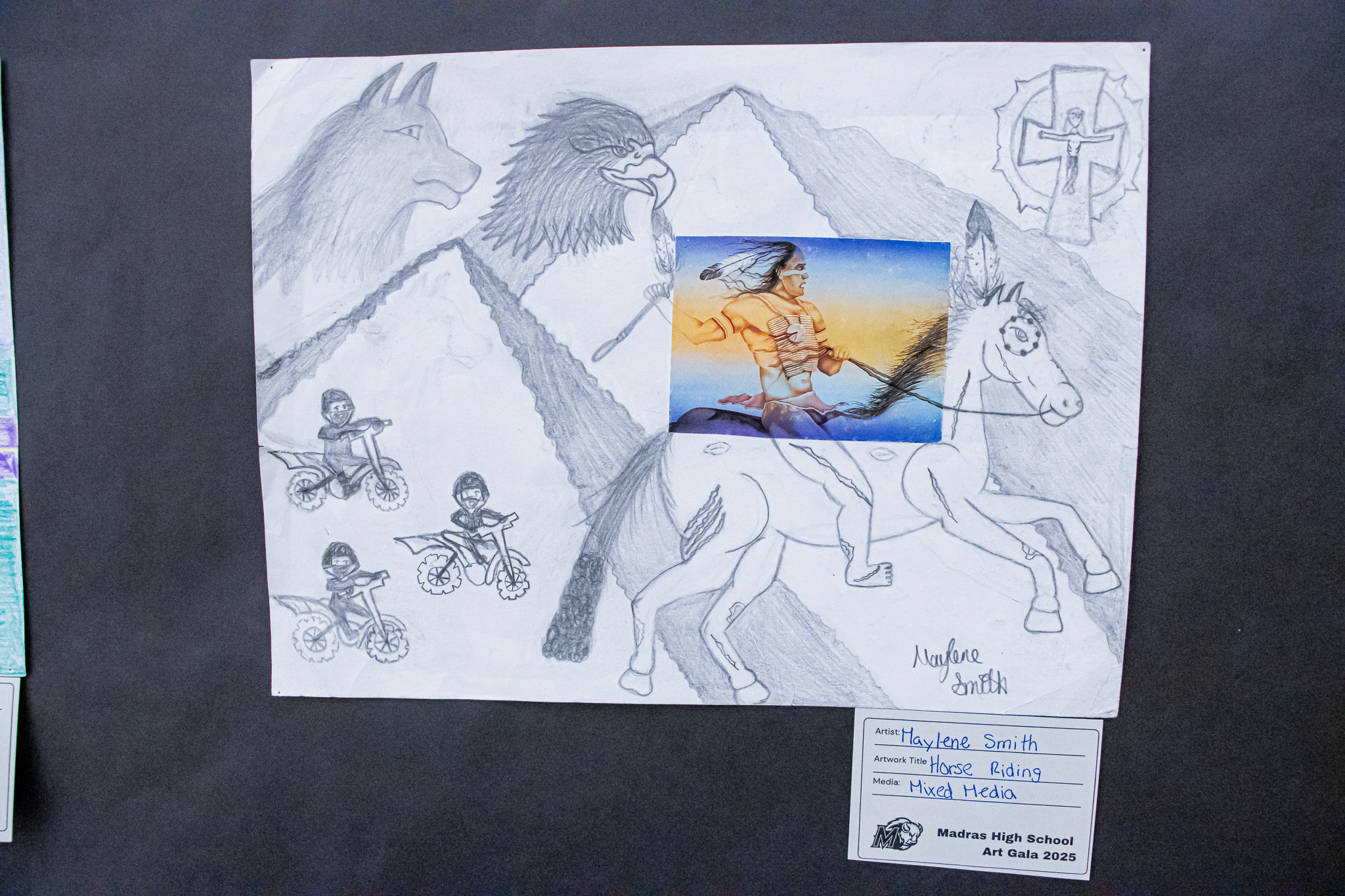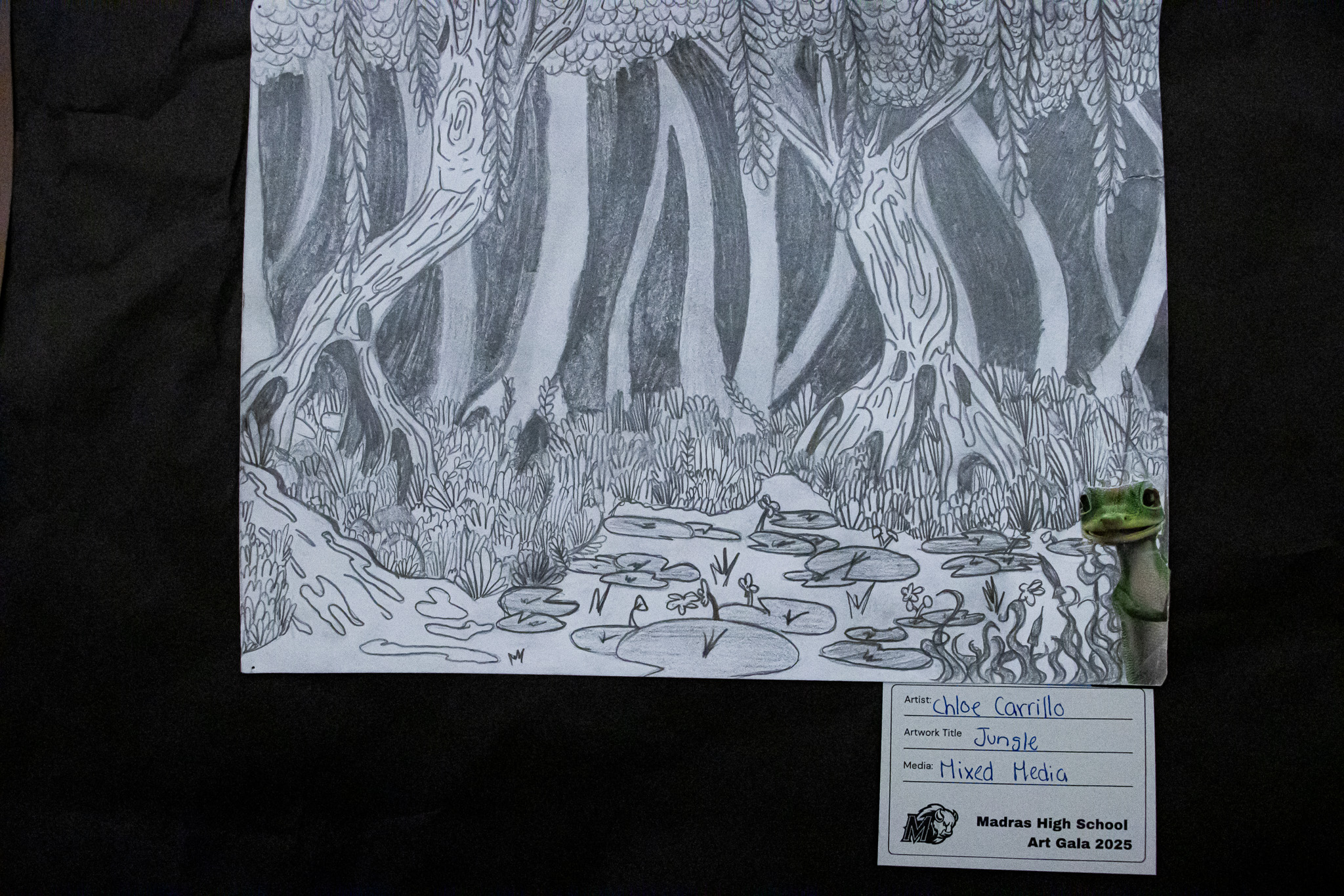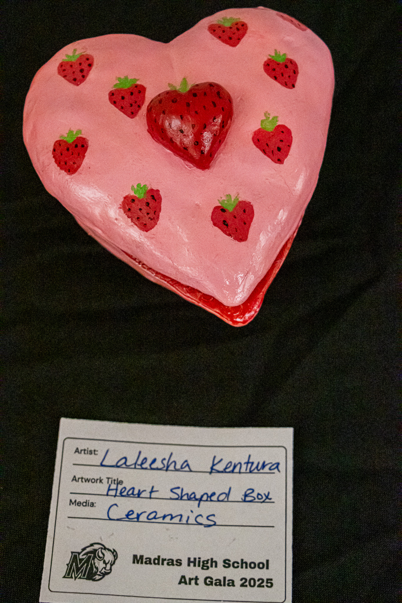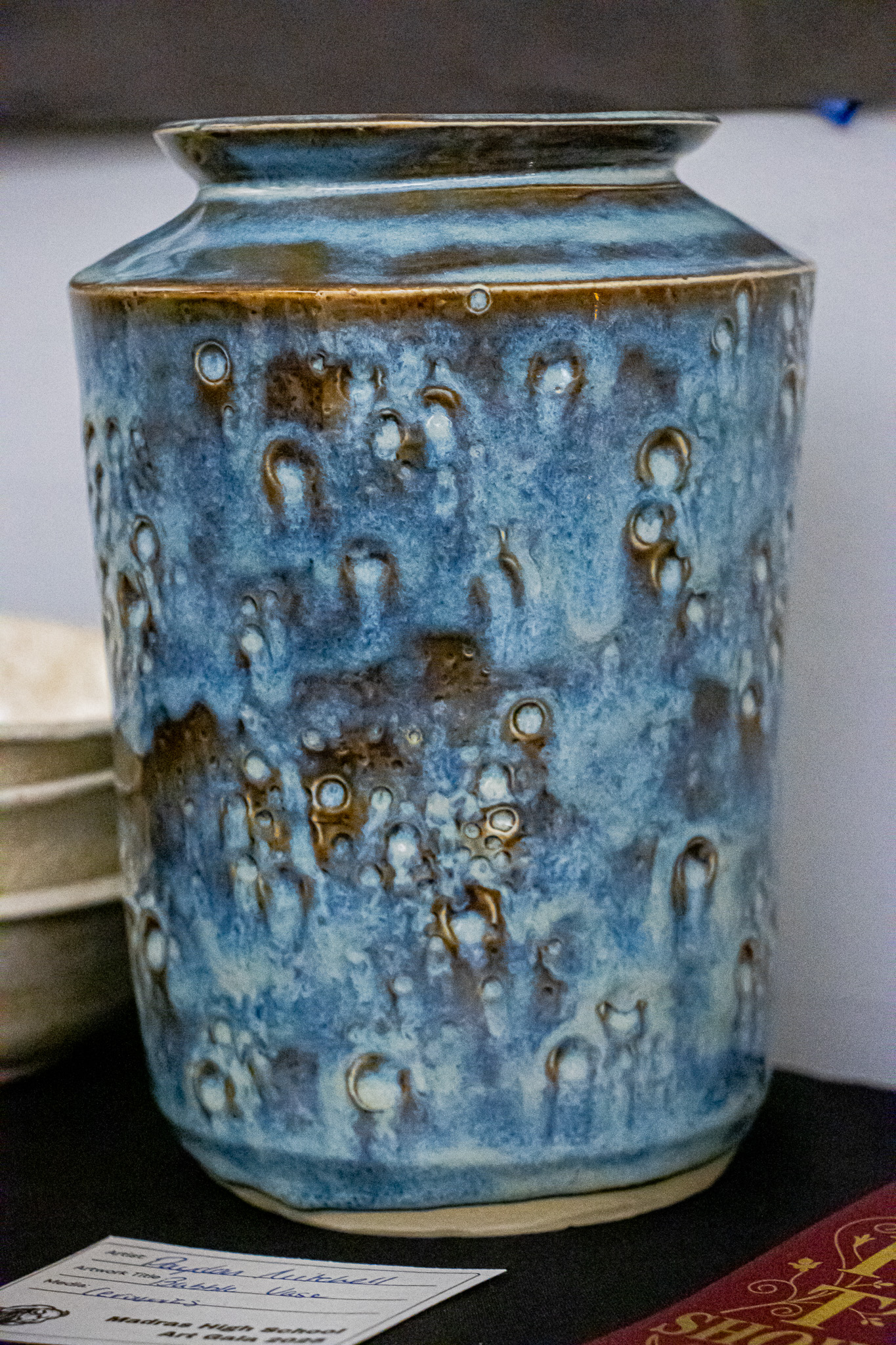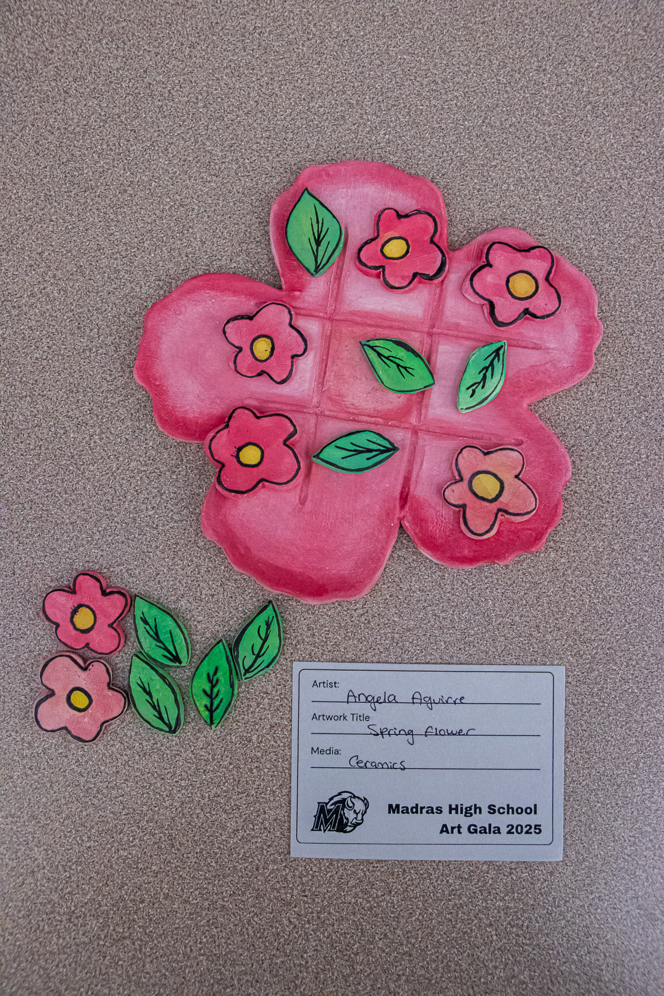 For the first time in its history, the commons of Madras High School was transformed into a vibrant art gallery for our inaugural Art Gala. Student artwork covered the walls and tables inside the commons. This included different mediums of art like ceramics, paintings, graphics, photography, and more.