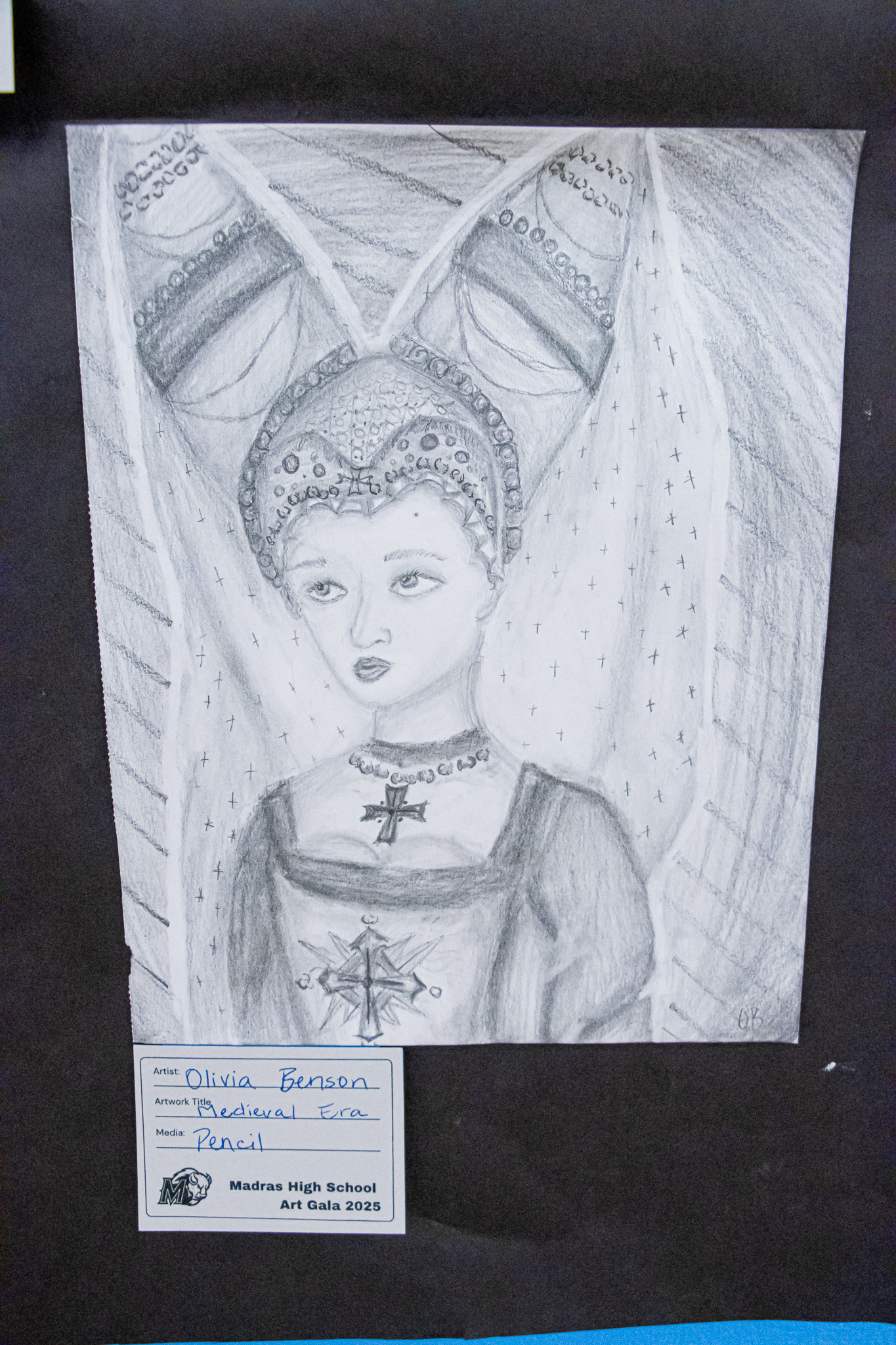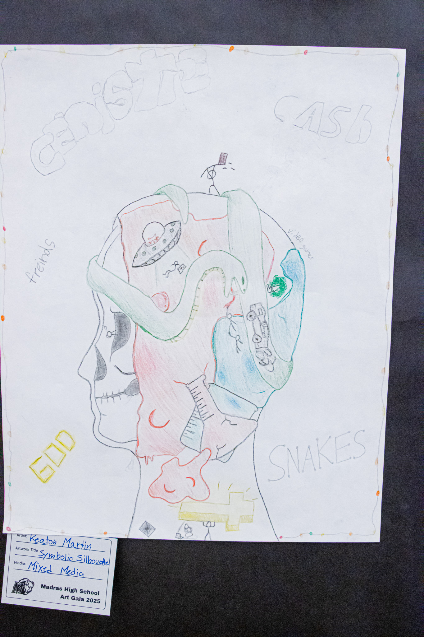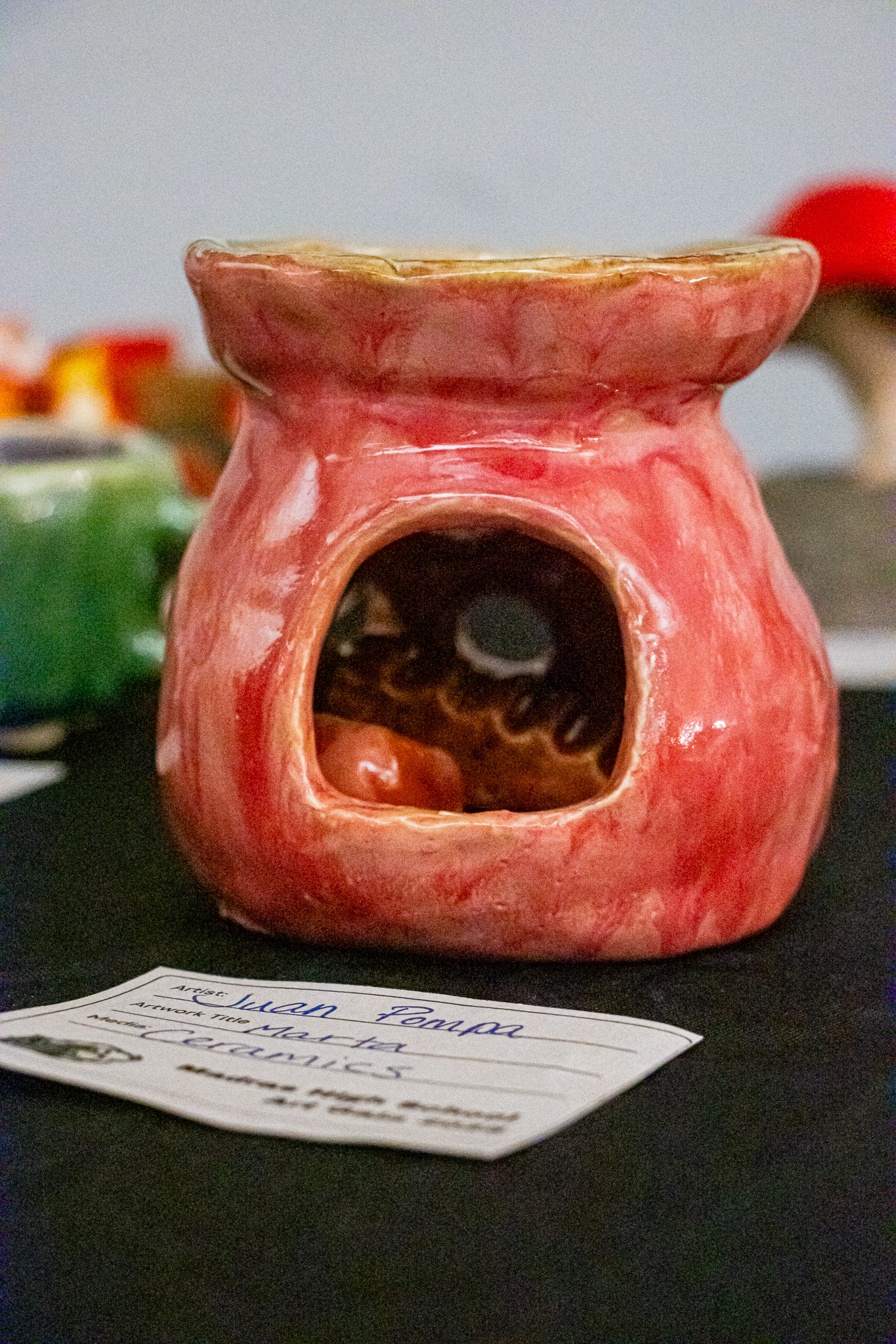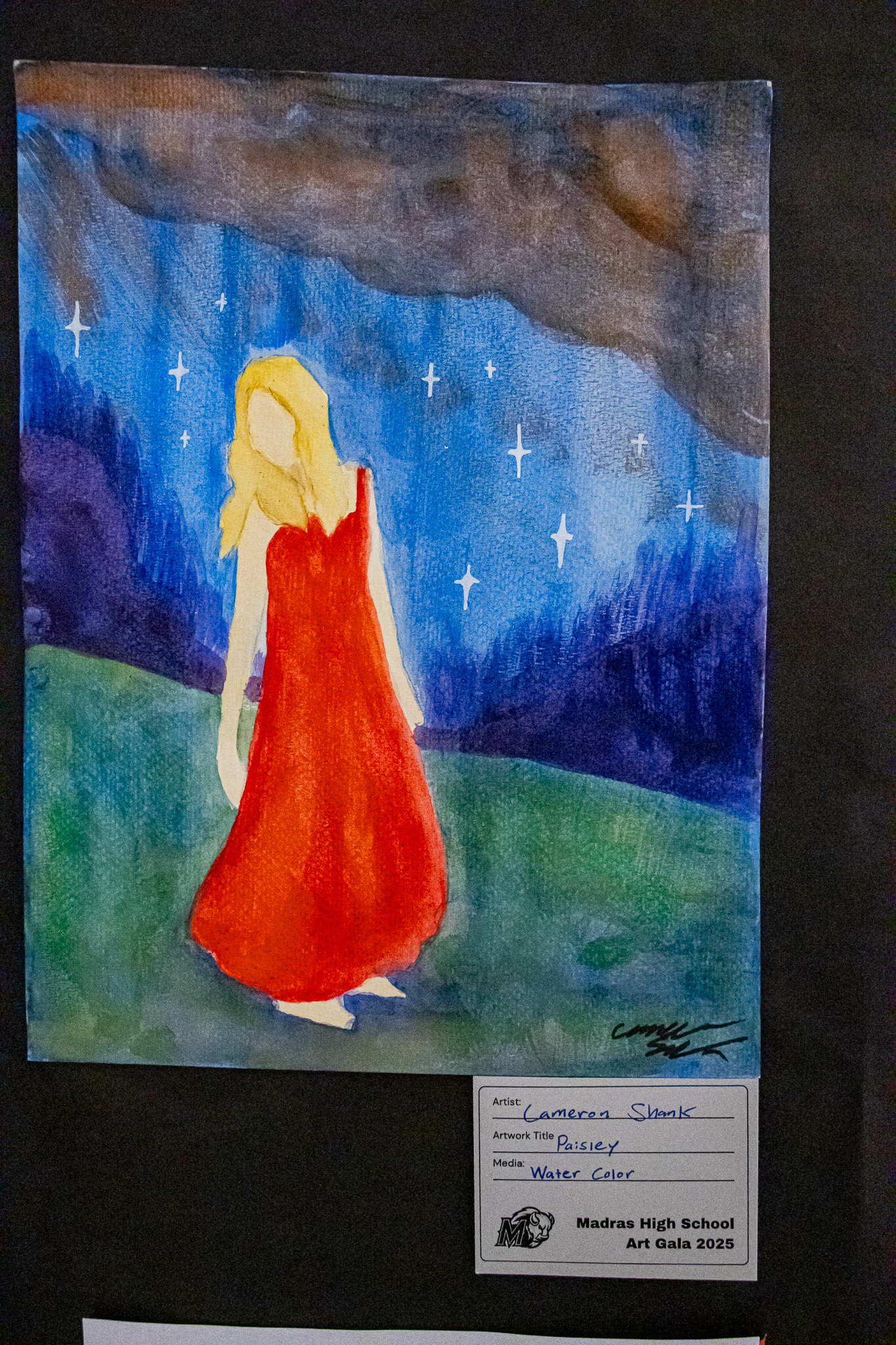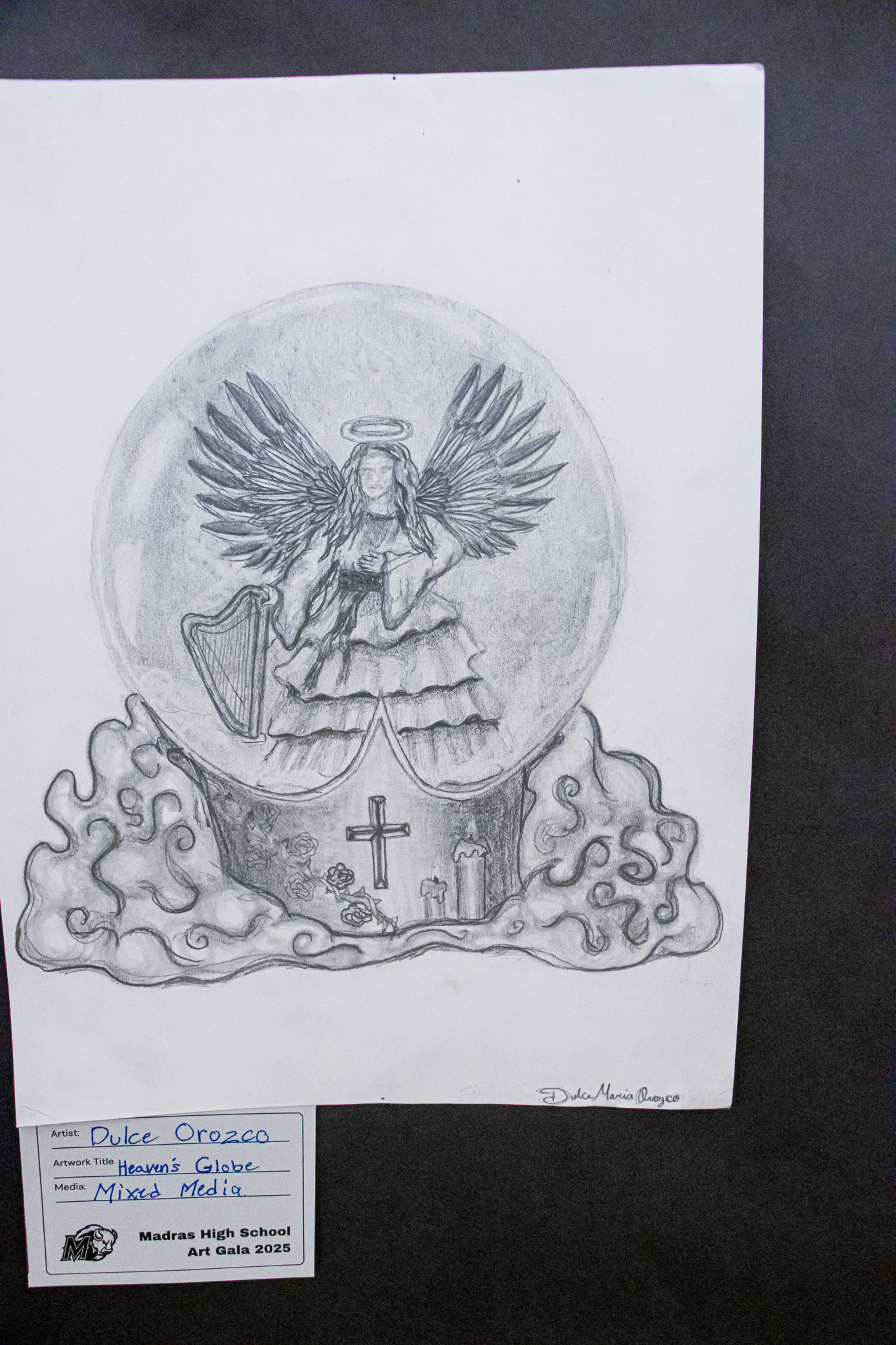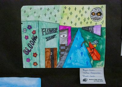 For the first time in its history, the commons of Madras High School was transformed into a vibrant art gallery for our inaugural Art Gala. Student artwork covered the walls and tables inside the commons. This included different mediums of art like ceramics, paintings, graphics, photography, and more.