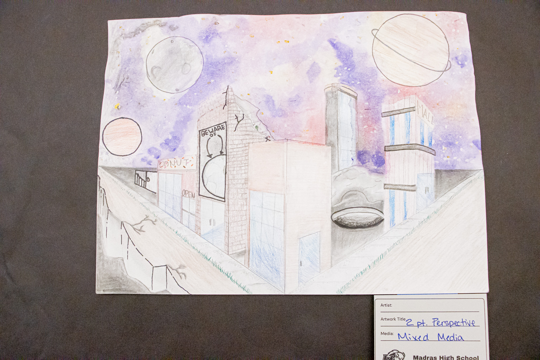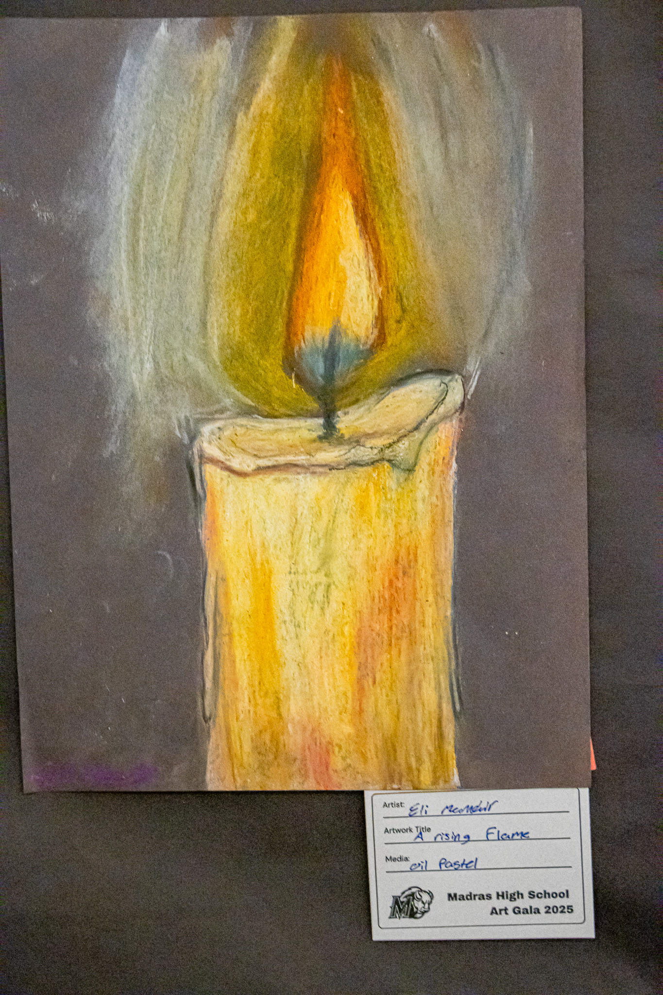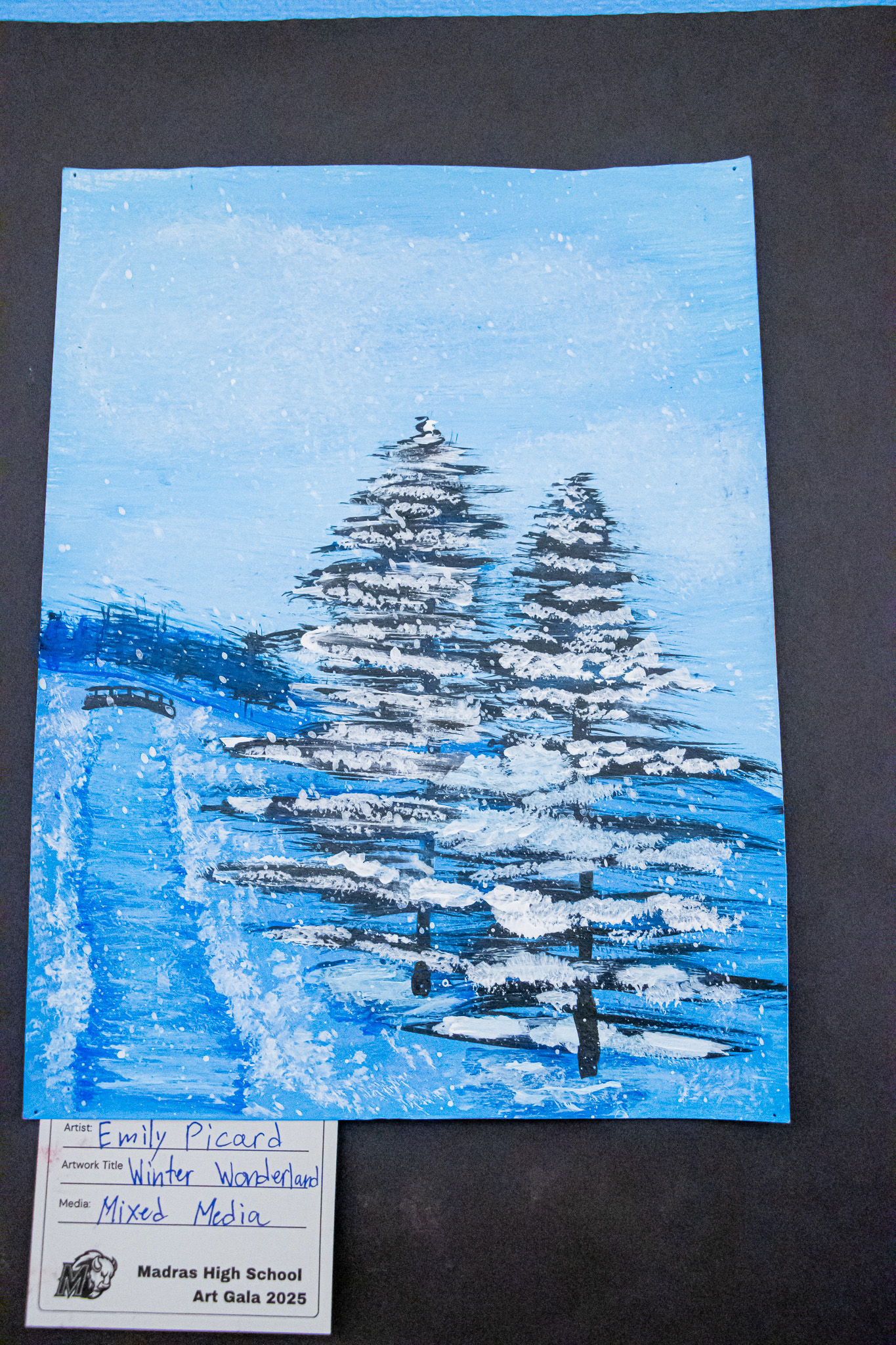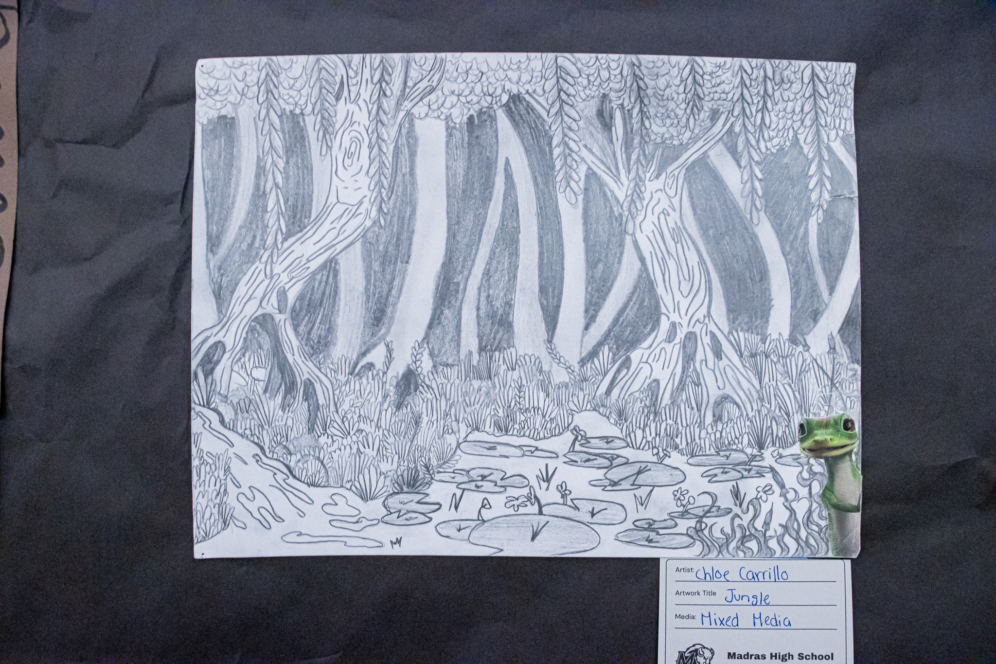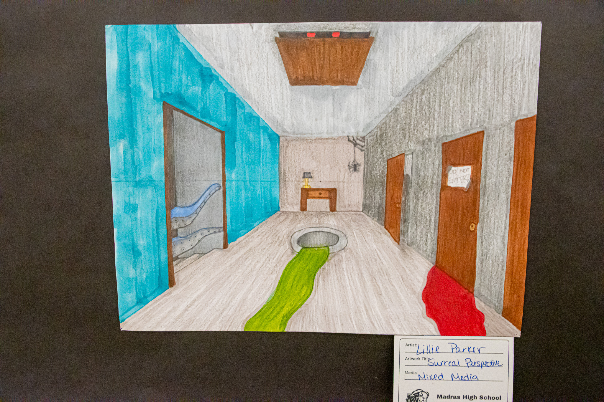 For the first time in its history, the commons of Madras High School was transformed into a vibrant art gallery for our inaugural Art Gala. Student artwork covered the walls and tables inside the commons. This included different mediums of art like ceramics, paintings, graphics, photography, and more.