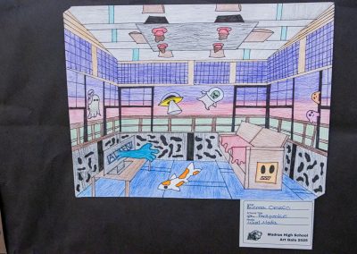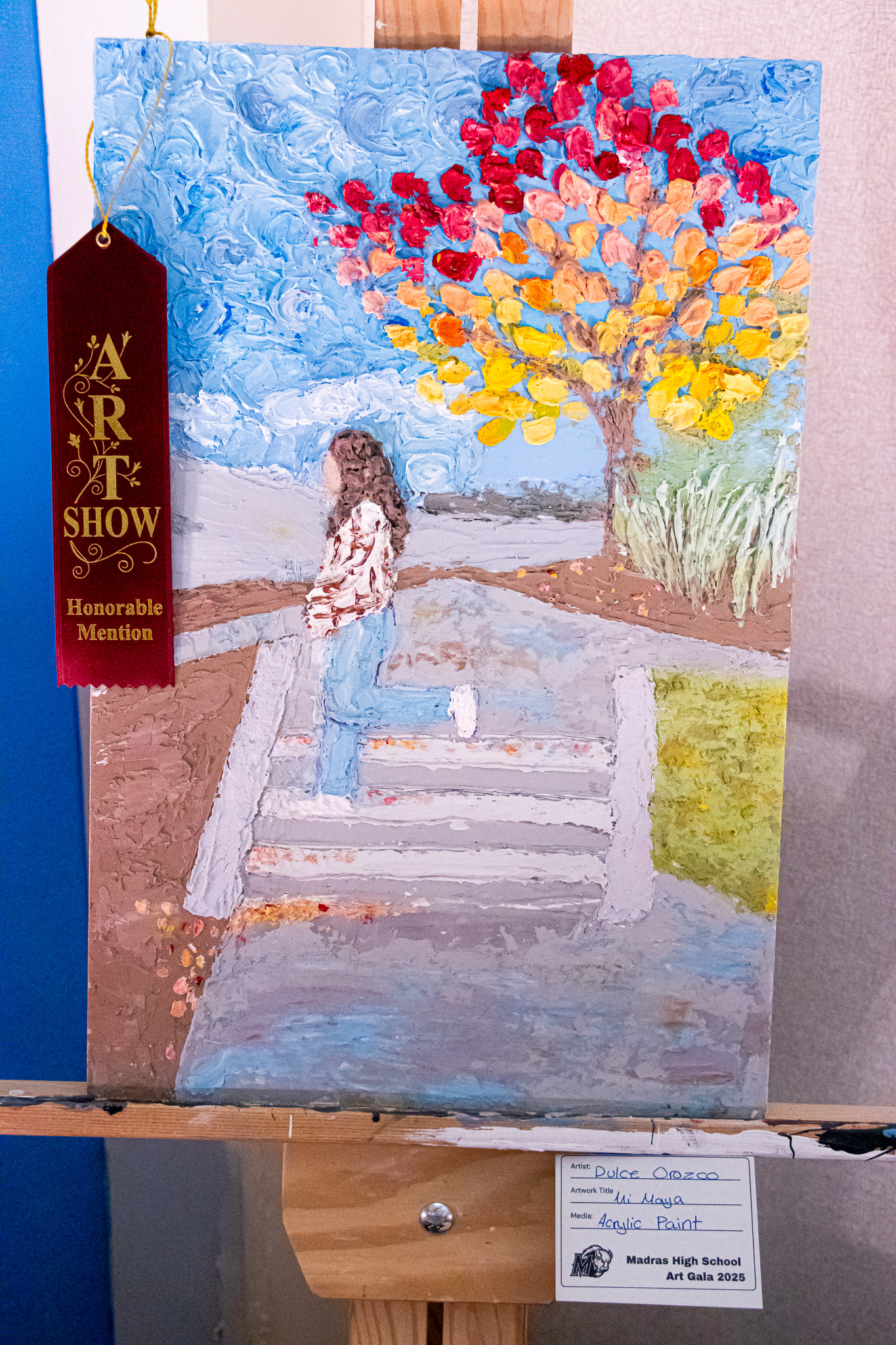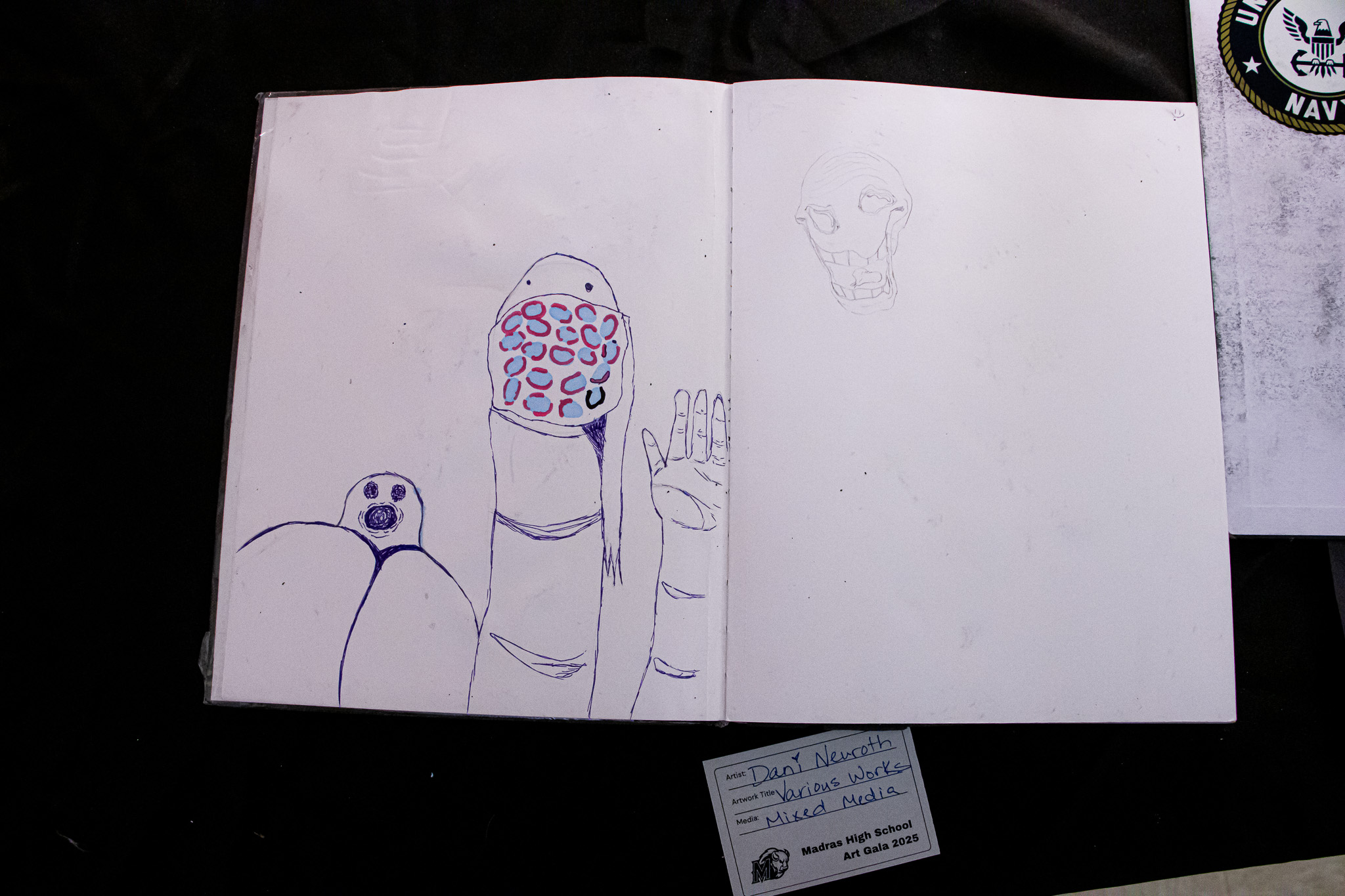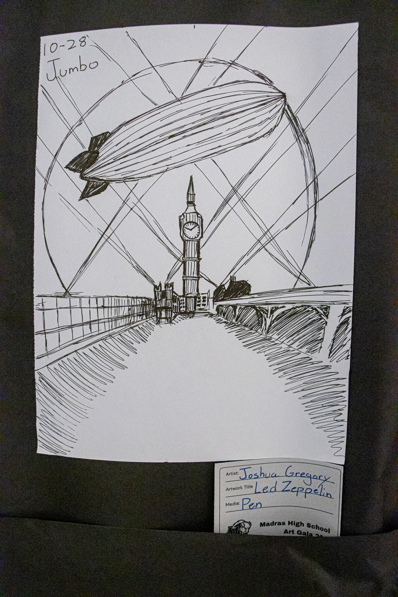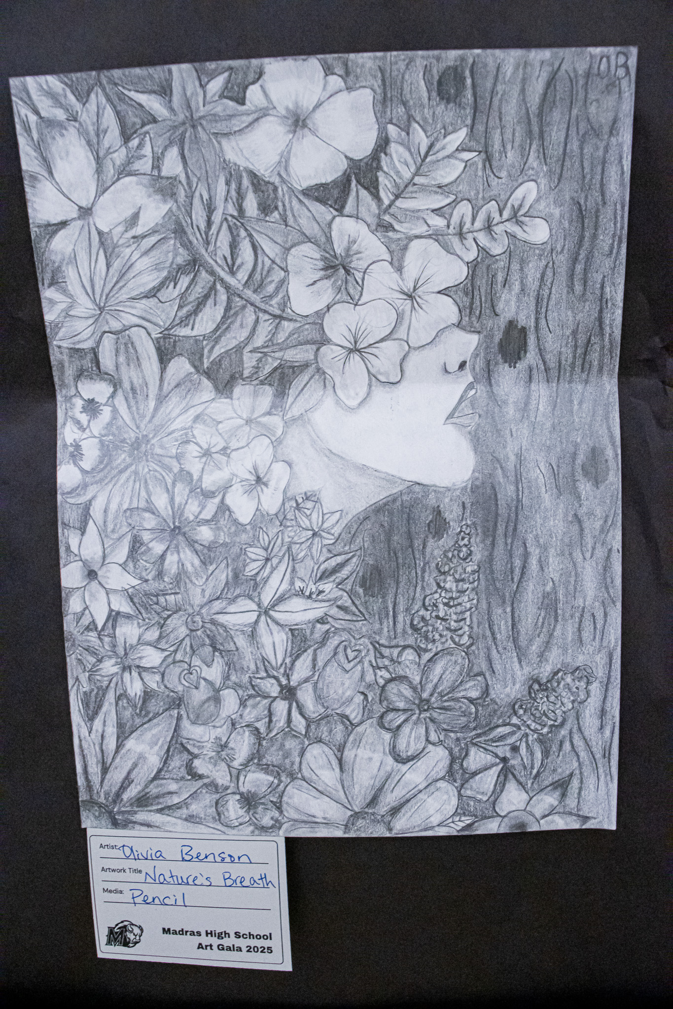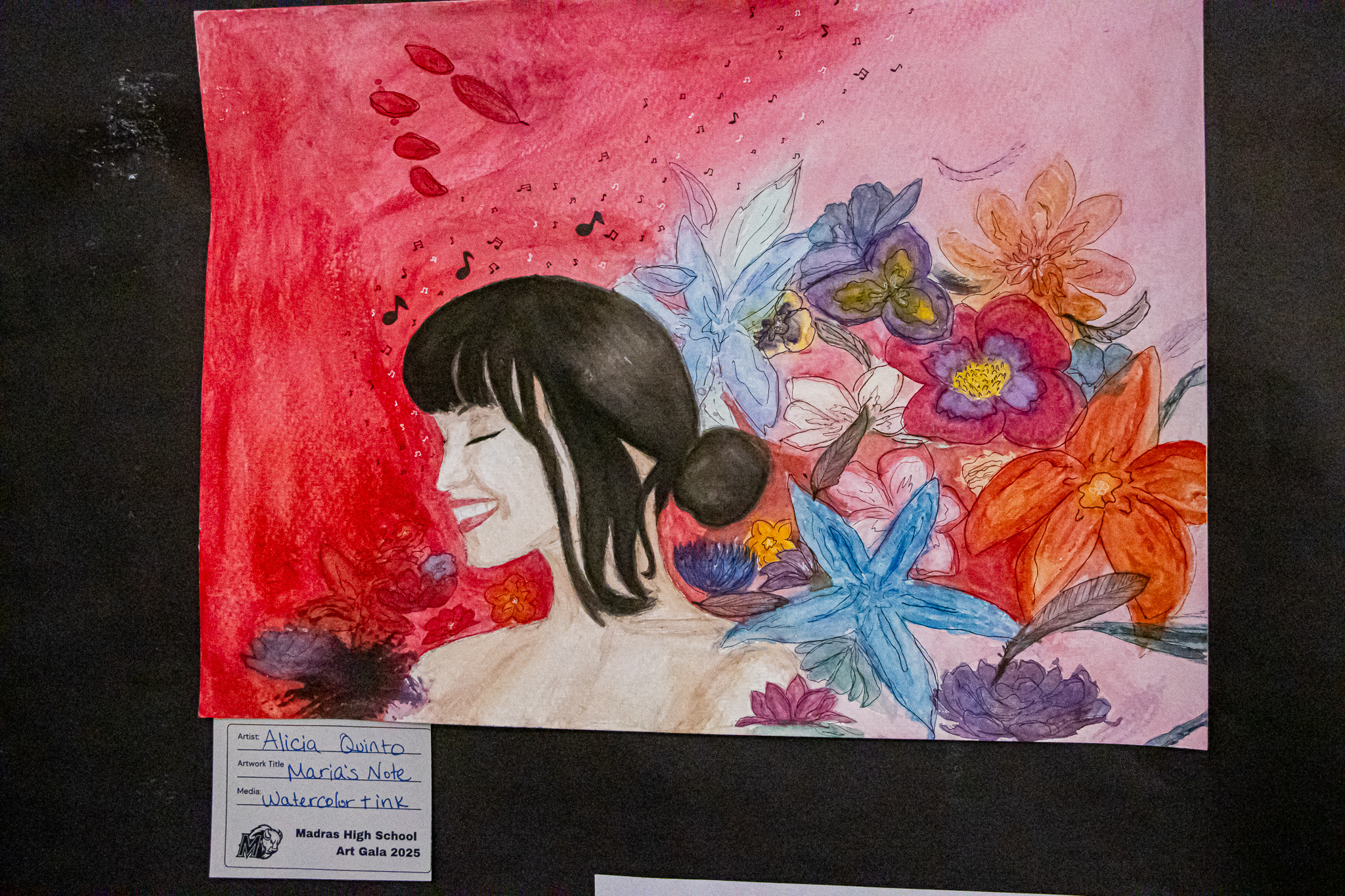 For the first time in its history, the commons of Madras High School was transformed into a vibrant art gallery for our inaugural Art Gala. Student artwork covered the walls and tables inside the commons. This included different mediums of art like ceramics, paintings, graphics, photography, and more.