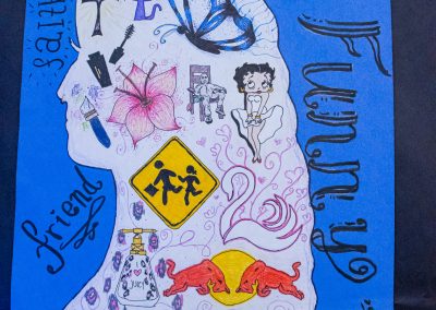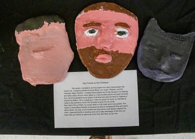 In addition to work done in Starr’s class, she also collaborated with our graphic design and photography class, taught by Sue Young, and our Spanish class, taught by Silvia Navarro, so their work could also be put on display.
