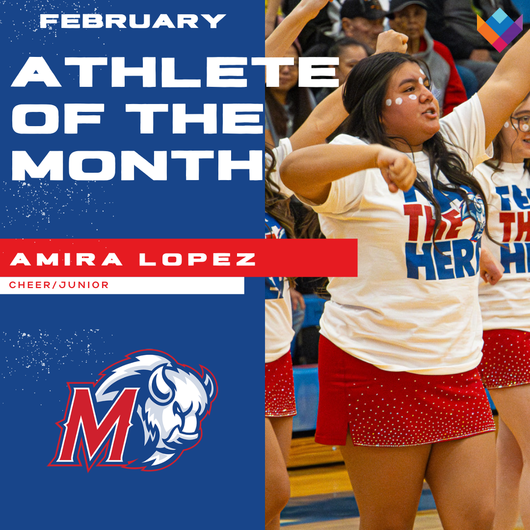 Cheerleading: Amira is a great leader and has a fearless attitude. She has taken some hits from stunting but never fails to see the positive and is always willing to jump right back in. Amira is a friend to all and is a great teacher, guide, and lifts her team up when their down. We are so blessed to have Amira on our team and she never seizes to amaze us with her kindness and can do attitude.