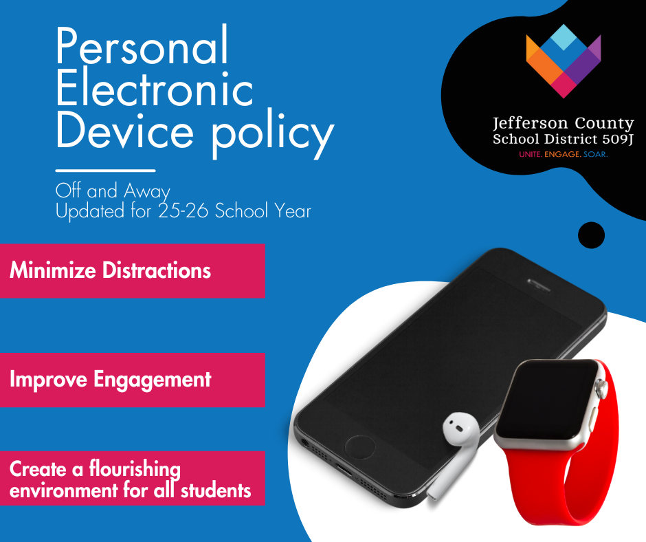 Creating a cell-phone and distraction free environment has been a focus in our secondary classrooms for some time. Some of our schools have already implemented ‘off and away’ policies. What is new is that Governor Tina Kotek’s executive order, 25-09, titled ‘Personal Electronic Device Policy for School Districts,’ now requires all districts in the state to adopt a consistent, districtwide policy limiting personal electronic devices by students bell-to-bell. This policy will also be in place throughout our elementary schools.