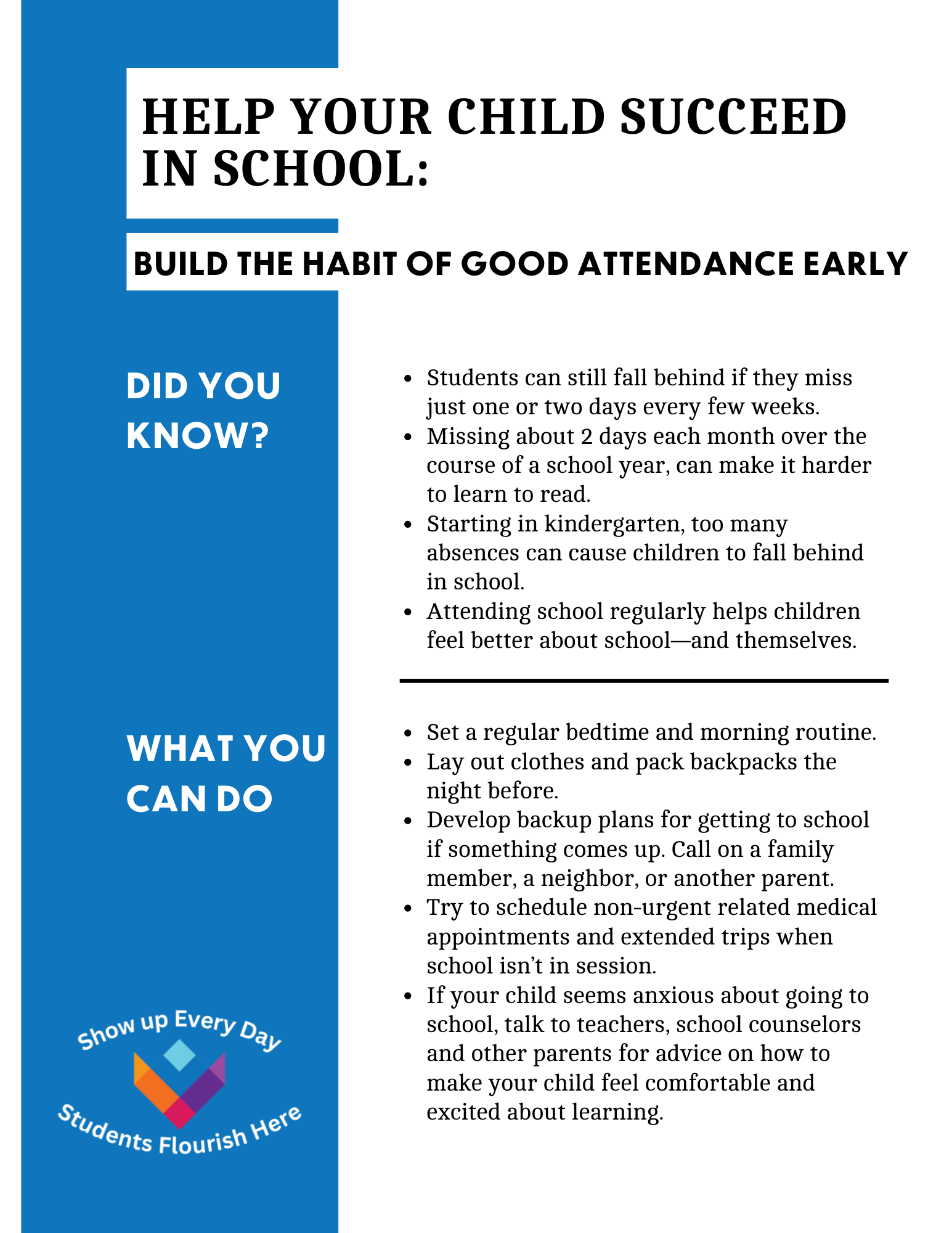 • Talk about the importance of showing up to school every day.