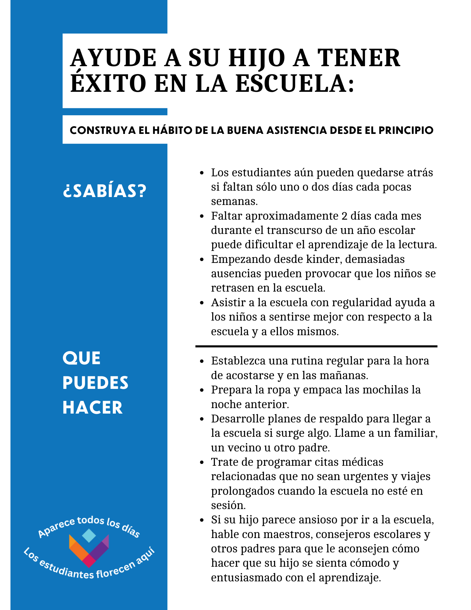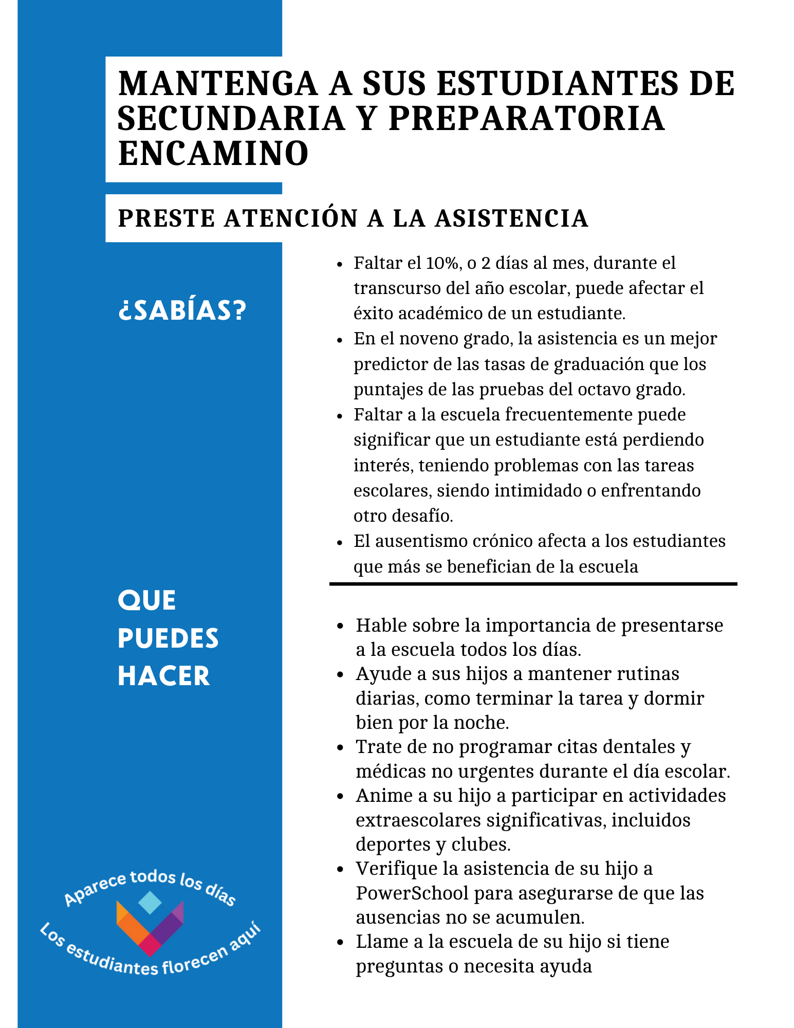 • Hable sobre la importancia de presentarse a la escuela todos los días.