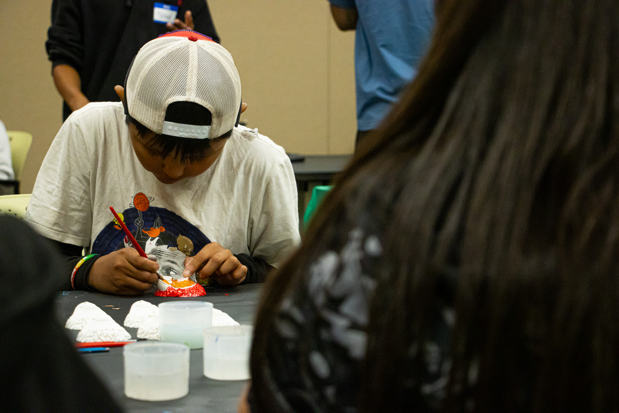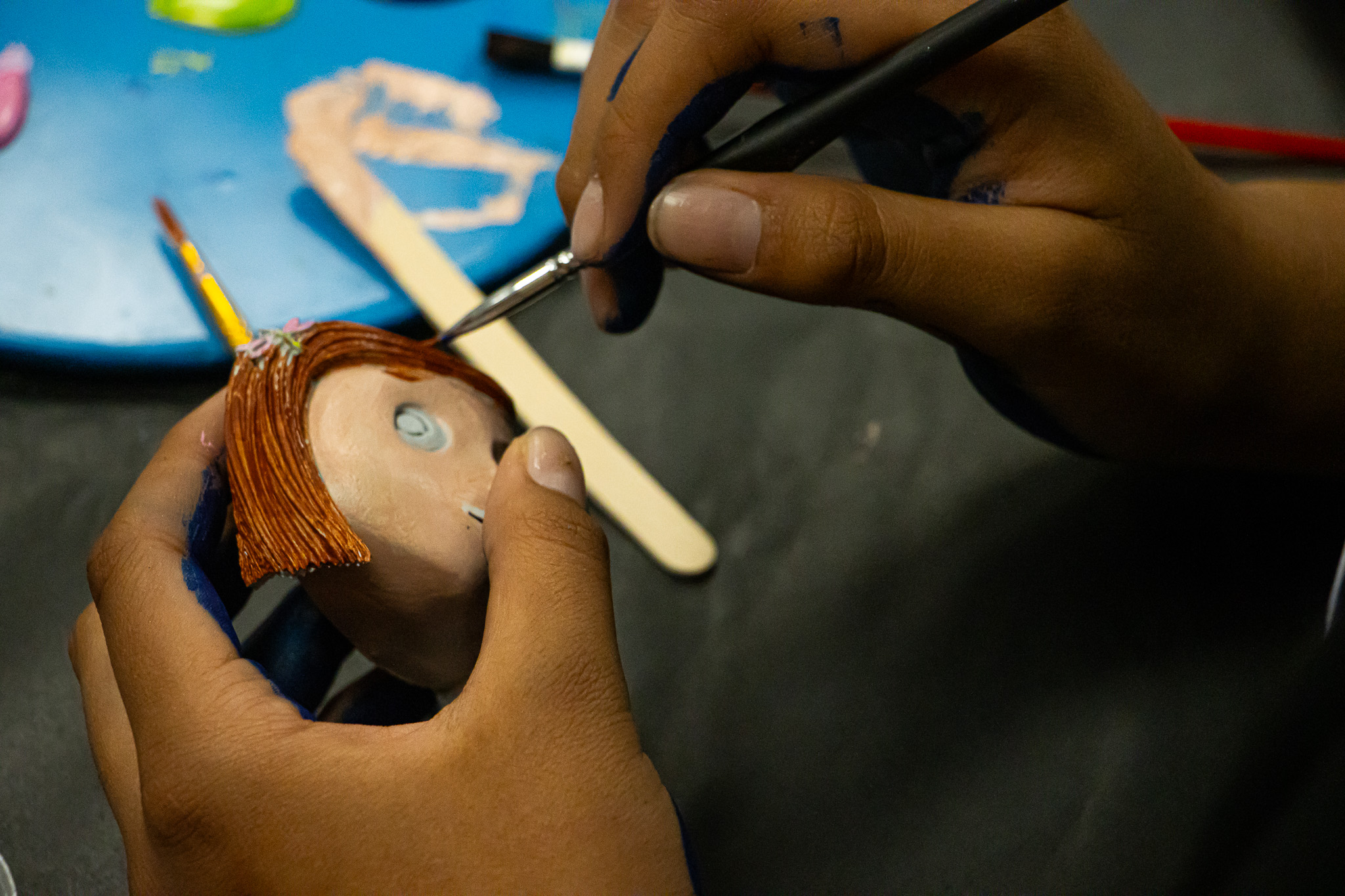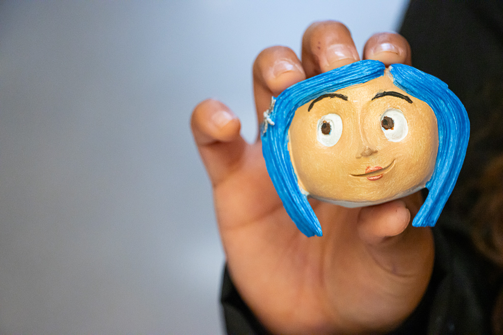 Before students could lose themselves in painting the characters, they first had to gather their supplies. LAIKA provided everything the students needed from brushes, a variety of different colors of paint, and palettes. Once students knew what colors they wanted, they could begin. Throughout the workshop, students meticulously painted the clay busts to bring their imagination to life. They focused on the different strands of hair, the eyebrows, eyes, nose, lips, skin of Coraline or Mr. Susan Link.