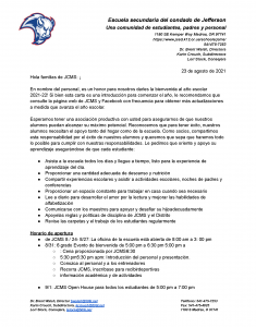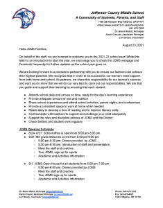 Please click on one of the letters for a welcome back to school message from your JCMS Administration.