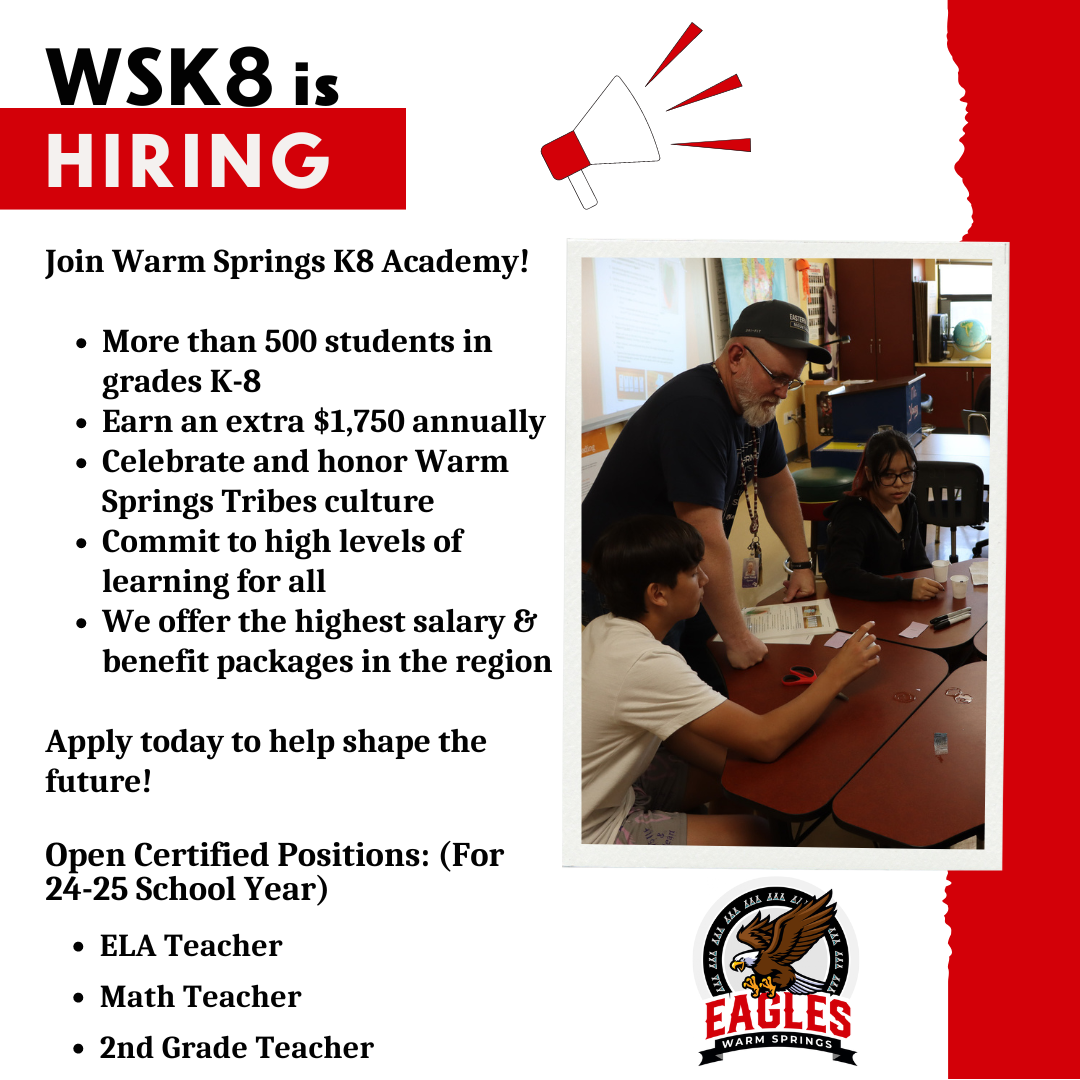 Join Warm Springs K8 Academy and be part of a vibrant community. Apply for one of our open teaching positions!
